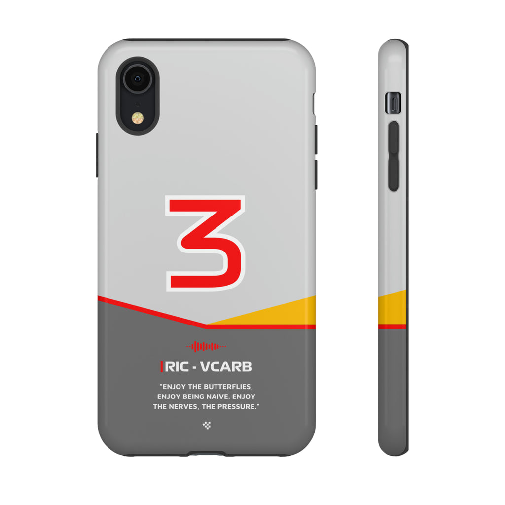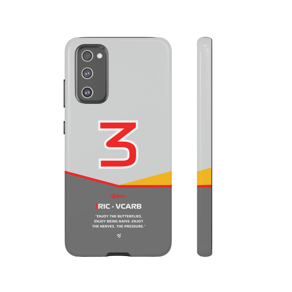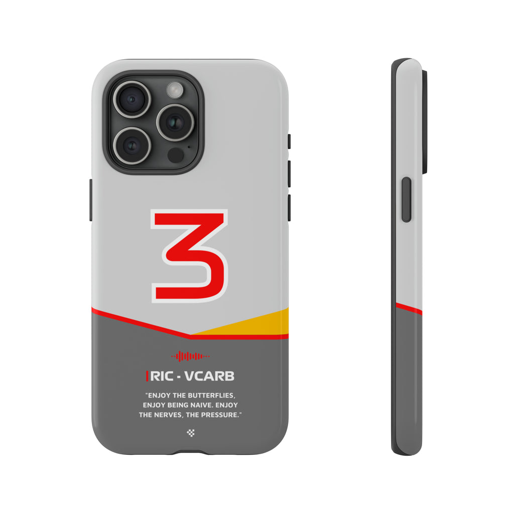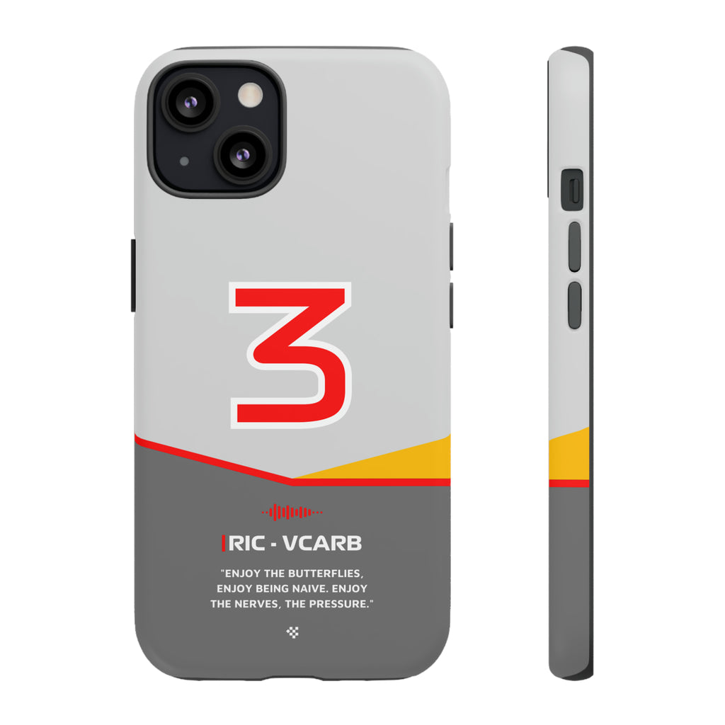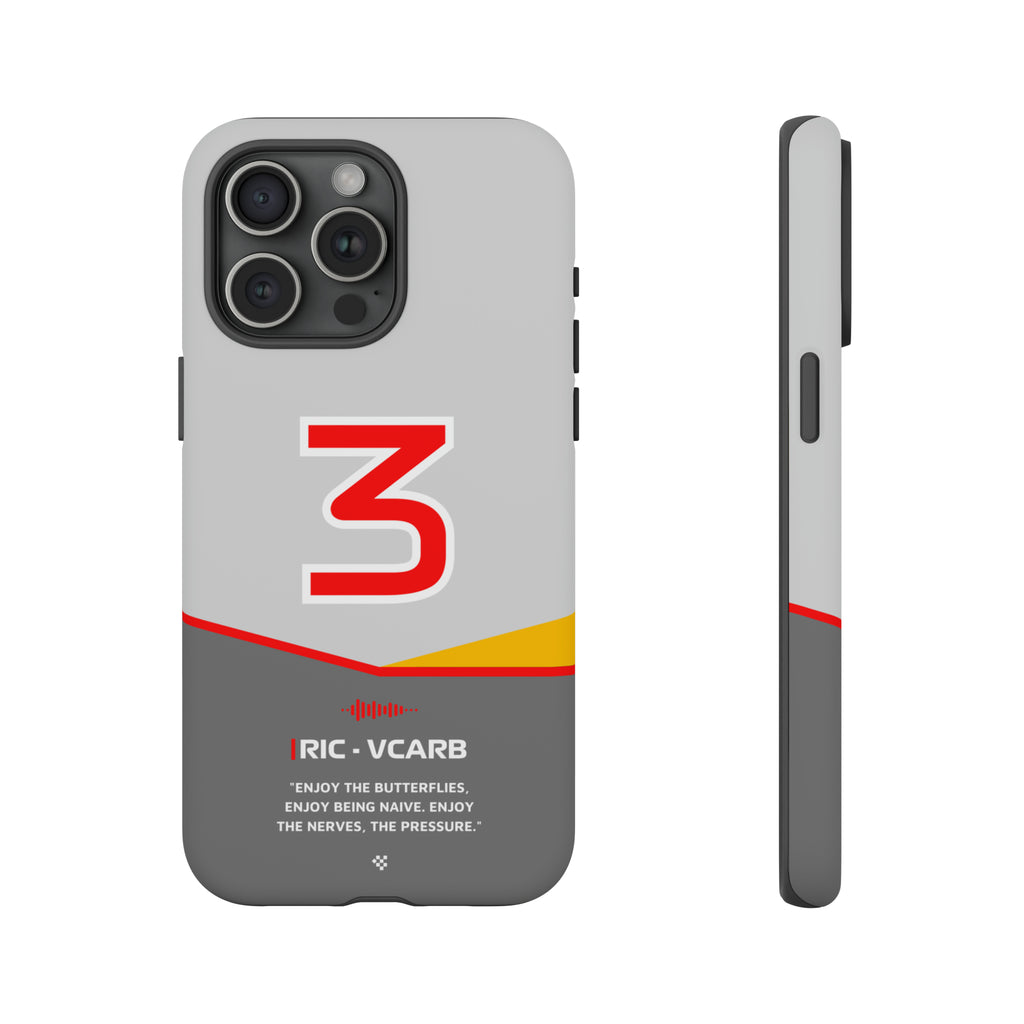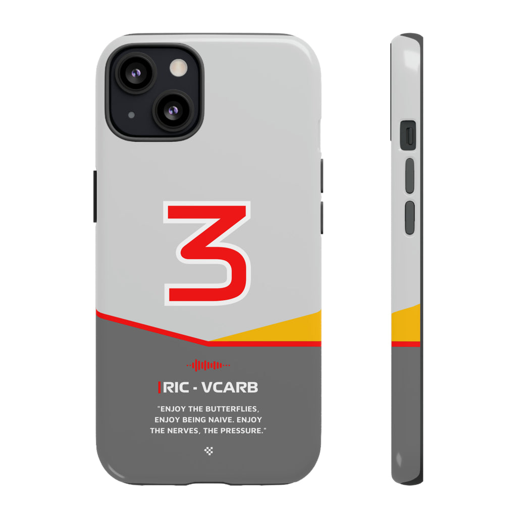 Get ready to support Daniel in the 2024 Formula 1 season with the Daniel Ricciardo F1 2024 Helmet Phone Case. Designed for true Formula 1 fans, this case features his iconic #3 race car number alongside his striking 2024 helmet colors. But that's not all - it also proudly showcases an iconic quote that you can personalize. Whether you're cheering from the grandstands or watching from home, this case is a must-have for every Ricciardo fan.