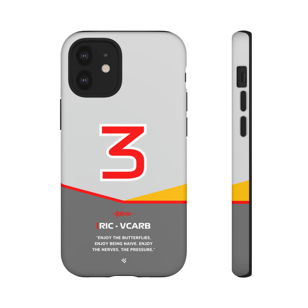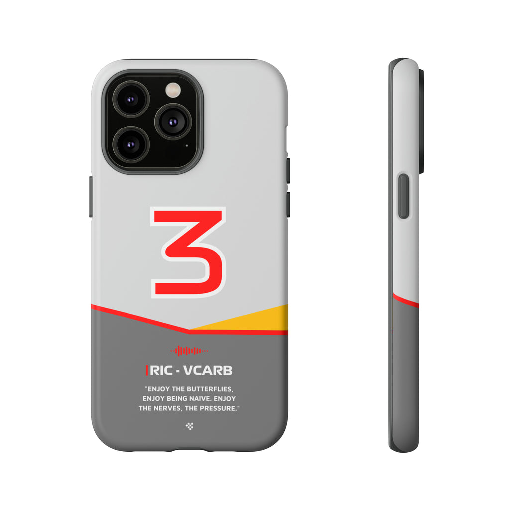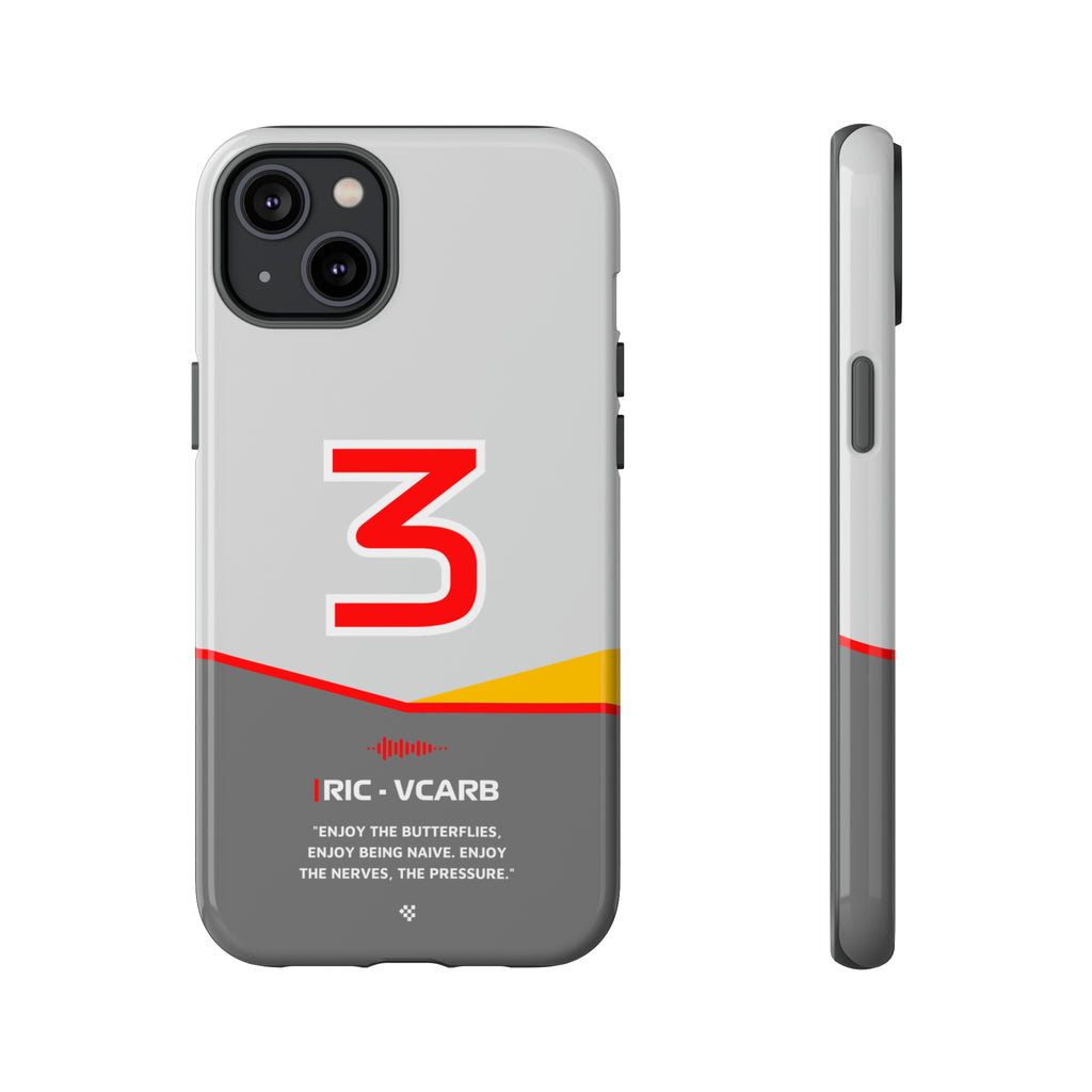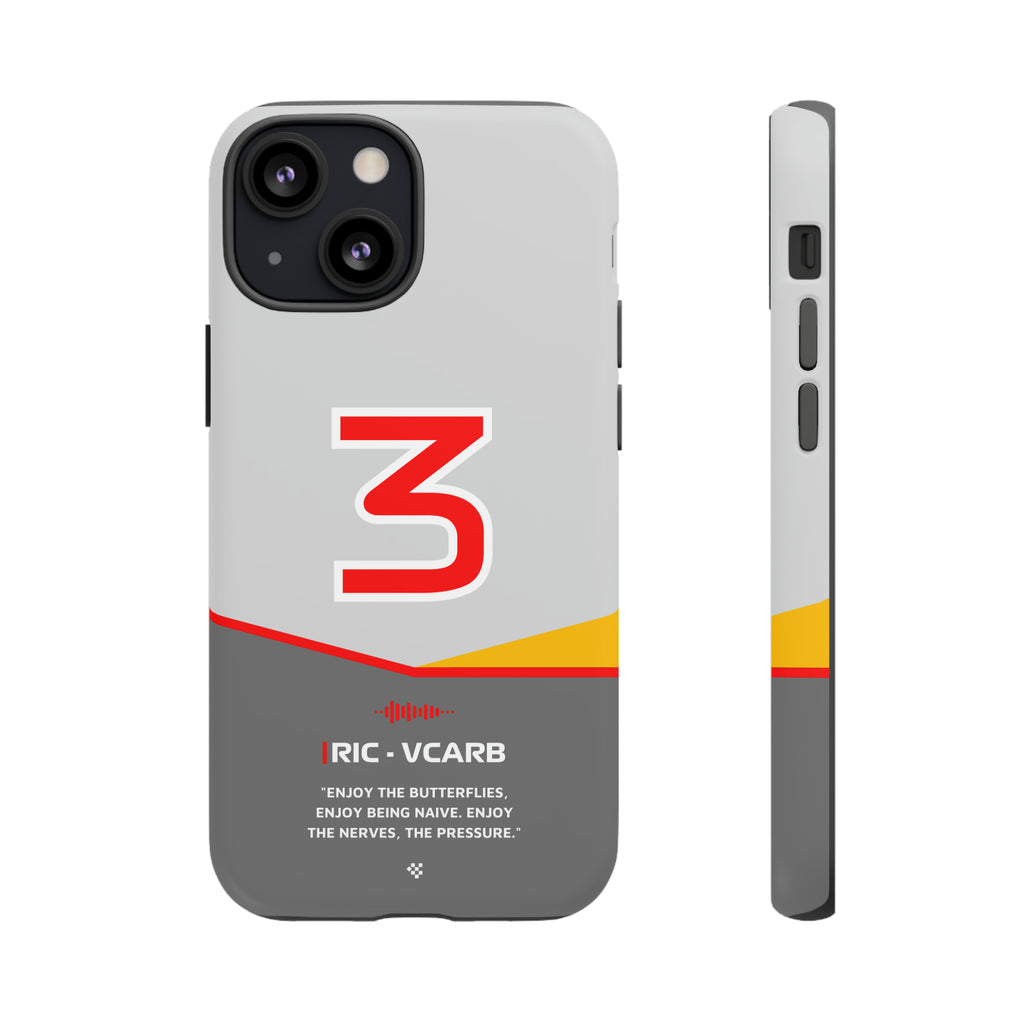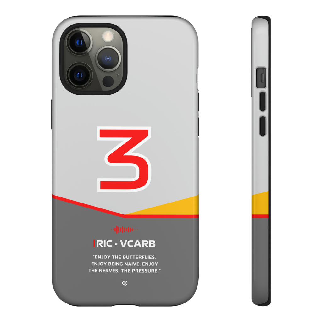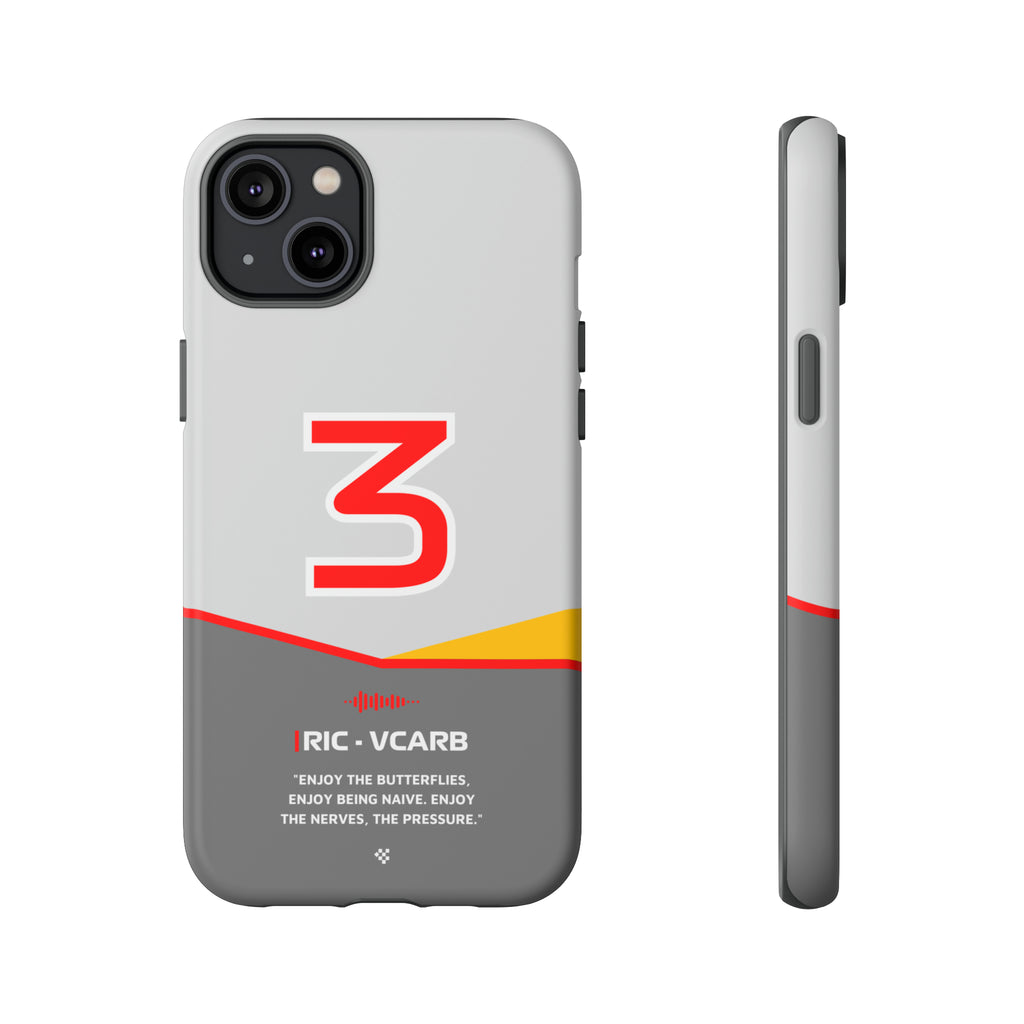 Get ready to support Daniel in the 2024 Formula 1 season with the Daniel Ricciardo F1 2024 Helmet Phone Case. Designed for true Formula 1 fans, this case features his iconic #3 race car number alongside his striking 2024 helmet colors. But that's not all - it also proudly showcases an iconic quote that you can personalize. Whether you're cheering from the grandstands or watching from home, this case is a must-have for every Ricciardo fan.