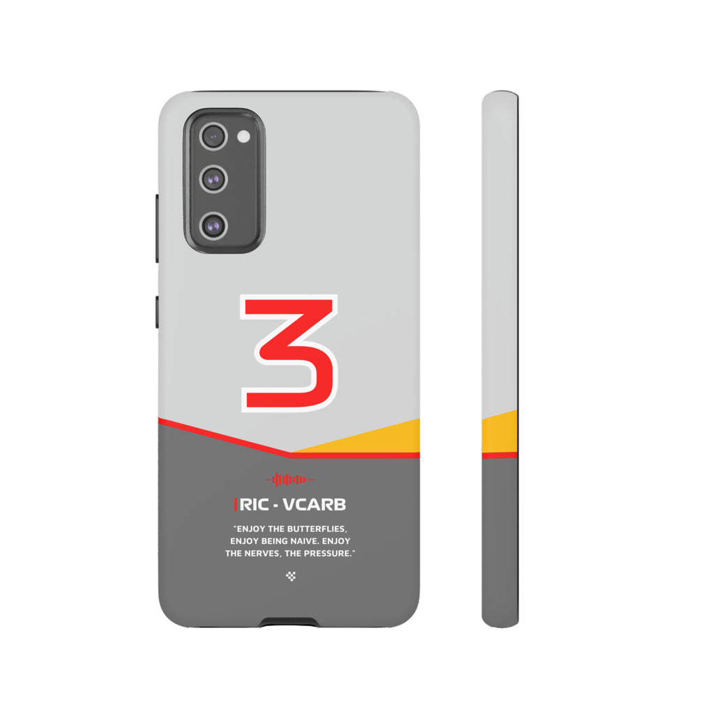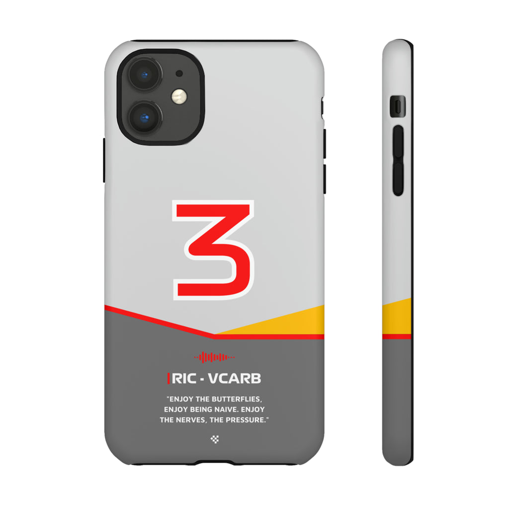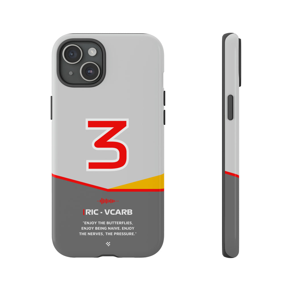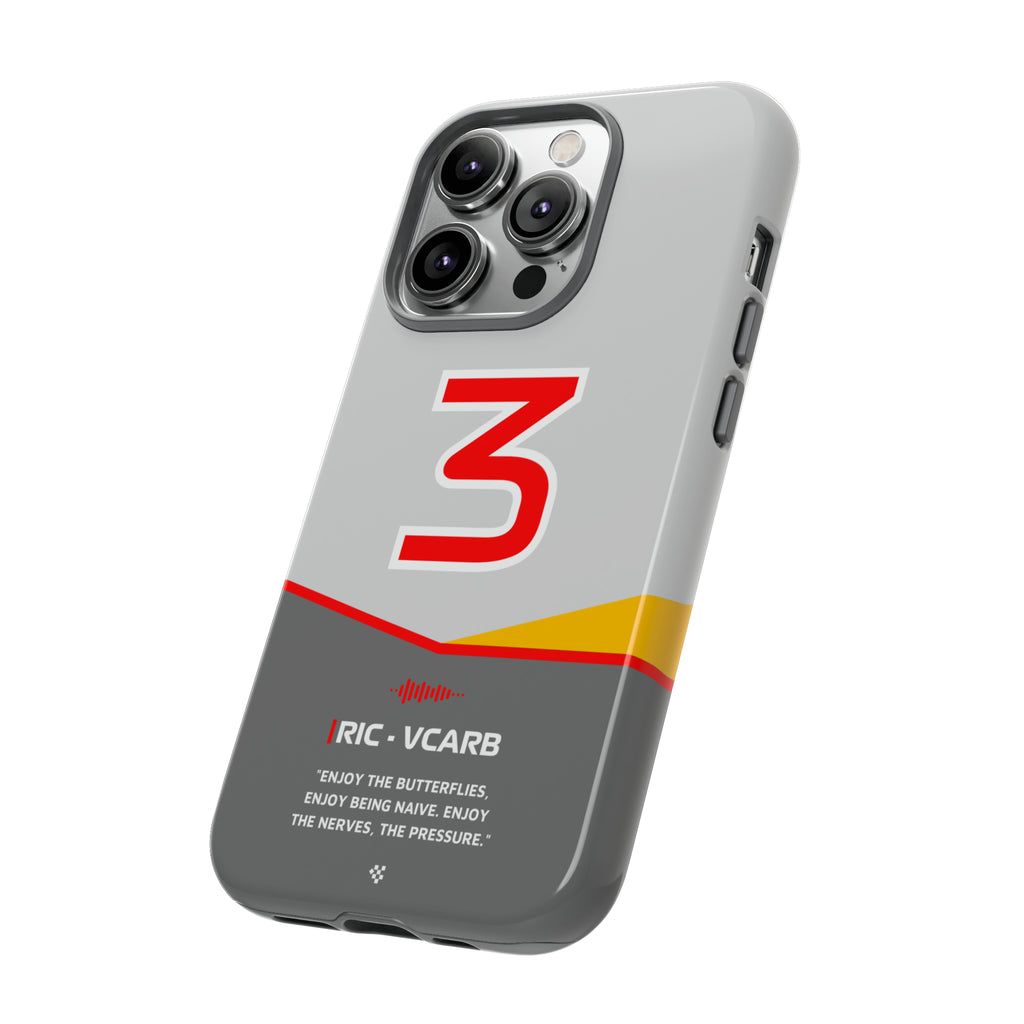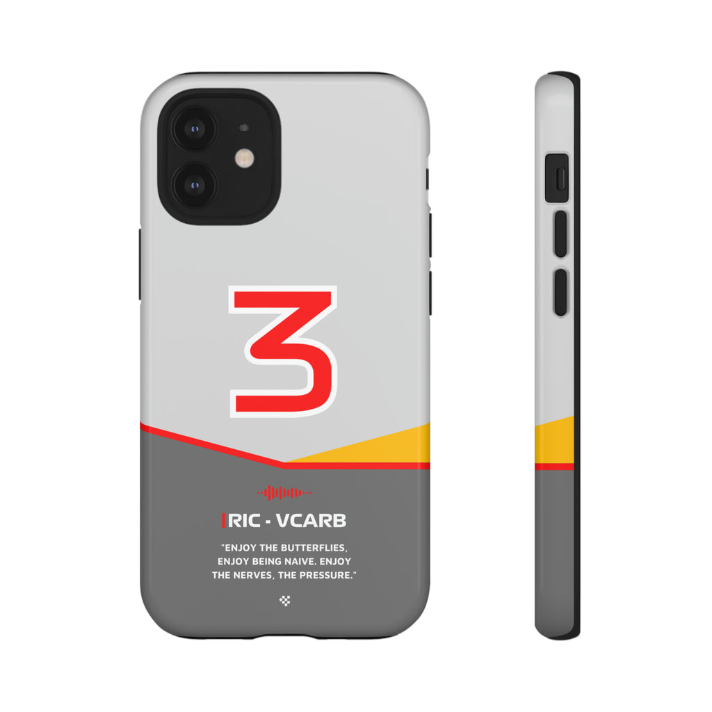 Get ready to support Daniel in the 2024 Formula 1 season with the Daniel Ricciardo F1 2024 Helmet Phone Case. Designed for true Formula 1 fans, this case features his iconic #3 race car number alongside his striking 2024 helmet colors. But that's not all - it also proudly showcases an iconic quote that you can personalize. Whether you're cheering from the grandstands or watching from home, this case is a must-have for every Ricciardo fan.