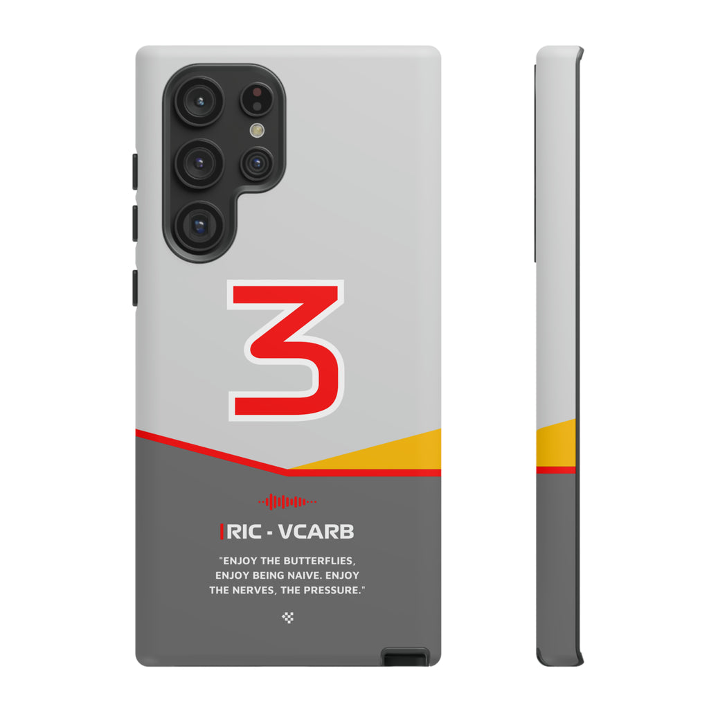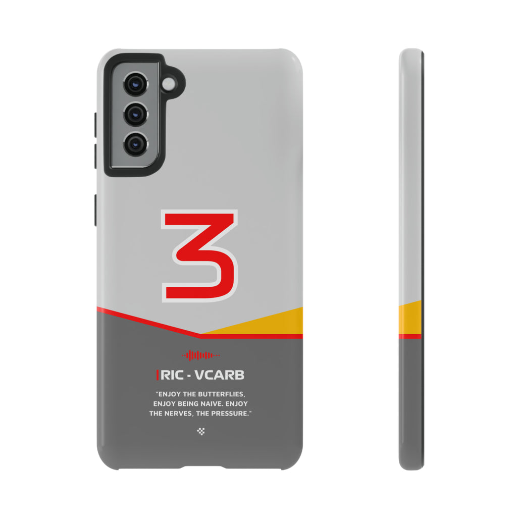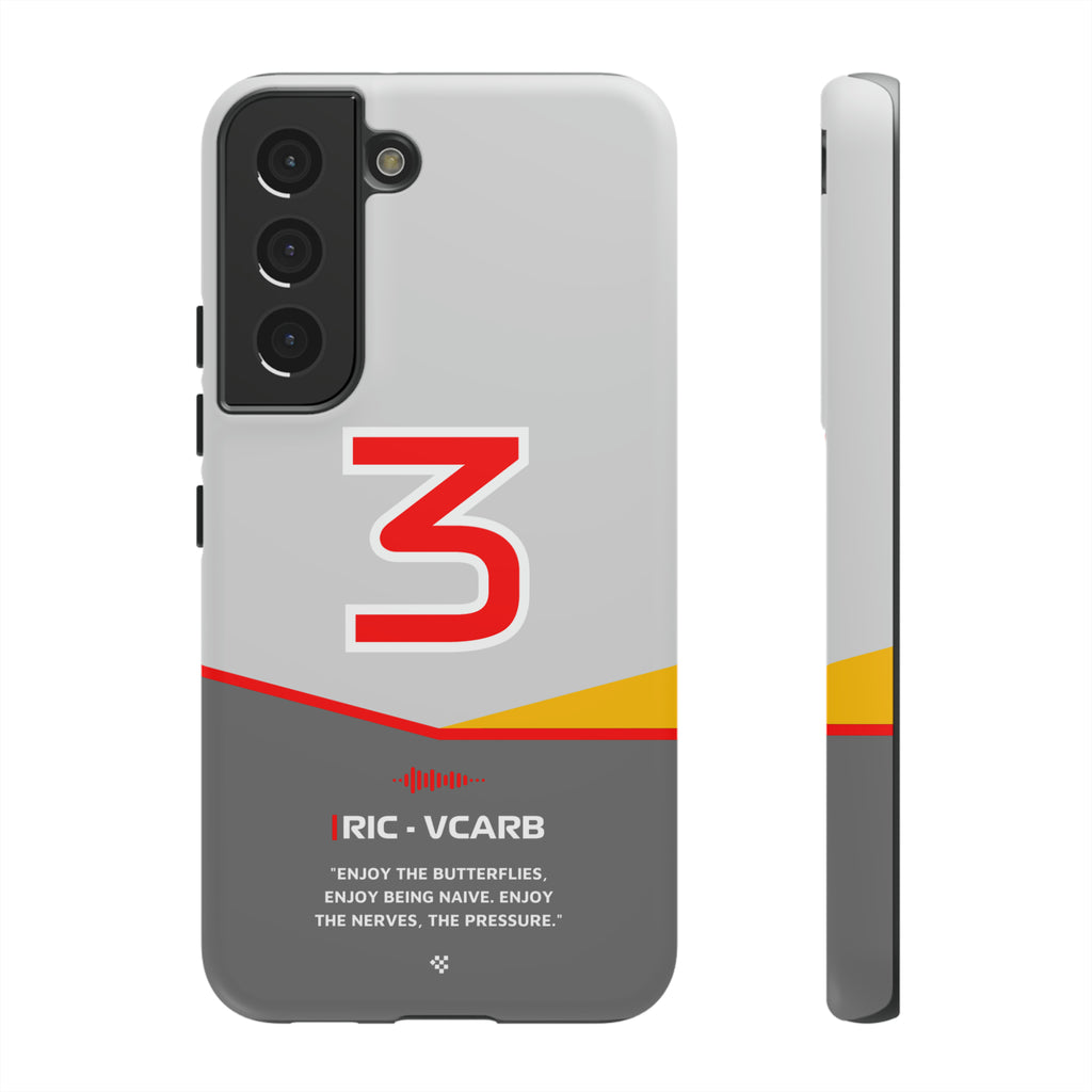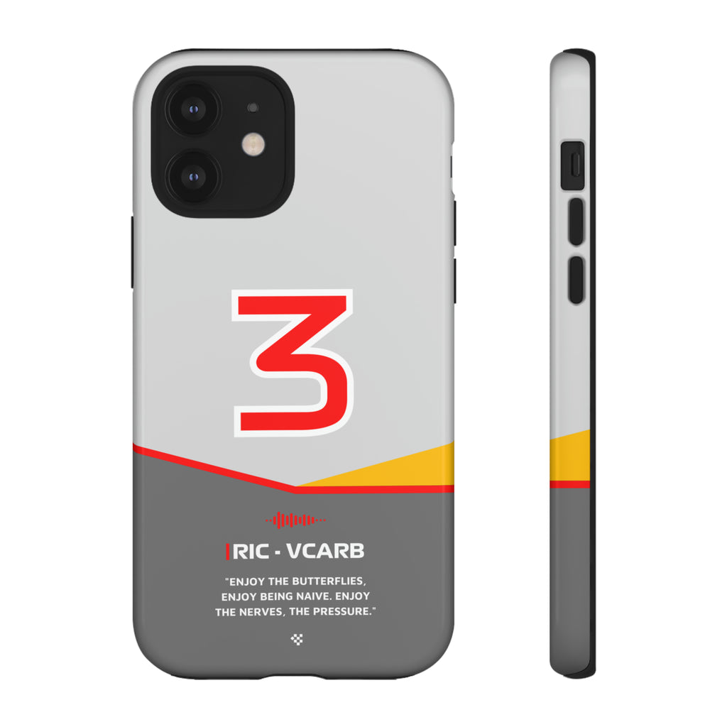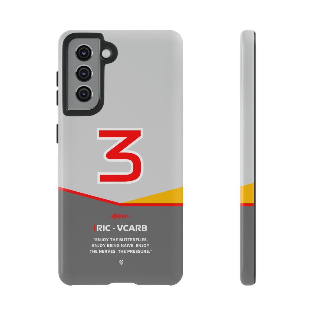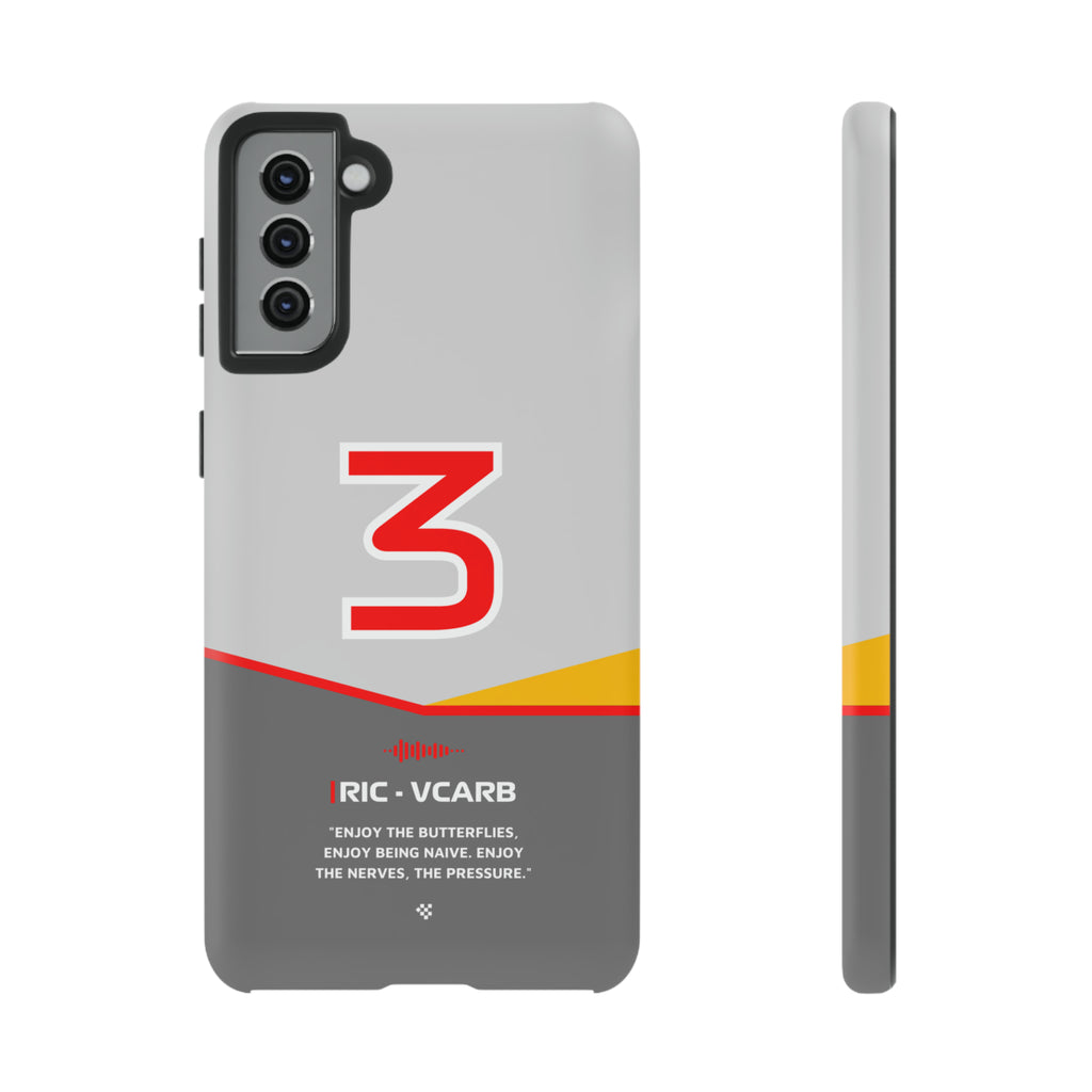Get ready to support Daniel in the 2024 Formula 1 season with the Daniel Ricciardo F1 2024 Helmet Phone Case. Designed for true Formula 1 fans, this case features his iconic #3 race car number alongside his striking 2024 helmet colors. But that's not all - it also proudly showcases an iconic quote that you can personalize. Whether you're cheering from the grandstands or watching from home, this case is a must-have for every Ricciardo fan.