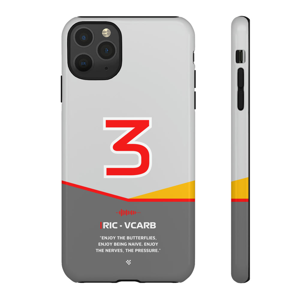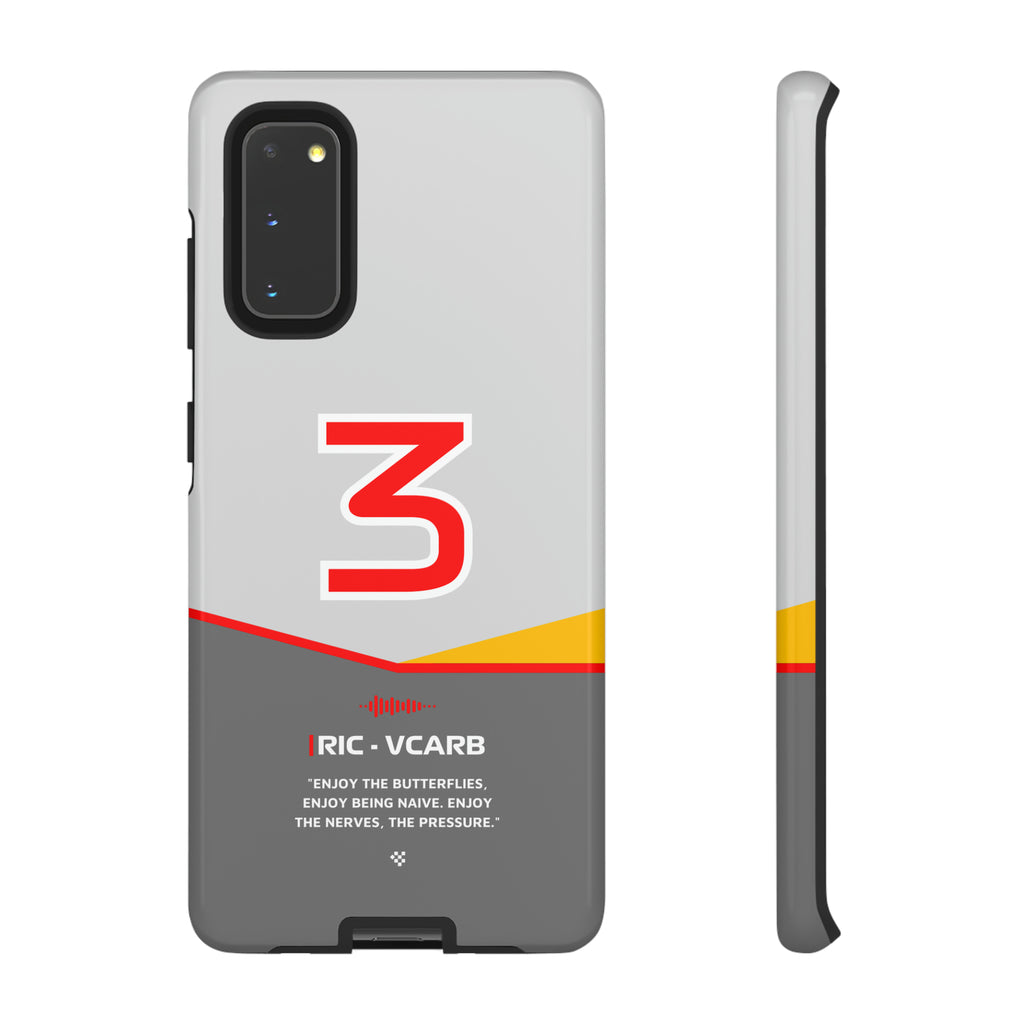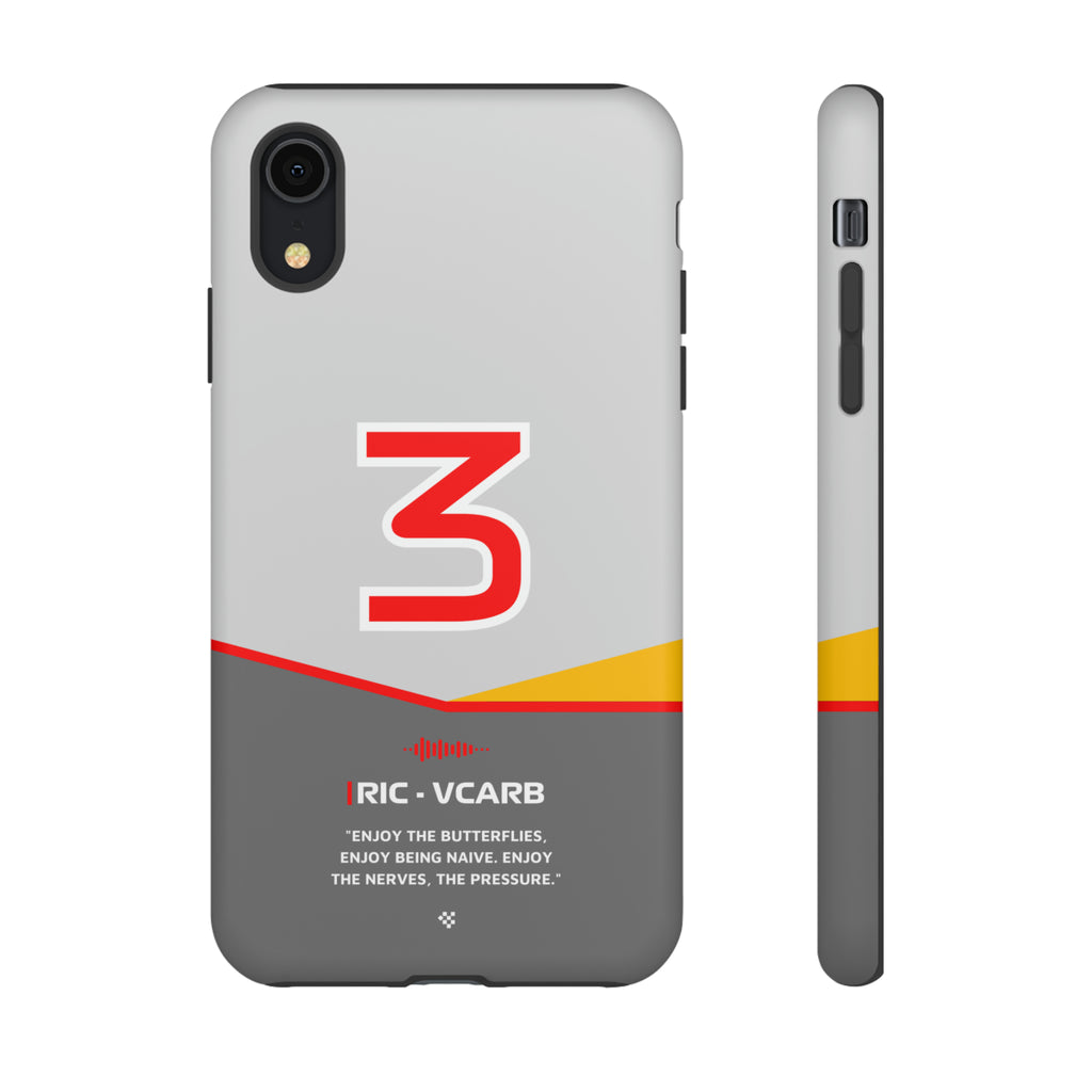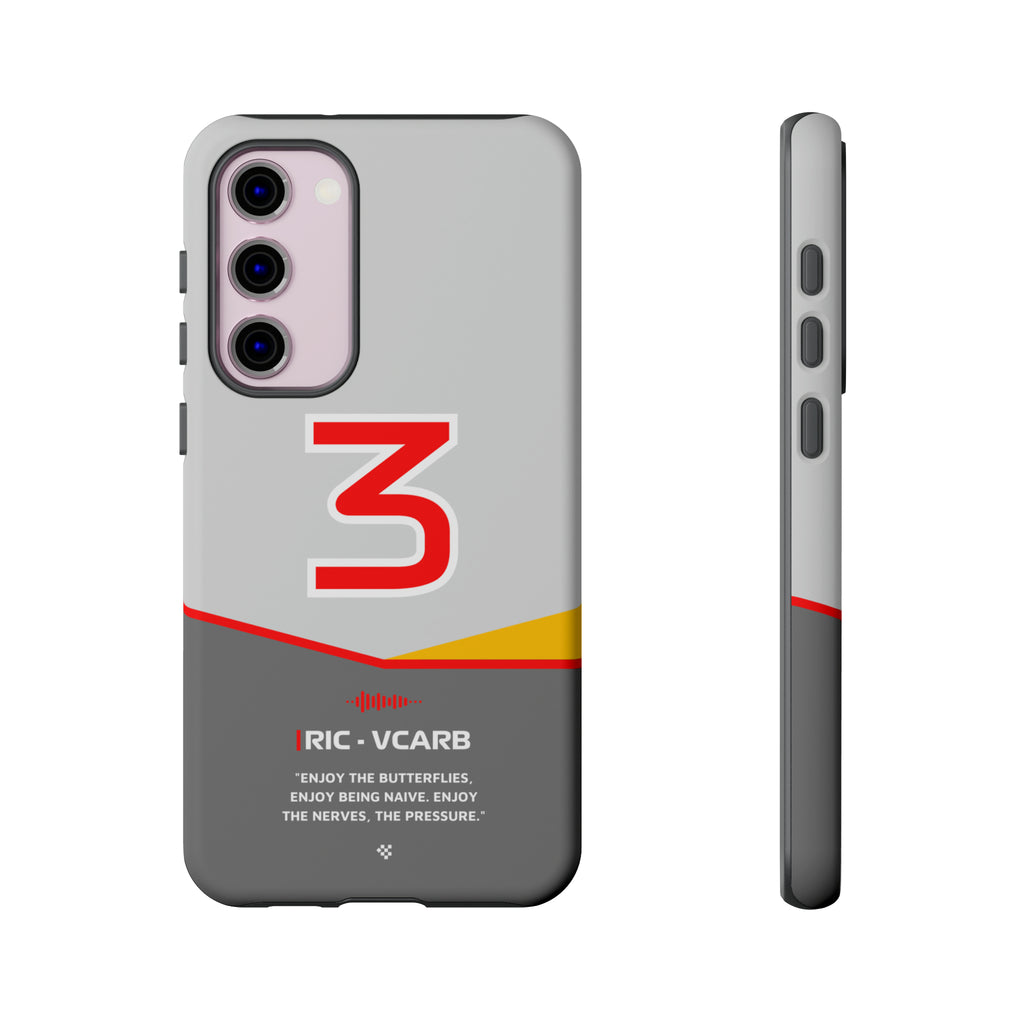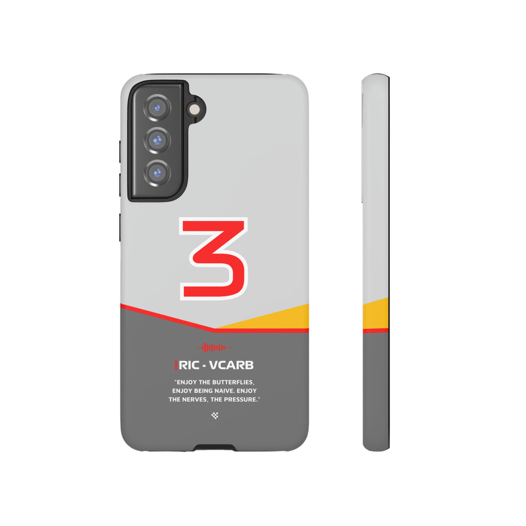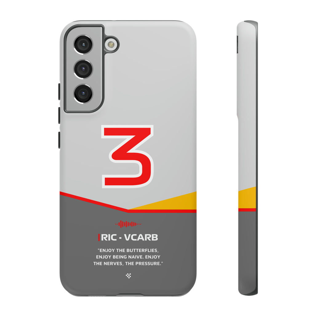Get ready to support Daniel in the 2024 Formula 1 season with the Daniel Ricciardo F1 2024 Helmet Phone Case. Designed for true Formula 1 fans, this case features his iconic #3 race car number alongside his striking 2024 helmet colors. But that's not all - it also proudly showcases an iconic quote that you can personalize. Whether you're cheering from the grandstands or watching from home, this case is a must-have for every Ricciardo fan.