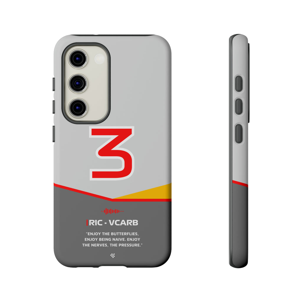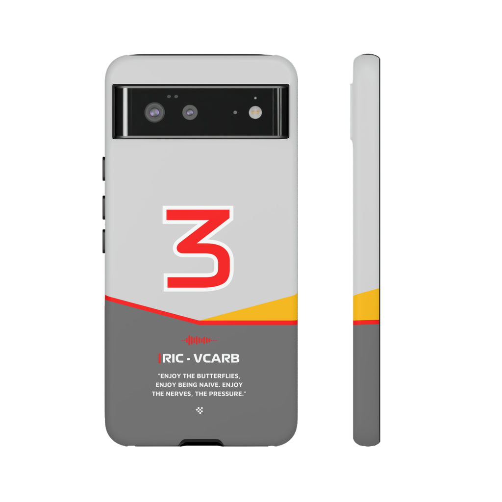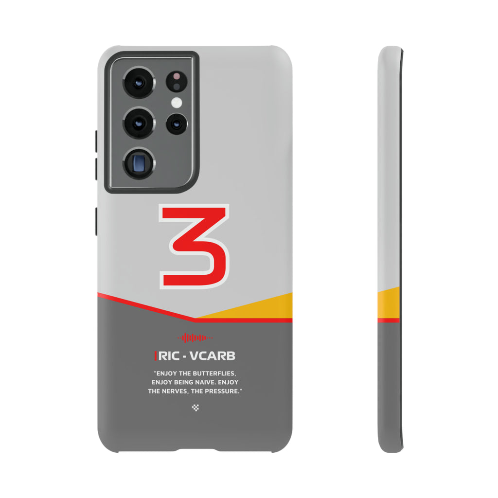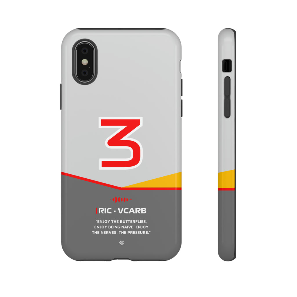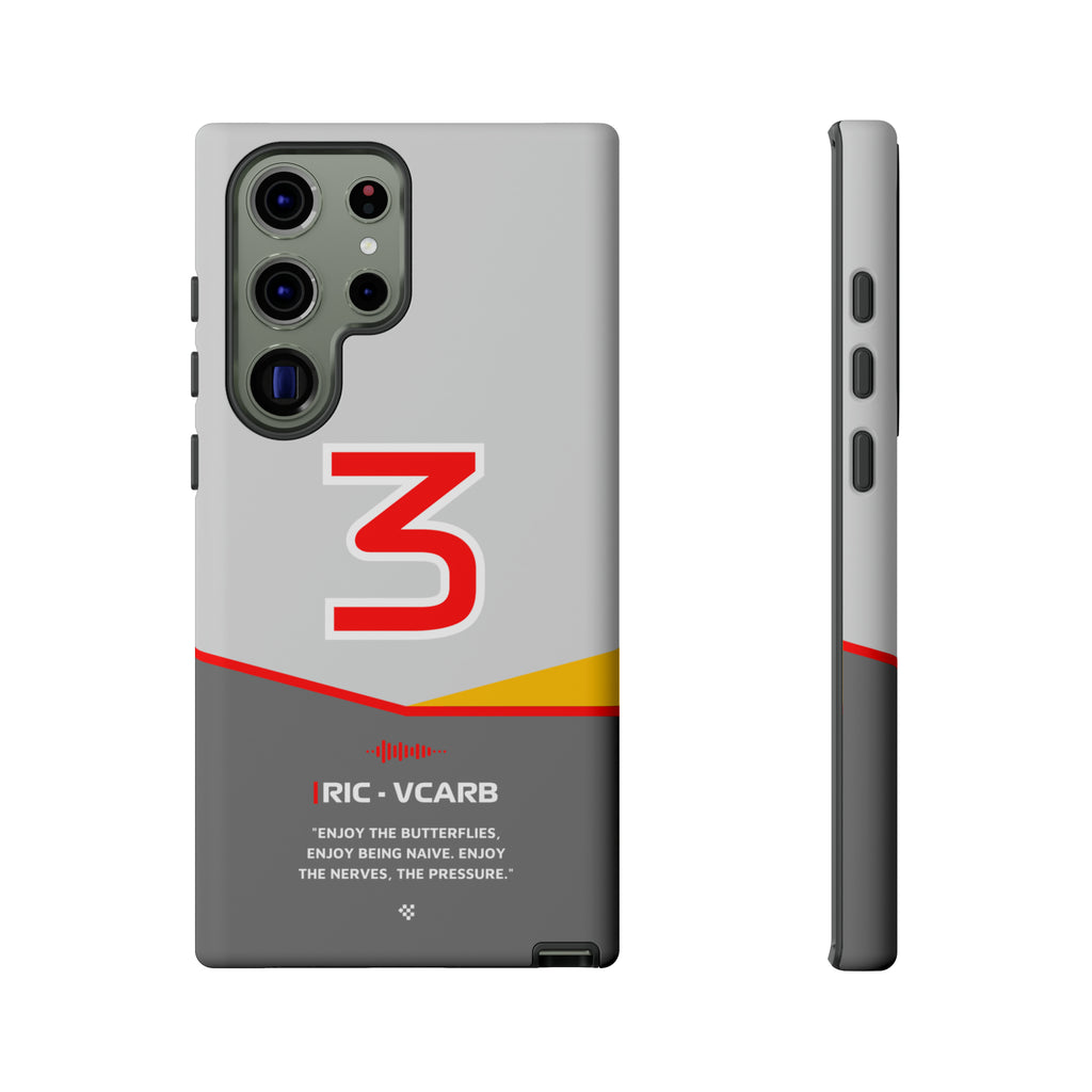 Get ready to support Daniel in the 2024 Formula 1 season with the Daniel Ricciardo F1 2024 Helmet Phone Case. Designed for true Formula 1 fans, this case features his iconic #3 race car number alongside his striking 2024 helmet colors. But that's not all - it also proudly showcases an iconic quote that you can personalize. Whether you're cheering from the grandstands or watching from home, this case is a must-have for every Ricciardo fan.