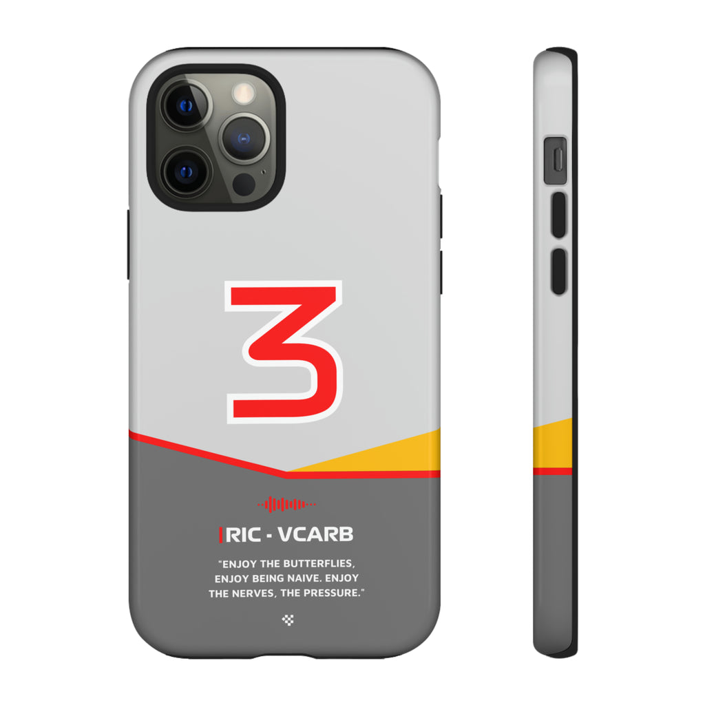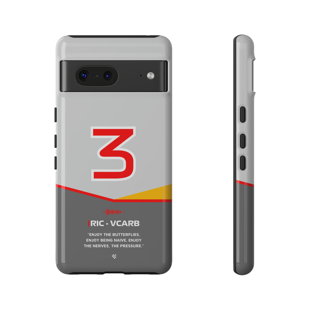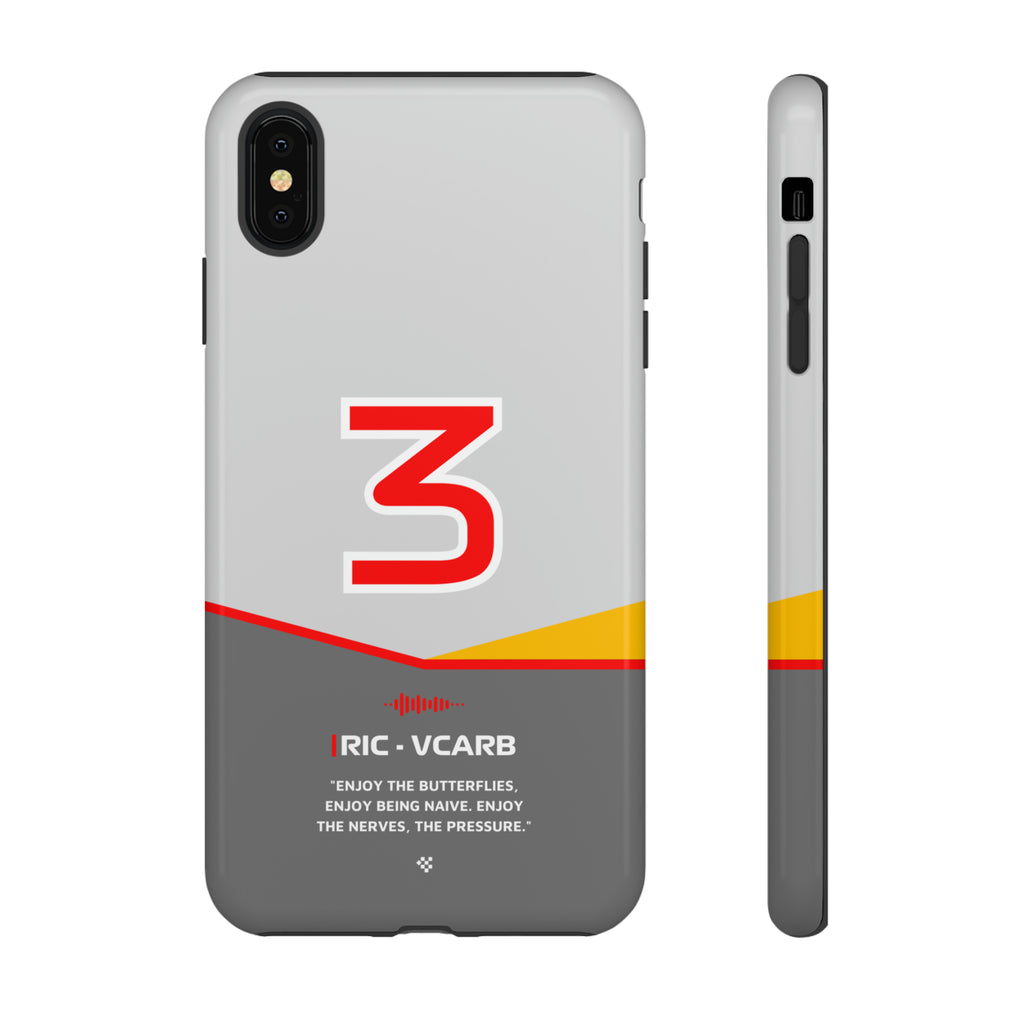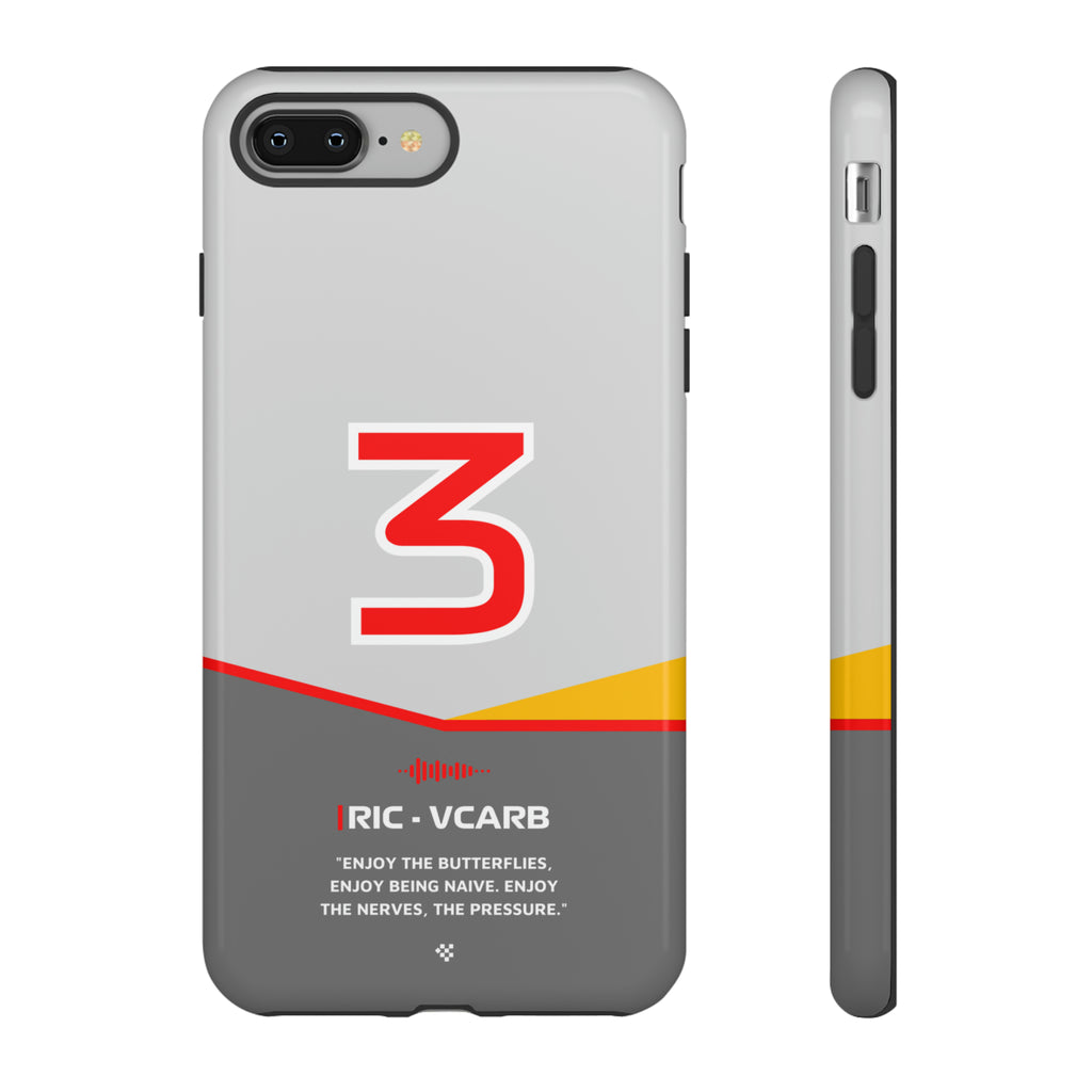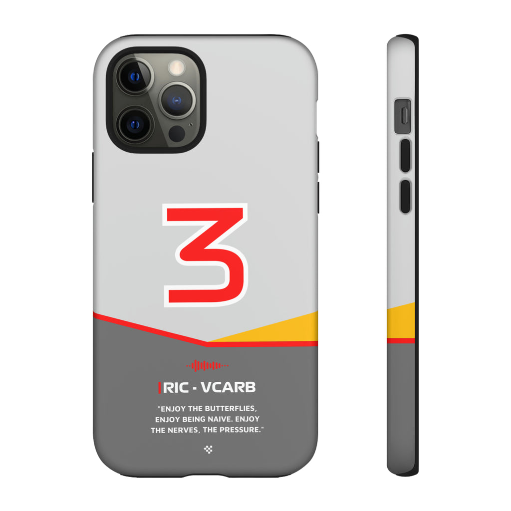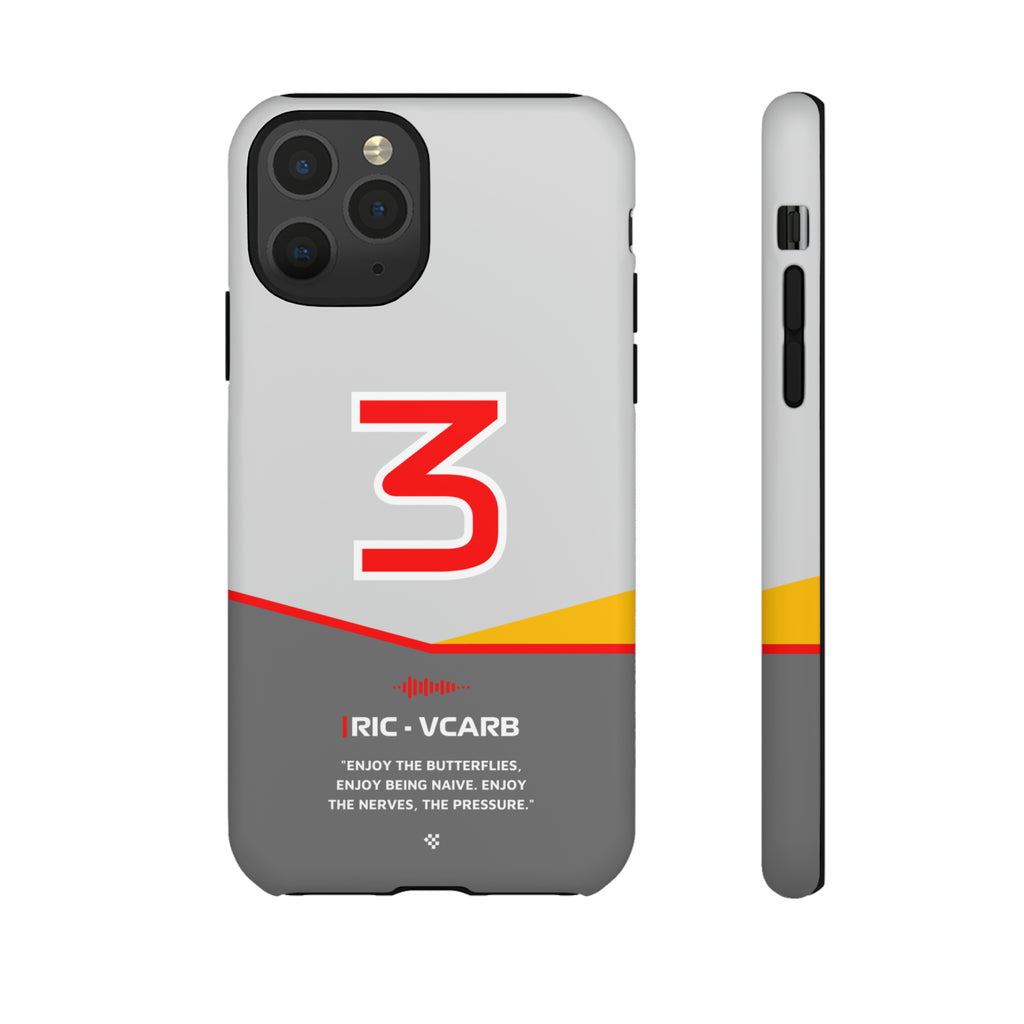 Get ready to support Daniel in the 2024 Formula 1 season with the Daniel Ricciardo F1 2024 Helmet Phone Case. Designed for true Formula 1 fans, this case features his iconic #3 race car number alongside his striking 2024 helmet colors. But that's not all - it also proudly showcases an iconic quote that you can personalize. Whether you're cheering from the grandstands or watching from home, this case is a must-have for every Ricciardo fan.
