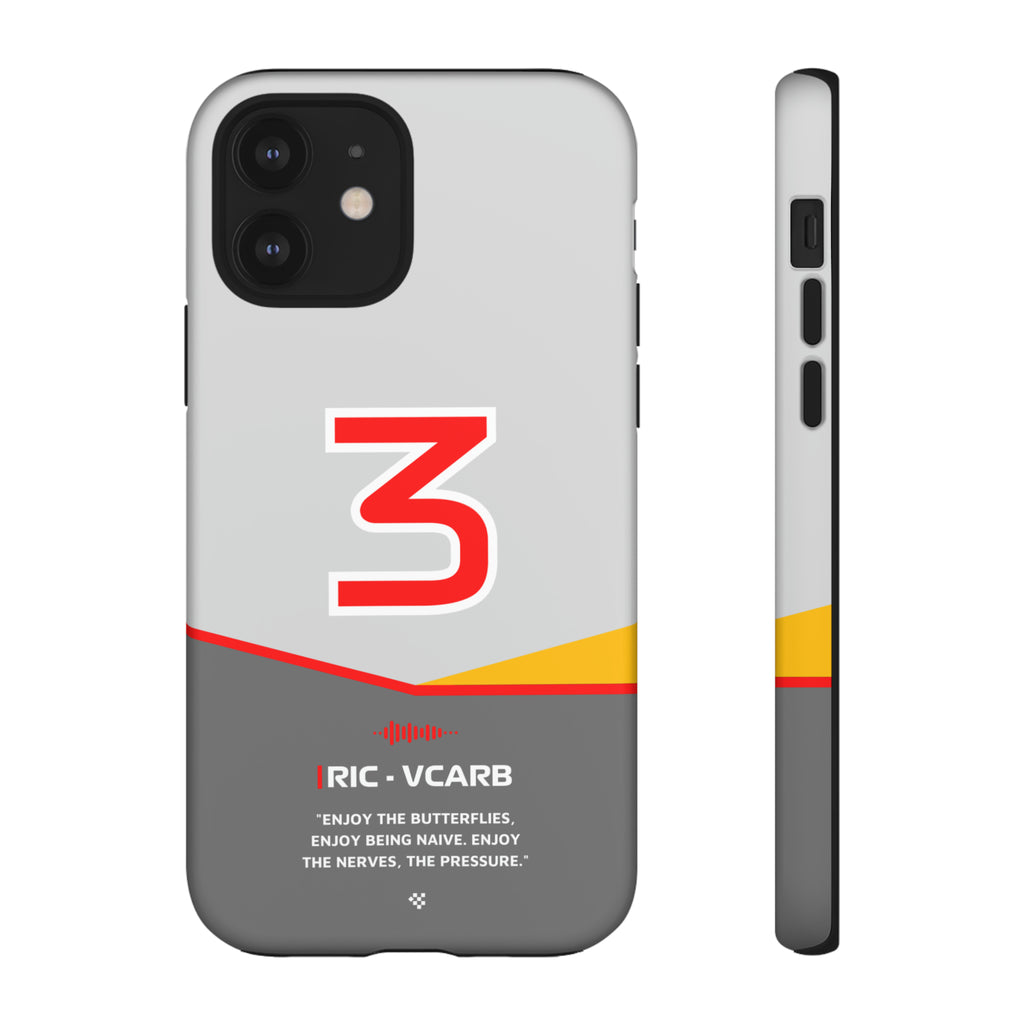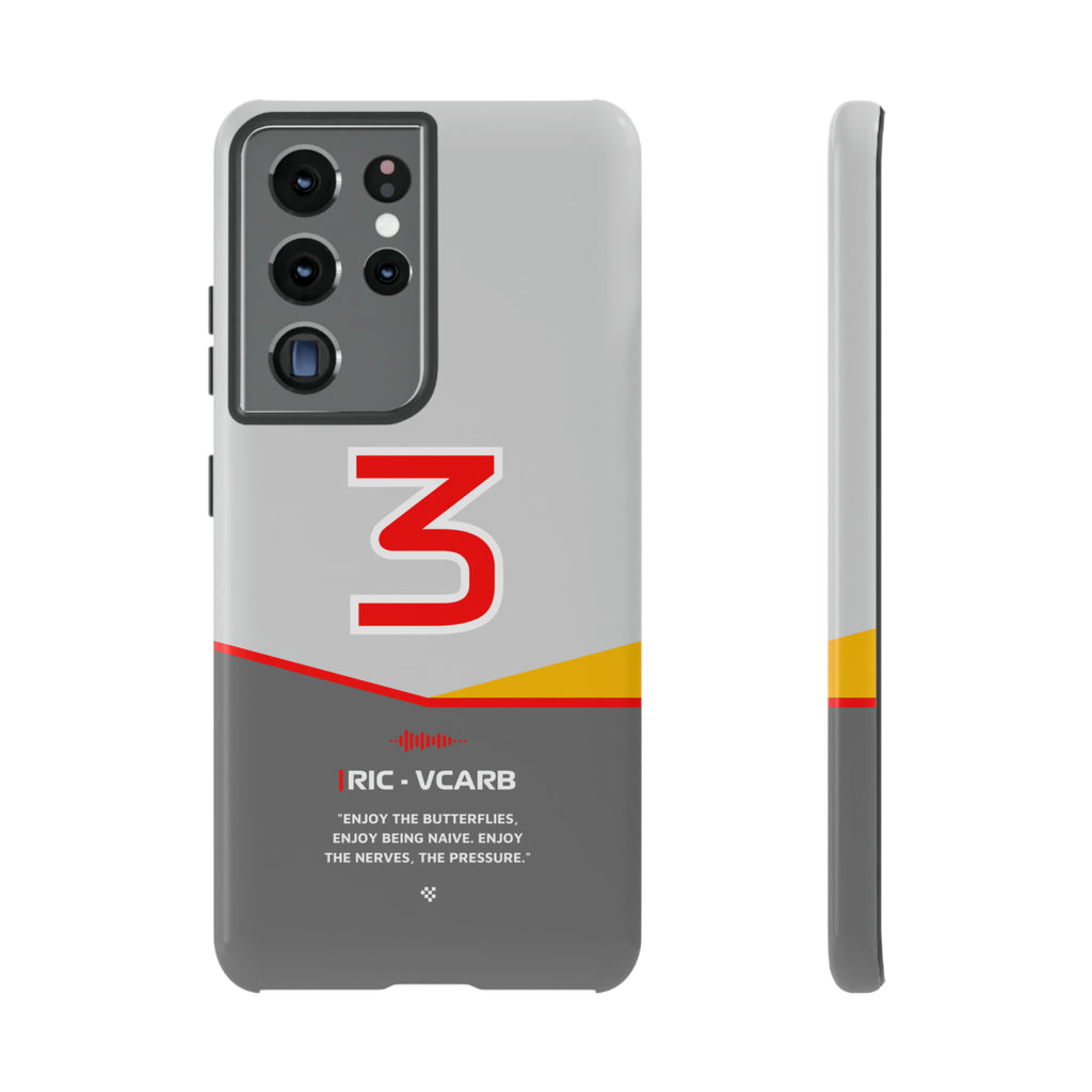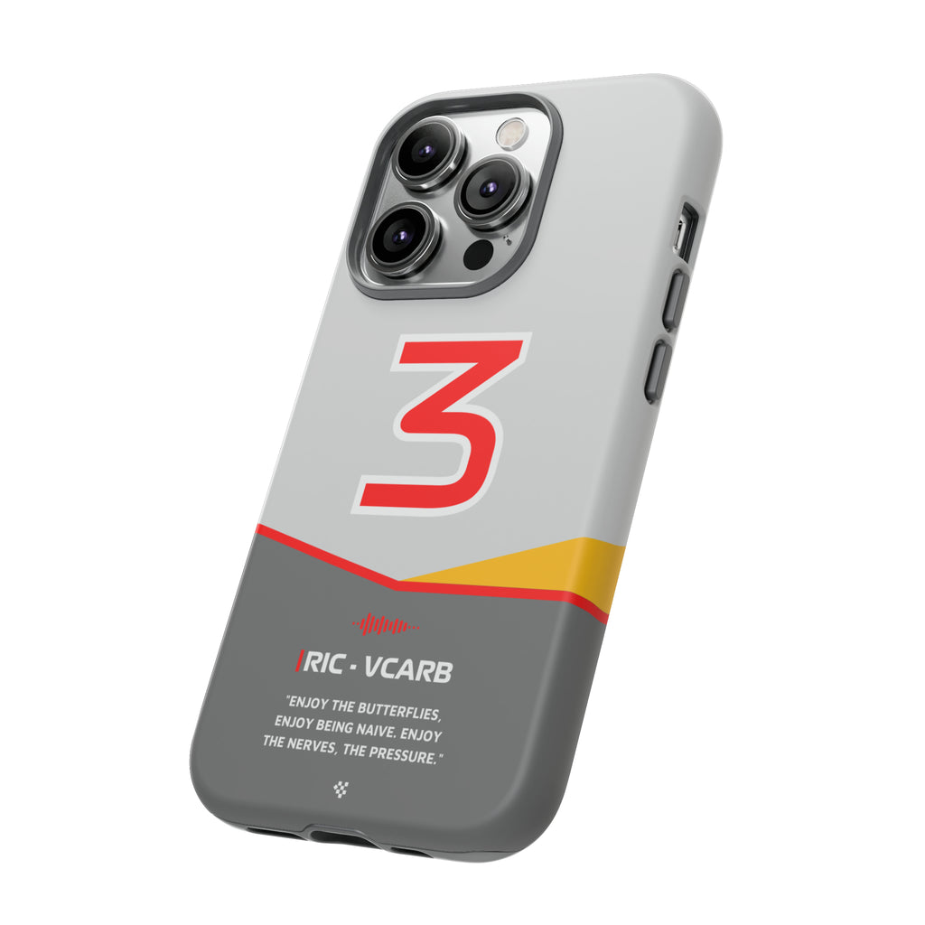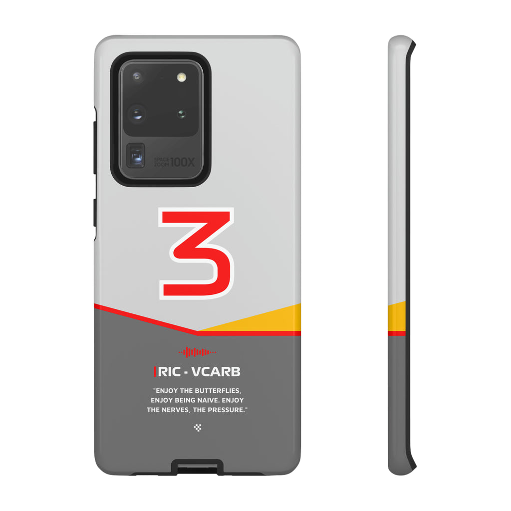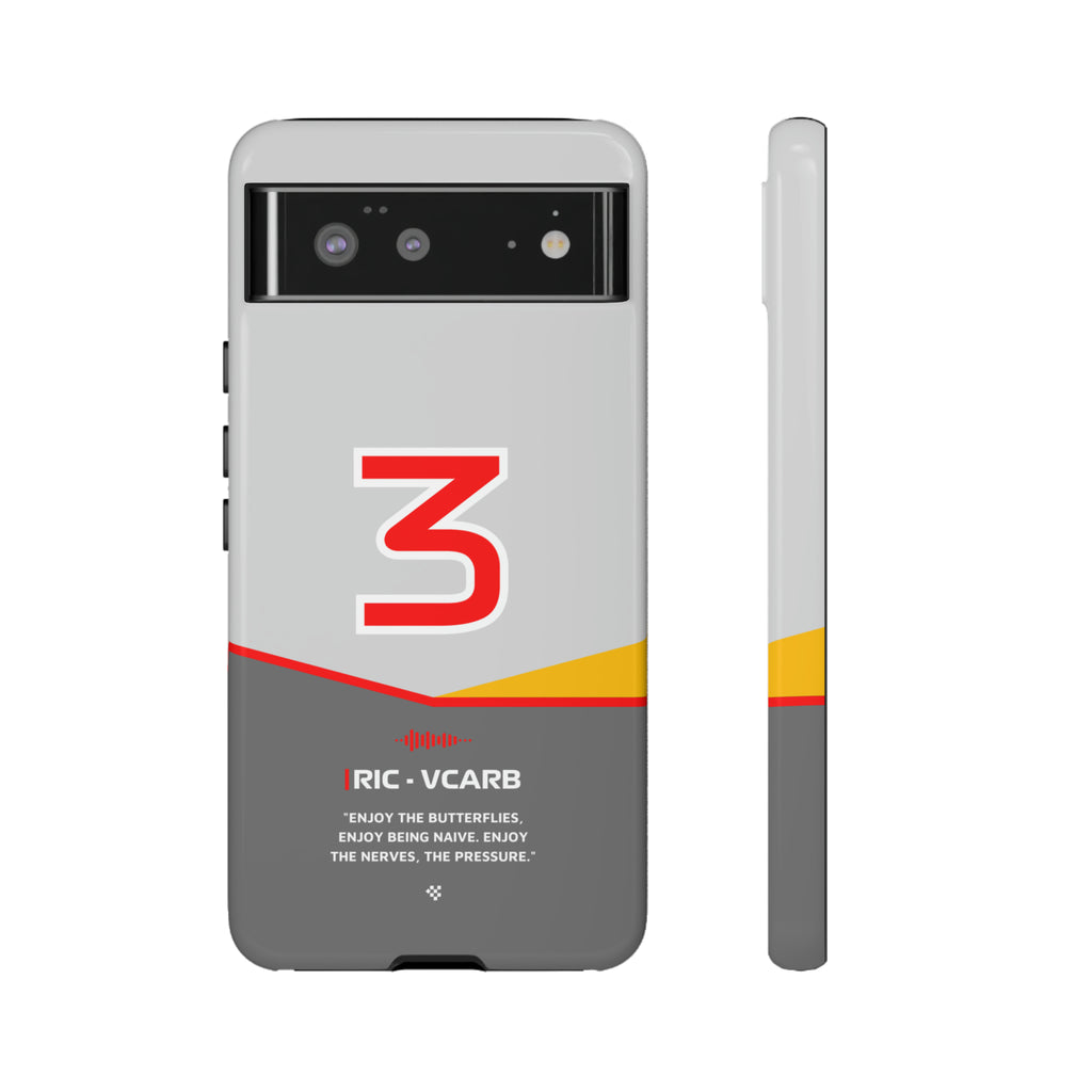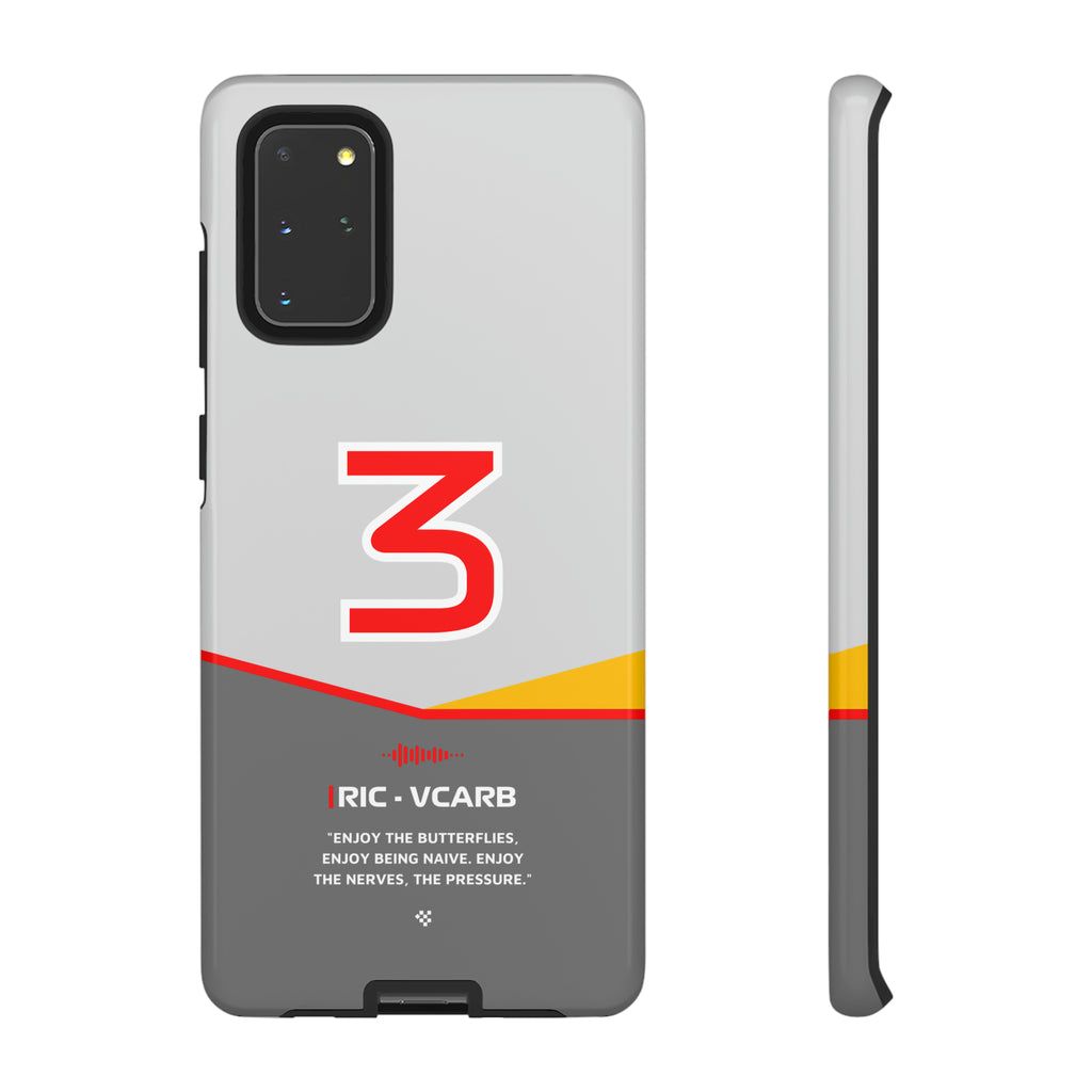 Get ready to support Daniel in the 2024 Formula 1 season with the Daniel Ricciardo F1 2024 Helmet Phone Case. Designed for true Formula 1 fans, this case features his iconic #3 race car number alongside his striking 2024 helmet colors. But that's not all - it also proudly showcases an iconic quote that you can personalize. Whether you're cheering from the grandstands or watching from home, this case is a must-have for every Ricciardo fan.
