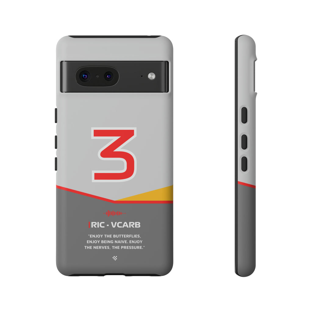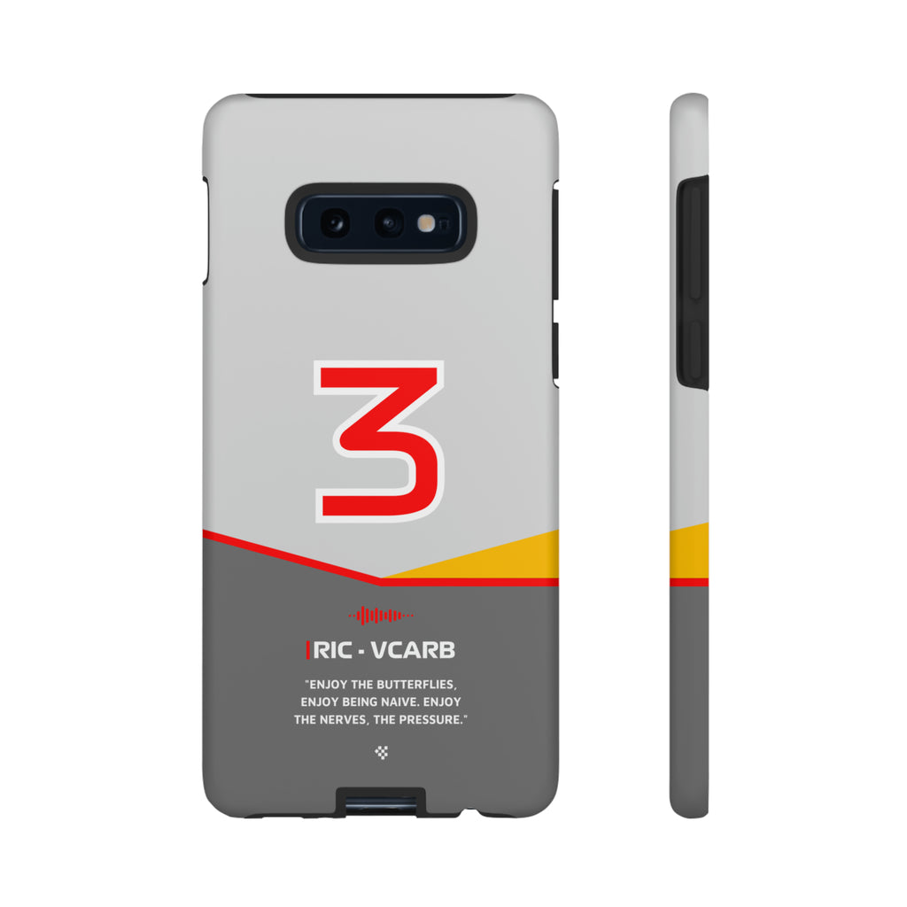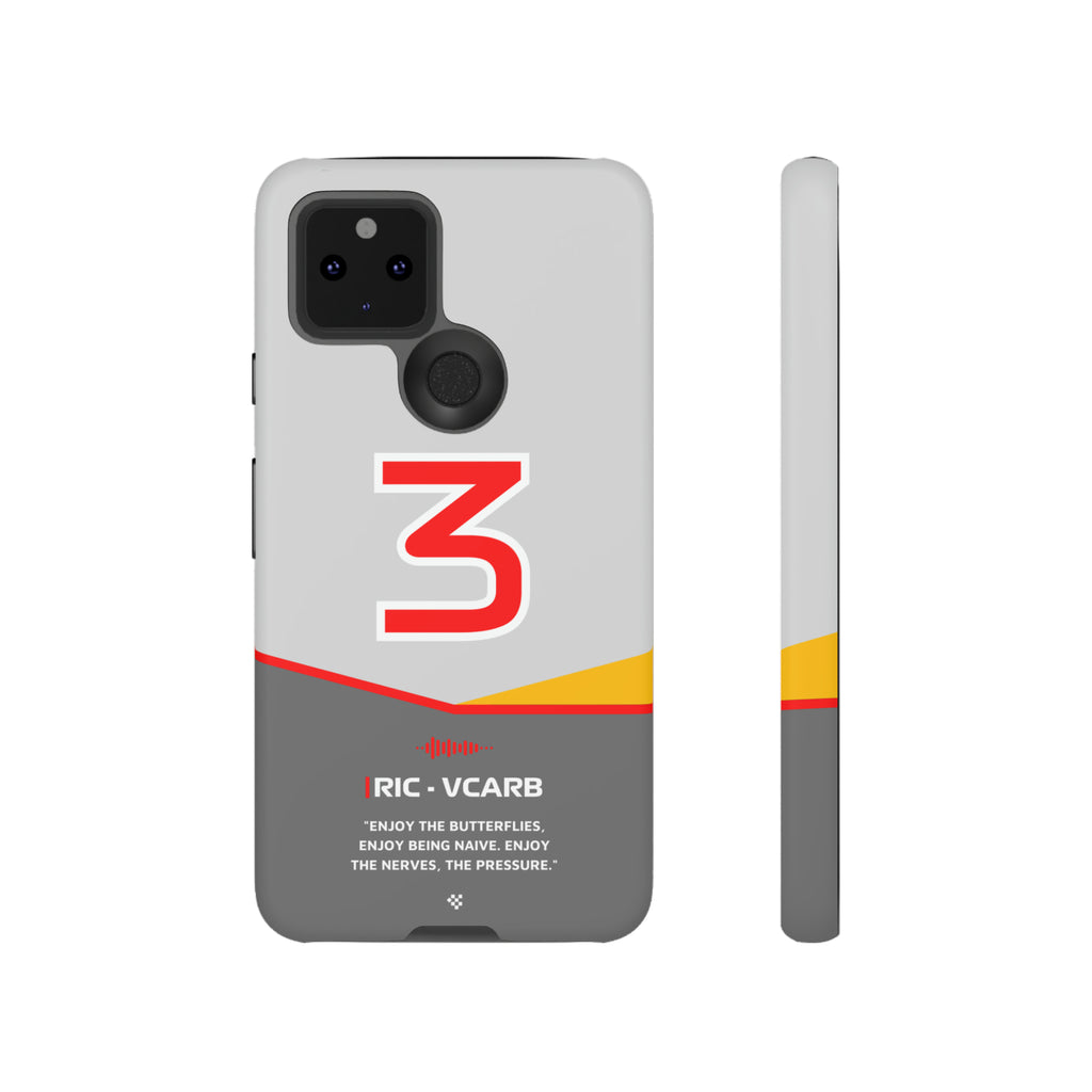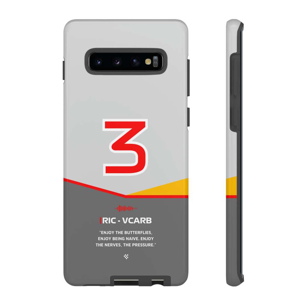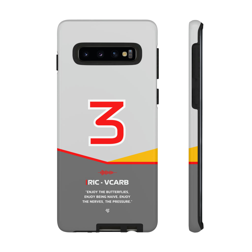 Get ready to support Daniel in the 2024 Formula 1 season with the Daniel Ricciardo F1 2024 Helmet Phone Case. Designed for true Formula 1 fans, this case features his iconic #3 race car number alongside his striking 2024 helmet colors. But that's not all - it also proudly showcases an iconic quote that you can personalize. Whether you're cheering from the grandstands or watching from home, this case is a must-have for every Ricciardo fan.