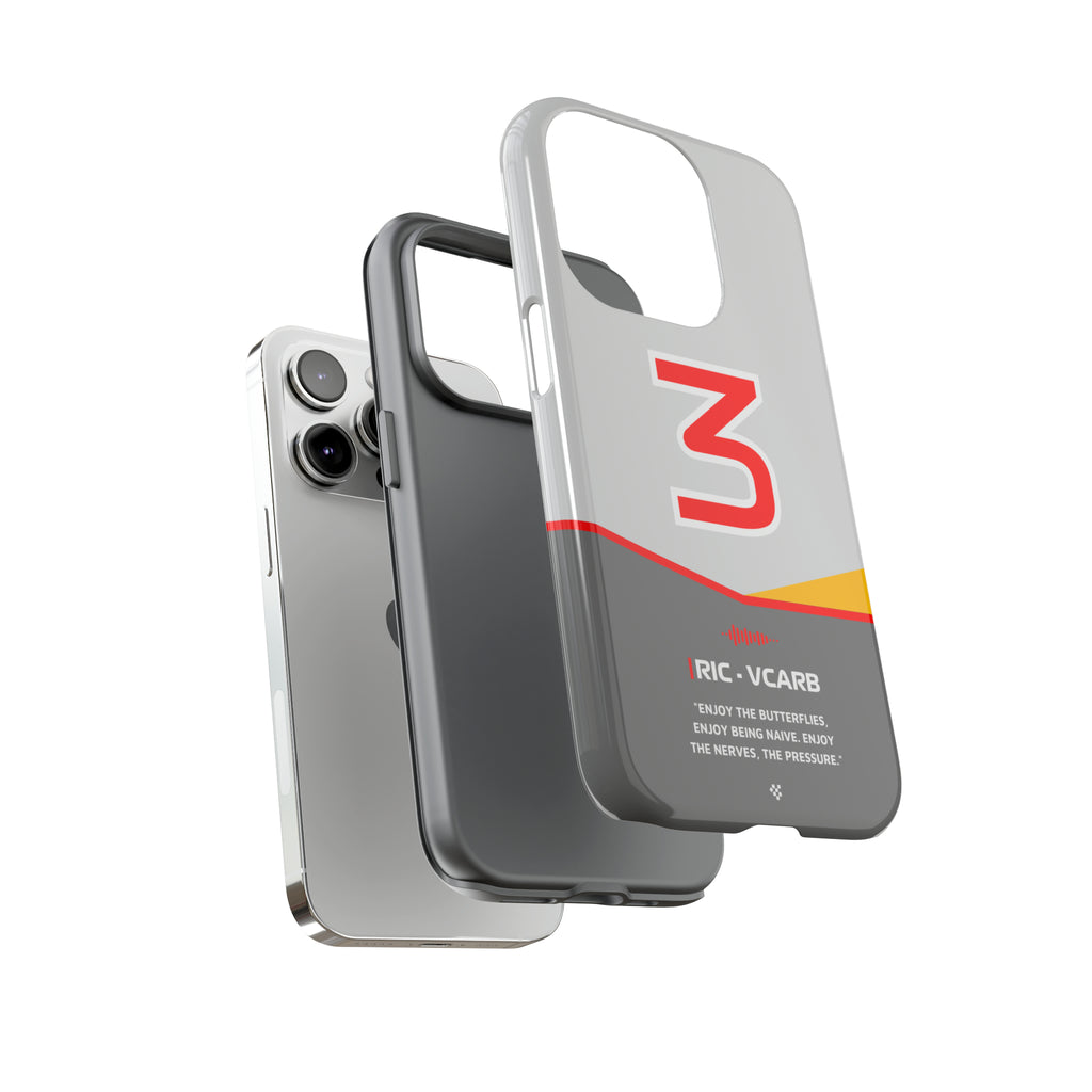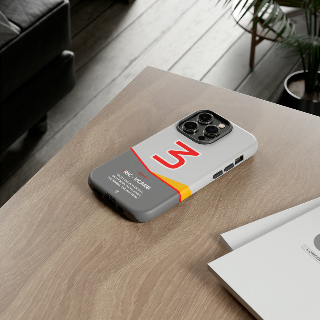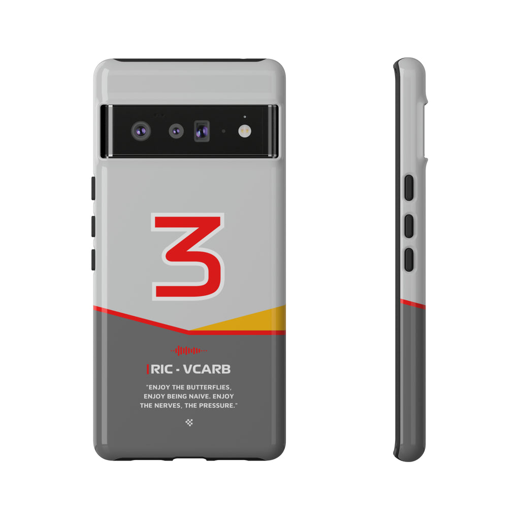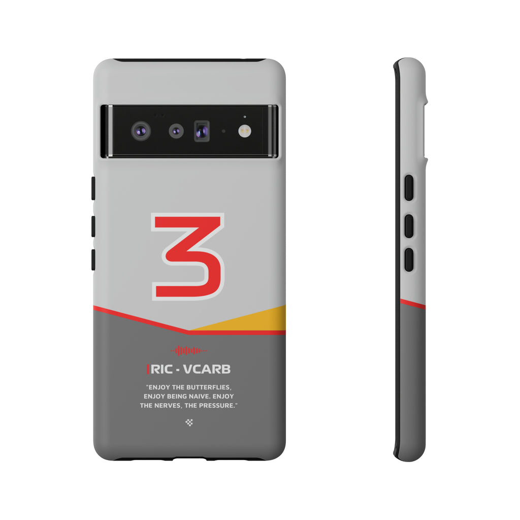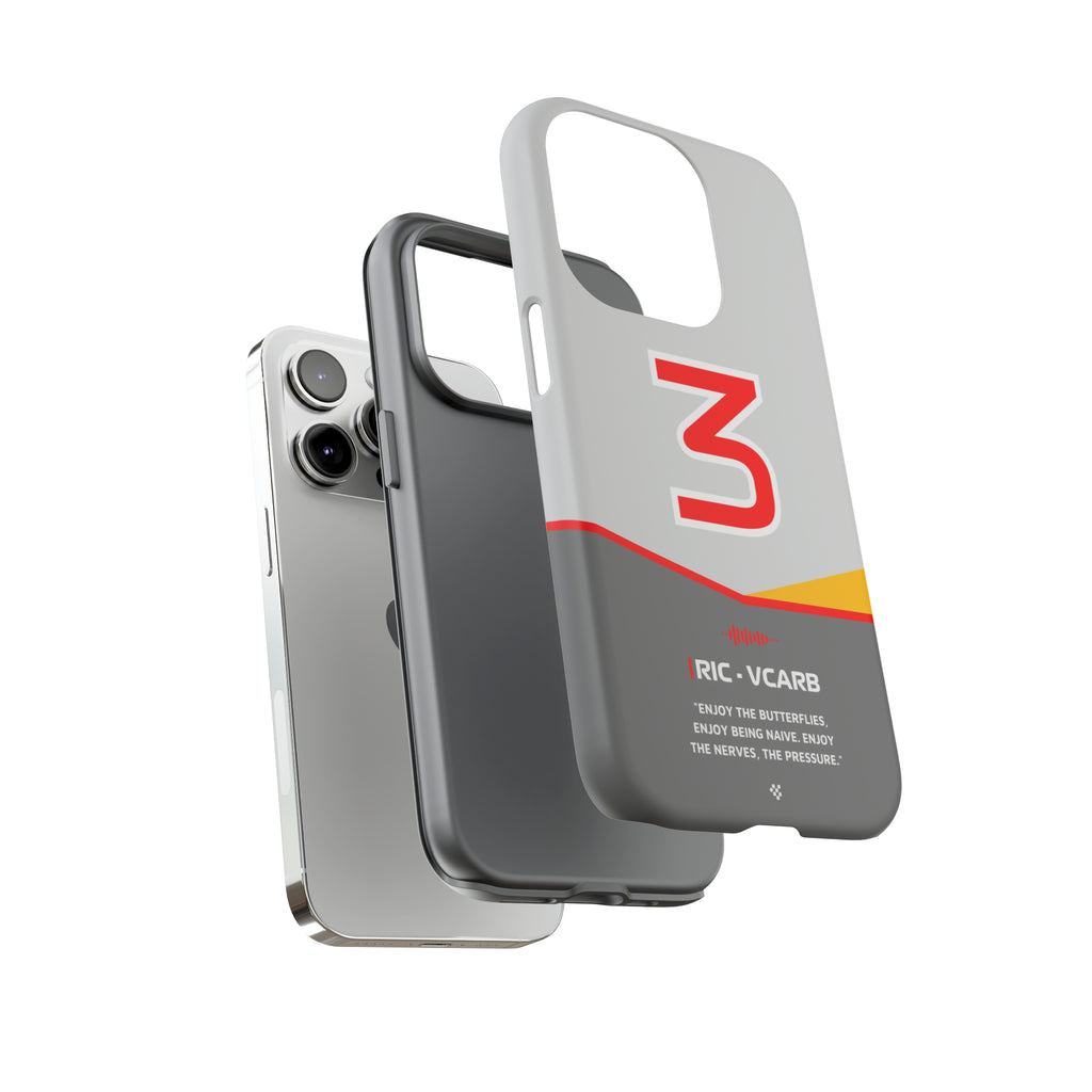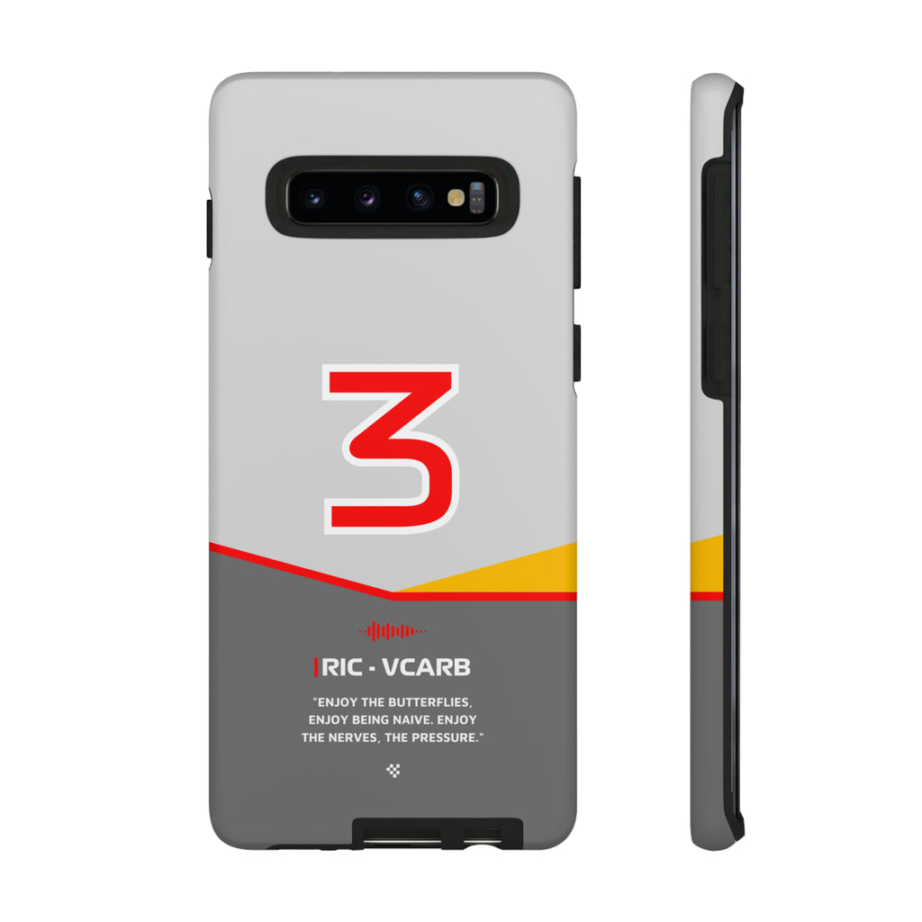 Get ready to support Daniel in the 2024 Formula 1 season with the Daniel Ricciardo F1 2024 Helmet Phone Case. Designed for true Formula 1 fans, this case features his iconic #3 race car number alongside his striking 2024 helmet colors. But that's not all - it also proudly showcases an iconic quote that you can personalize. Whether you're cheering from the grandstands or watching from home, this case is a must-have for every Ricciardo fan.