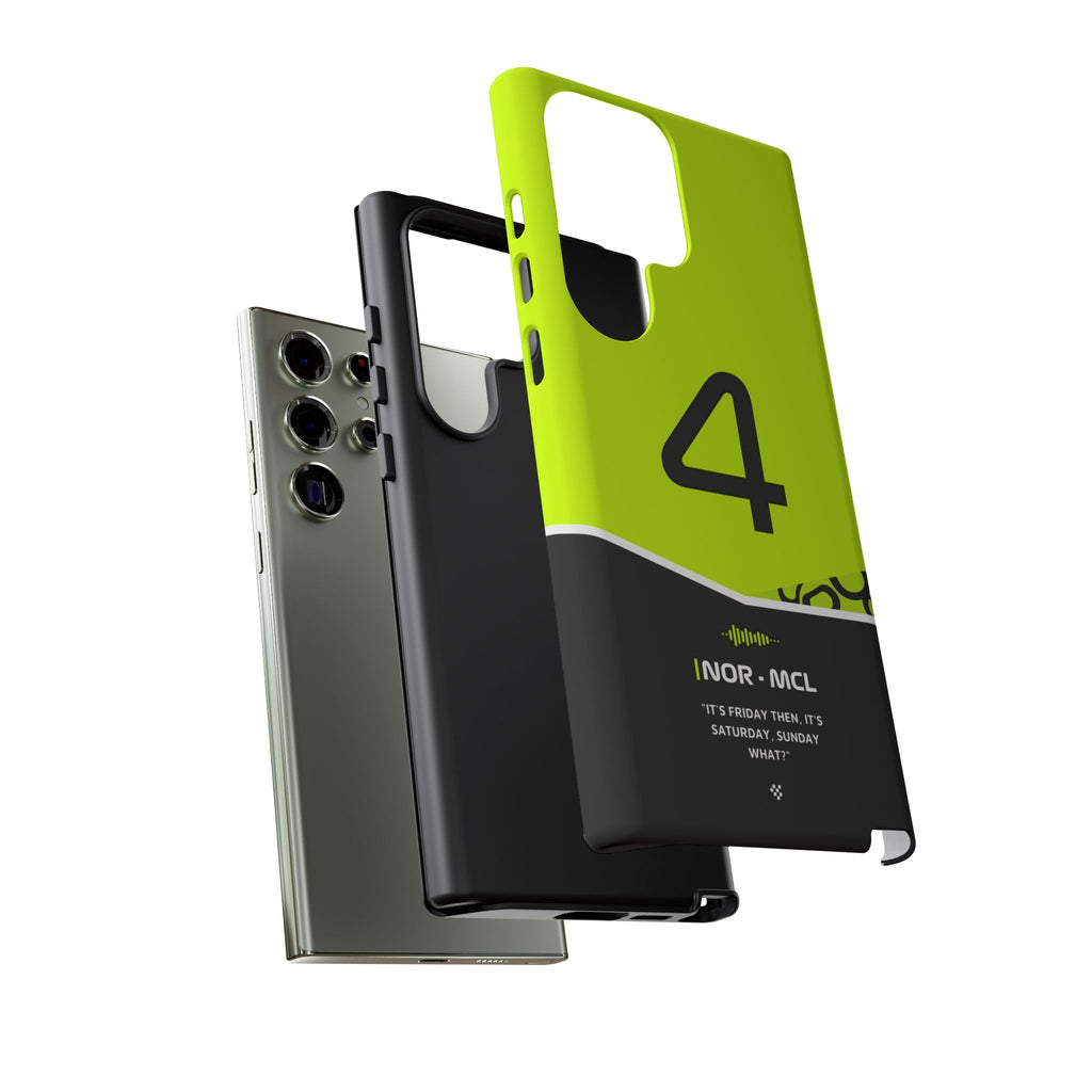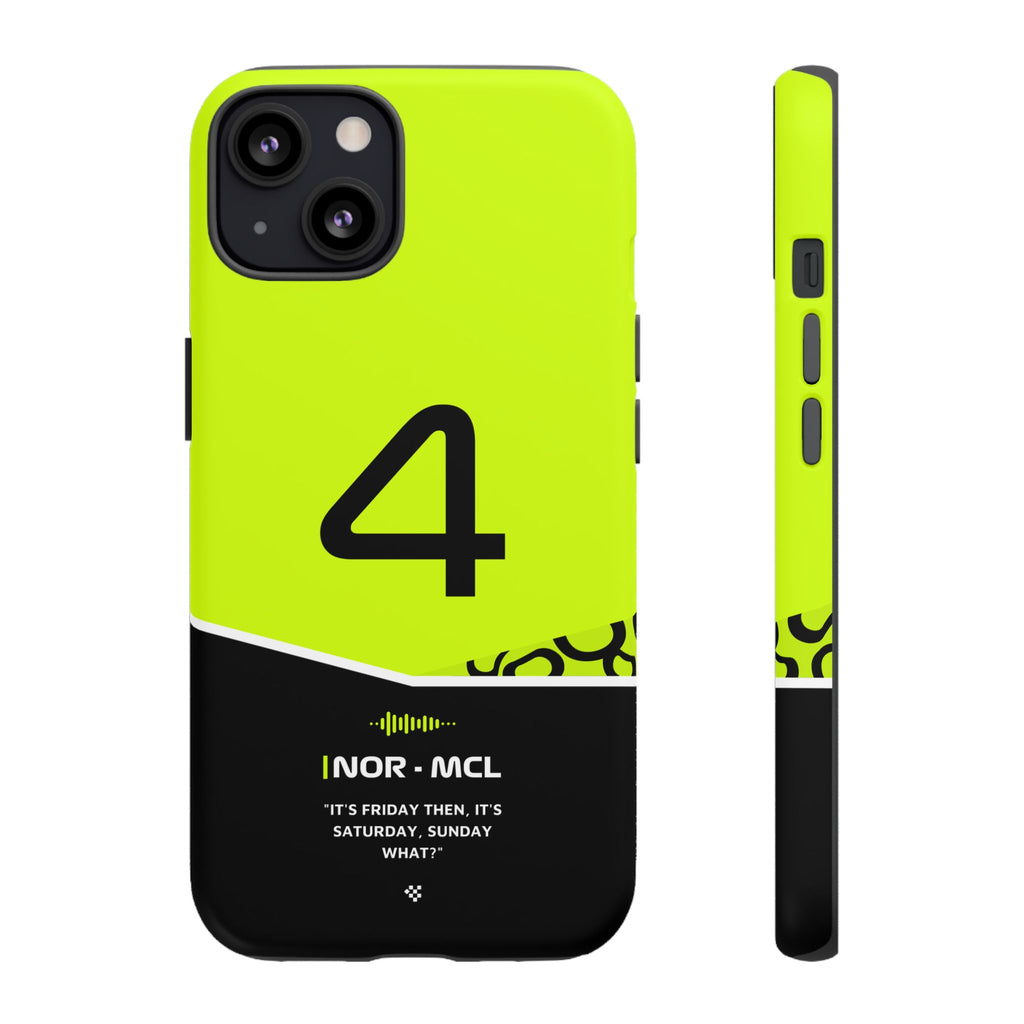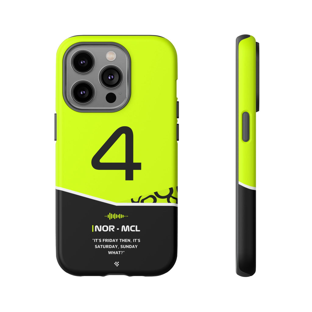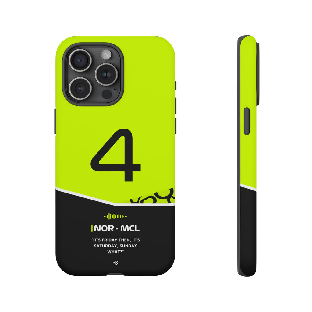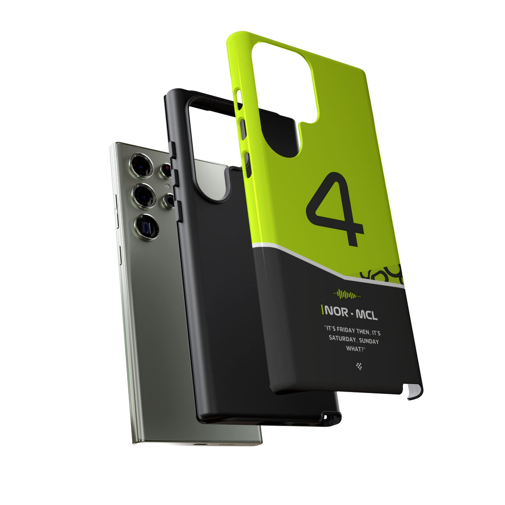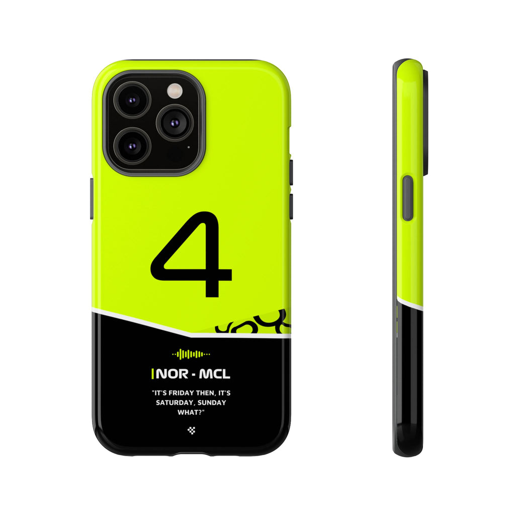 Get ready to support Lando in the 2024 Formula 1 season with the Lando Norris F1 2024 Helmet Phone Case. Designed for true Formula 1 fans, this case features his iconic #4 race car number alongside his striking 2024 helmet colors. But that's not all - it also proudly showcases an iconic quote that you can personalize. Whether you're cheering from the grandstands or watching from home, this case is a must-have for every Norris fan.