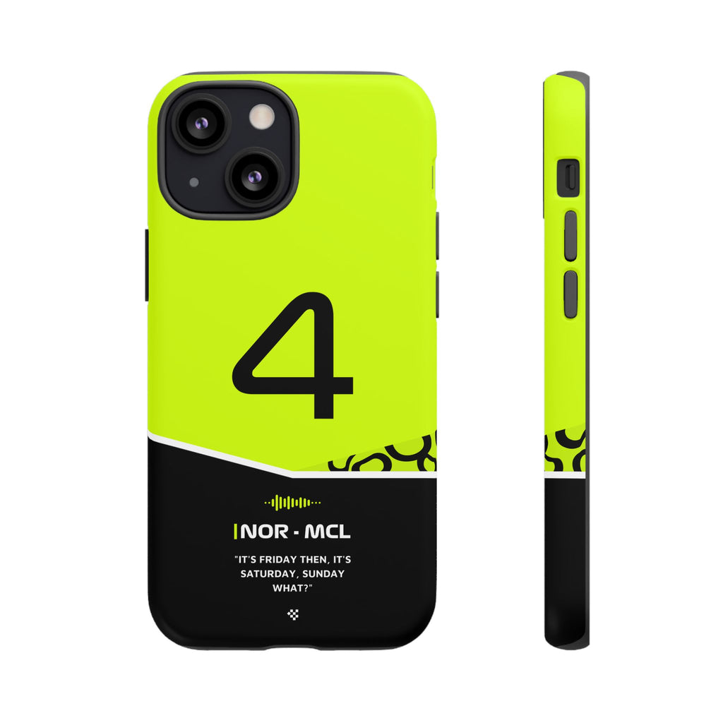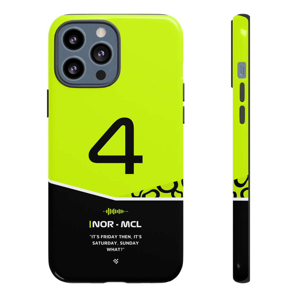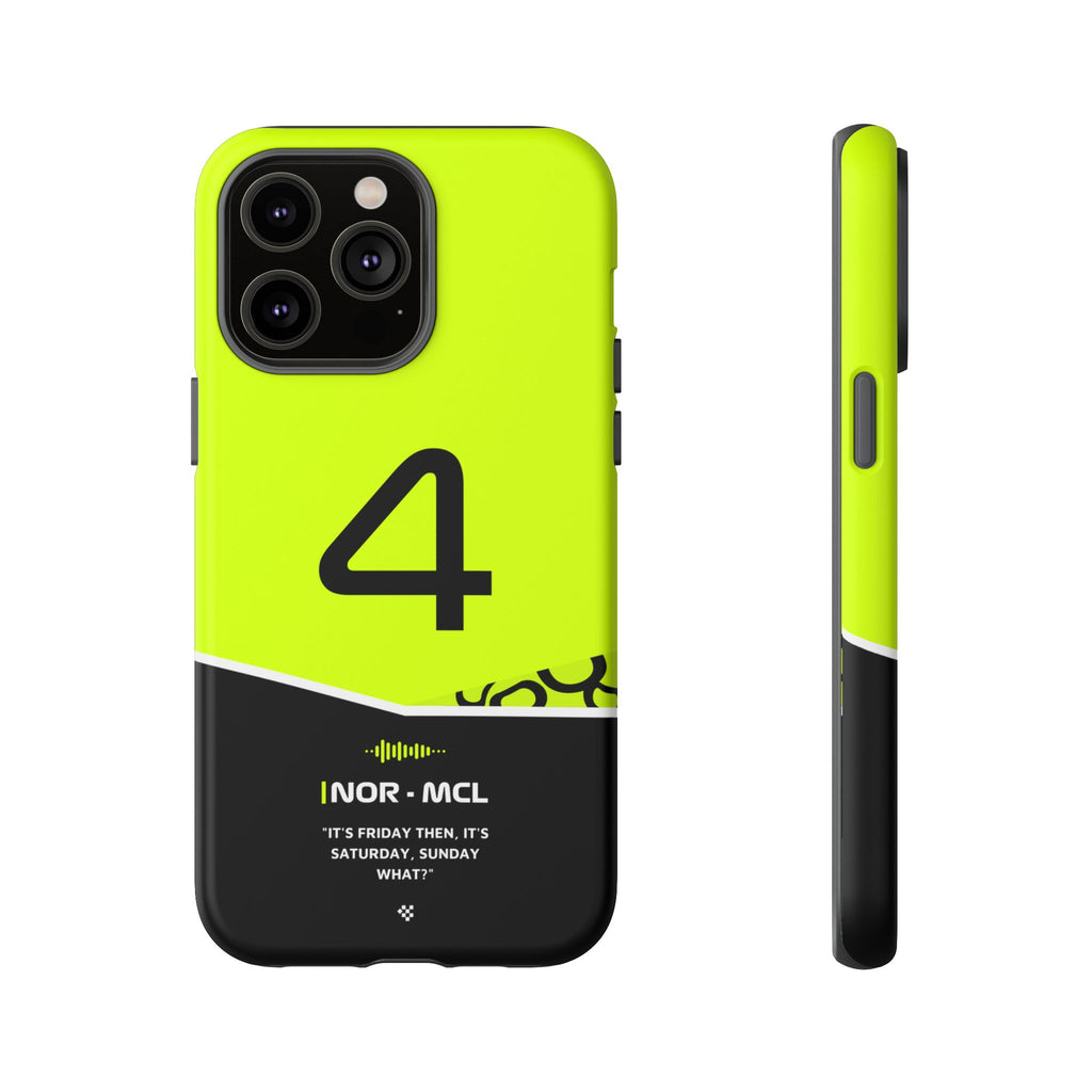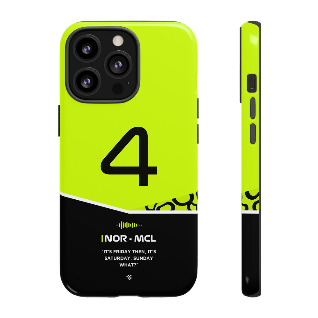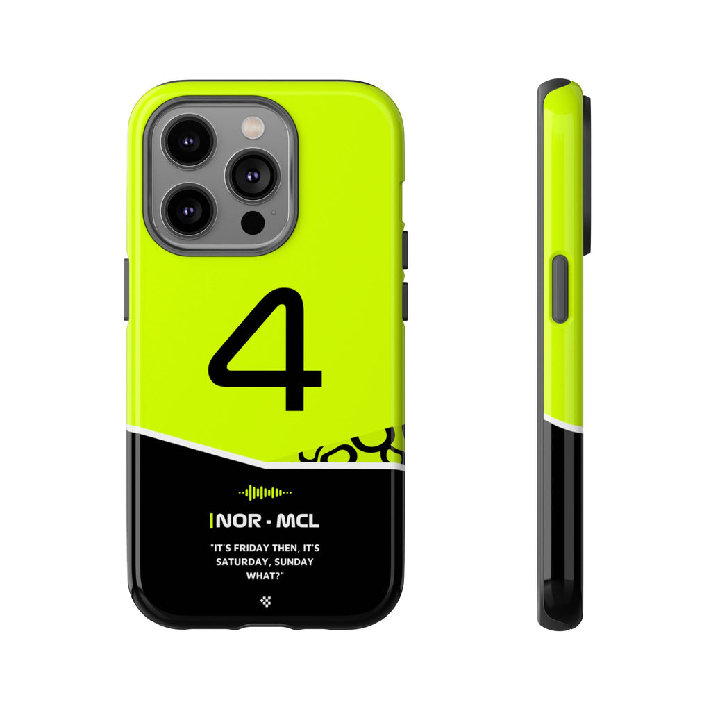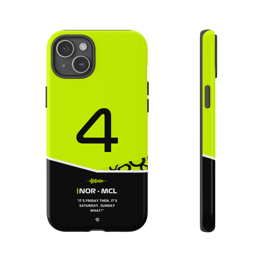 Get ready to support Lando in the 2024 Formula 1 season with the Lando Norris F1 2024 Helmet Phone Case. Designed for true Formula 1 fans, this case features his iconic #4 race car number alongside his striking 2024 helmet colors. But that's not all - it also proudly showcases an iconic quote that you can personalize. Whether you're cheering from the grandstands or watching from home, this case is a must-have for every Norris fan.