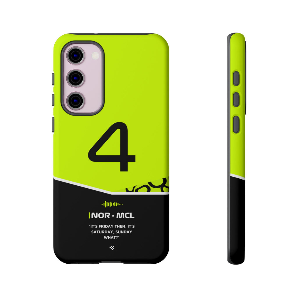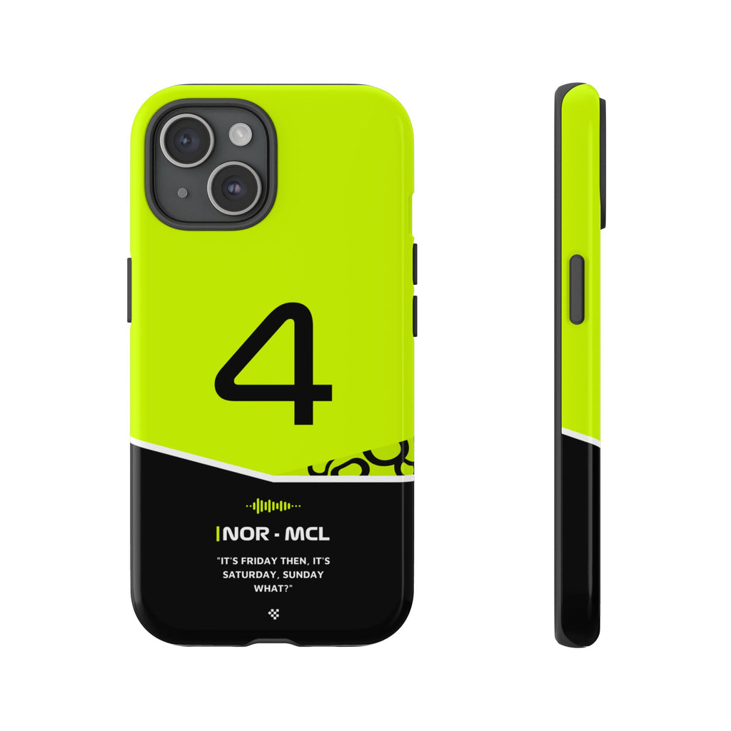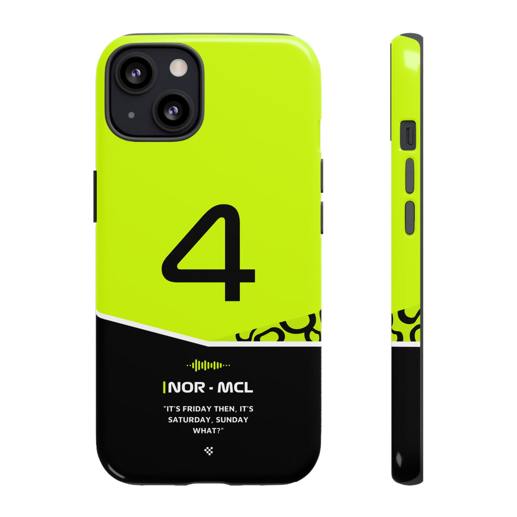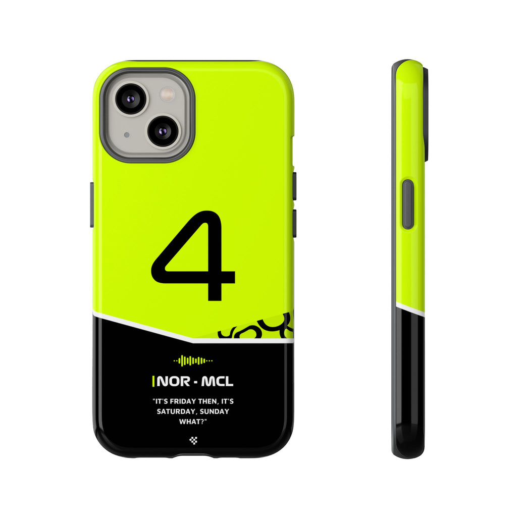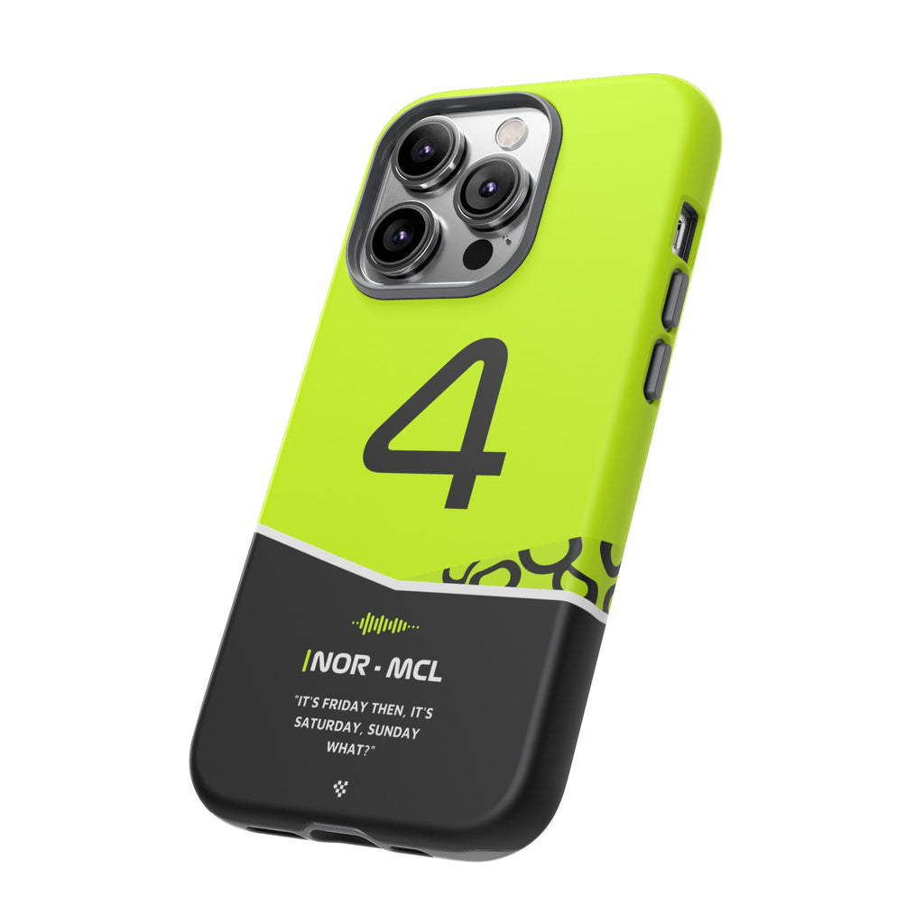 Get ready to support Lando in the 2024 Formula 1 season with the Lando Norris F1 2024 Helmet Phone Case. Designed for true Formula 1 fans, this case features his iconic #4 race car number alongside his striking 2024 helmet colors. But that's not all - it also proudly showcases an iconic quote that you can personalize. Whether you're cheering from the grandstands or watching from home, this case is a must-have for every Norris fan.