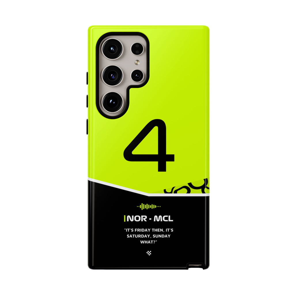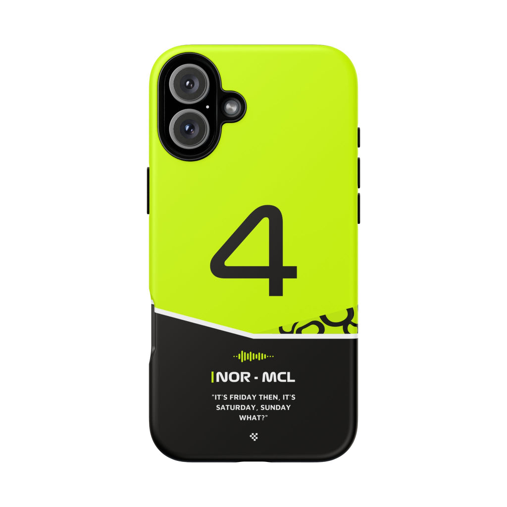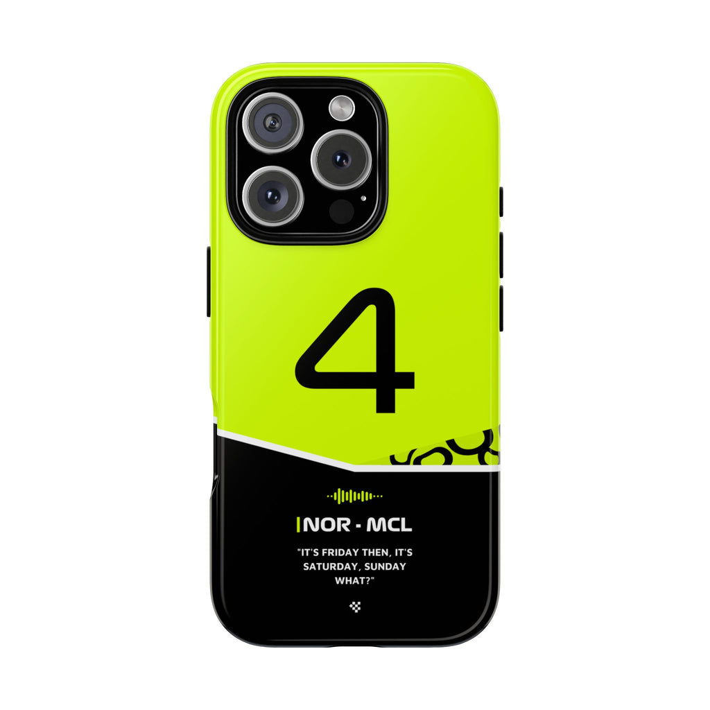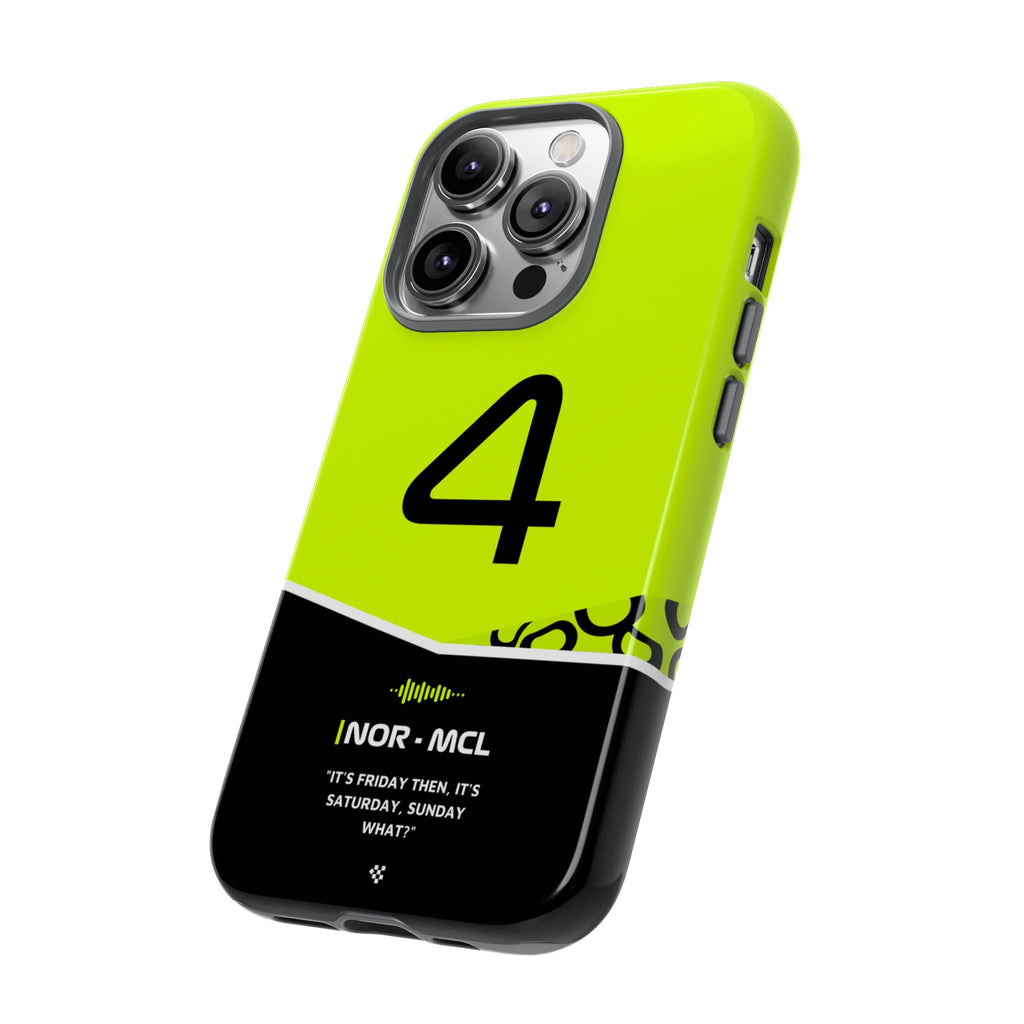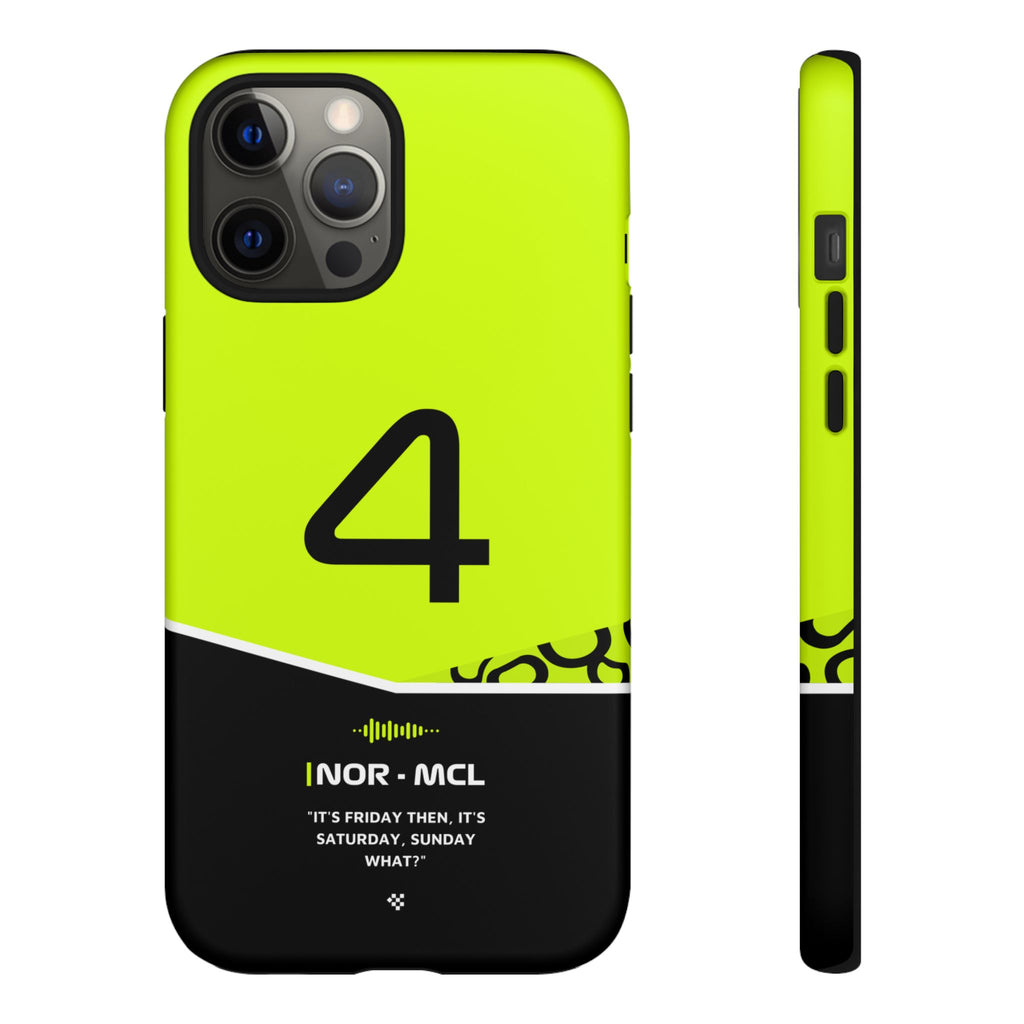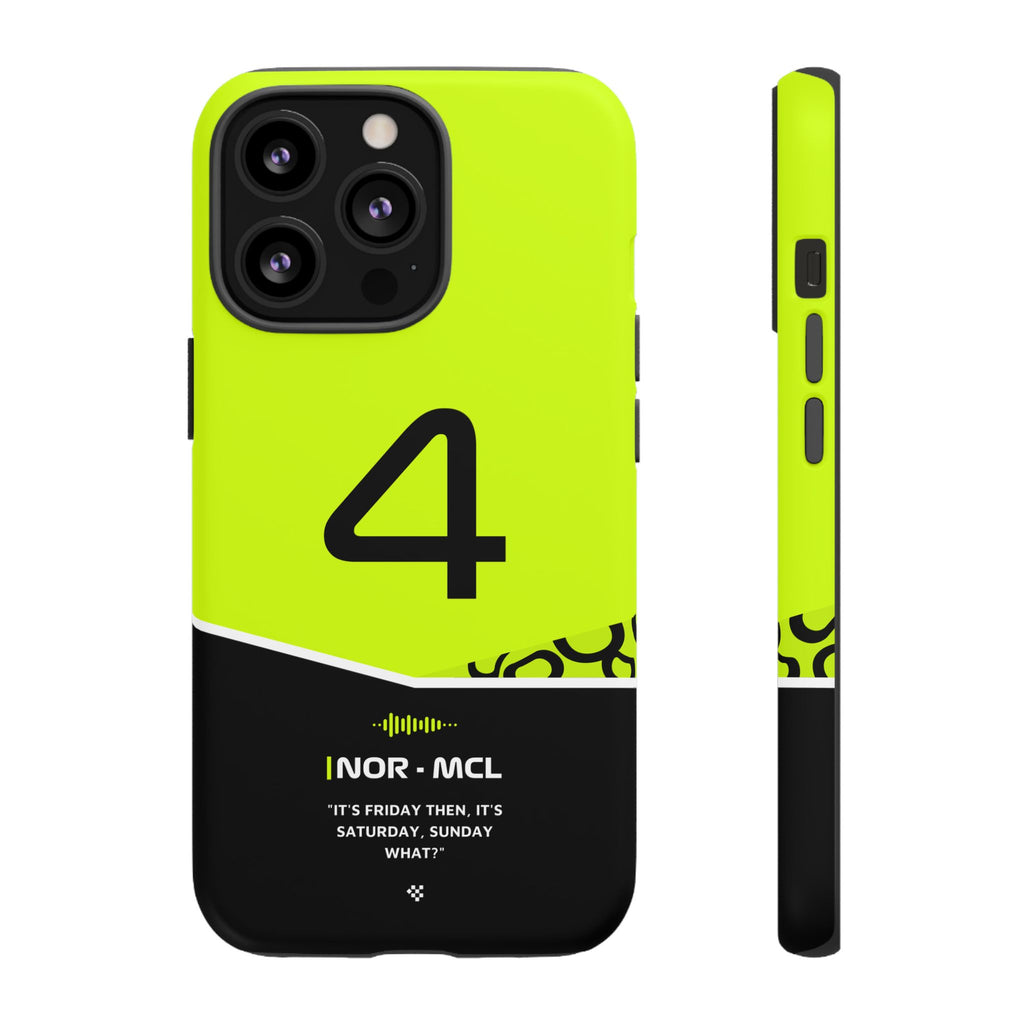 Get ready to support Lando in the 2024 Formula 1 season with the Lando Norris F1 2024 Helmet Phone Case. Designed for true Formula 1 fans, this case features his iconic #4 race car number alongside his striking 2024 helmet colors. But that's not all - it also proudly showcases an iconic quote that you can personalize. Whether you're cheering from the grandstands or watching from home, this case is a must-have for every Norris fan.
