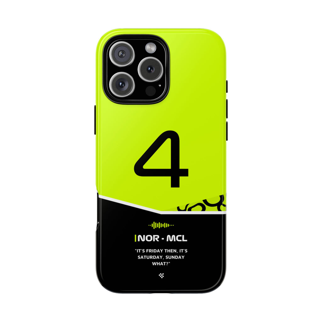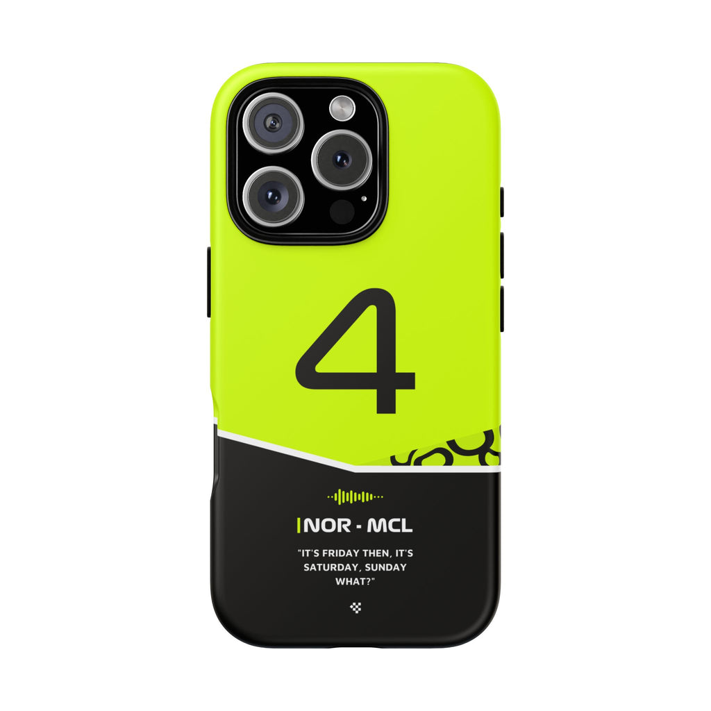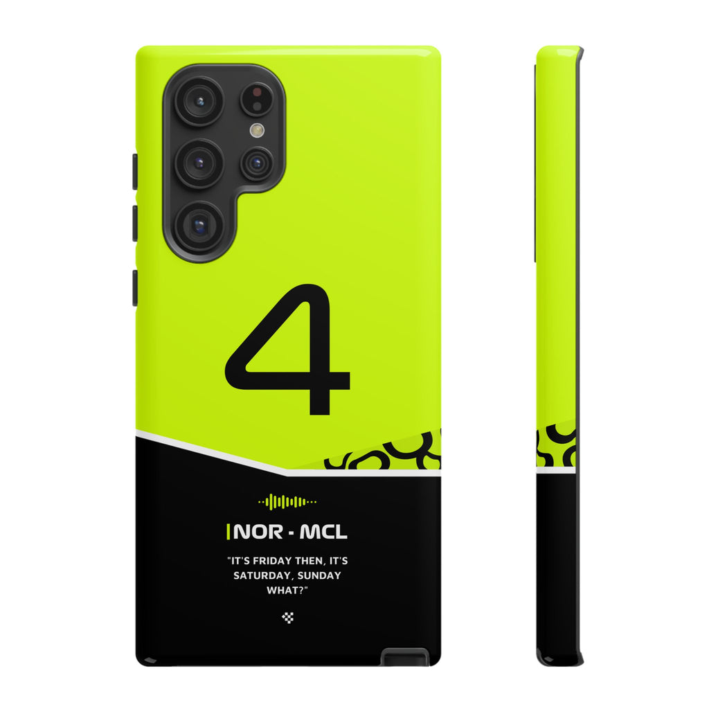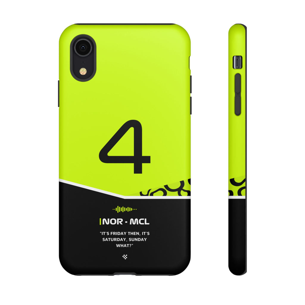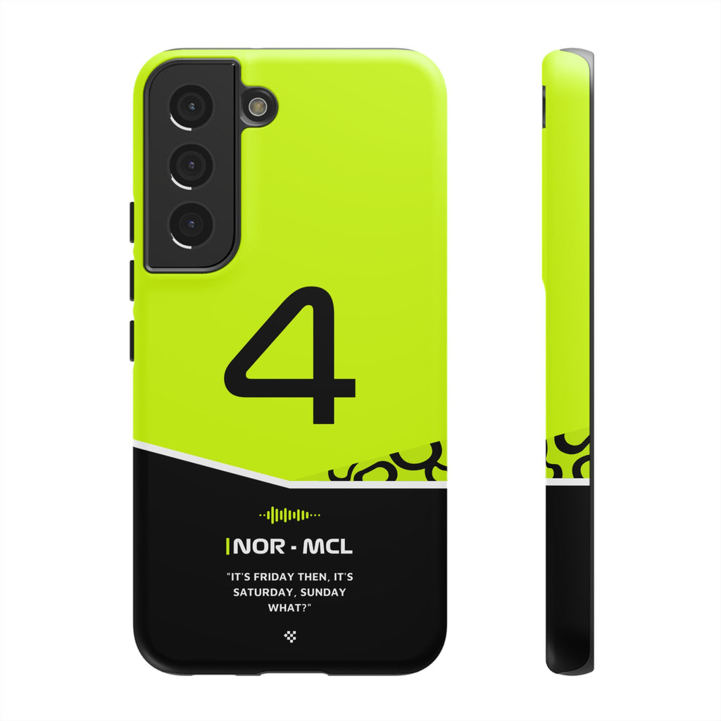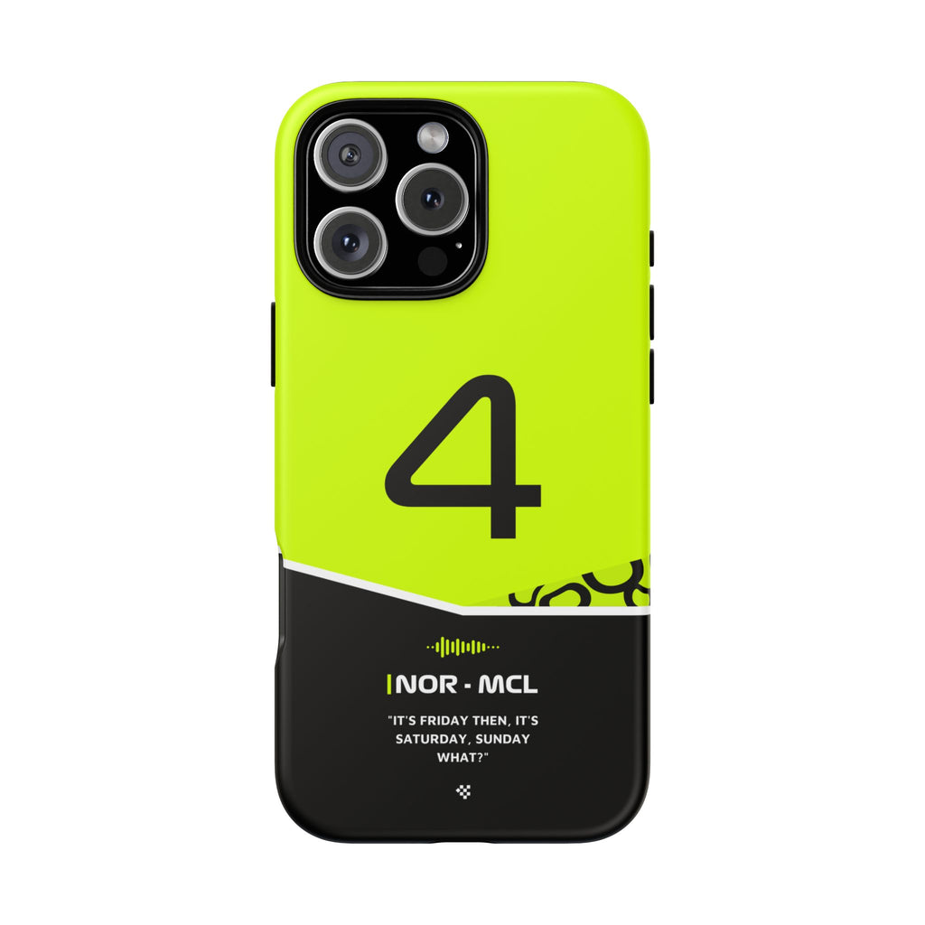 Get ready to support Lando in the 2024 Formula 1 season with the Lando Norris F1 2024 Helmet Phone Case. Designed for true Formula 1 fans, this case features his iconic #4 race car number alongside his striking 2024 helmet colors. But that's not all - it also proudly showcases an iconic quote that you can personalize. Whether you're cheering from the grandstands or watching from home, this case is a must-have for every Norris fan.