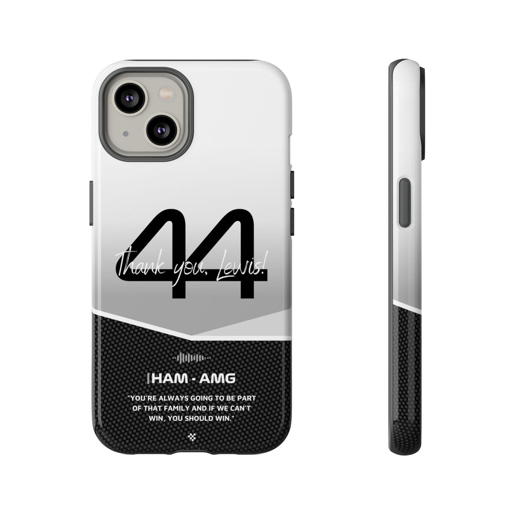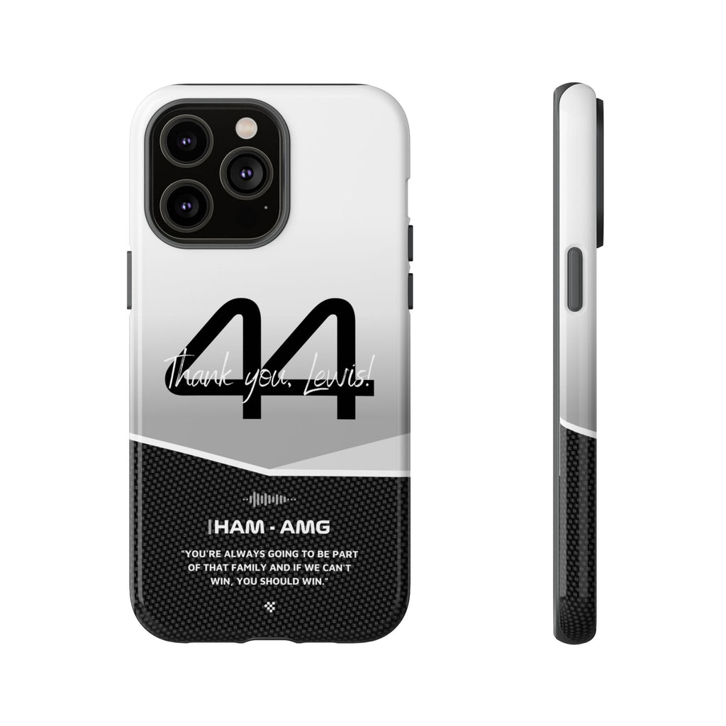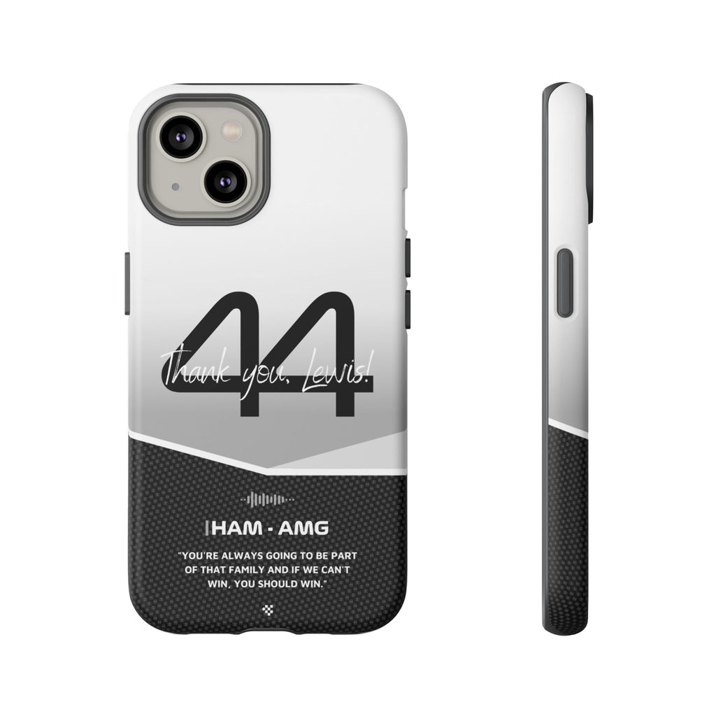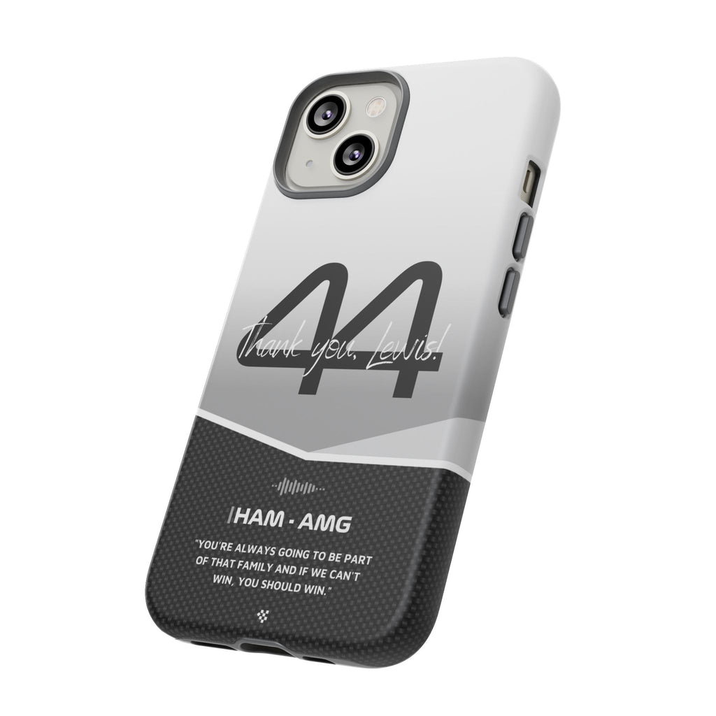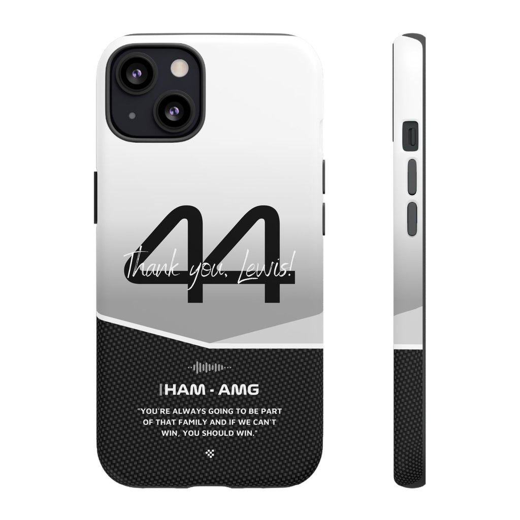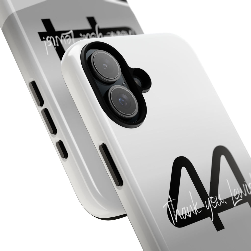 The end of an era... Designed for true Formula 1 fans, the Lewis Hamilton F1 2024 Farewell Phone Case features his iconic #44 race car number alongside the 'Thank you, Lewis!' design. But that's not all - it also proudly showcases an iconic quote that you can personalize. Whether you're cheering from the grandstands or watching from home, this case is a must-have for every Hamilton fan.