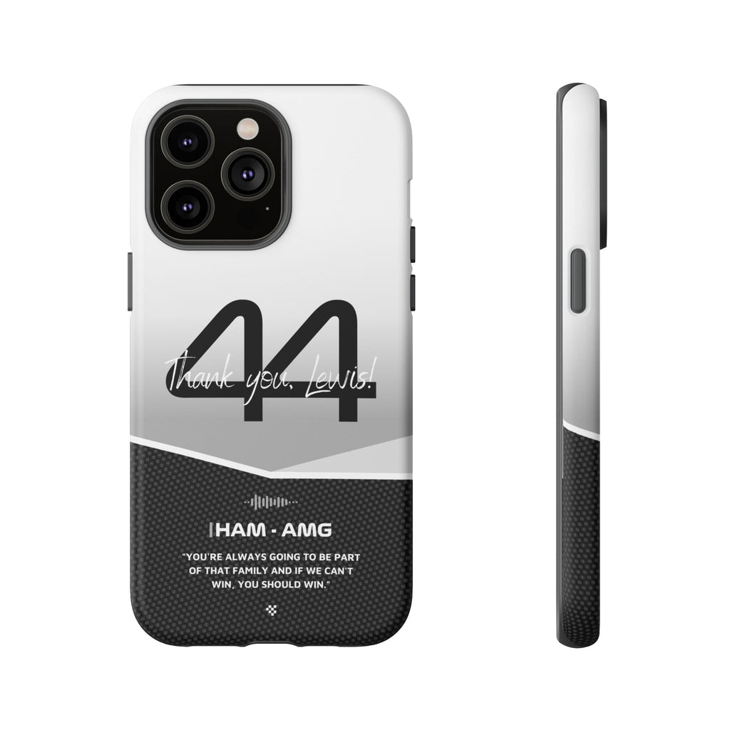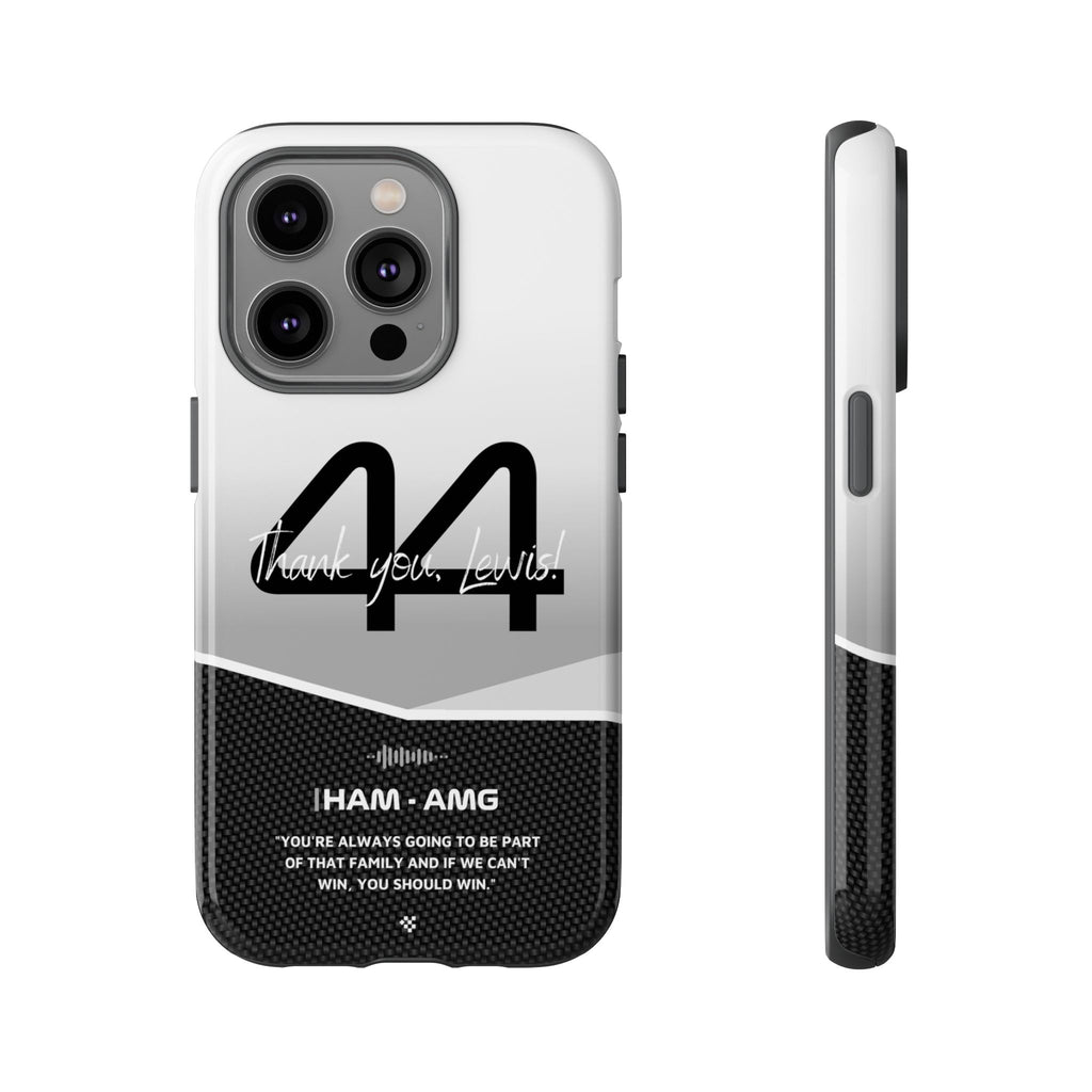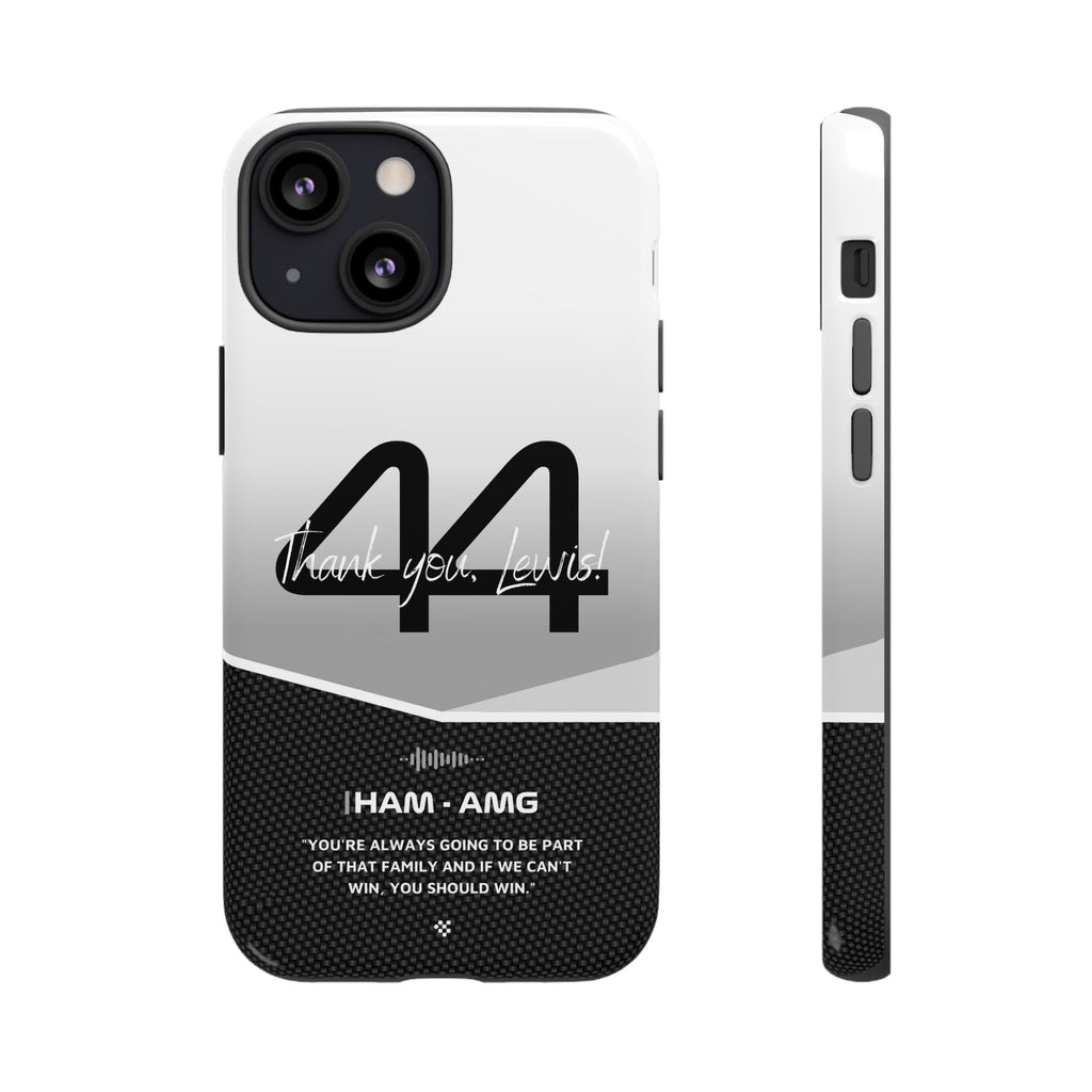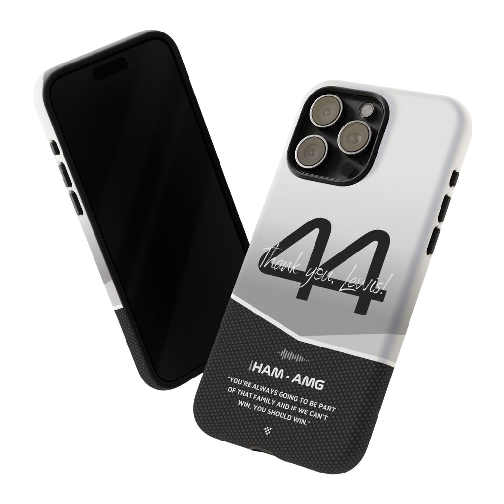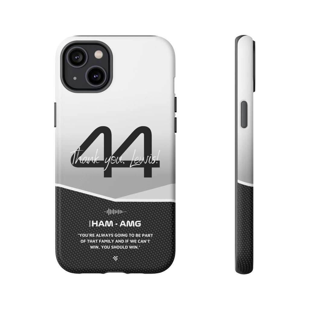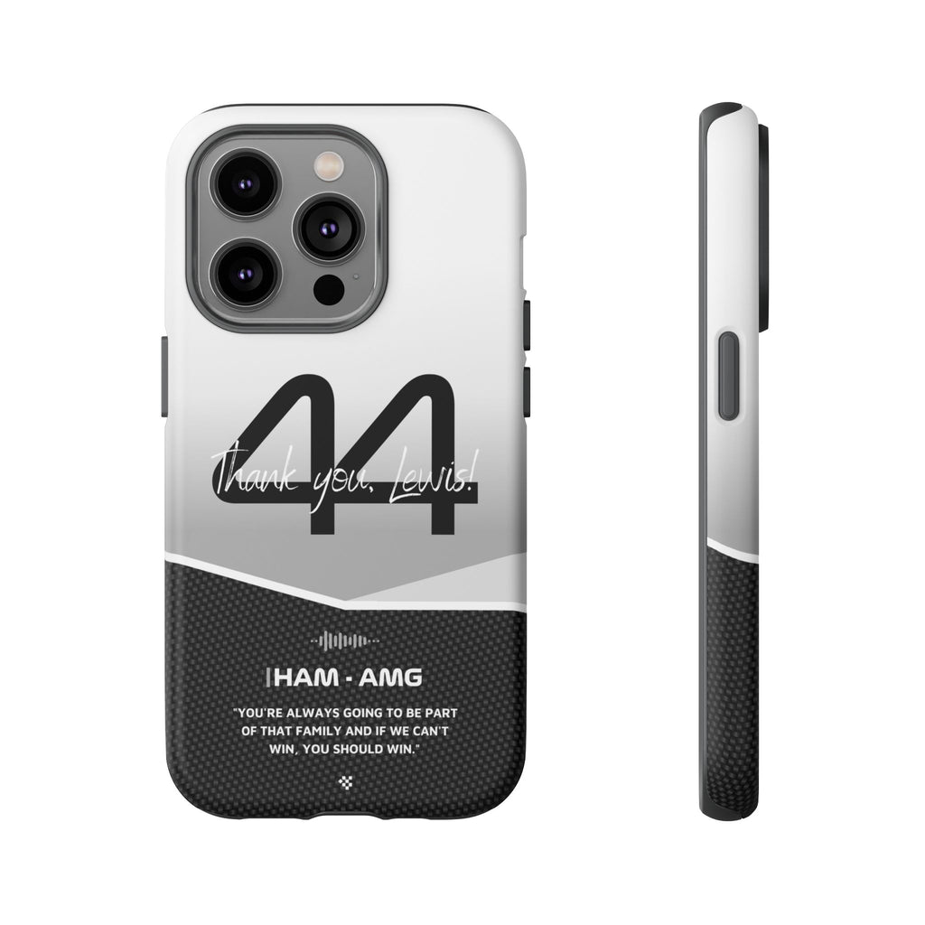 The end of an era... Designed for true Formula 1 fans, the Lewis Hamilton F1 2024 Farewell Phone Case features his iconic #44 race car number alongside the 'Thank you, Lewis!' design. But that's not all - it also proudly showcases an iconic quote that you can personalize. Whether you're cheering from the grandstands or watching from home, this case is a must-have for every Hamilton fan.