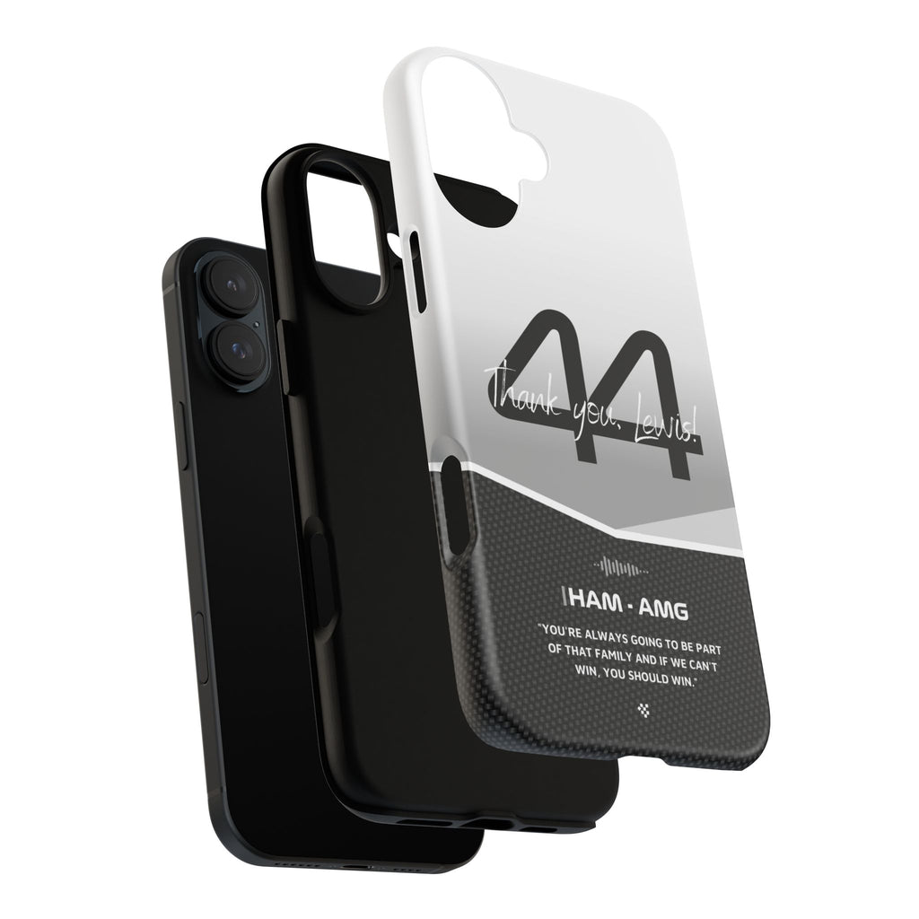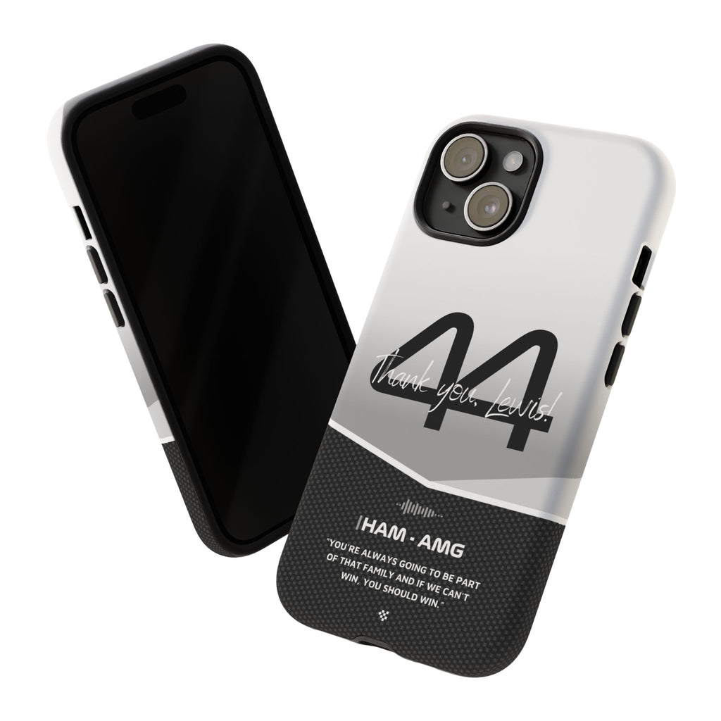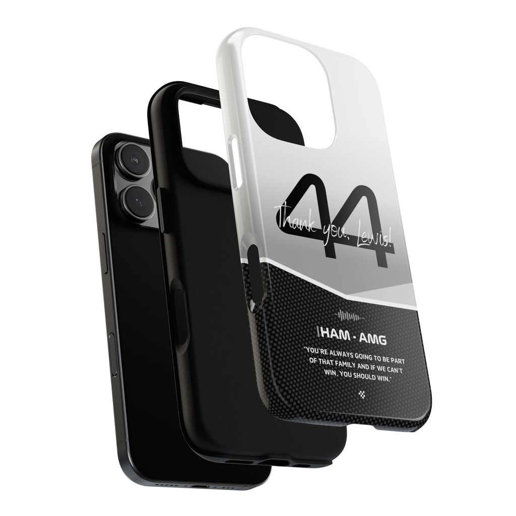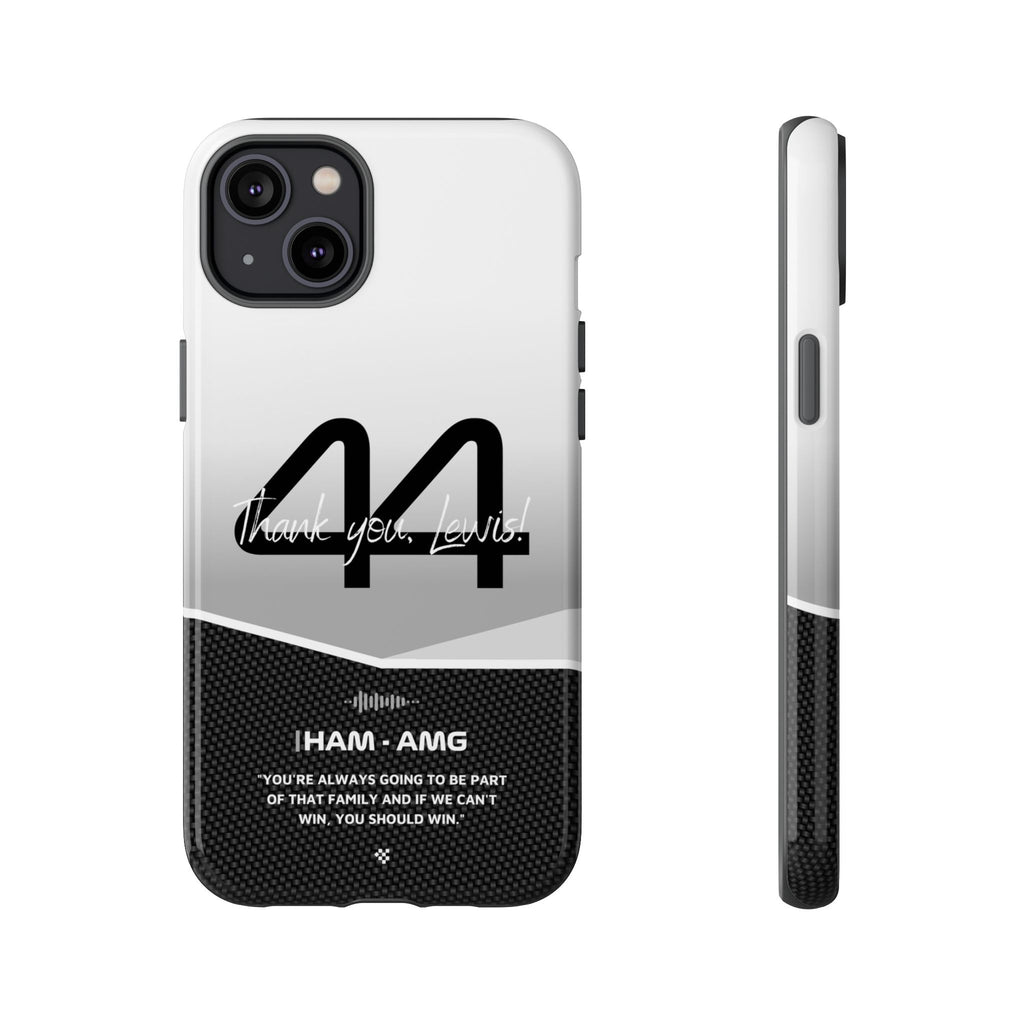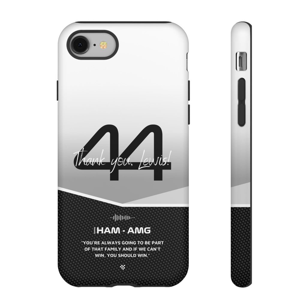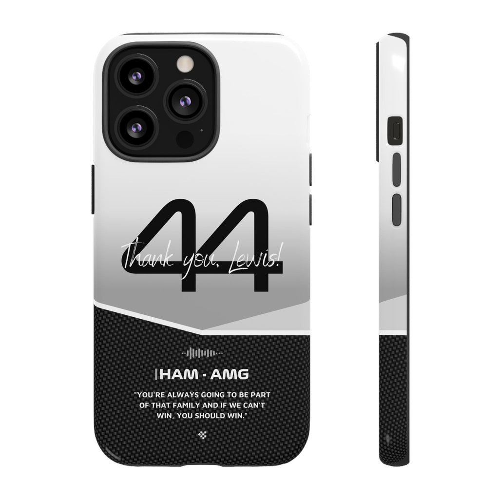 The end of an era... Designed for true Formula 1 fans, the Lewis Hamilton F1 2024 Farewell Phone Case features his iconic #44 race car number alongside the 'Thank you, Lewis!' design. But that's not all - it also proudly showcases an iconic quote that you can personalize. Whether you're cheering from the grandstands or watching from home, this case is a must-have for every Hamilton fan.