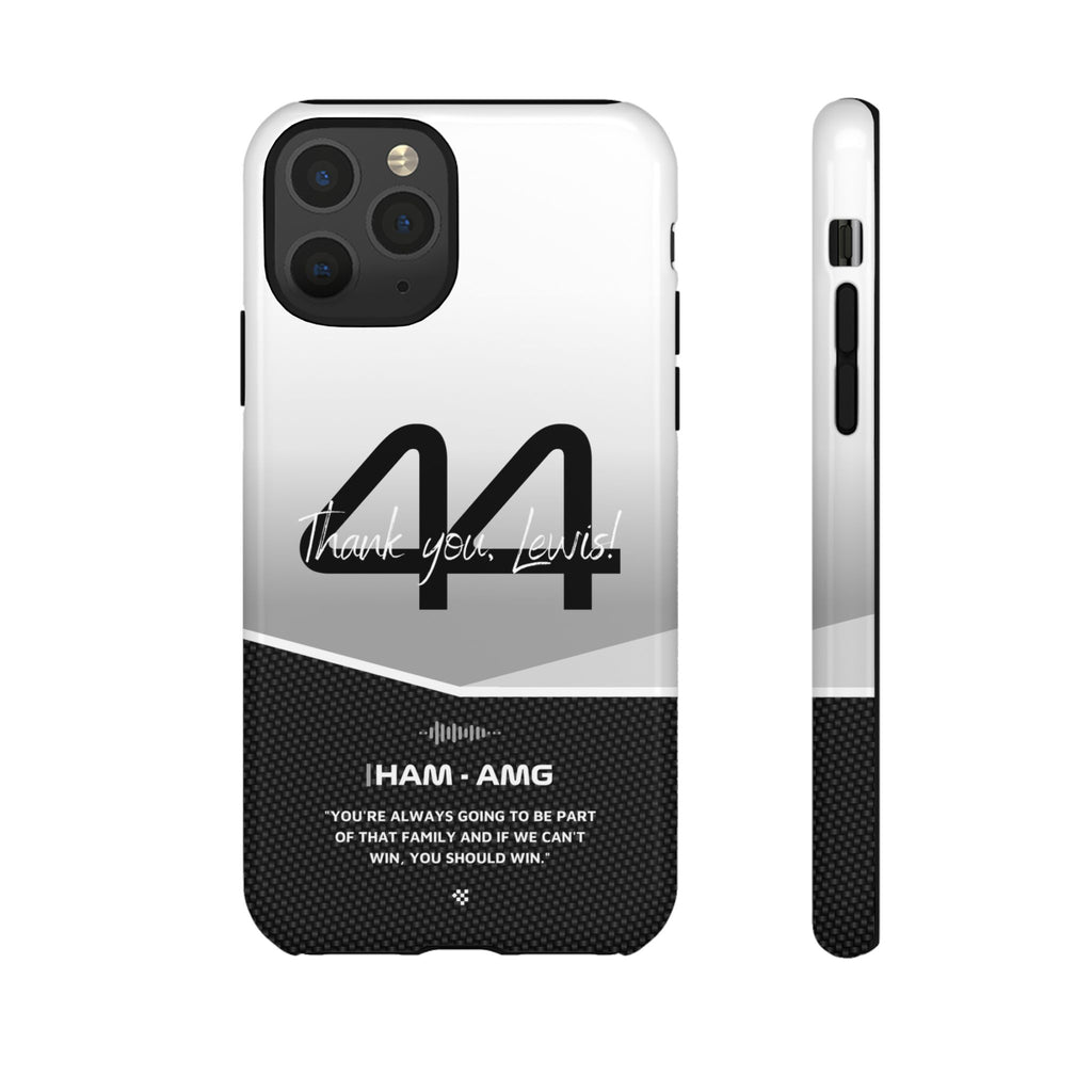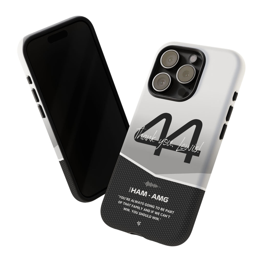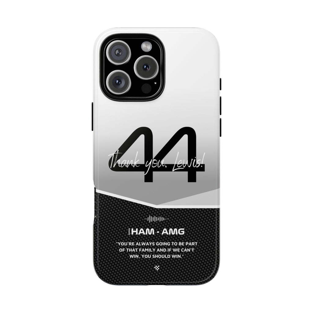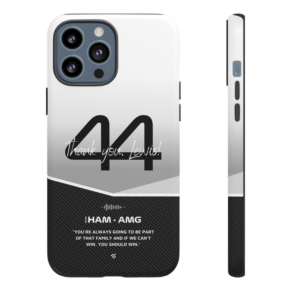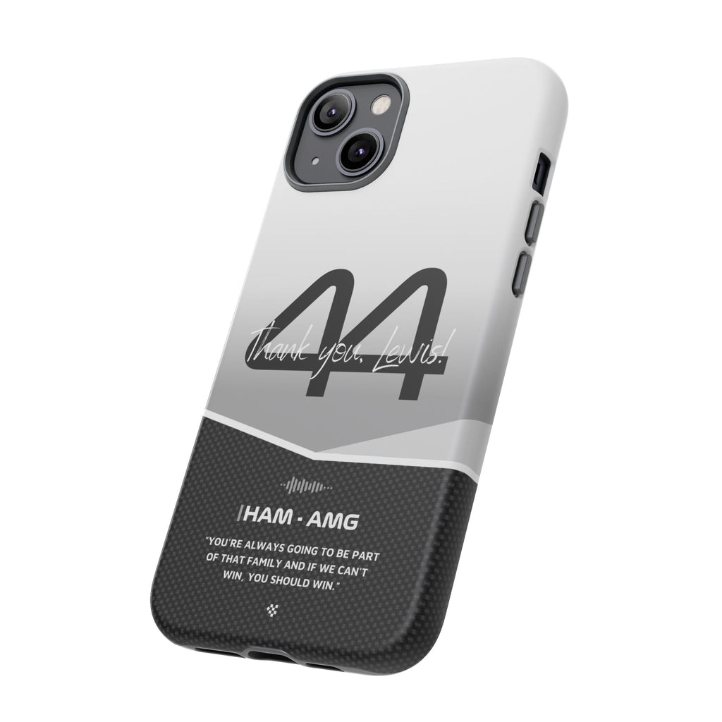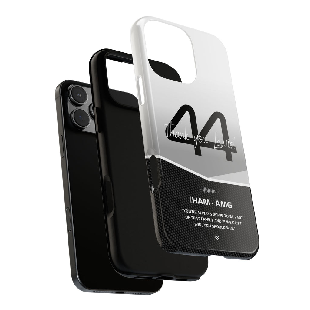 The end of an era... Designed for true Formula 1 fans, the Lewis Hamilton F1 2024 Farewell Phone Case features his iconic #44 race car number alongside the 'Thank you, Lewis!' design. But that's not all - it also proudly showcases an iconic quote that you can personalize. Whether you're cheering from the grandstands or watching from home, this case is a must-have for every Hamilton fan.