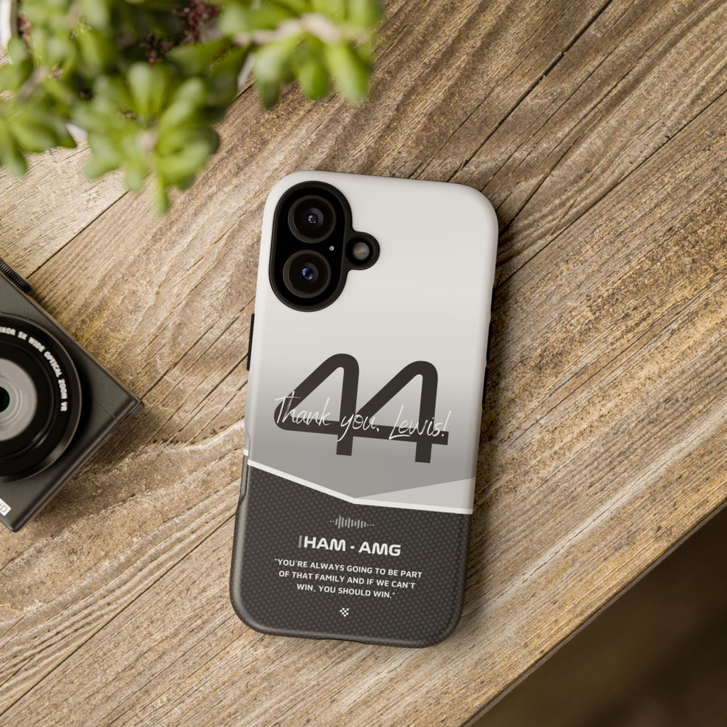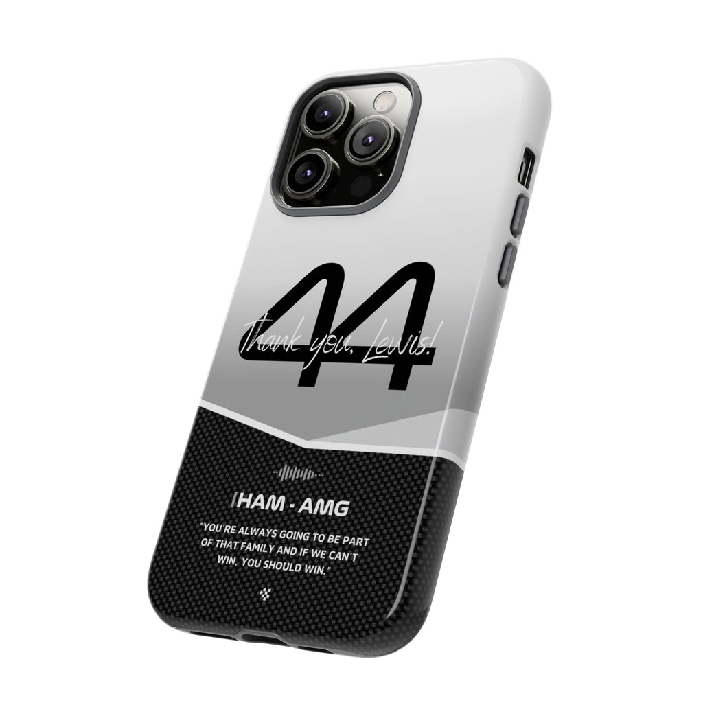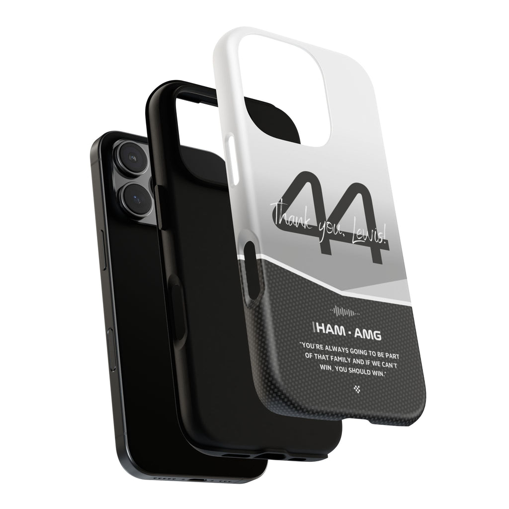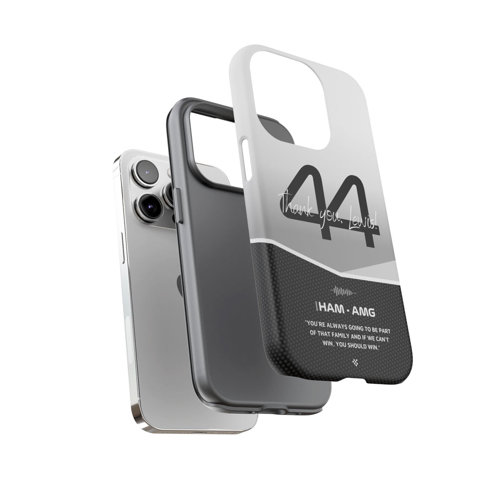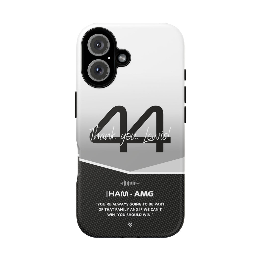 The end of an era... Designed for true Formula 1 fans, the Lewis Hamilton F1 2024 Farewell Phone Case features his iconic #44 race car number alongside the 'Thank you, Lewis!' design. But that's not all - it also proudly showcases an iconic quote that you can personalize. Whether you're cheering from the grandstands or watching from home, this case is a must-have for every Hamilton fan.