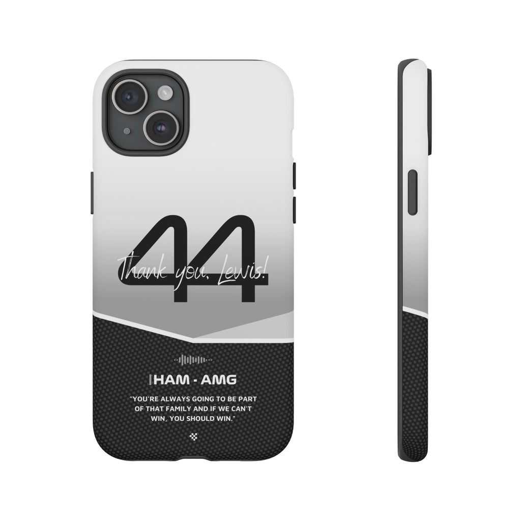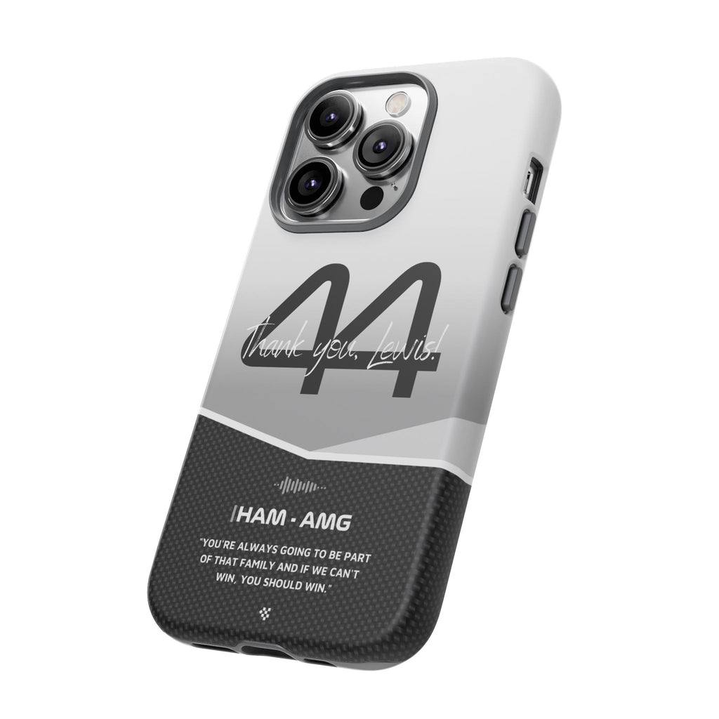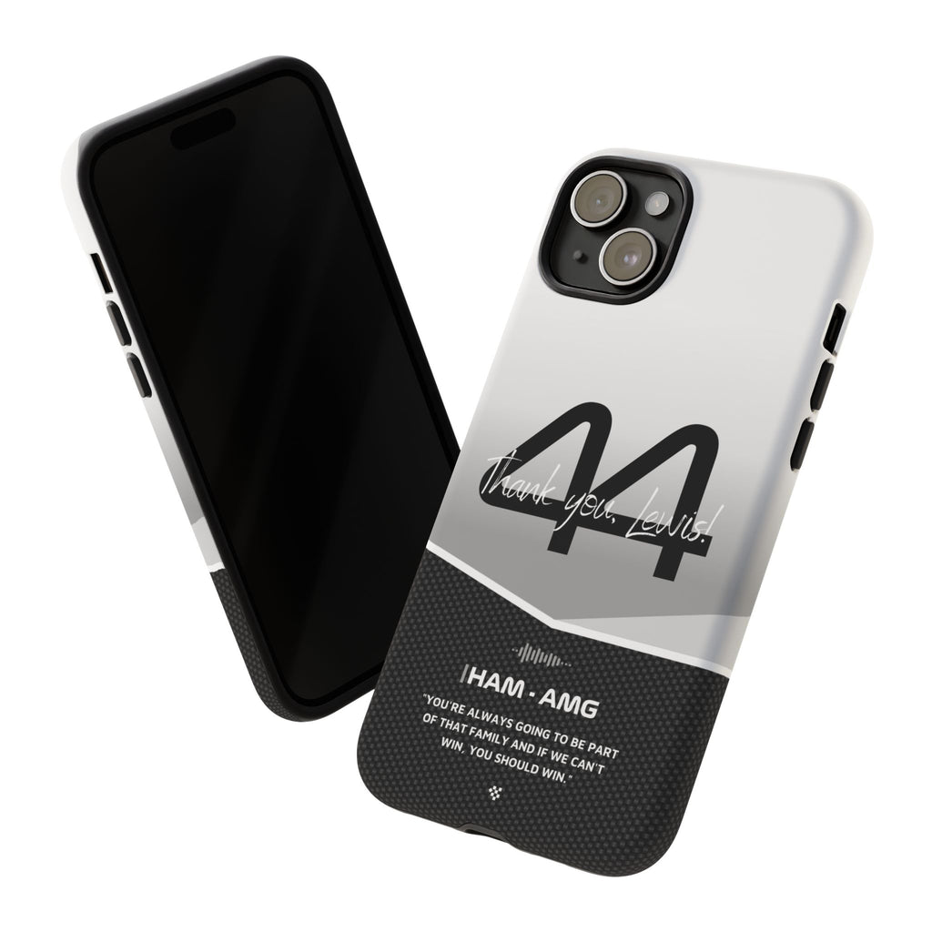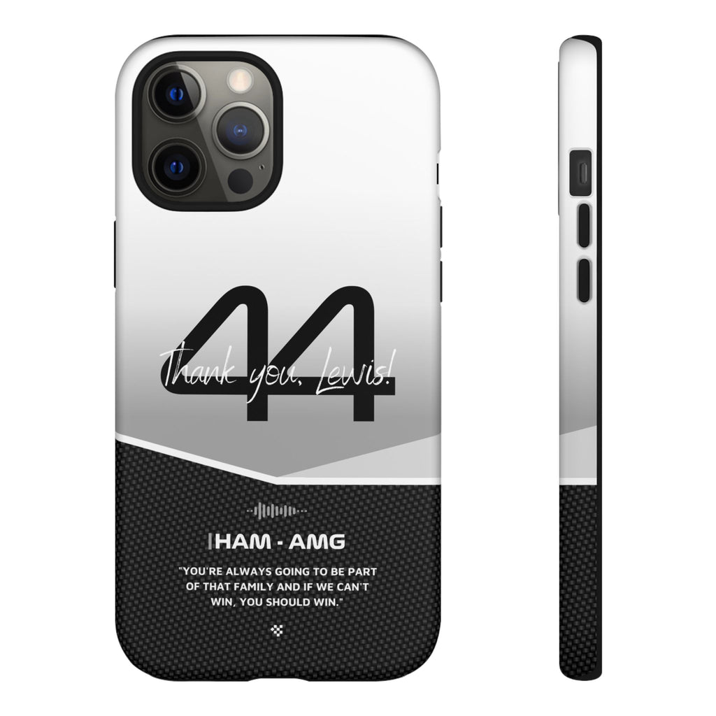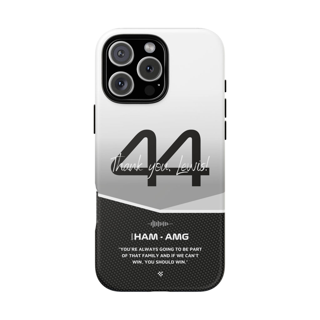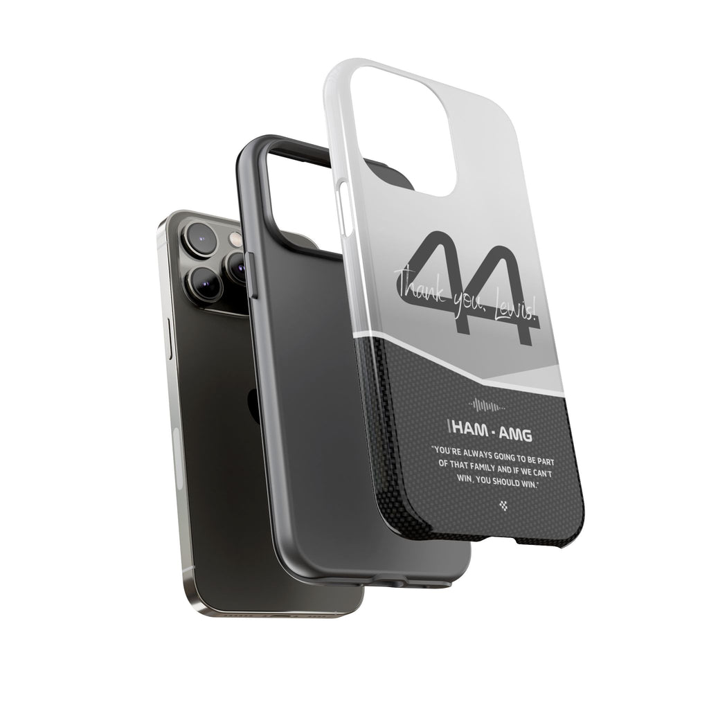 The end of an era... Designed for true Formula 1 fans, the Lewis Hamilton F1 2024 Farewell Phone Case features his iconic #44 race car number alongside the 'Thank you, Lewis!' design. But that's not all - it also proudly showcases an iconic quote that you can personalize. Whether you're cheering from the grandstands or watching from home, this case is a must-have for every Hamilton fan.