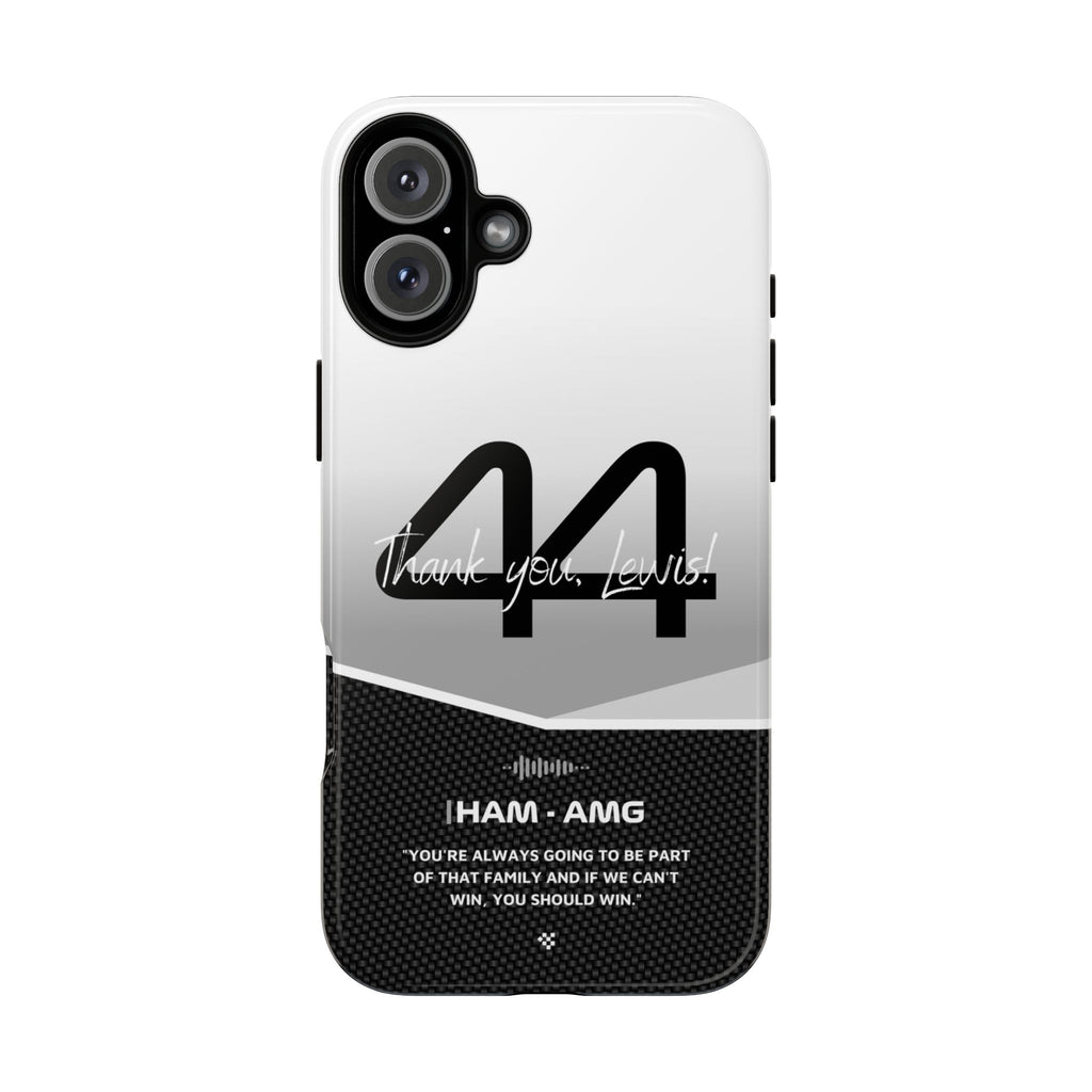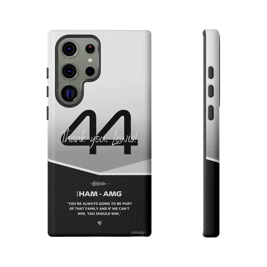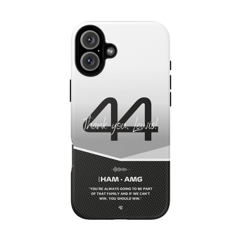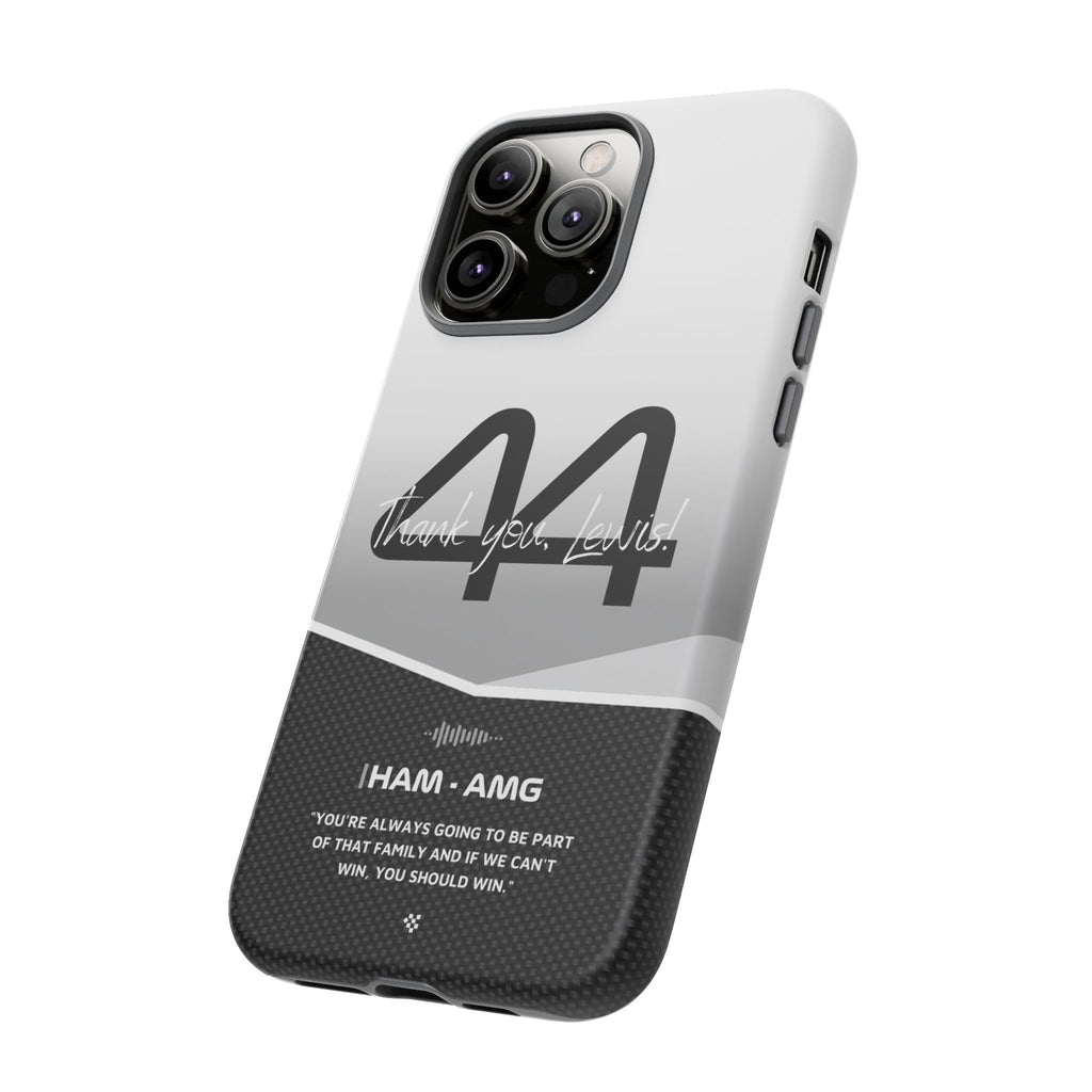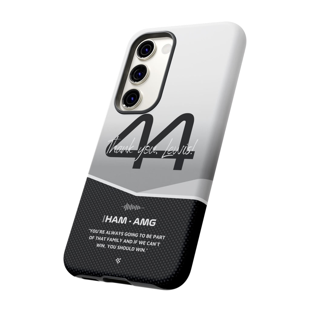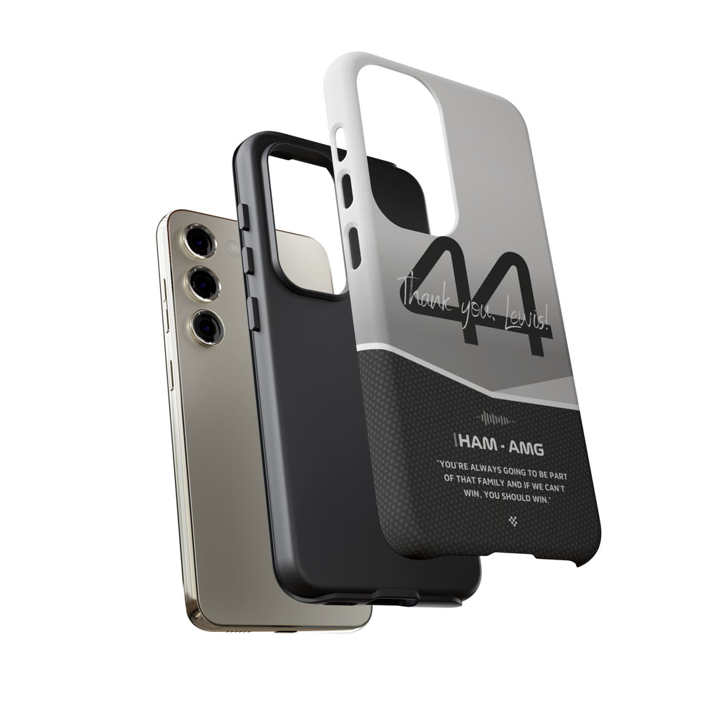 The end of an era... Designed for true Formula 1 fans, the Lewis Hamilton F1 2024 Farewell Phone Case features his iconic #44 race car number alongside the 'Thank you, Lewis!' design. But that's not all - it also proudly showcases an iconic quote that you can personalize. Whether you're cheering from the grandstands or watching from home, this case is a must-have for every Hamilton fan.