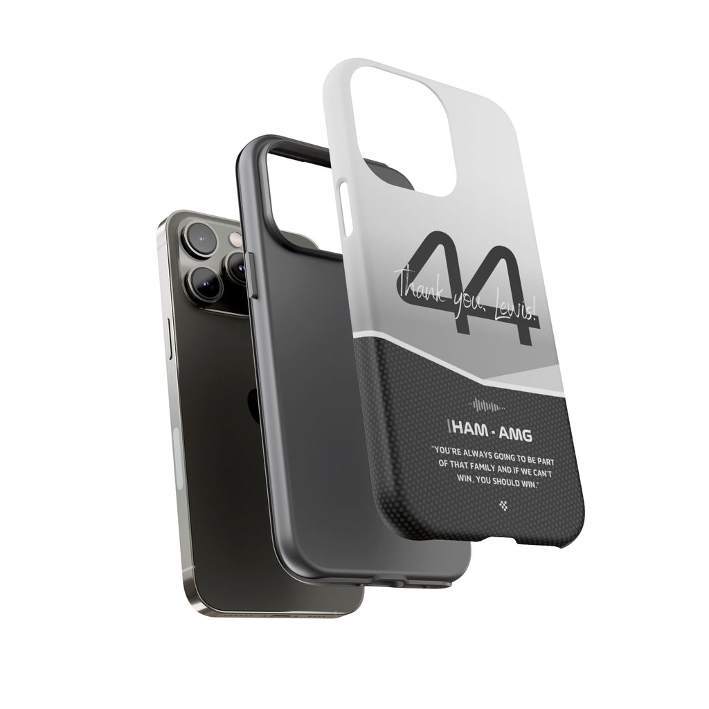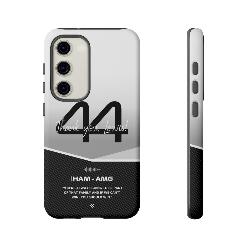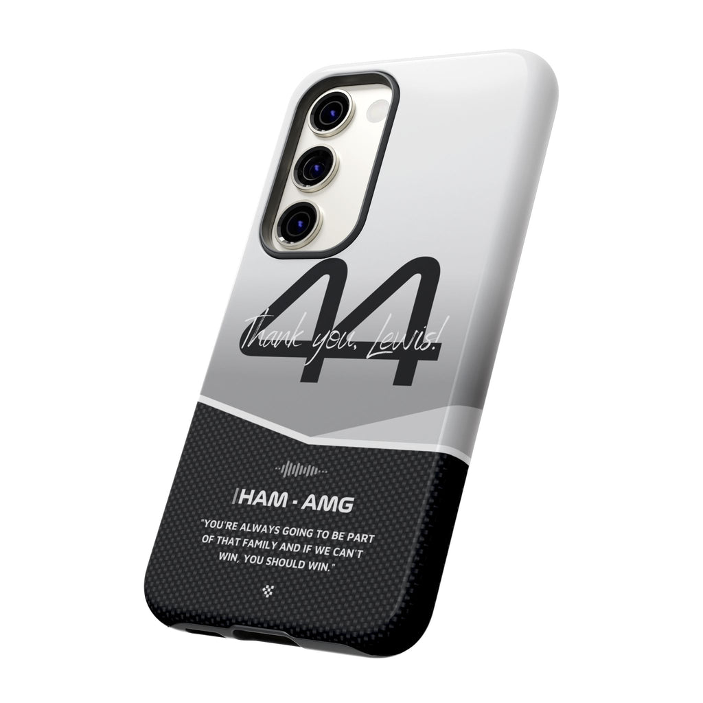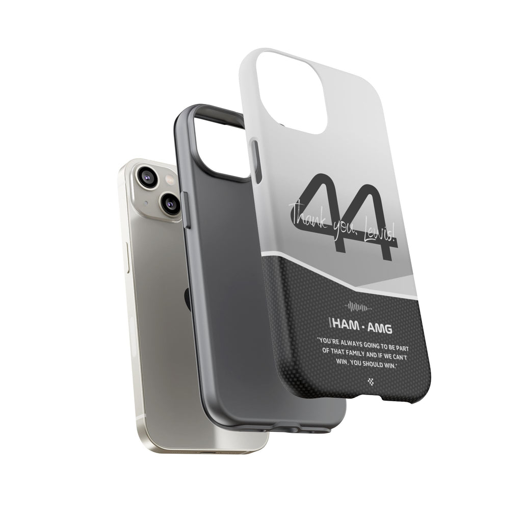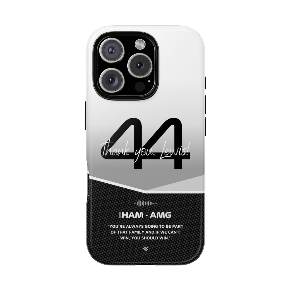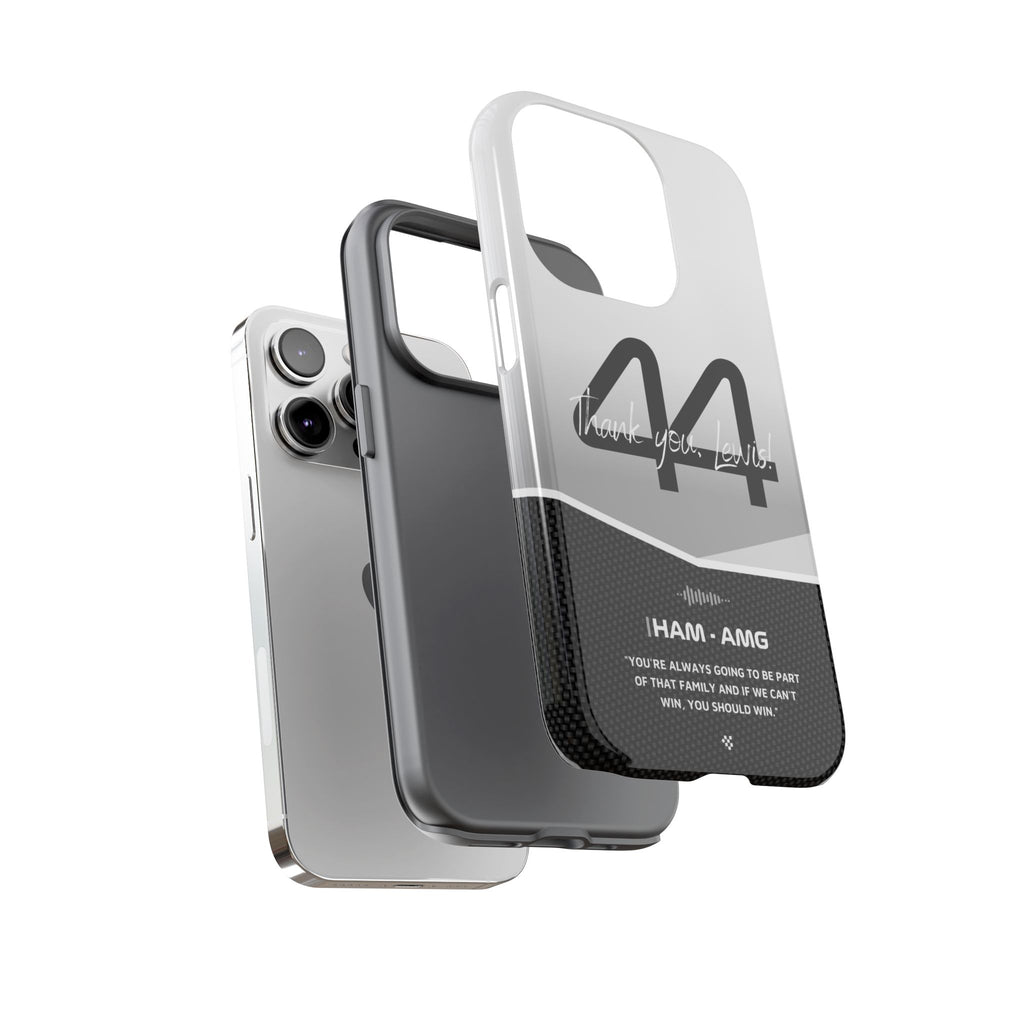 The end of an era... Designed for true Formula 1 fans, the Lewis Hamilton F1 2024 Farewell Phone Case features his iconic #44 race car number alongside the 'Thank you, Lewis!' design. But that's not all - it also proudly showcases an iconic quote that you can personalize. Whether you're cheering from the grandstands or watching from home, this case is a must-have for every Hamilton fan.