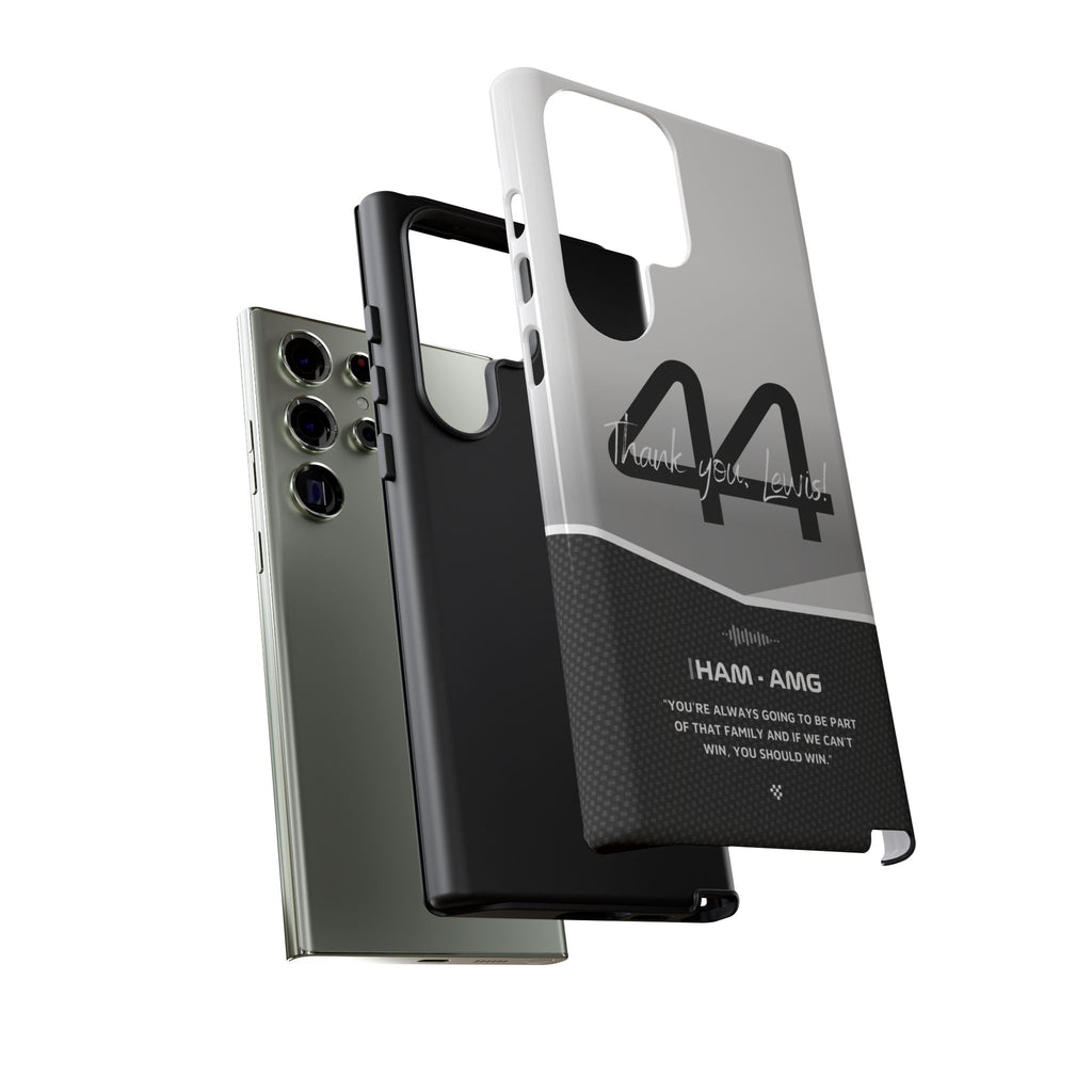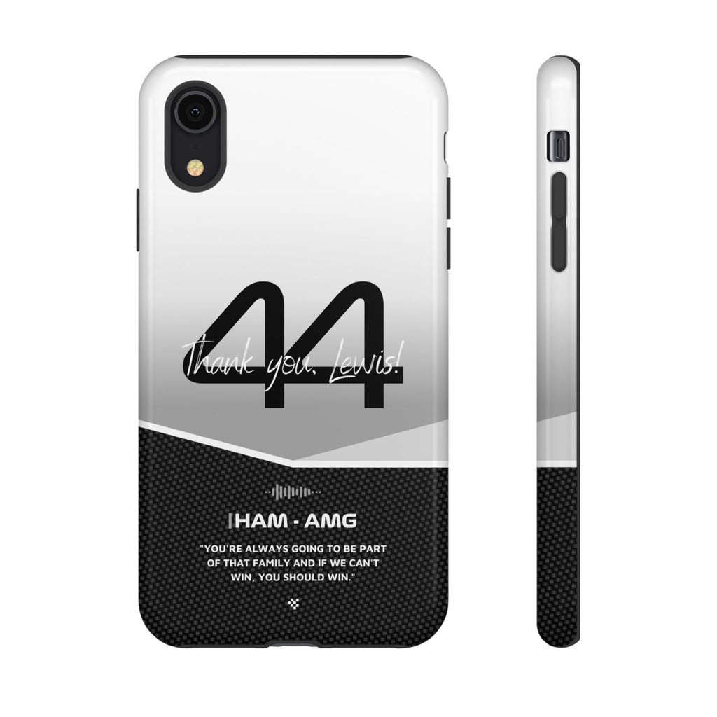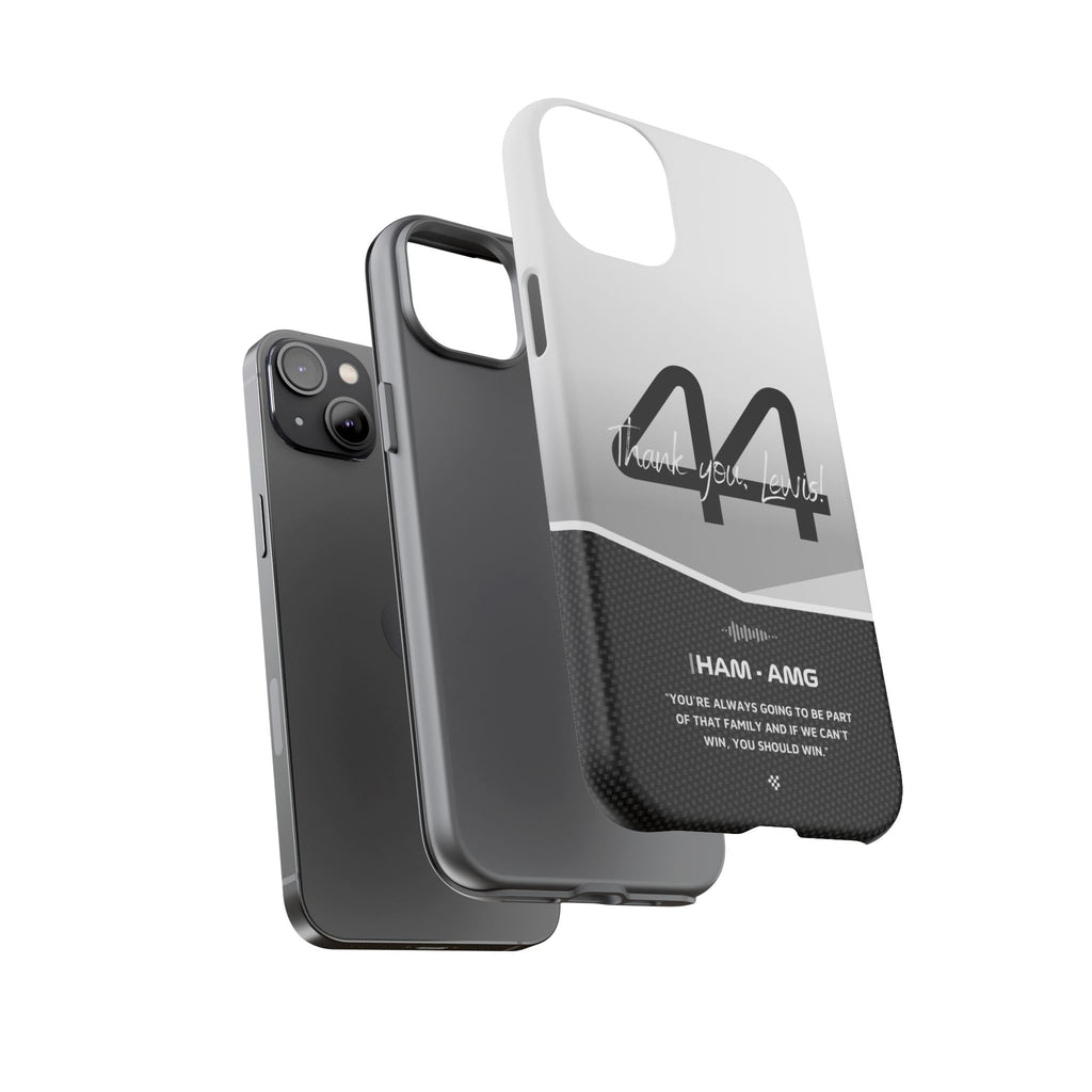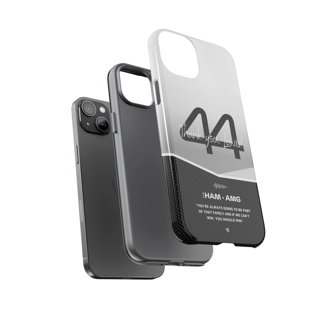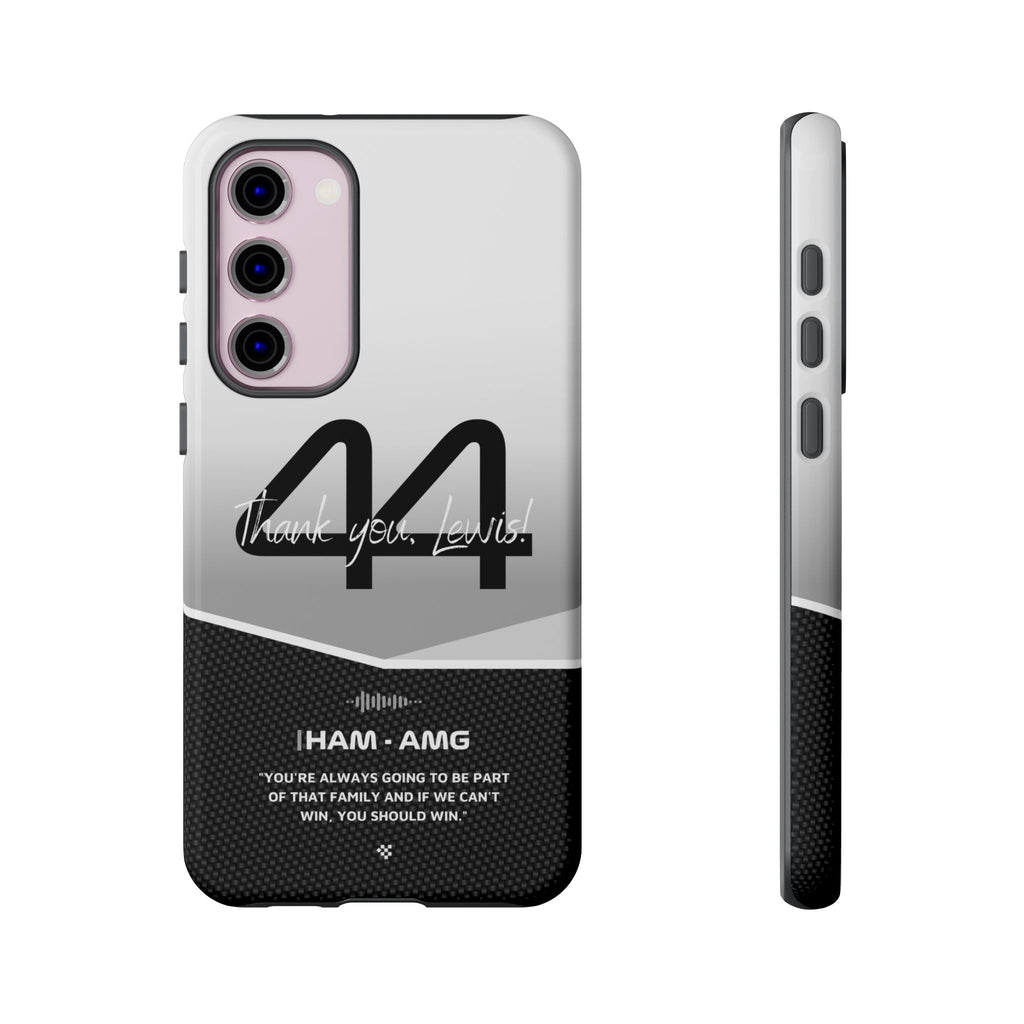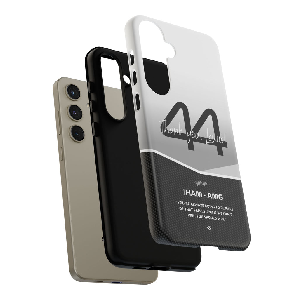 The end of an era... Designed for true Formula 1 fans, the Lewis Hamilton F1 2024 Farewell Phone Case features his iconic #44 race car number alongside the 'Thank you, Lewis!' design. But that's not all - it also proudly showcases an iconic quote that you can personalize. Whether you're cheering from the grandstands or watching from home, this case is a must-have for every Hamilton fan.