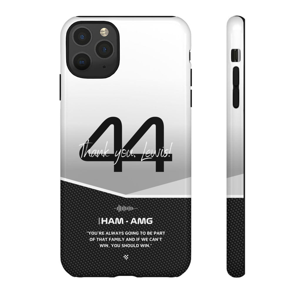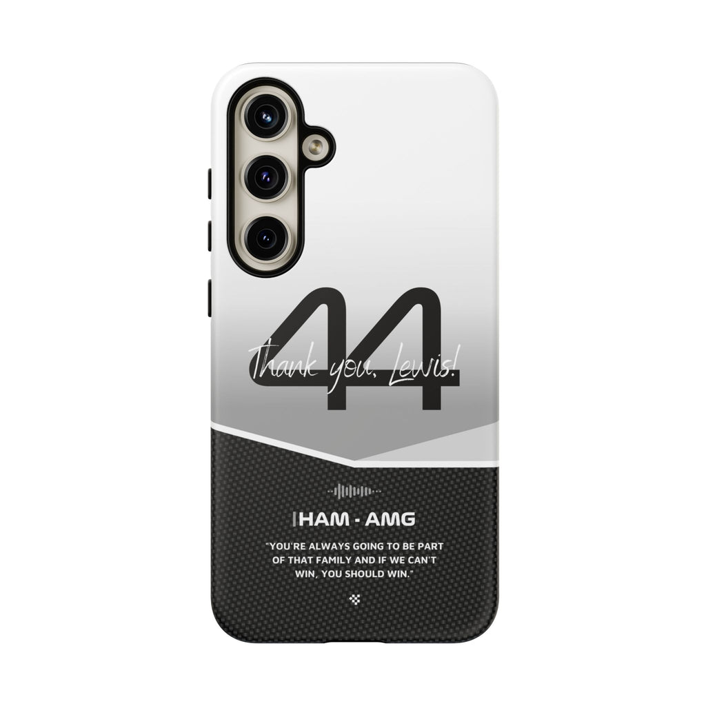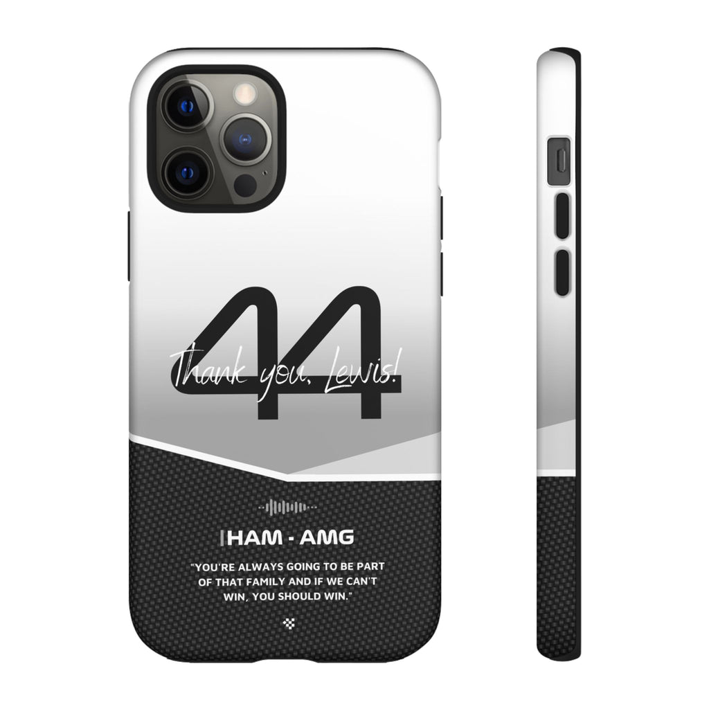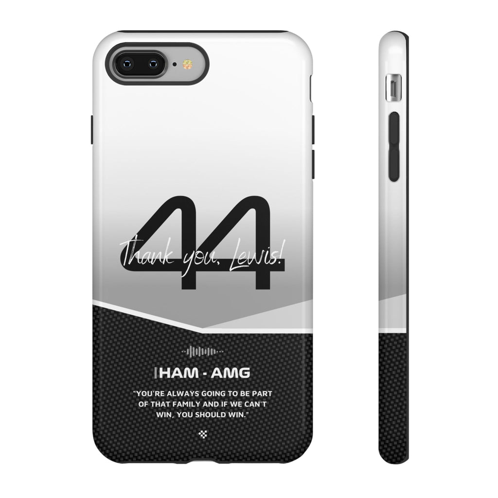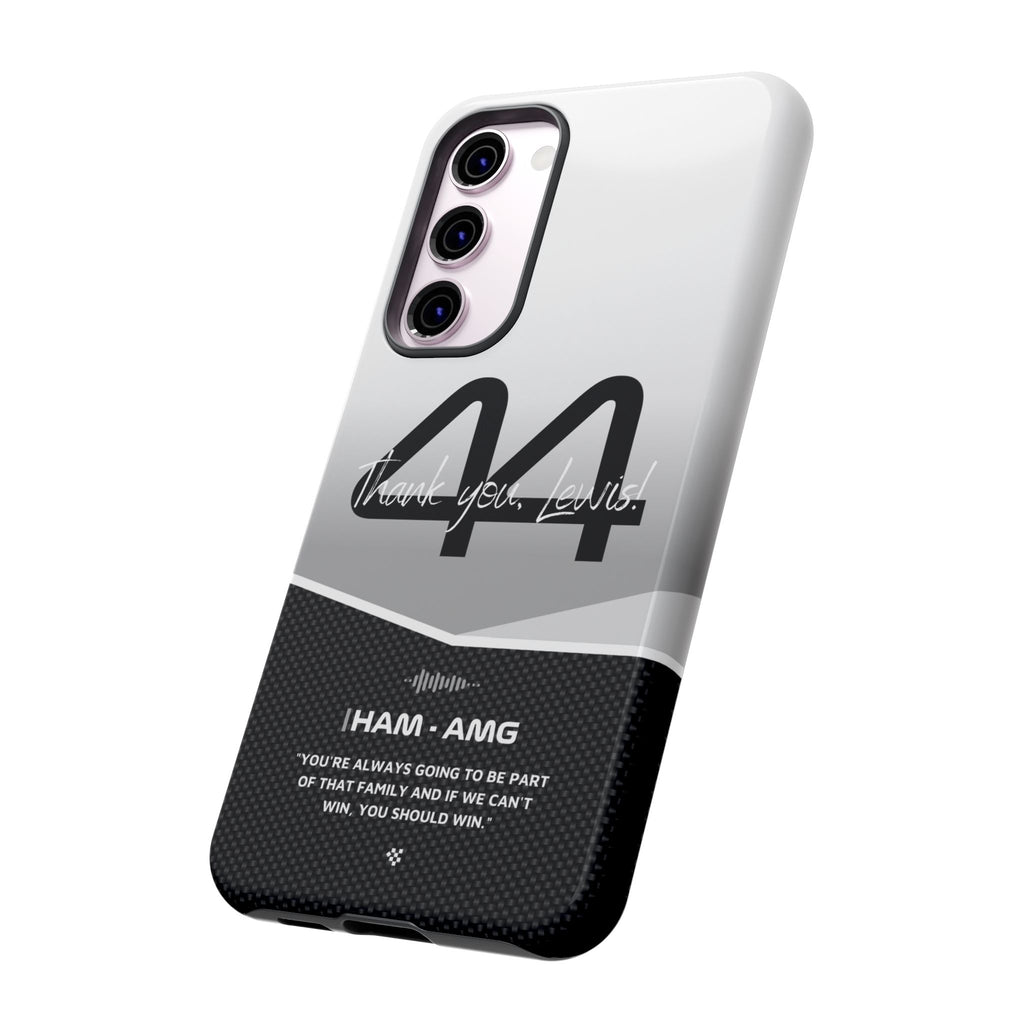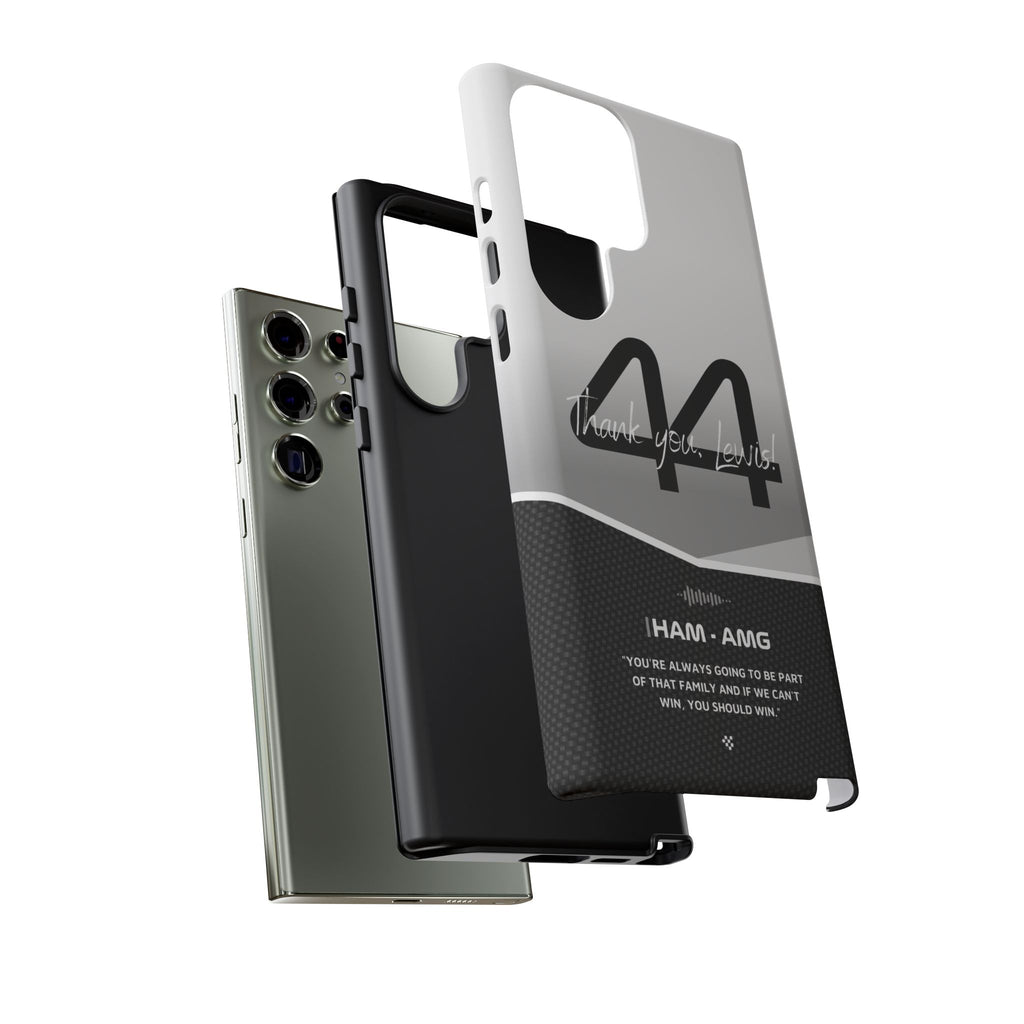 The end of an era... Designed for true Formula 1 fans, the Lewis Hamilton F1 2024 Farewell Phone Case features his iconic #44 race car number alongside the 'Thank you, Lewis!' design. But that's not all - it also proudly showcases an iconic quote that you can personalize. Whether you're cheering from the grandstands or watching from home, this case is a must-have for every Hamilton fan.