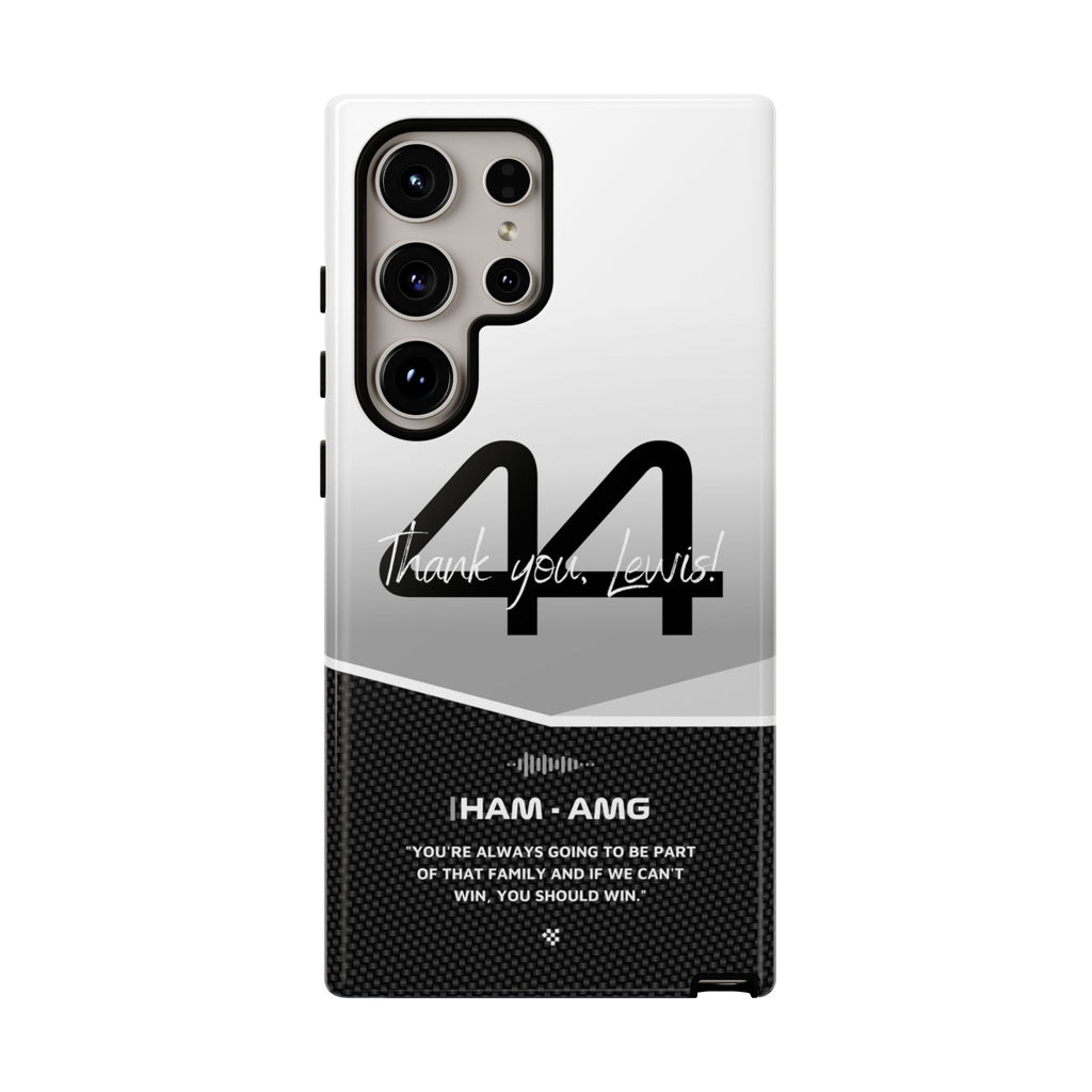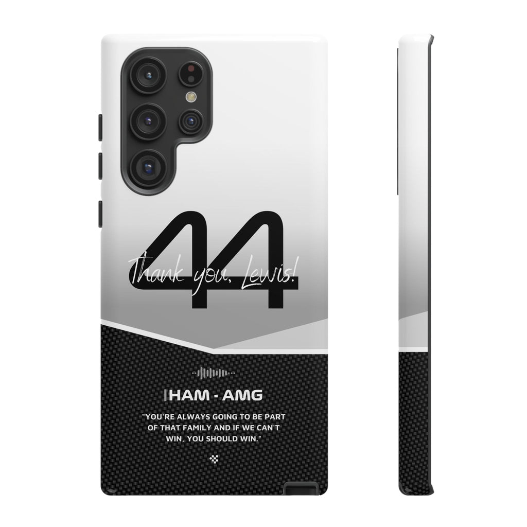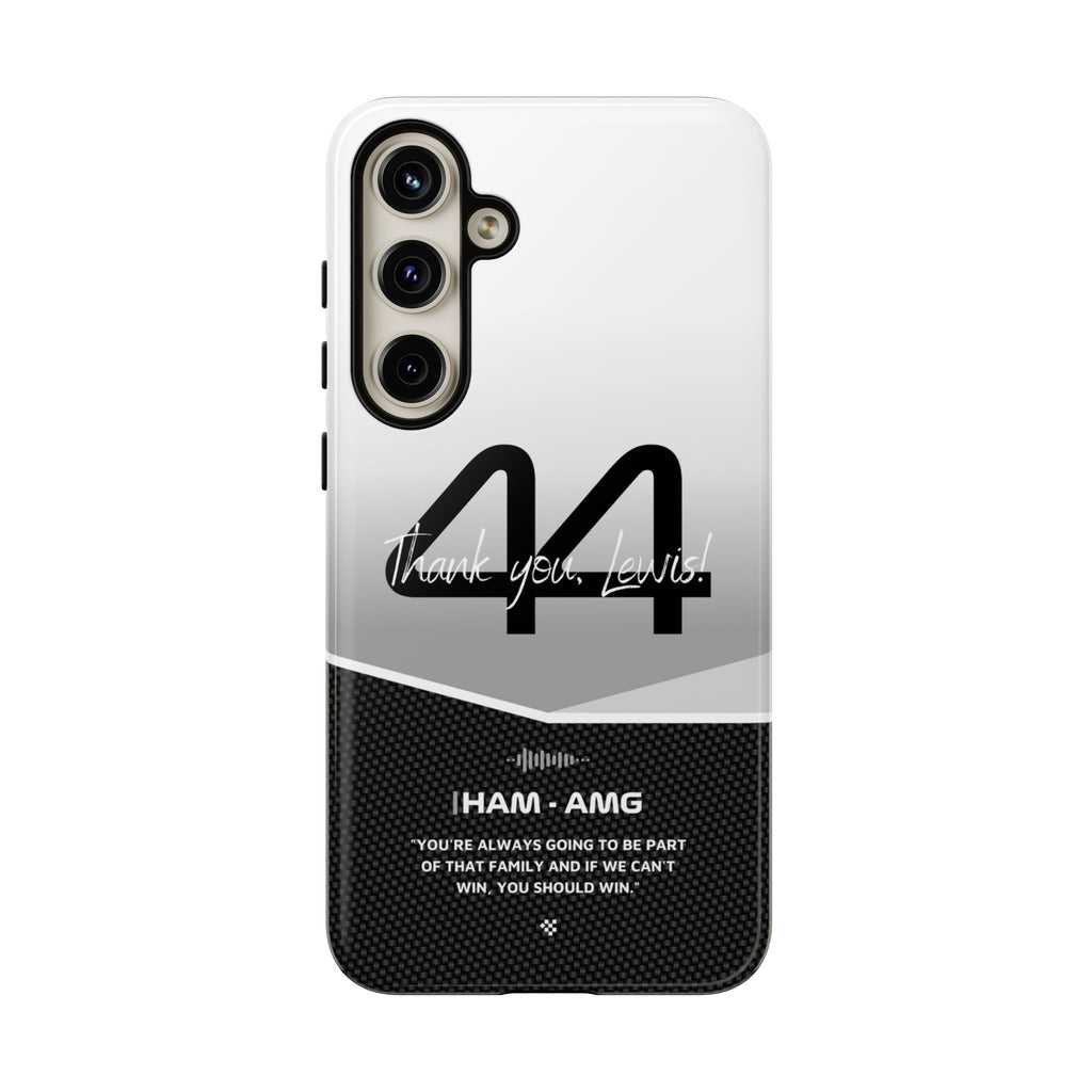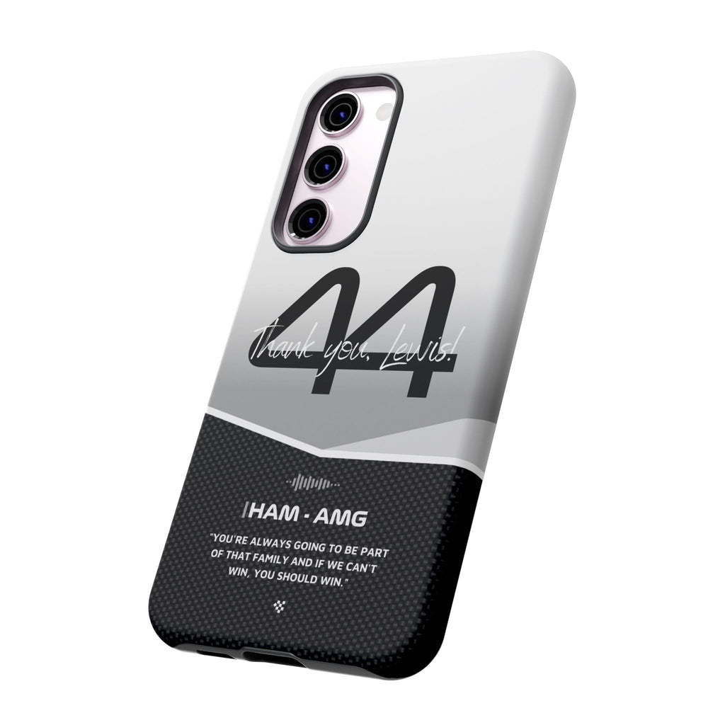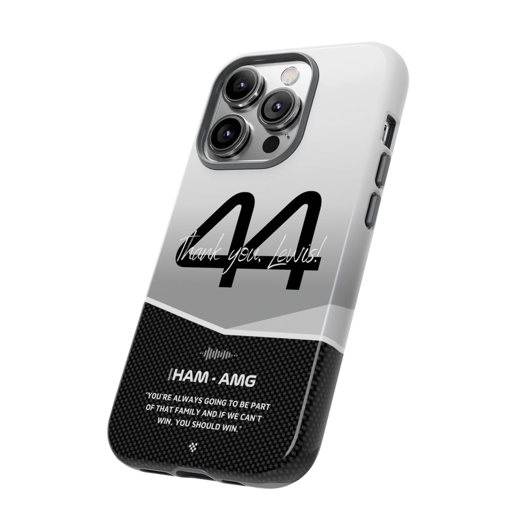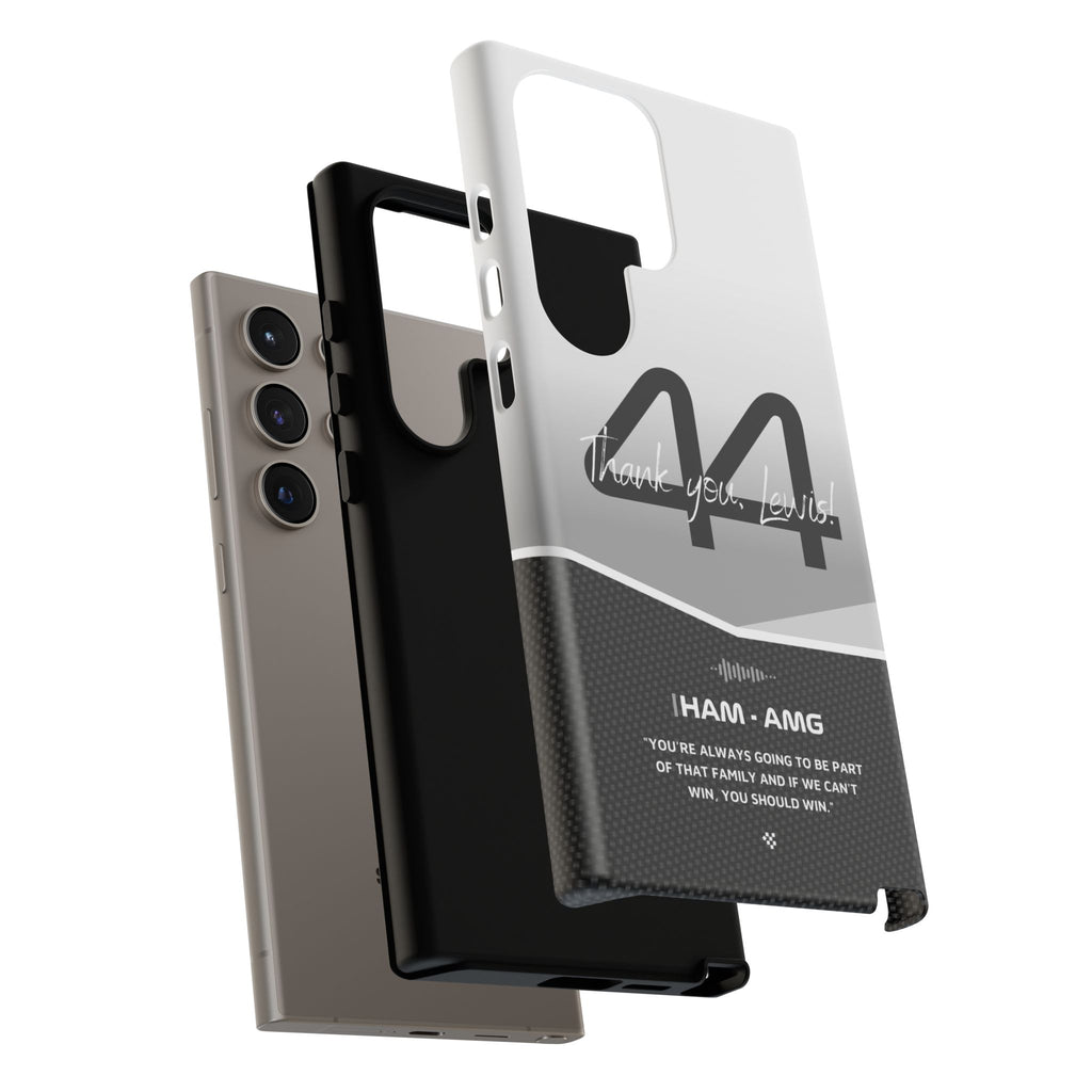 The end of an era... Designed for true Formula 1 fans, the Lewis Hamilton F1 2024 Farewell Phone Case features his iconic #44 race car number alongside the 'Thank you, Lewis!' design. But that's not all - it also proudly showcases an iconic quote that you can personalize. Whether you're cheering from the grandstands or watching from home, this case is a must-have for every Hamilton fan.