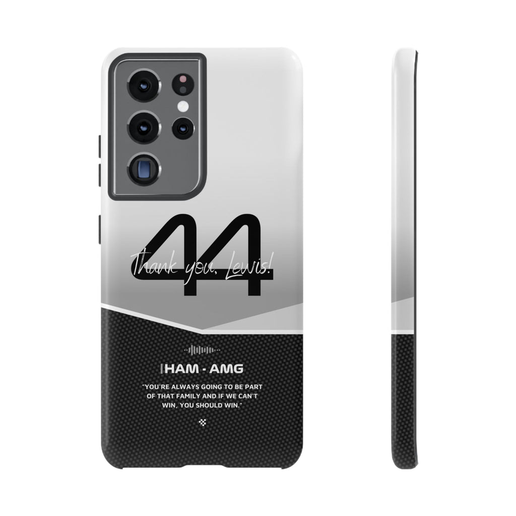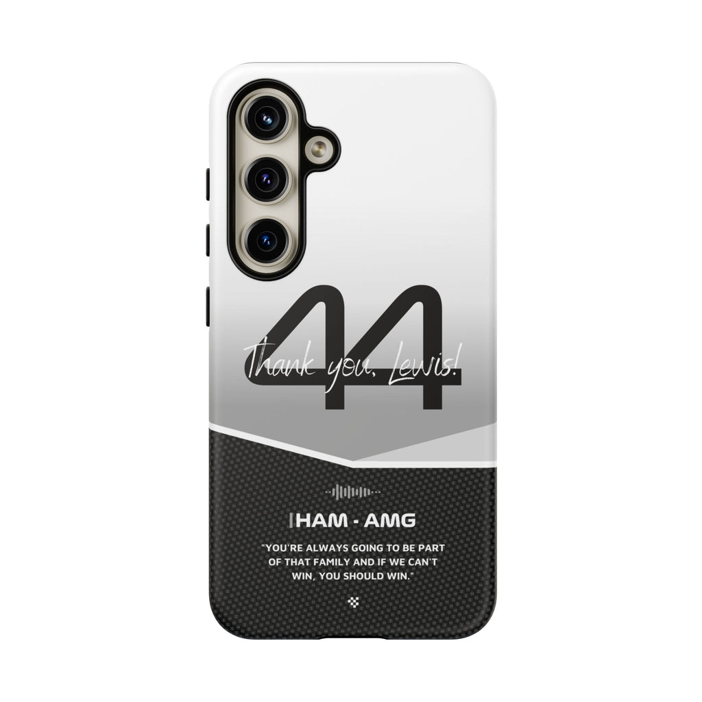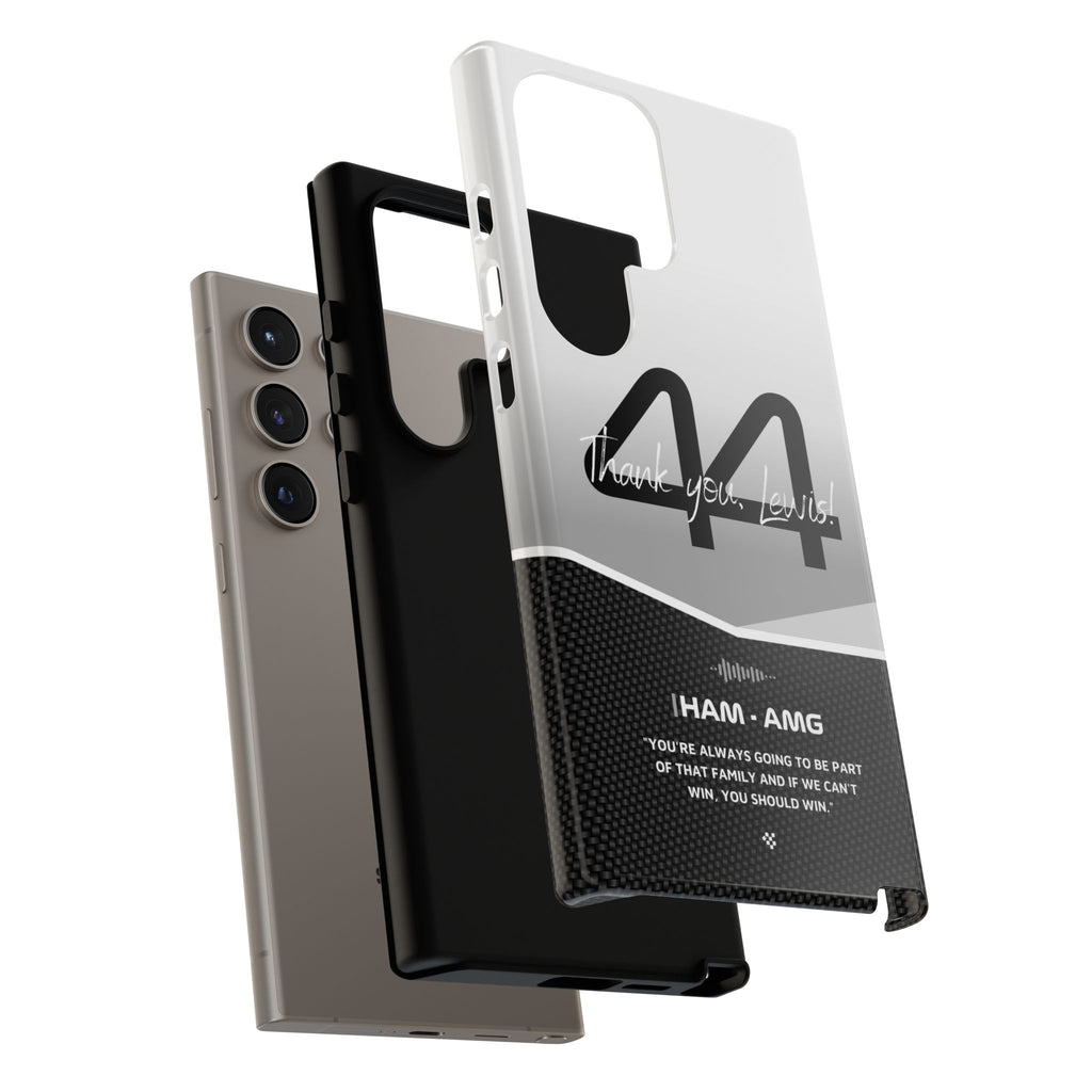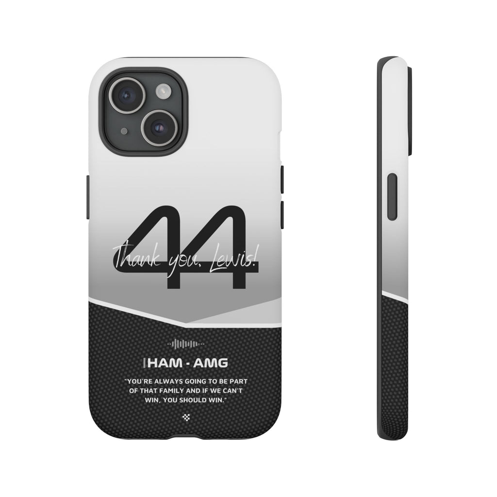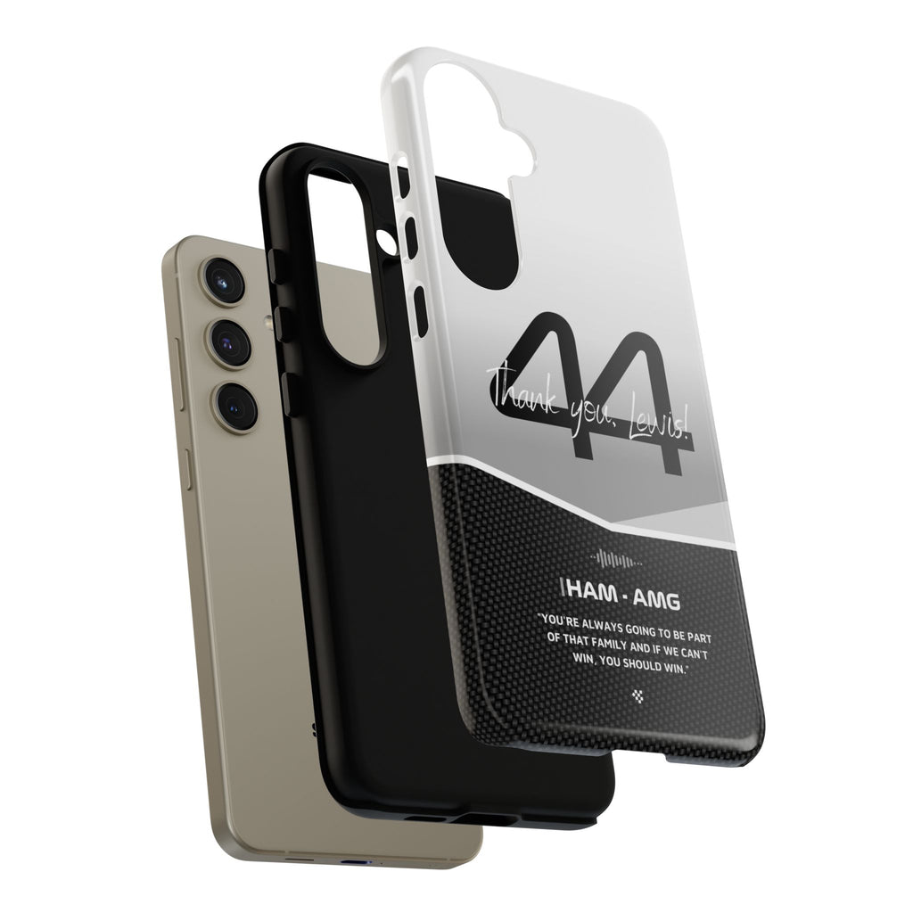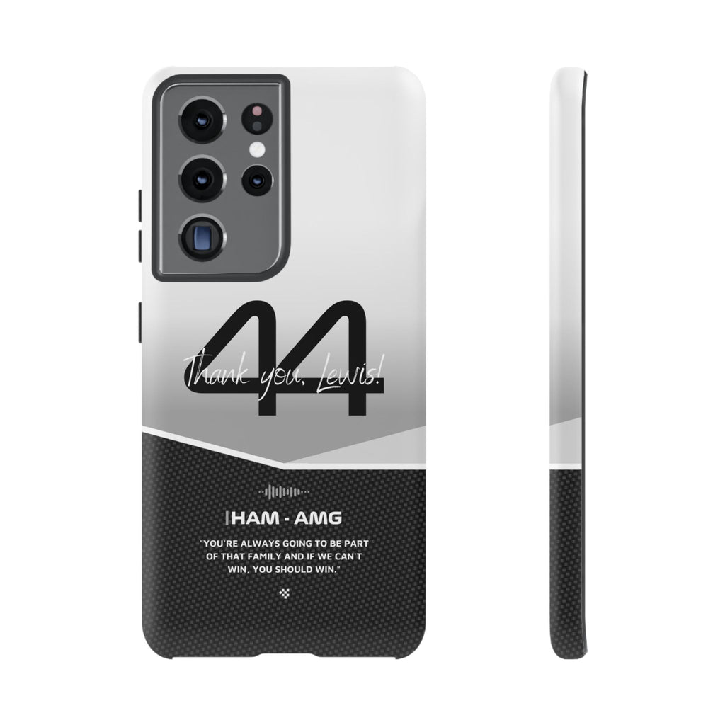 The end of an era... Designed for true Formula 1 fans, the Lewis Hamilton F1 2024 Farewell Phone Case features his iconic #44 race car number alongside the 'Thank you, Lewis!' design. But that's not all - it also proudly showcases an iconic quote that you can personalize. Whether you're cheering from the grandstands or watching from home, this case is a must-have for every Hamilton fan.