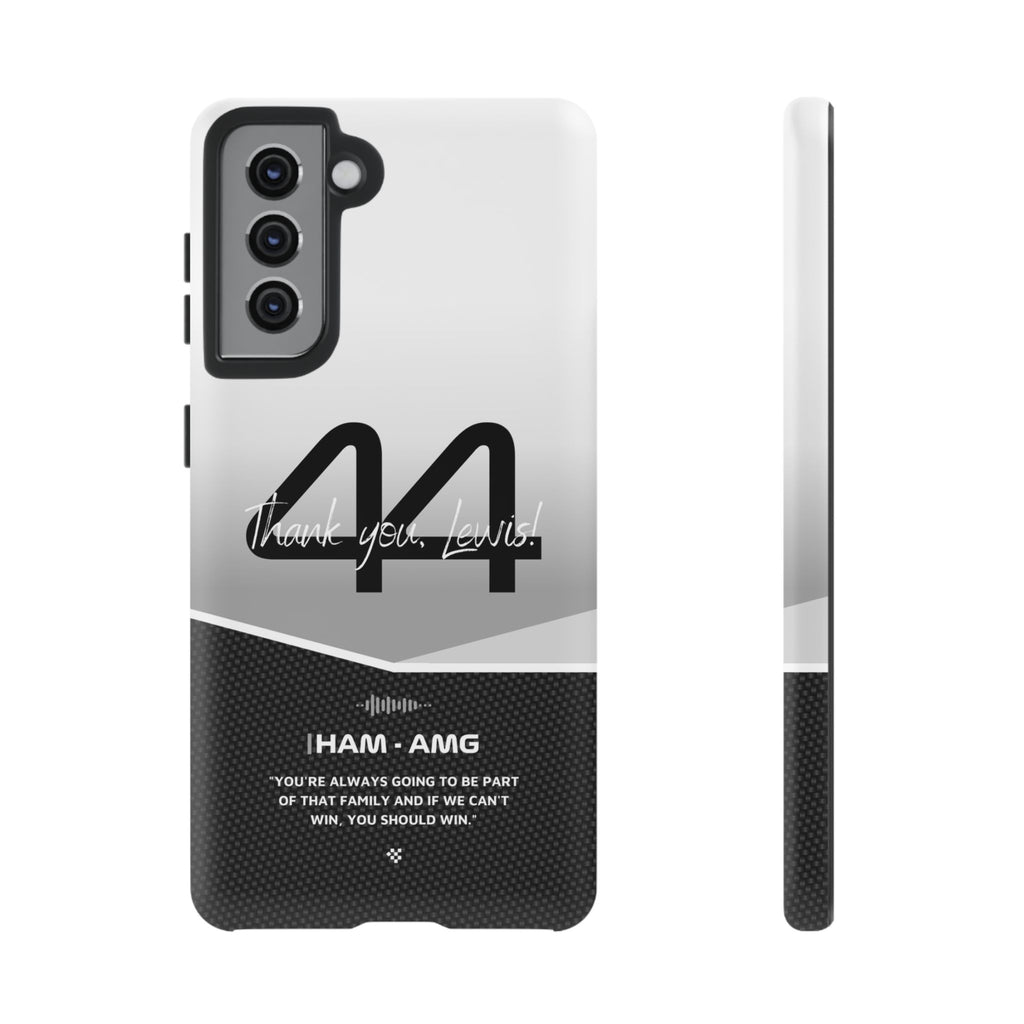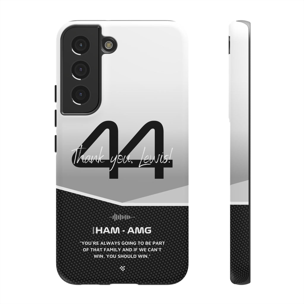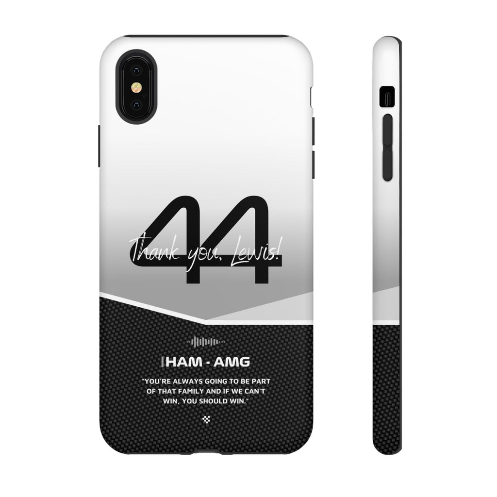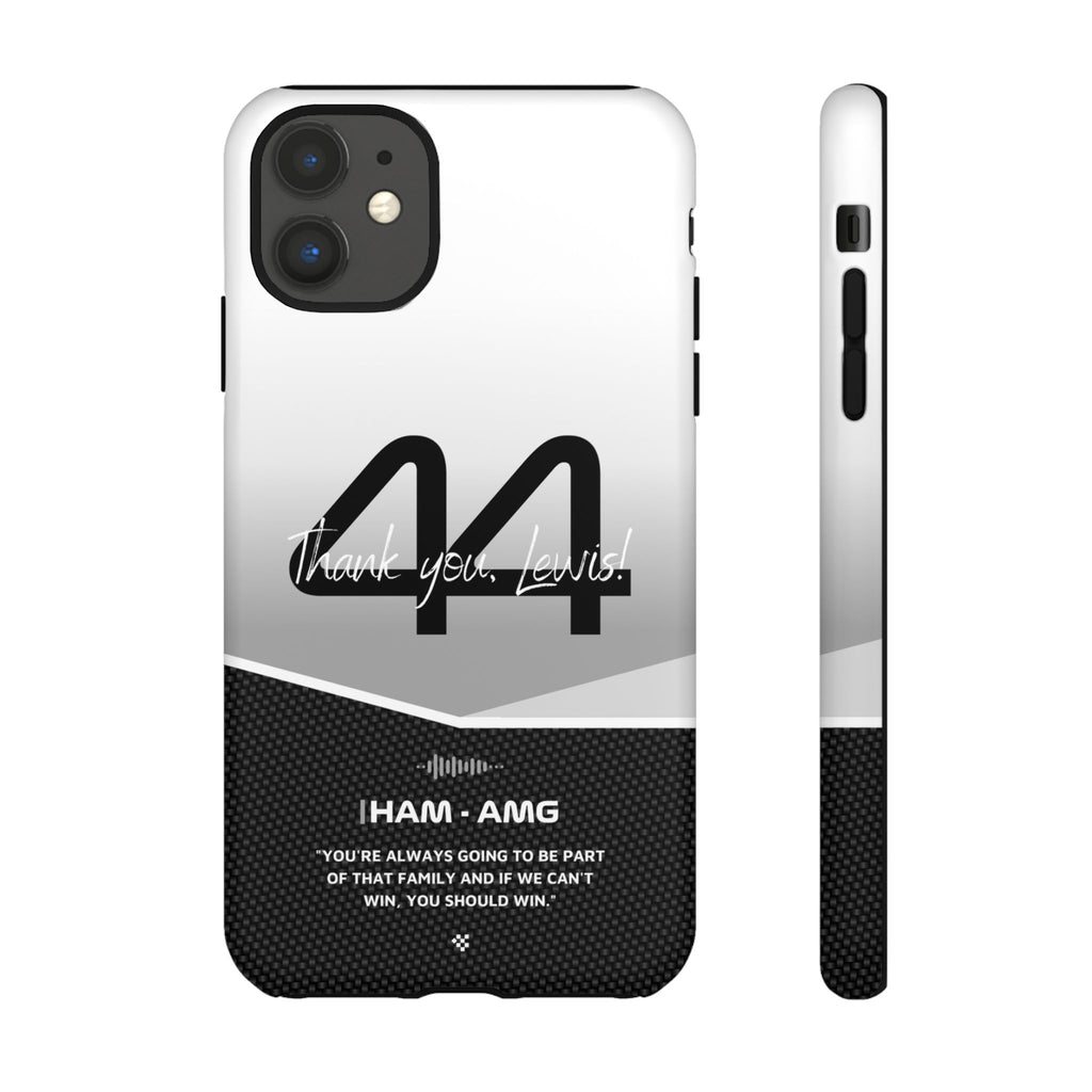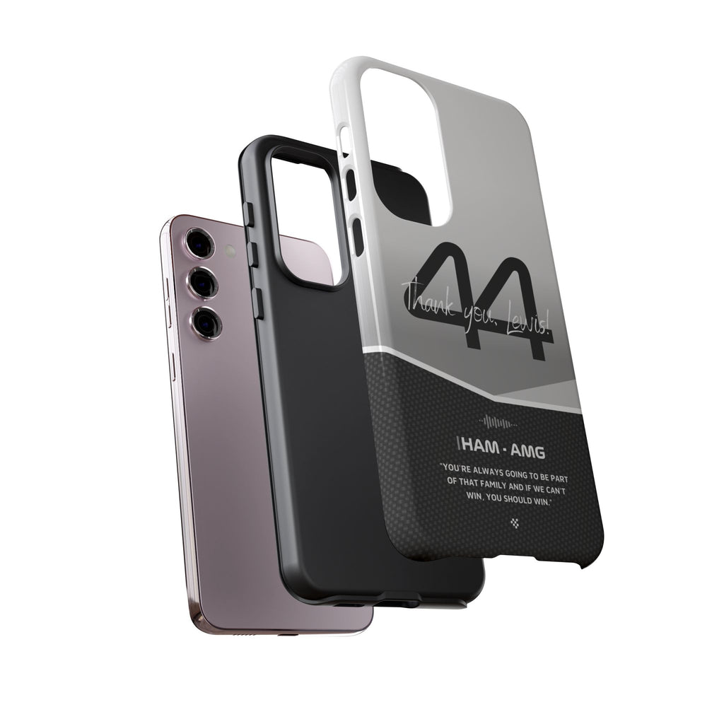 The end of an era... Designed for true Formula 1 fans, the Lewis Hamilton F1 2024 Farewell Phone Case features his iconic #44 race car number alongside the 'Thank you, Lewis!' design. But that's not all - it also proudly showcases an iconic quote that you can personalize. Whether you're cheering from the grandstands or watching from home, this case is a must-have for every Hamilton fan.
