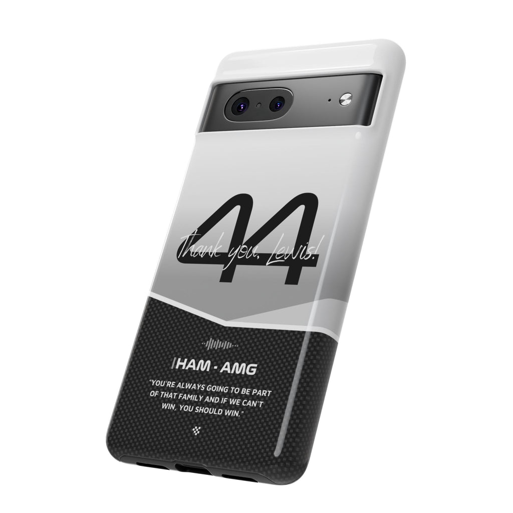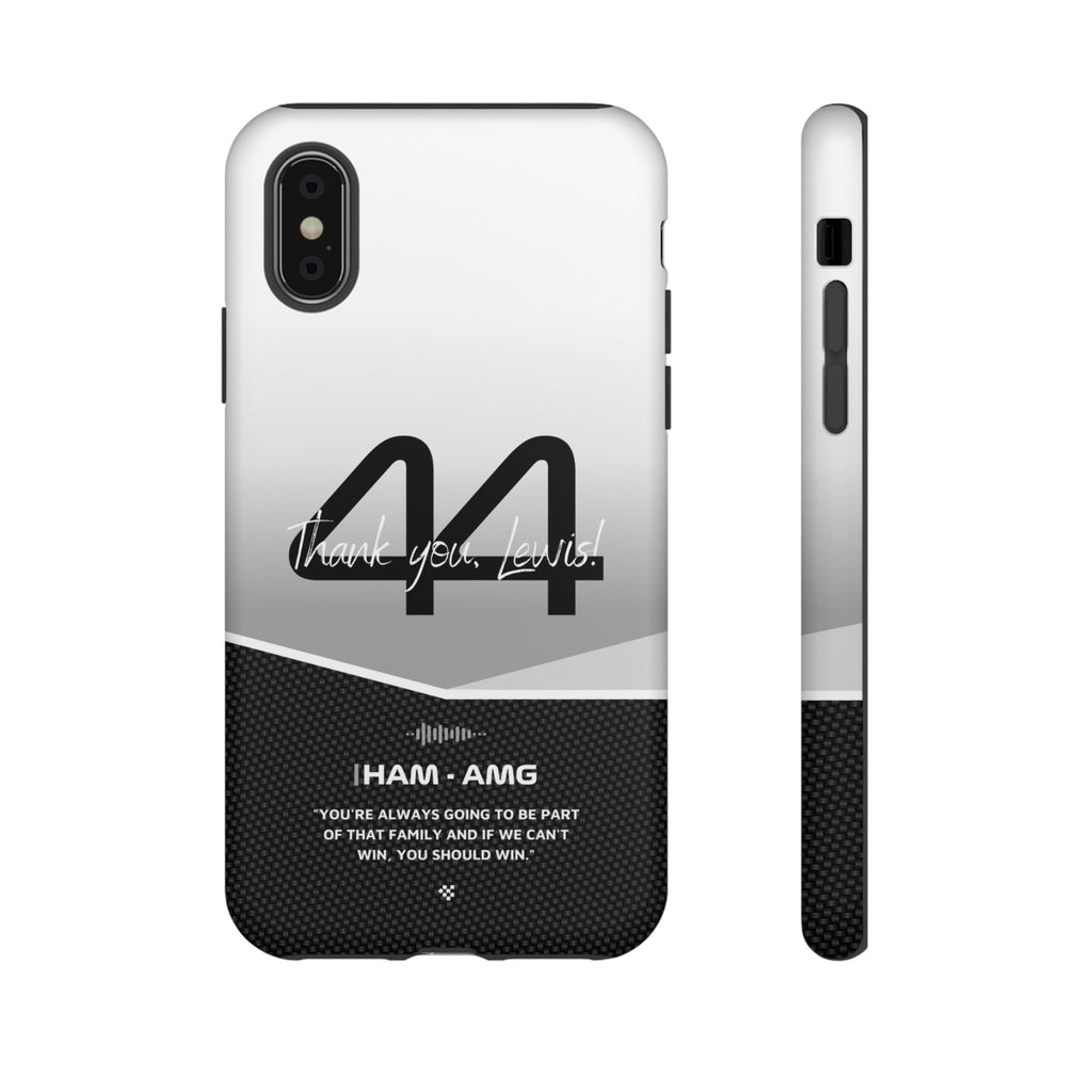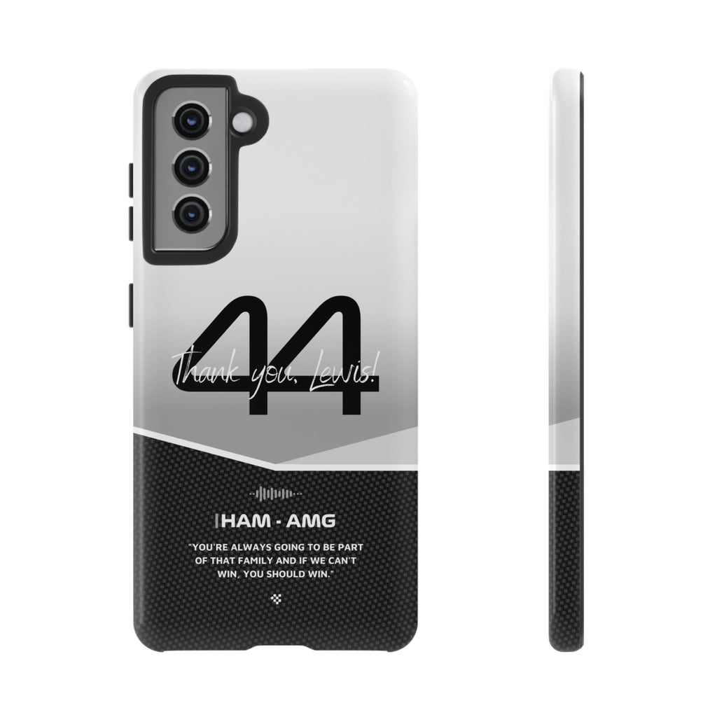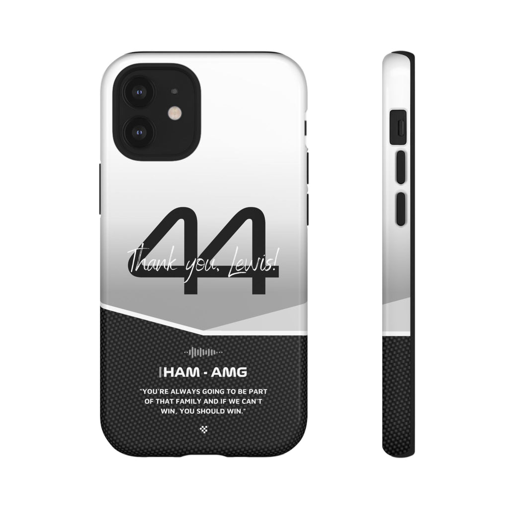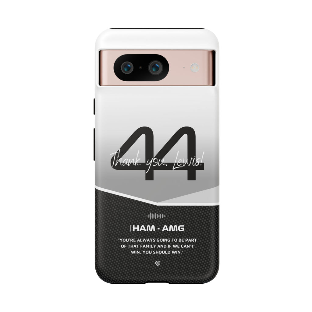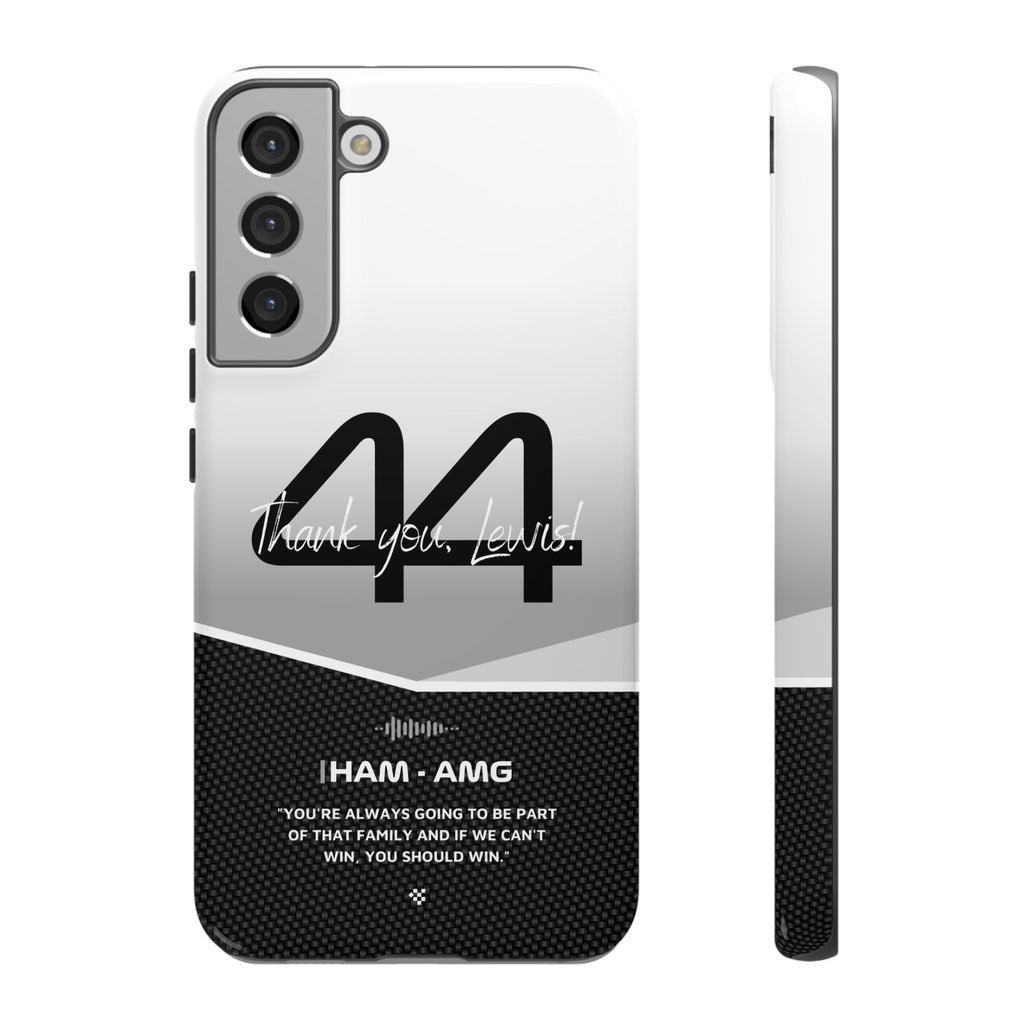 The end of an era... Designed for true Formula 1 fans, the Lewis Hamilton F1 2024 Farewell Phone Case features his iconic #44 race car number alongside the 'Thank you, Lewis!' design. But that's not all - it also proudly showcases an iconic quote that you can personalize. Whether you're cheering from the grandstands or watching from home, this case is a must-have for every Hamilton fan.
