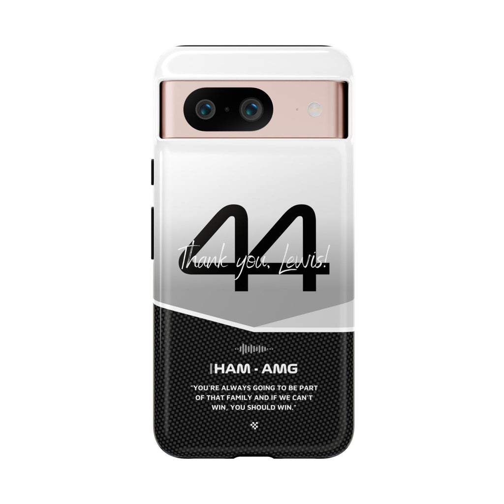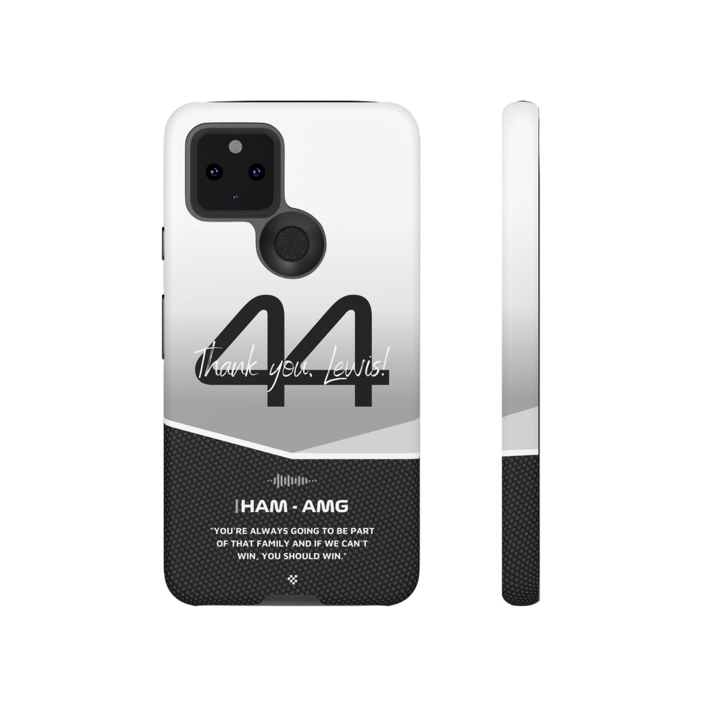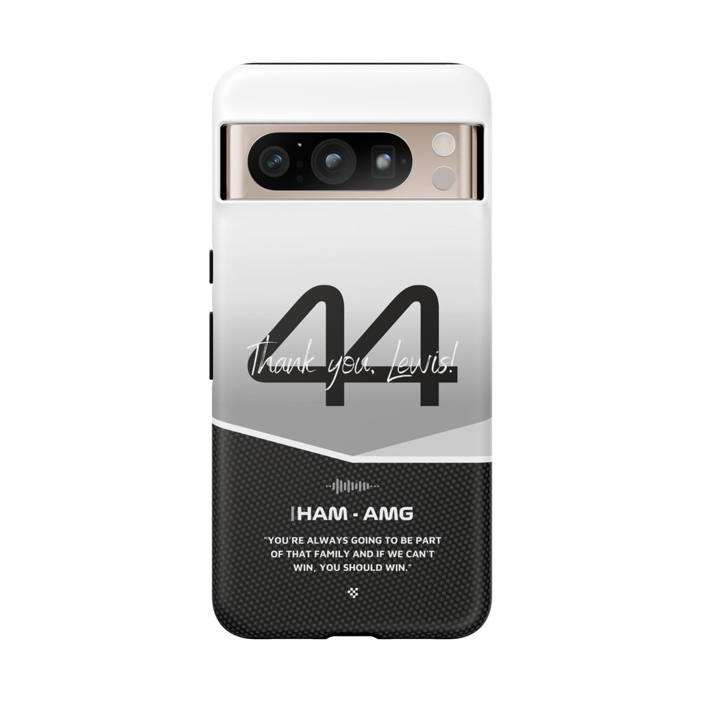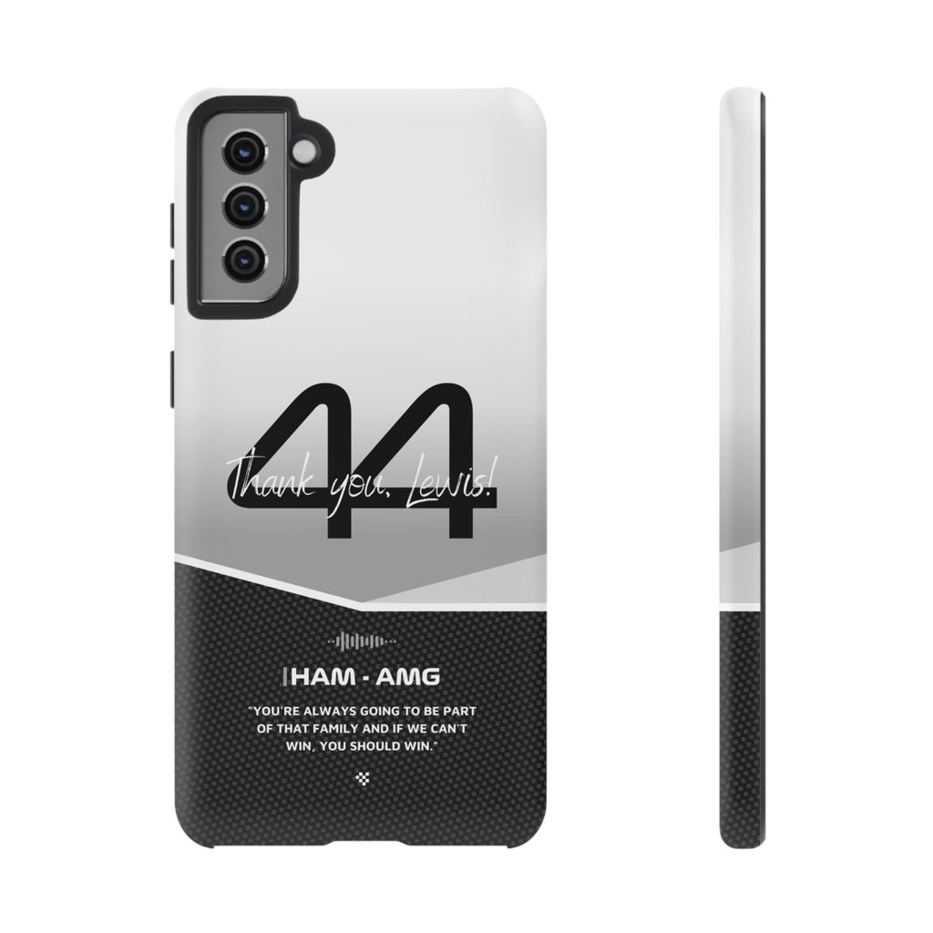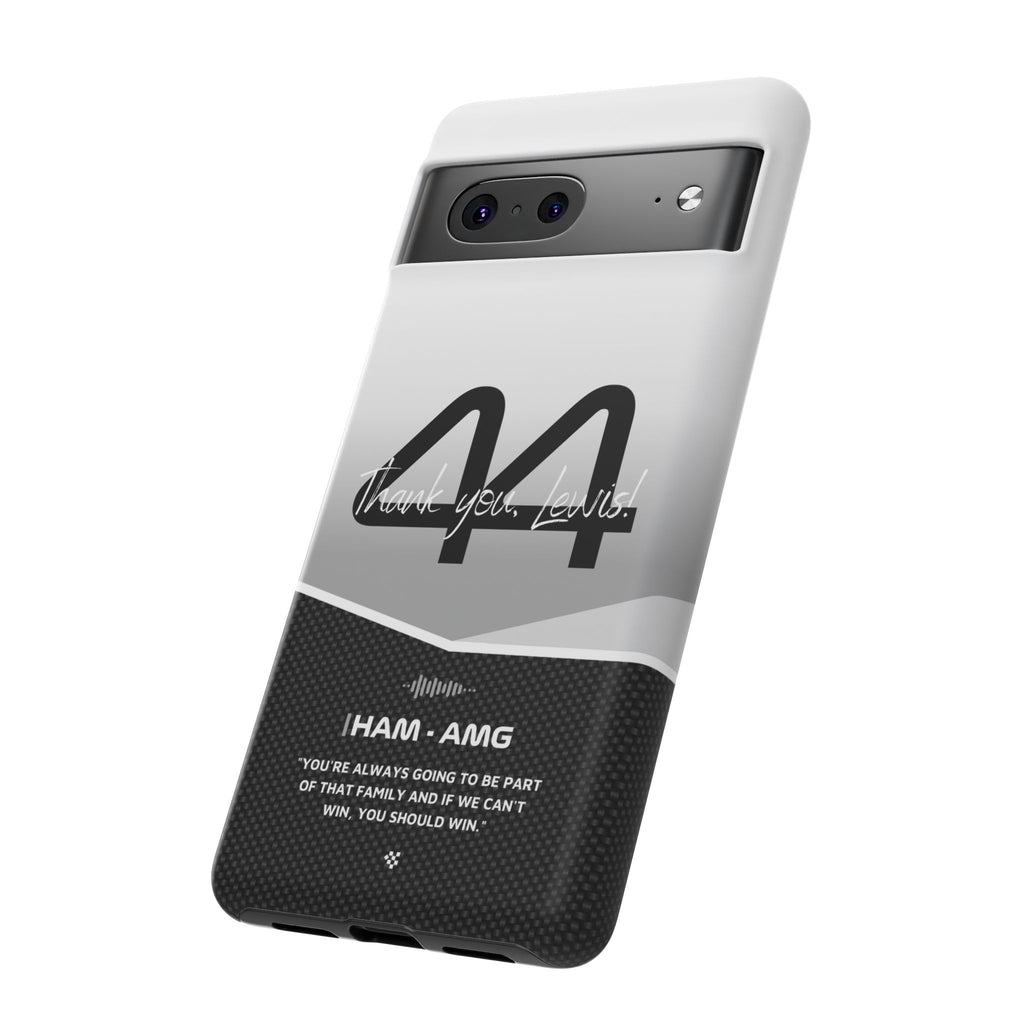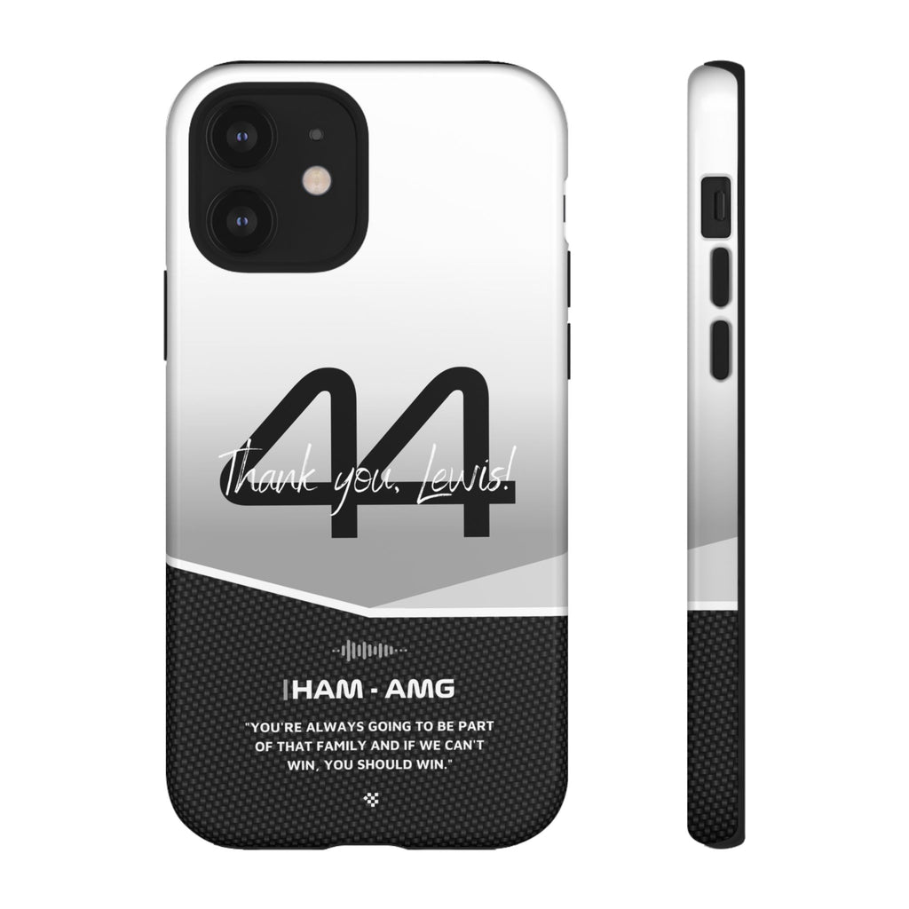 The end of an era... Designed for true Formula 1 fans, the Lewis Hamilton F1 2024 Farewell Phone Case features his iconic #44 race car number alongside the 'Thank you, Lewis!' design. But that's not all - it also proudly showcases an iconic quote that you can personalize. Whether you're cheering from the grandstands or watching from home, this case is a must-have for every Hamilton fan.