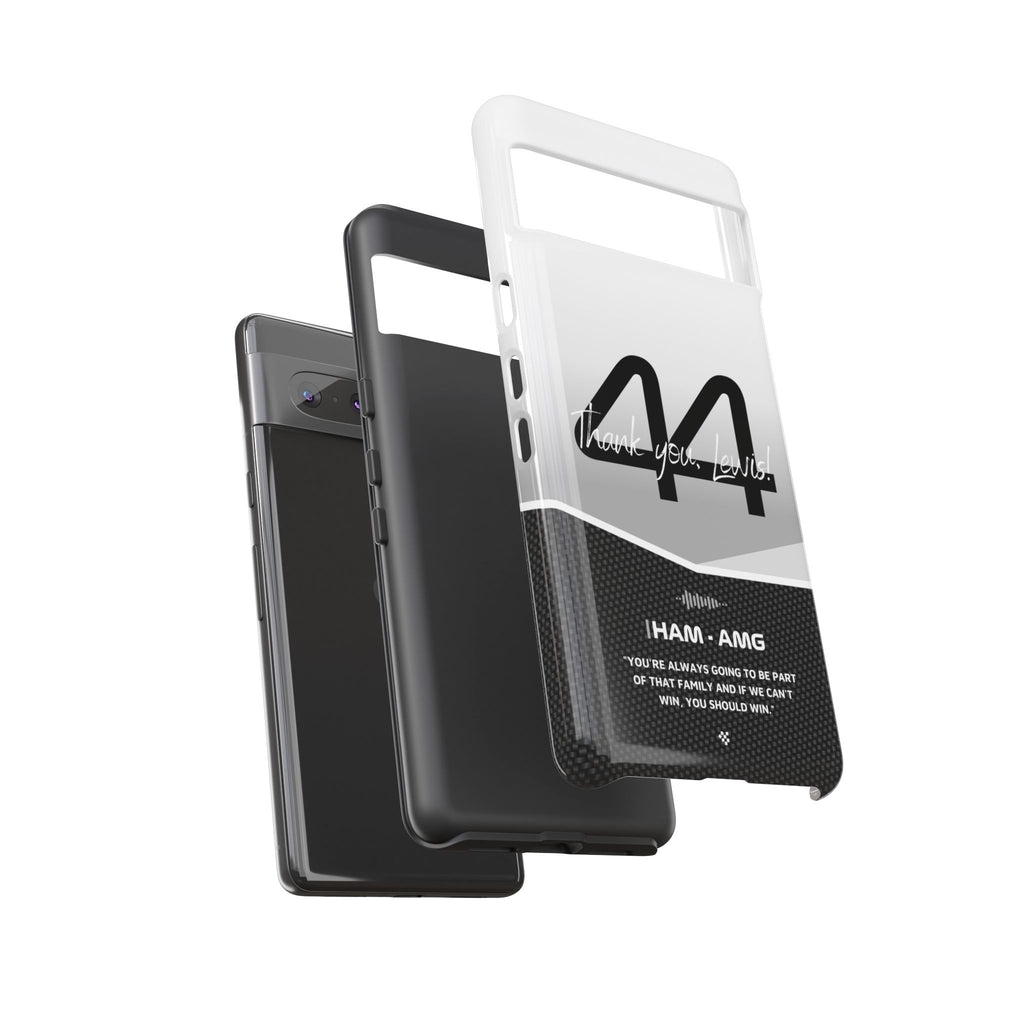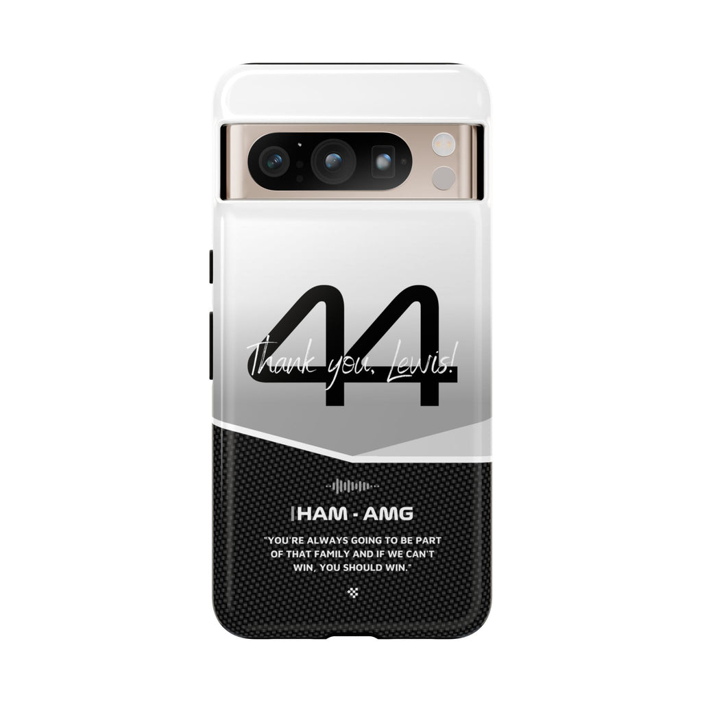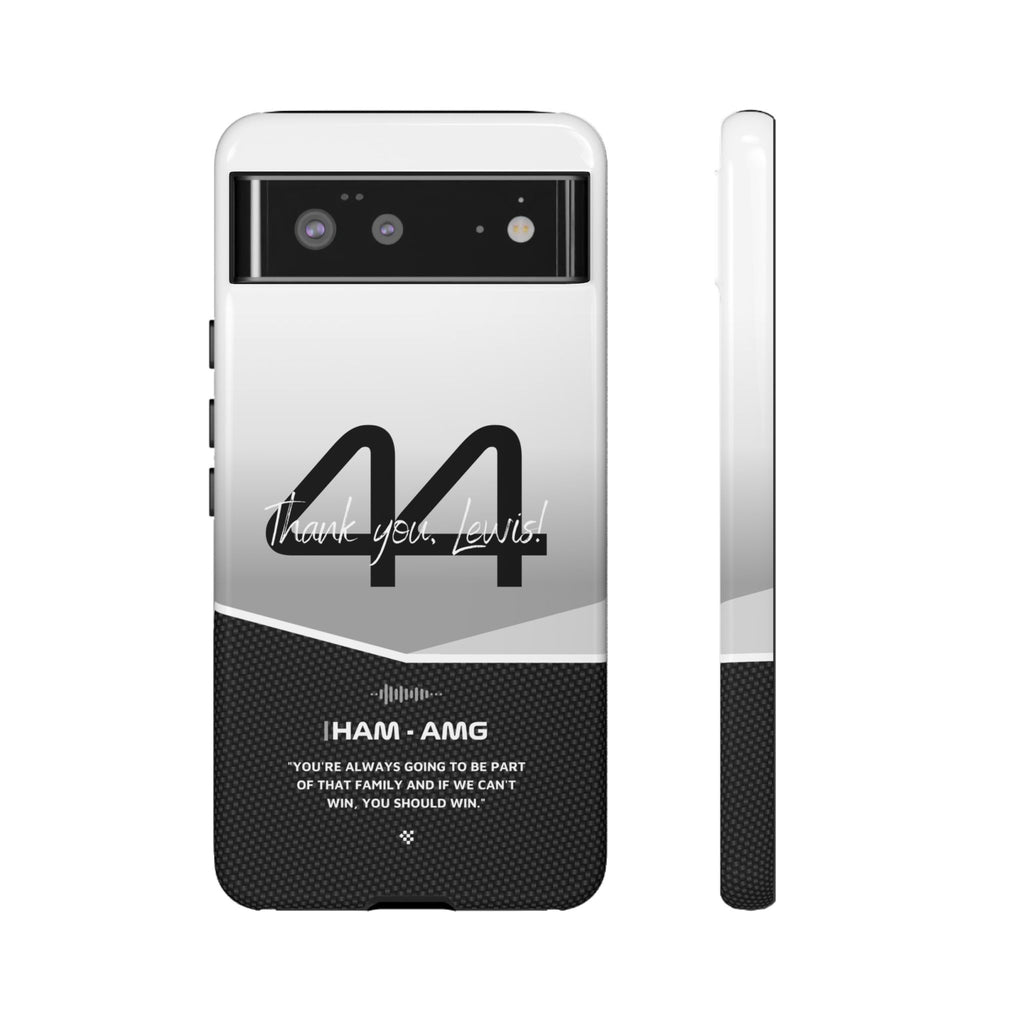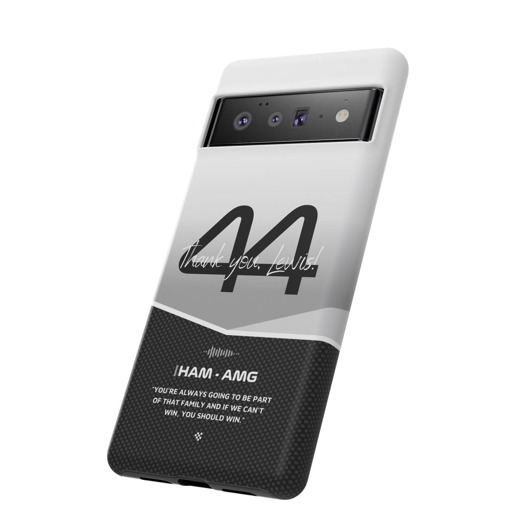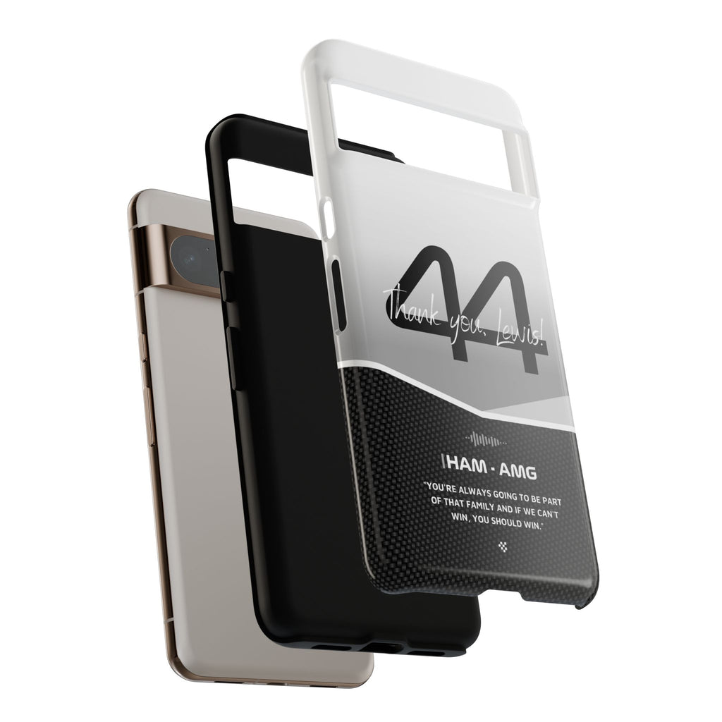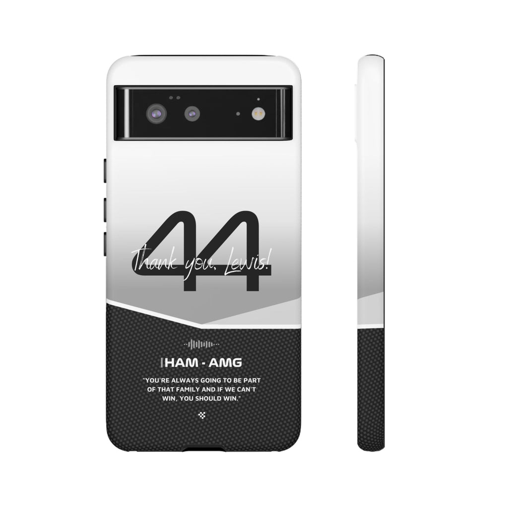 The end of an era... Designed for true Formula 1 fans, the Lewis Hamilton F1 2024 Farewell Phone Case features his iconic #44 race car number alongside the 'Thank you, Lewis!' design. But that's not all - it also proudly showcases an iconic quote that you can personalize. Whether you're cheering from the grandstands or watching from home, this case is a must-have for every Hamilton fan.