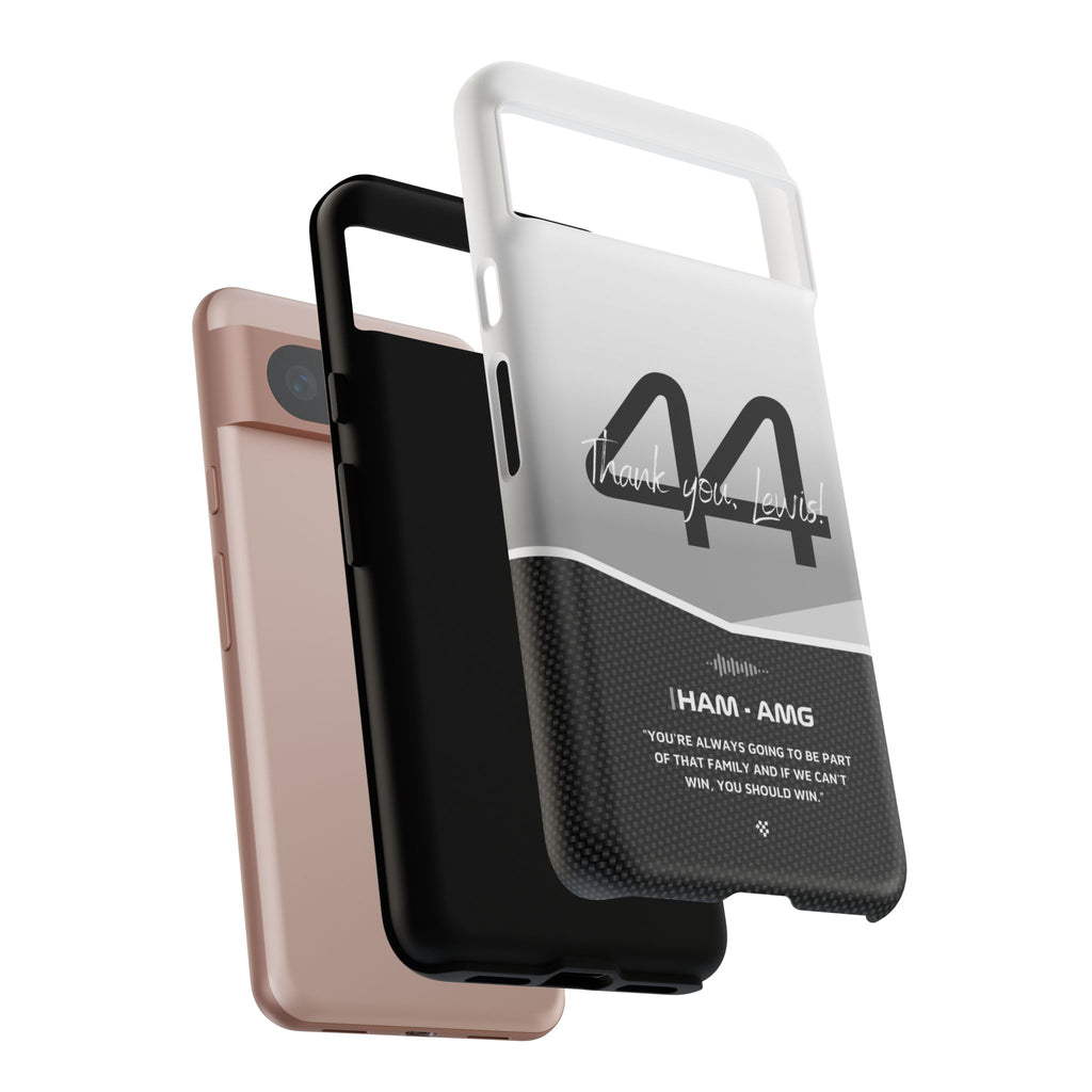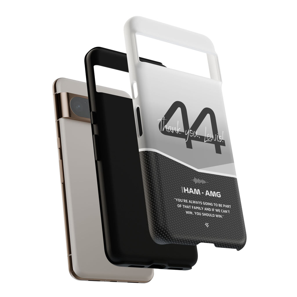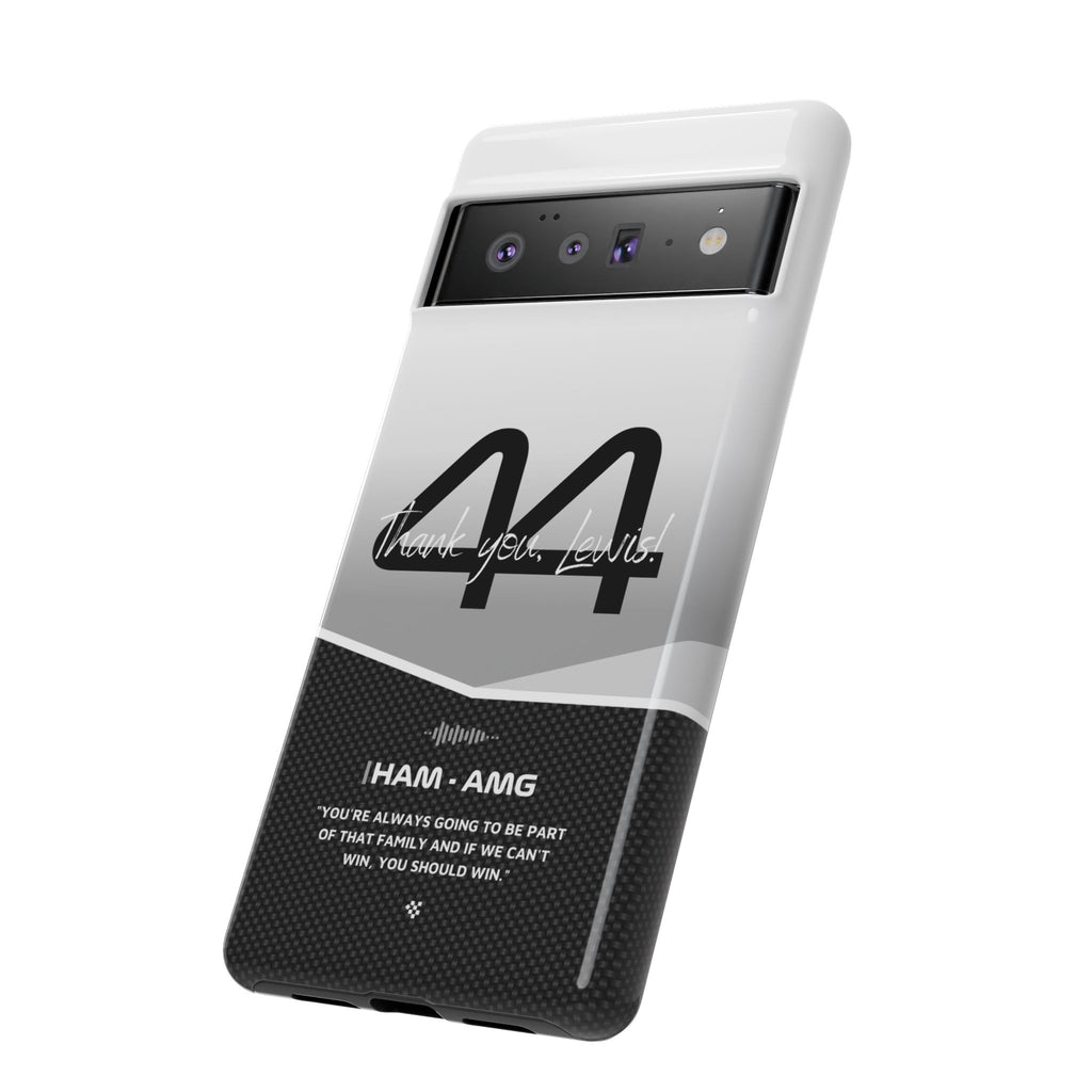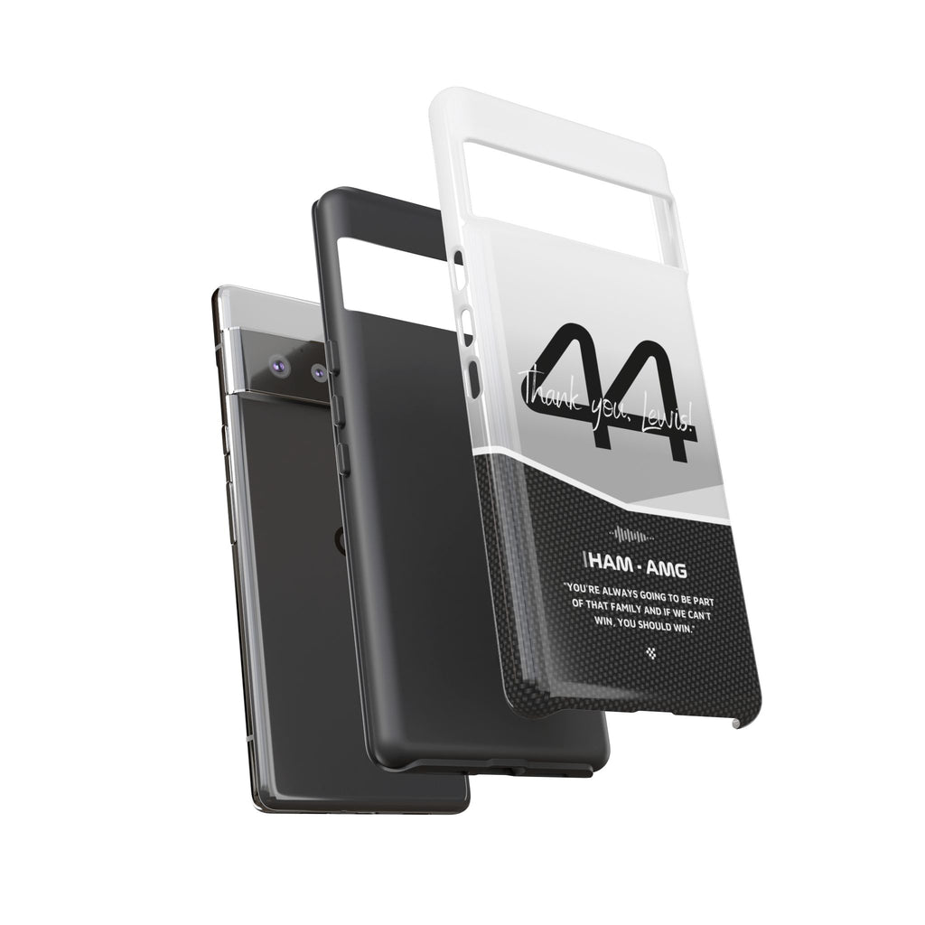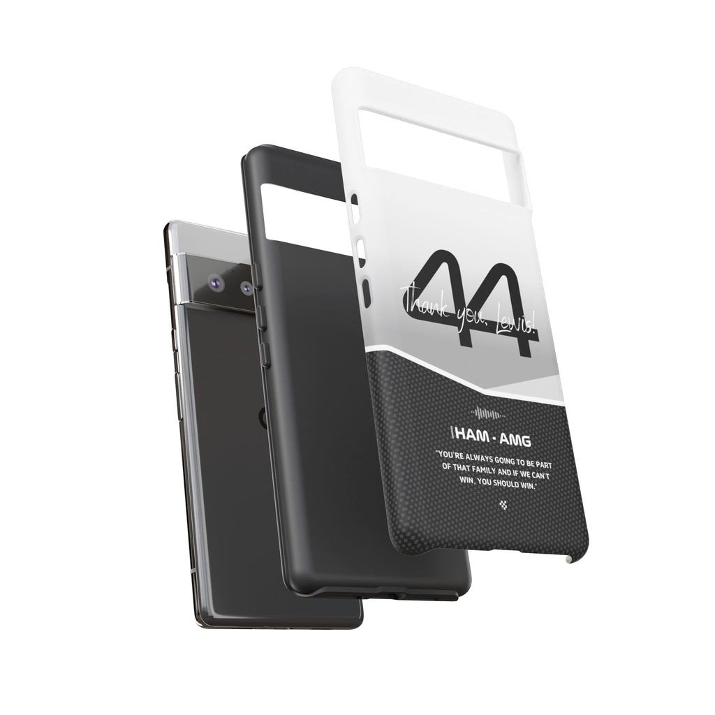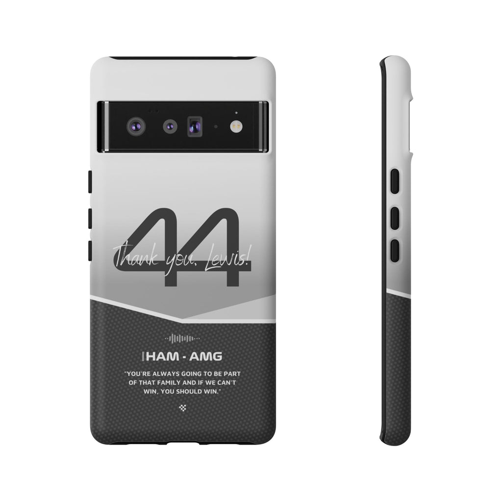 The end of an era... Designed for true Formula 1 fans, the Lewis Hamilton F1 2024 Farewell Phone Case features his iconic #44 race car number alongside the 'Thank you, Lewis!' design. But that's not all - it also proudly showcases an iconic quote that you can personalize. Whether you're cheering from the grandstands or watching from home, this case is a must-have for every Hamilton fan.