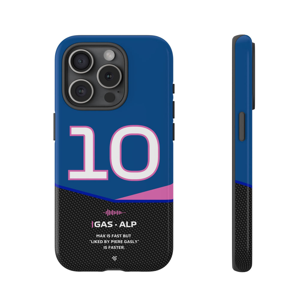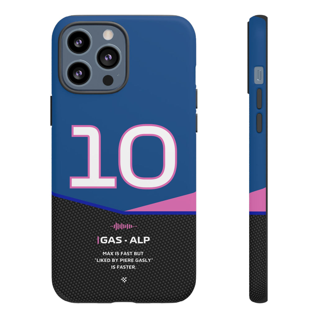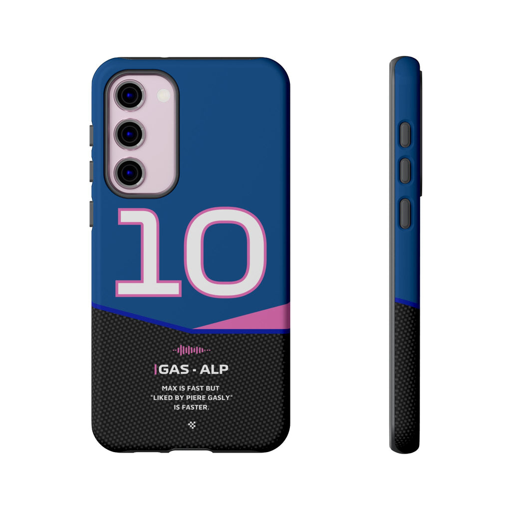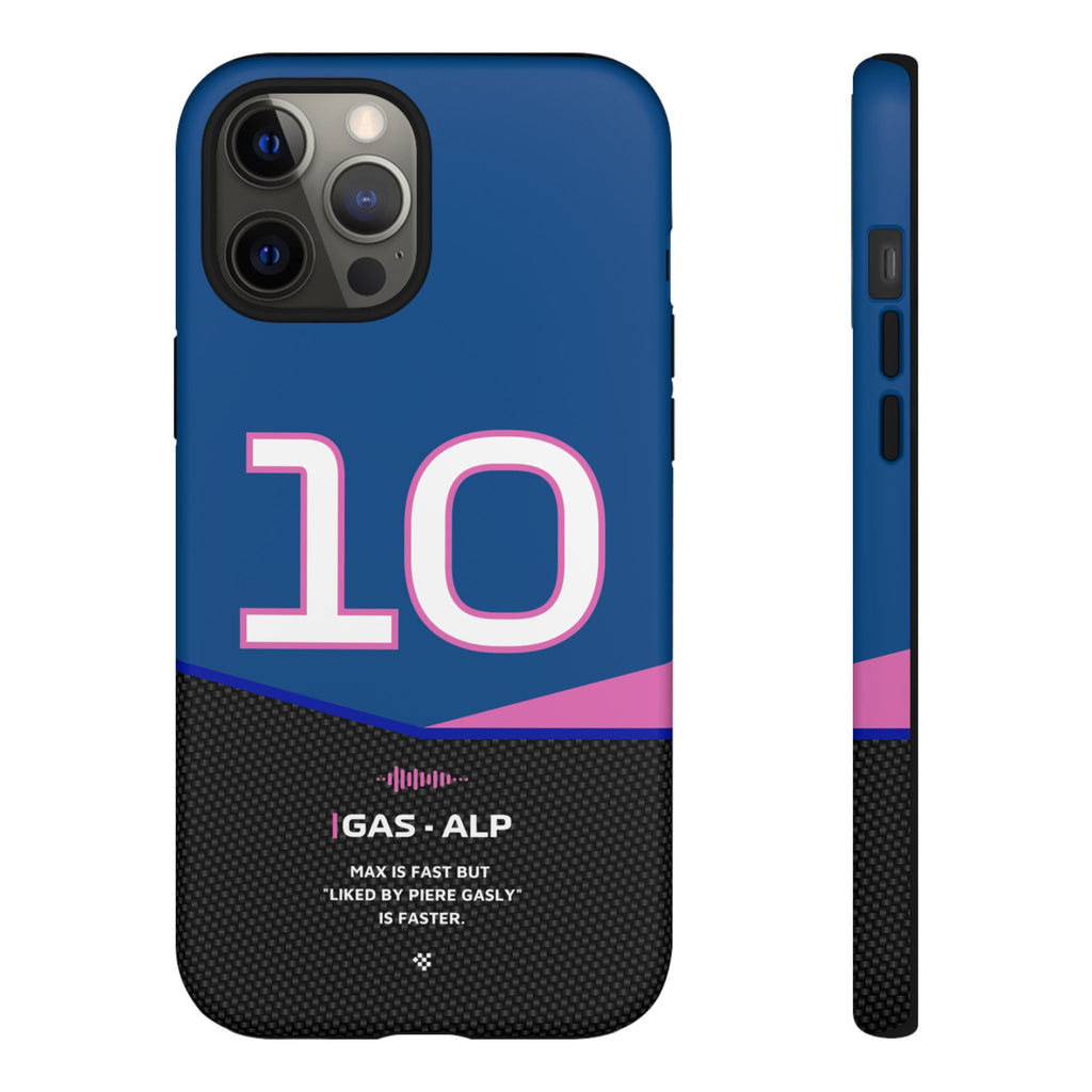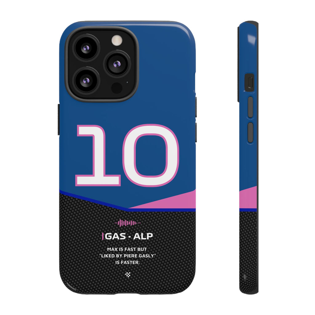 Get ready to support Pierre in the 2024 Formula 1 season with the Pierre Gasly F1 2024 Helmet Phone Case. Designed for true Formula 1 fans, this case features his iconic #10 race car number alongside the striking Alpine livery colors. But that's not all - it also proudly showcases an iconic quote that you can personalize. Whether you're cheering from the grandstands or watching from home, this case is a must-have for every Gasly fan.