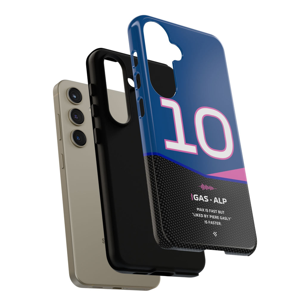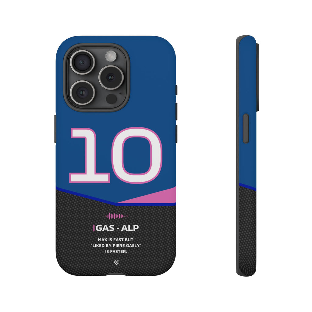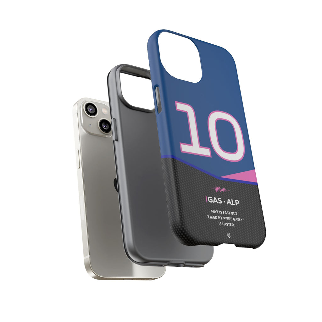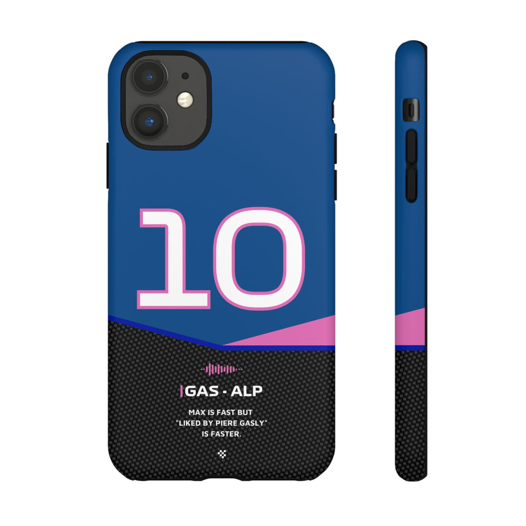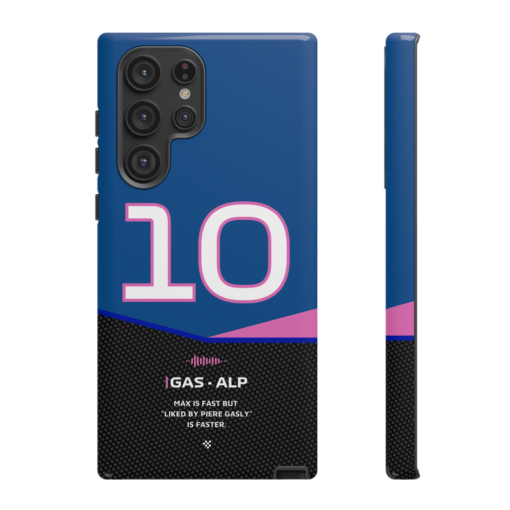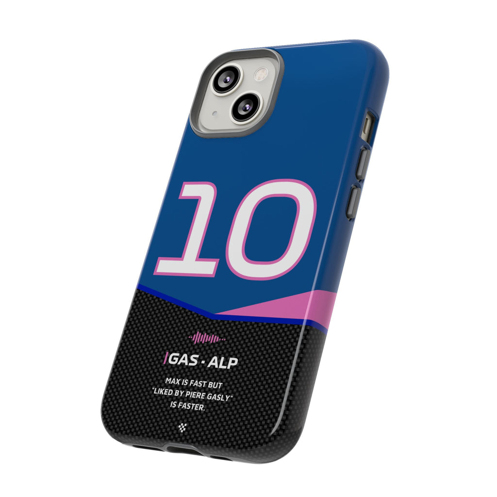 Get ready to support Pierre in the 2024 Formula 1 season with the Pierre Gasly F1 2024 Helmet Phone Case. Designed for true Formula 1 fans, this case features his iconic #10 race car number alongside the striking Alpine livery colors. But that's not all - it also proudly showcases an iconic quote that you can personalize. Whether you're cheering from the grandstands or watching from home, this case is a must-have for every Gasly fan.