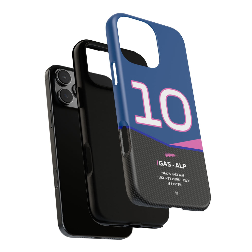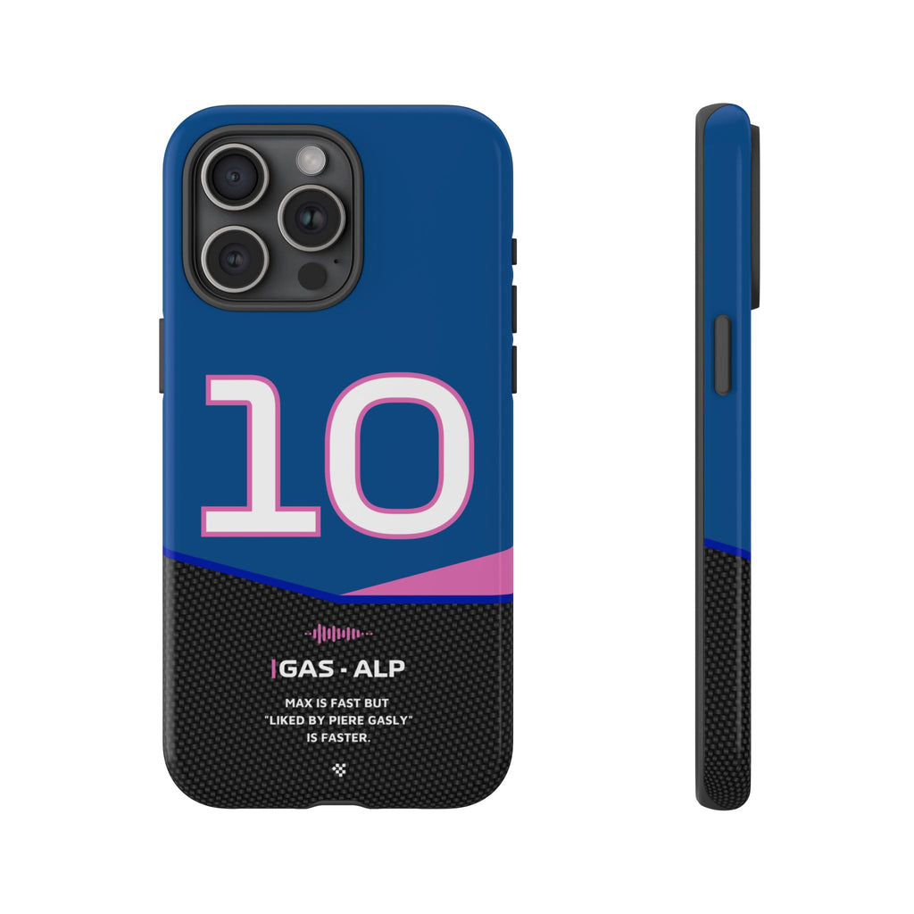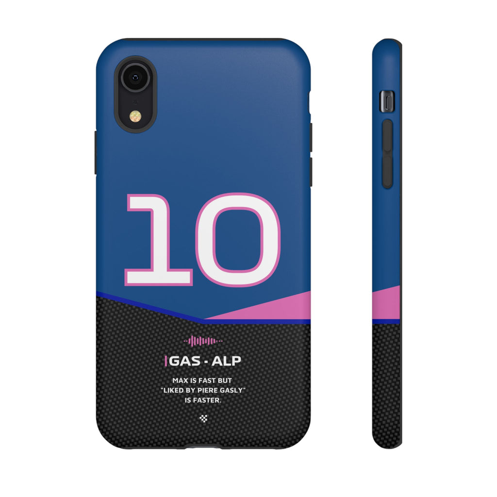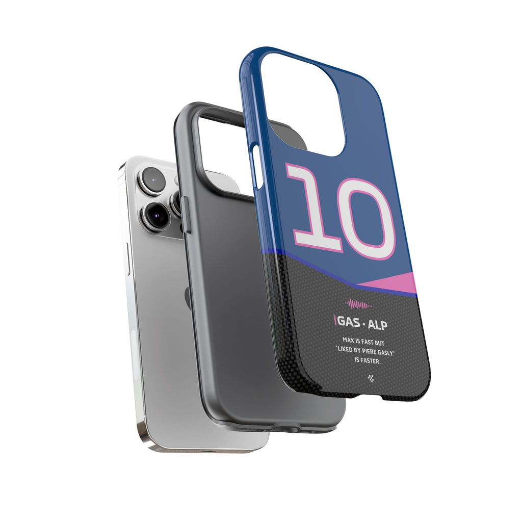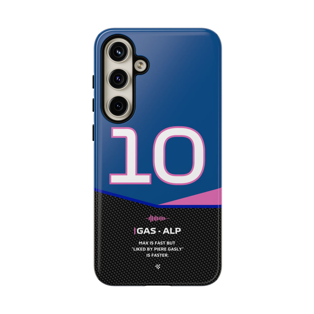 Get ready to support Pierre in the 2024 Formula 1 season with the Pierre Gasly F1 2024 Helmet Phone Case. Designed for true Formula 1 fans, this case features his iconic #10 race car number alongside the striking Alpine livery colors. But that's not all - it also proudly showcases an iconic quote that you can personalize. Whether you're cheering from the grandstands or watching from home, this case is a must-have for every Gasly fan.
