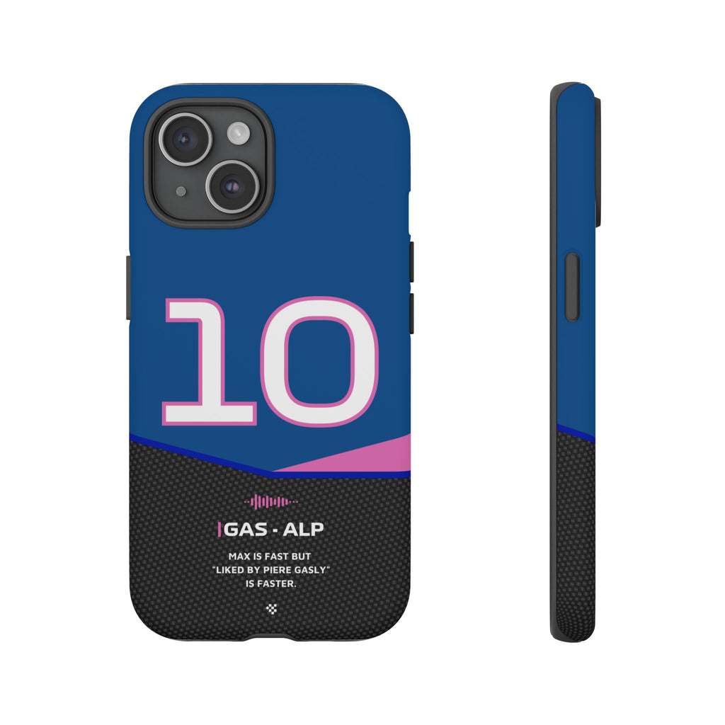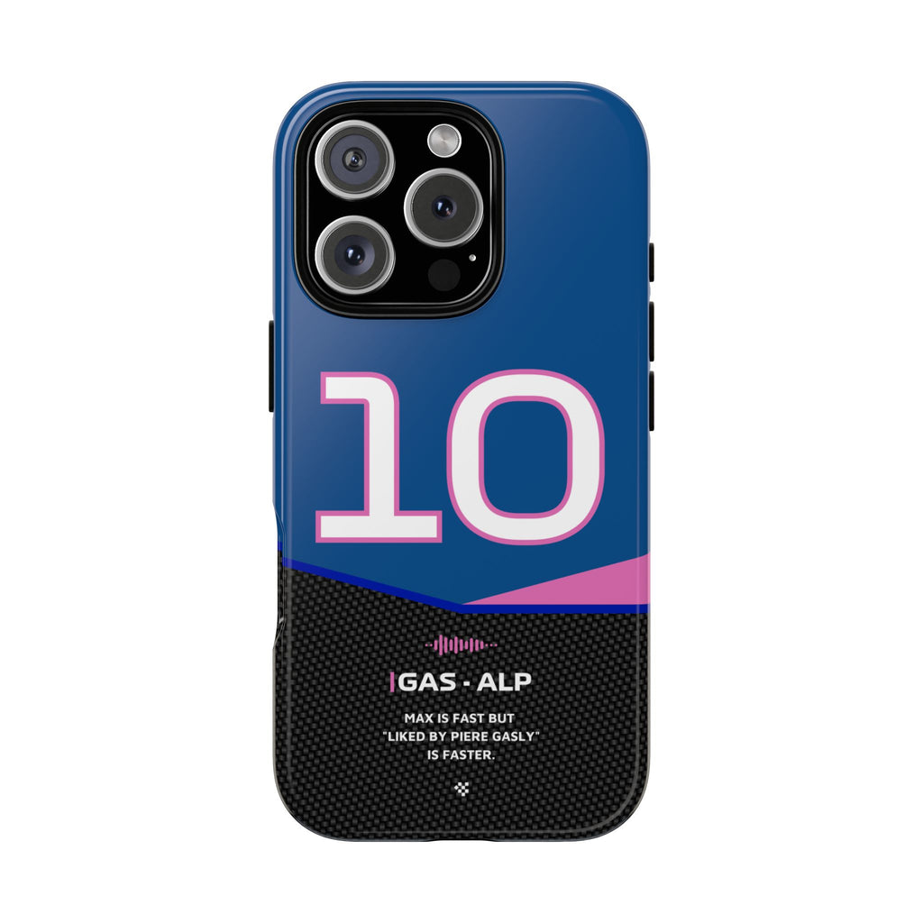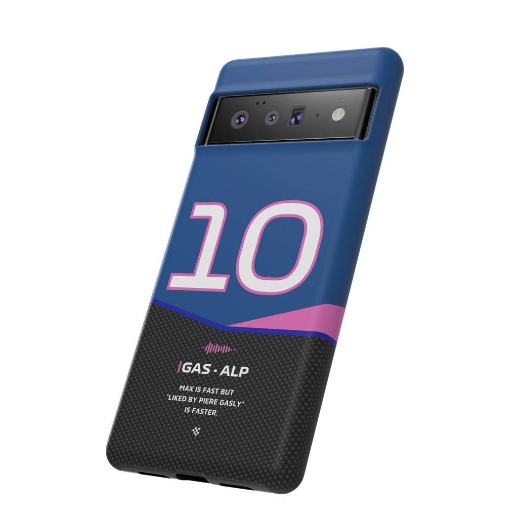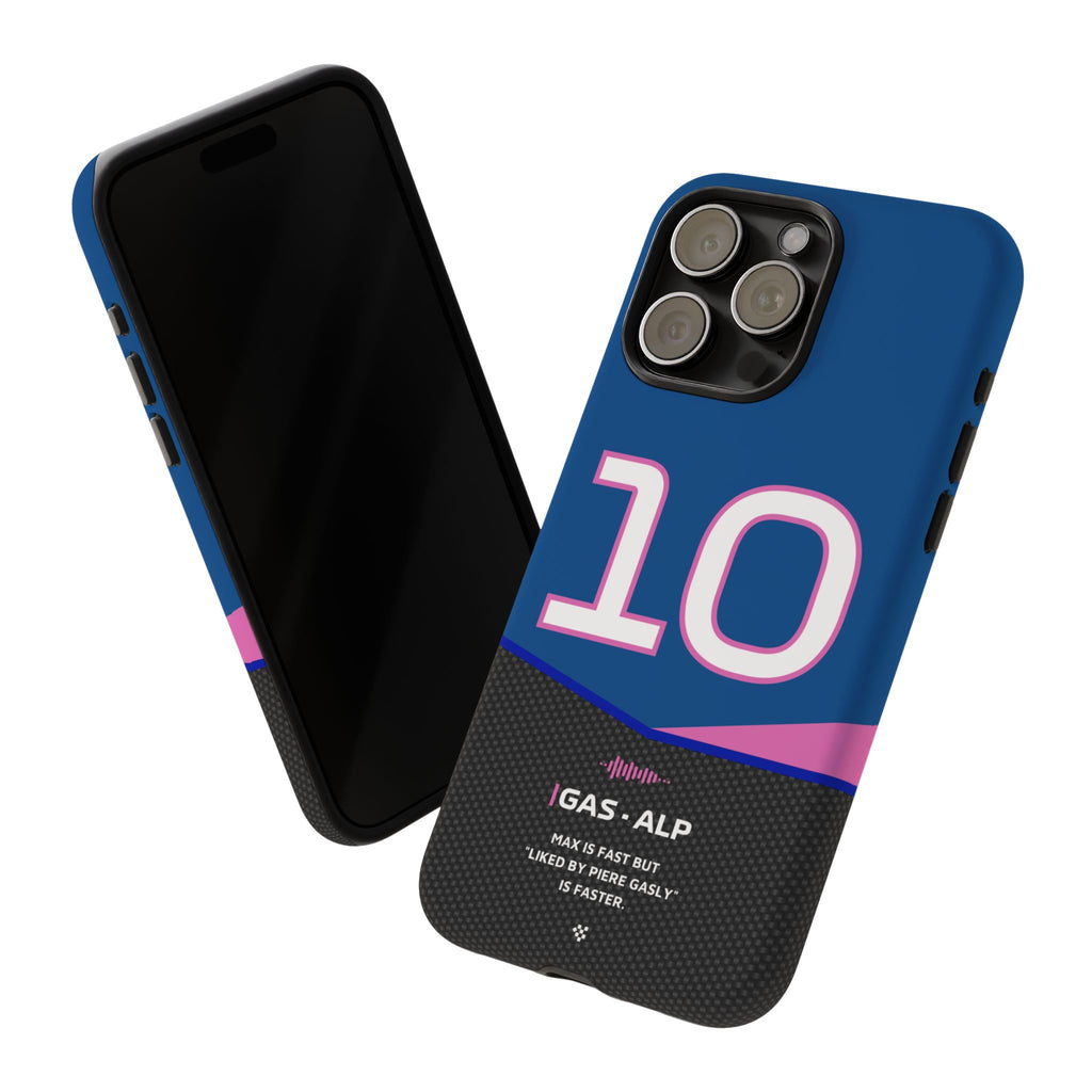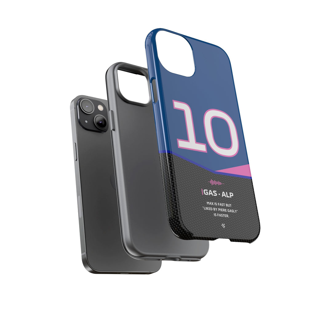 Get ready to support Pierre in the 2024 Formula 1 season with the Pierre Gasly F1 2024 Helmet Phone Case. Designed for true Formula 1 fans, this case features his iconic #10 race car number alongside the striking Alpine livery colors. But that's not all - it also proudly showcases an iconic quote that you can personalize. Whether you're cheering from the grandstands or watching from home, this case is a must-have for every Gasly fan.