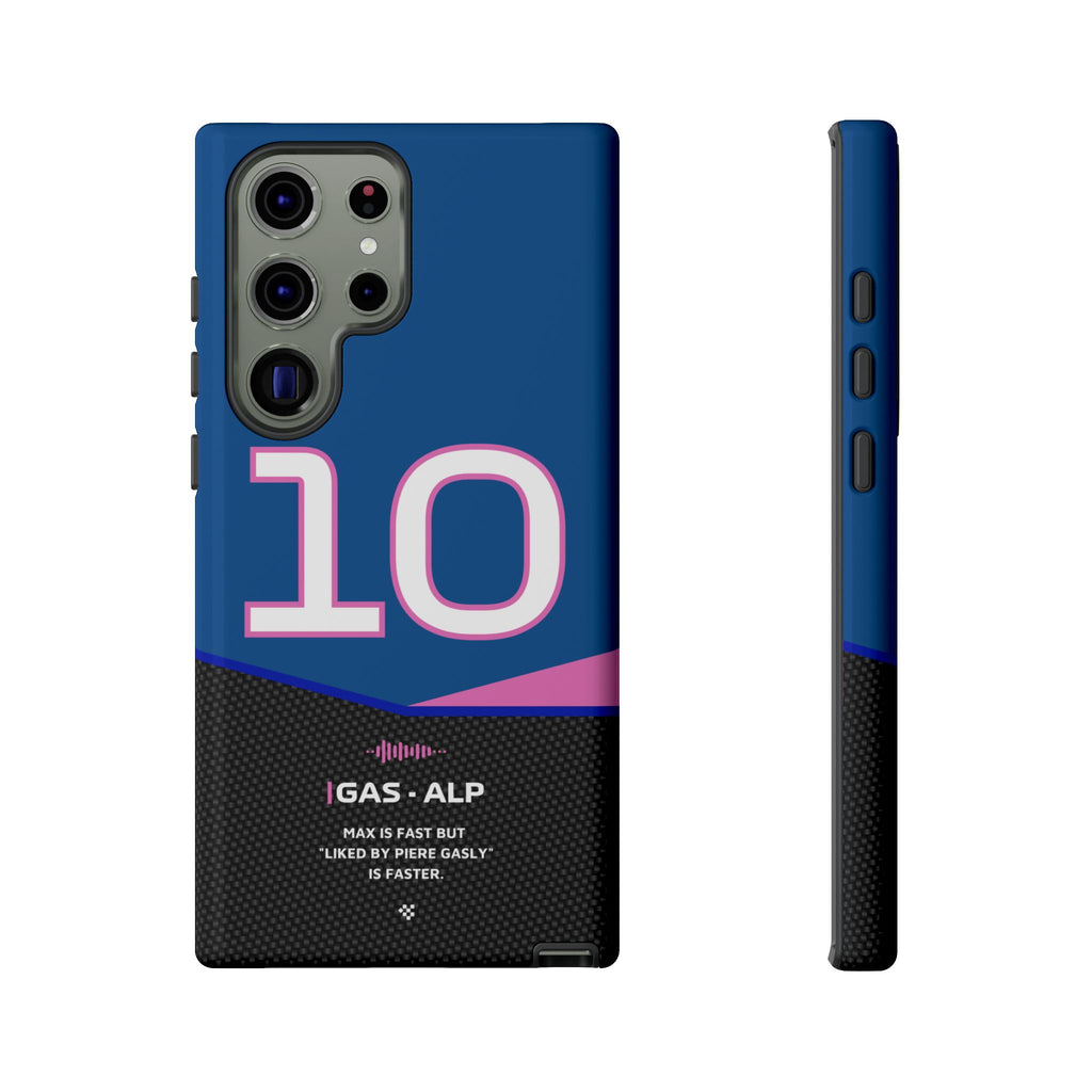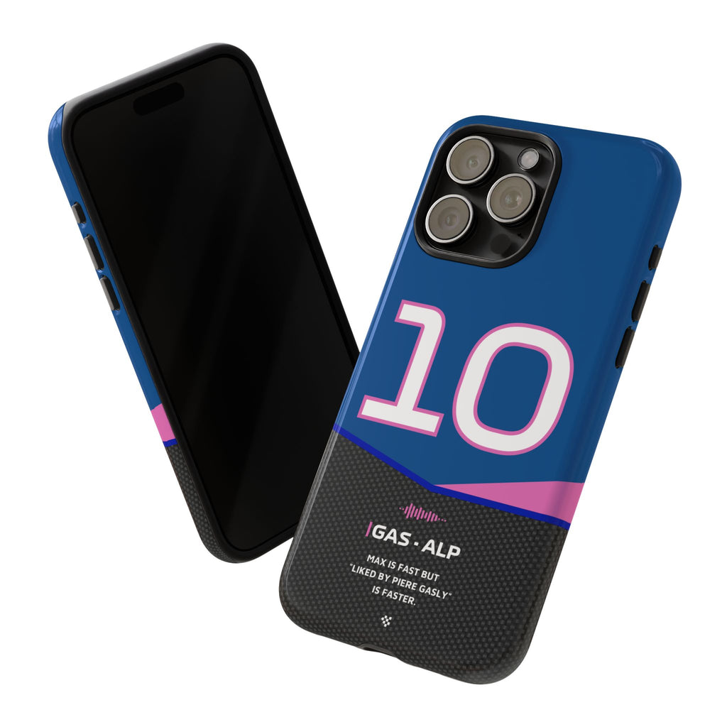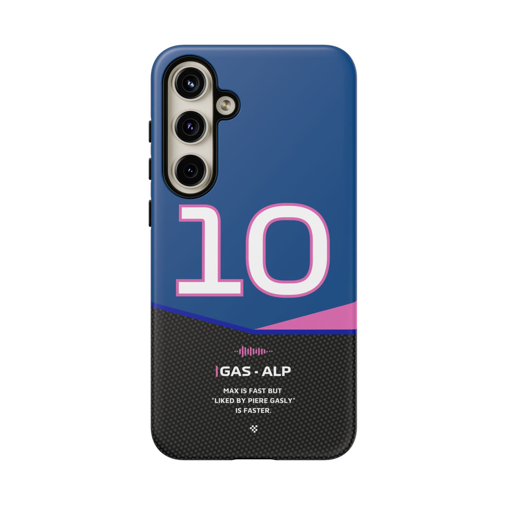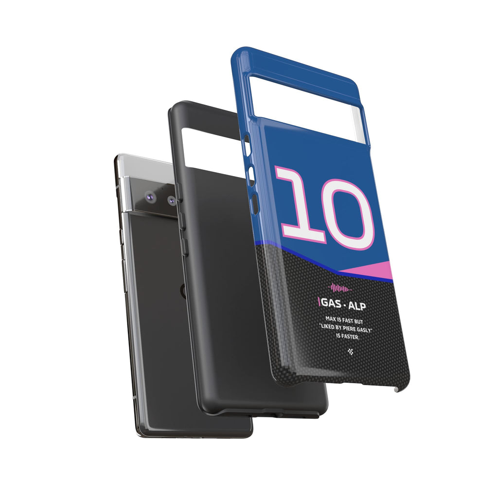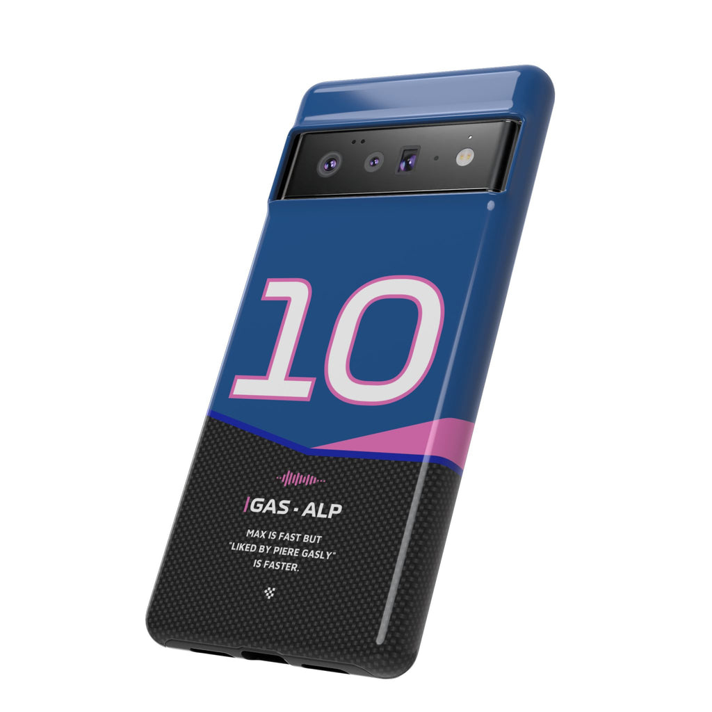 Get ready to support Pierre in the 2024 Formula 1 season with the Pierre Gasly F1 2024 Helmet Phone Case. Designed for true Formula 1 fans, this case features his iconic #10 race car number alongside the striking Alpine livery colors. But that's not all - it also proudly showcases an iconic quote that you can personalize. Whether you're cheering from the grandstands or watching from home, this case is a must-have for every Gasly fan.