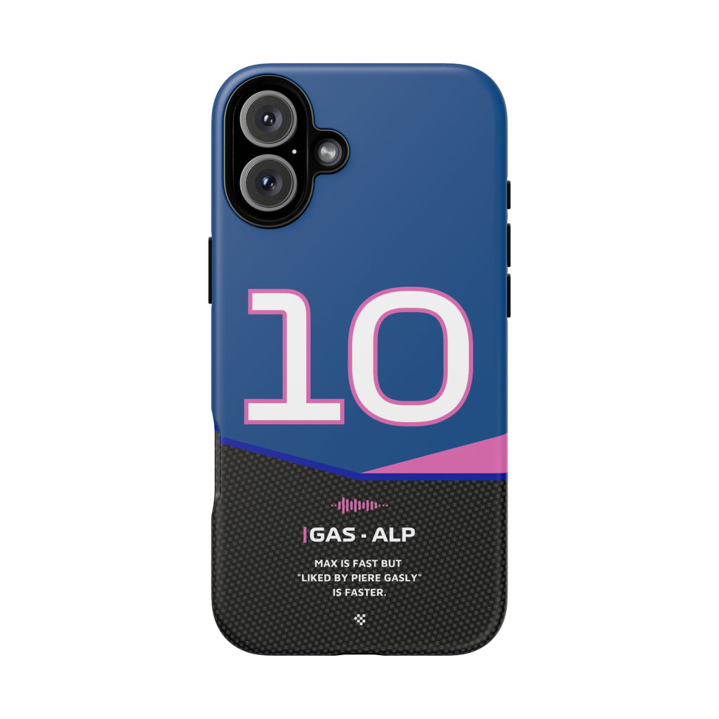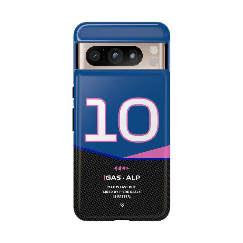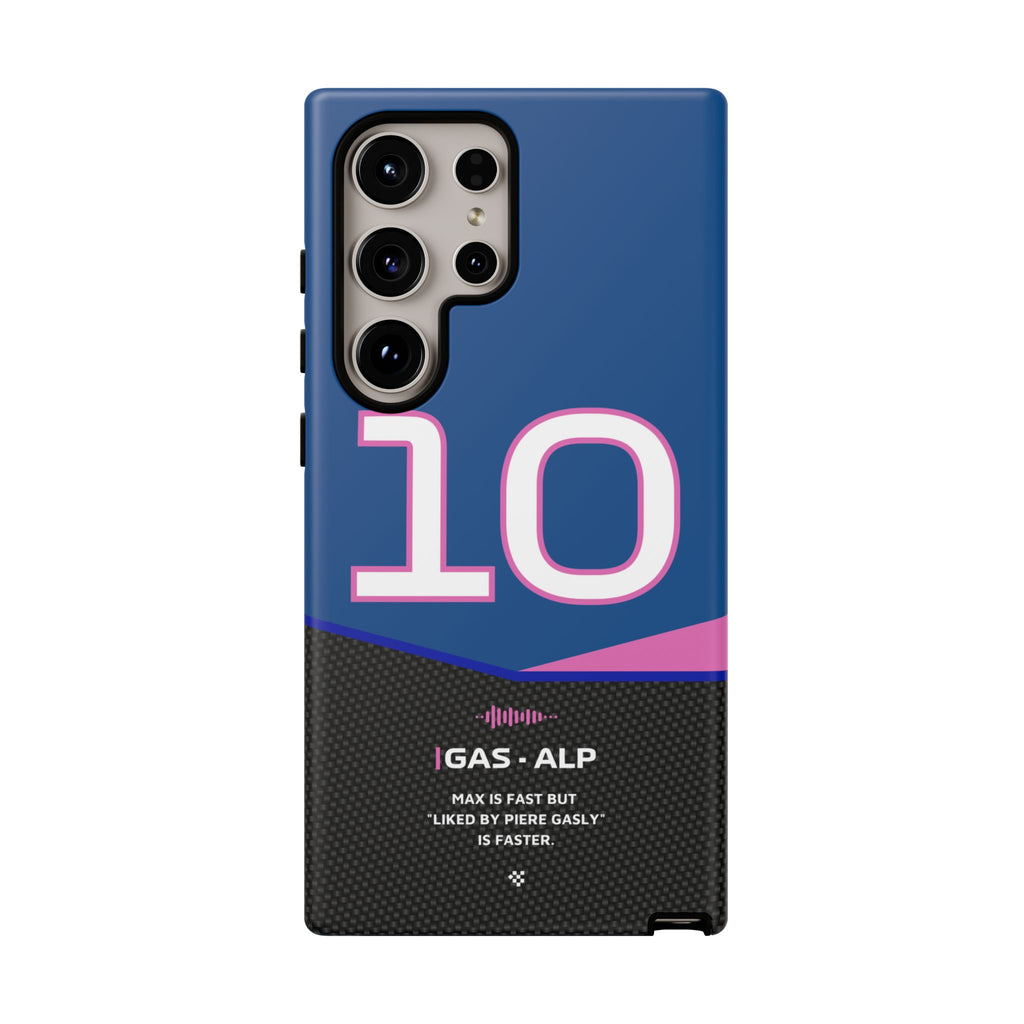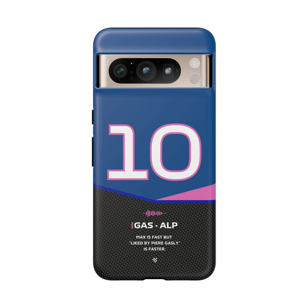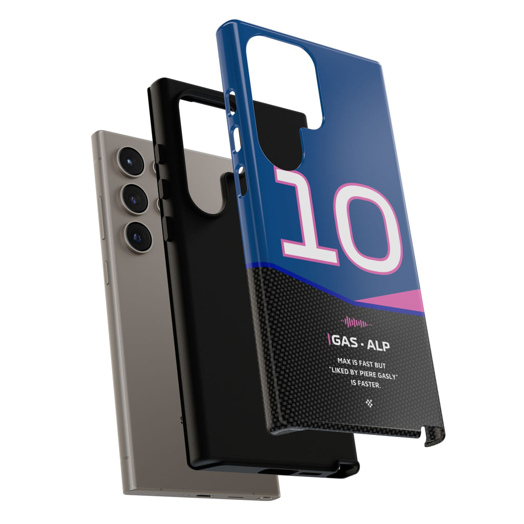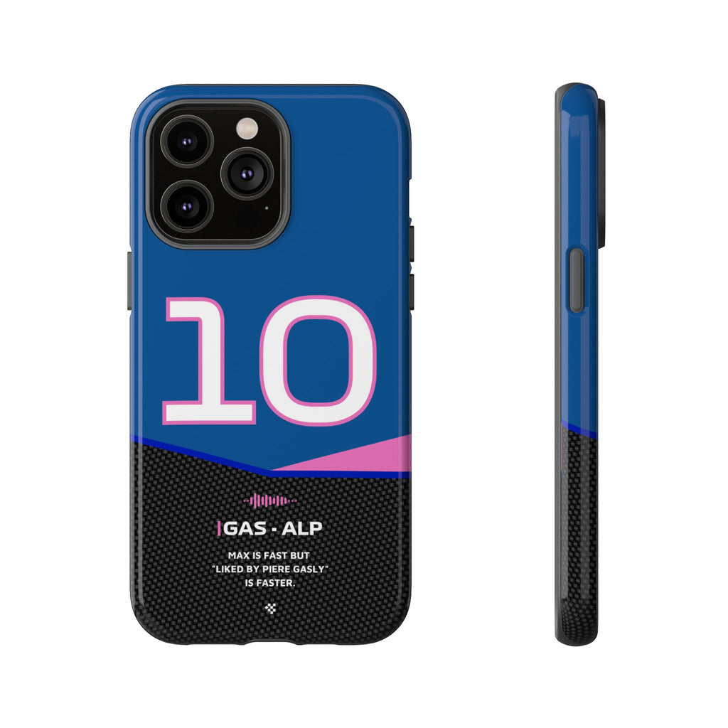 Get ready to support Pierre in the 2024 Formula 1 season with the Pierre Gasly F1 2024 Helmet Phone Case. Designed for true Formula 1 fans, this case features his iconic #10 race car number alongside the striking Alpine livery colors. But that's not all - it also proudly showcases an iconic quote that you can personalize. Whether you're cheering from the grandstands or watching from home, this case is a must-have for every Gasly fan.