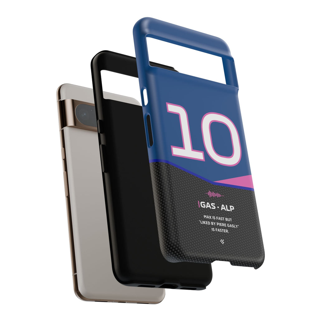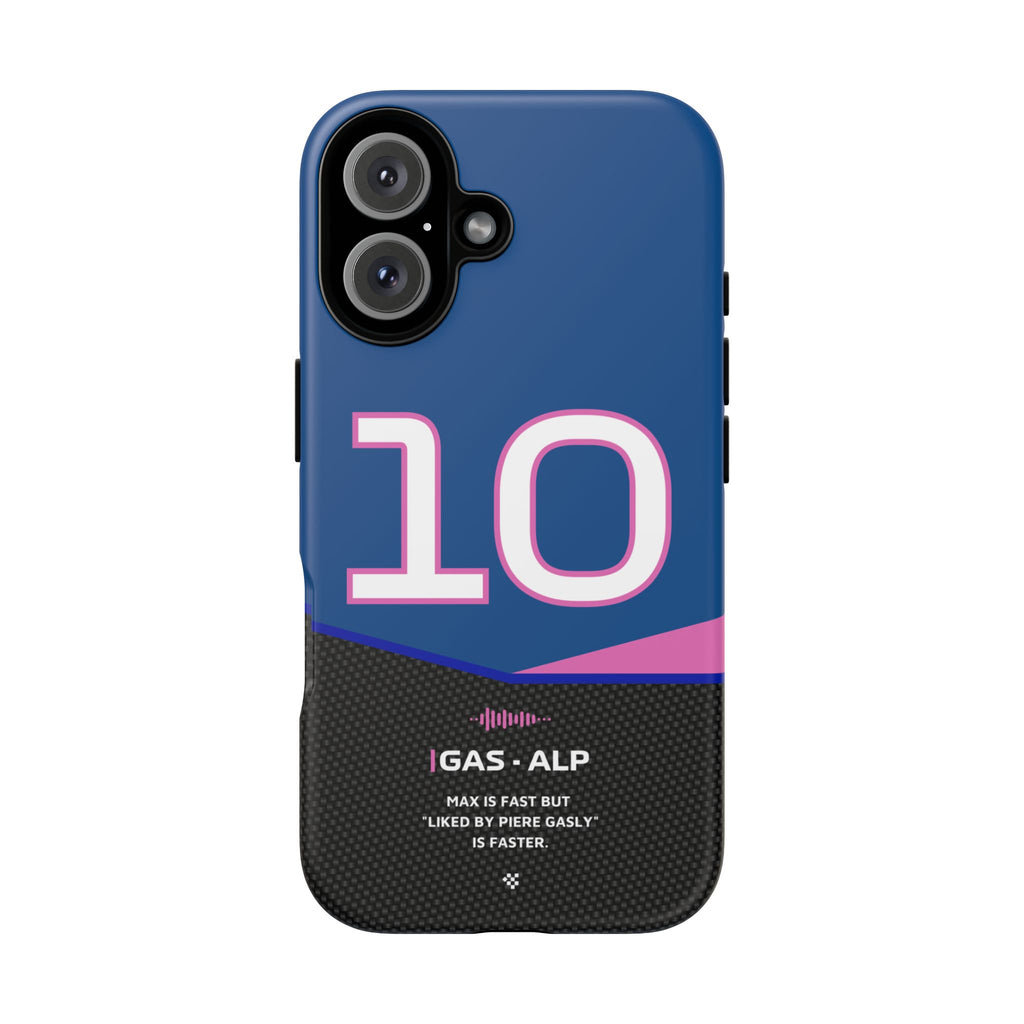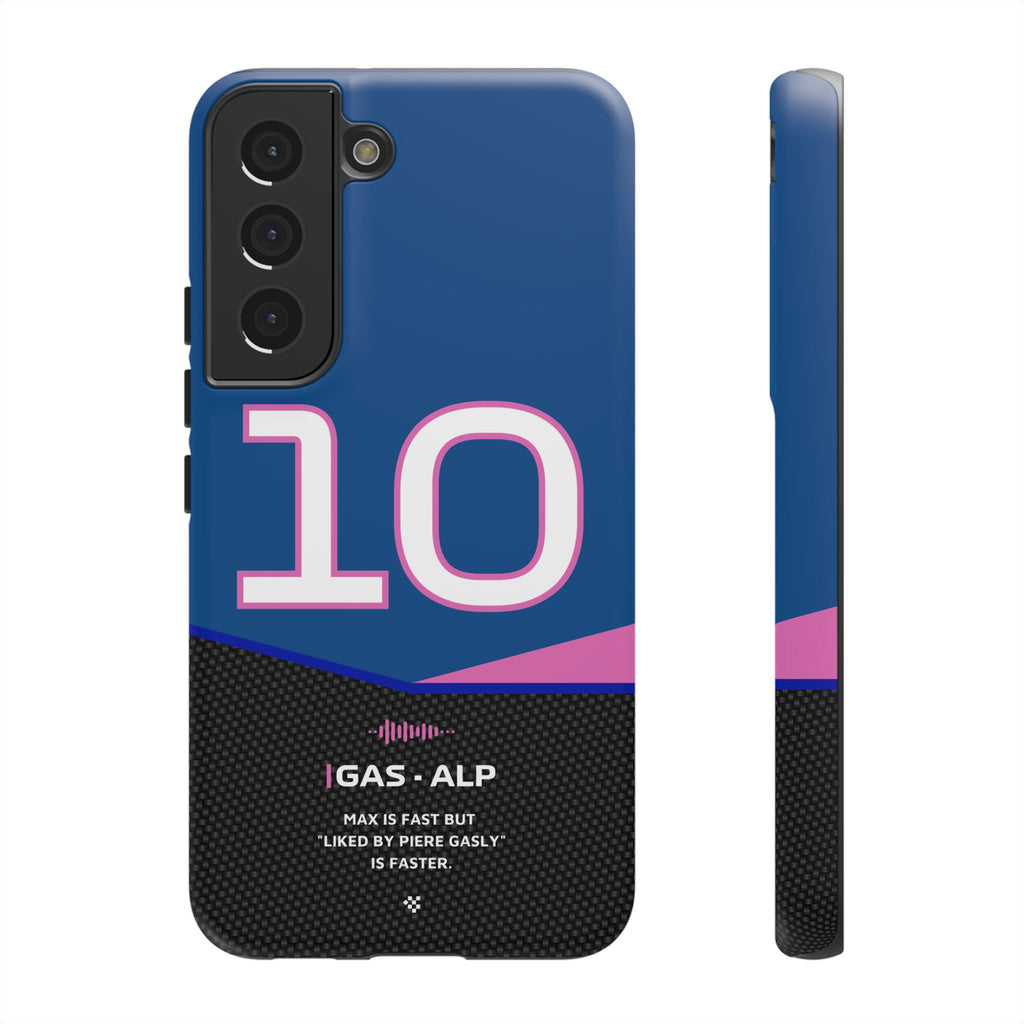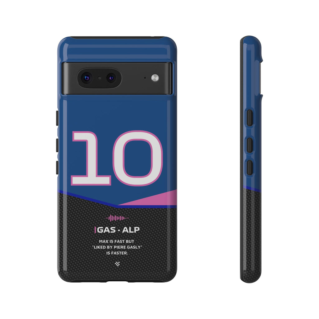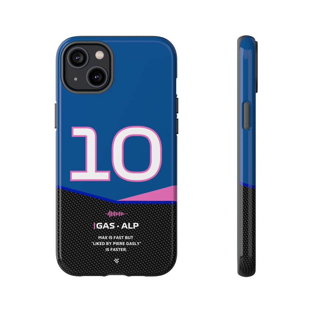 Get ready to support Pierre in the 2024 Formula 1 season with the Pierre Gasly F1 2024 Helmet Phone Case. Designed for true Formula 1 fans, this case features his iconic #10 race car number alongside the striking Alpine livery colors. But that's not all - it also proudly showcases an iconic quote that you can personalize. Whether you're cheering from the grandstands or watching from home, this case is a must-have for every Gasly fan.