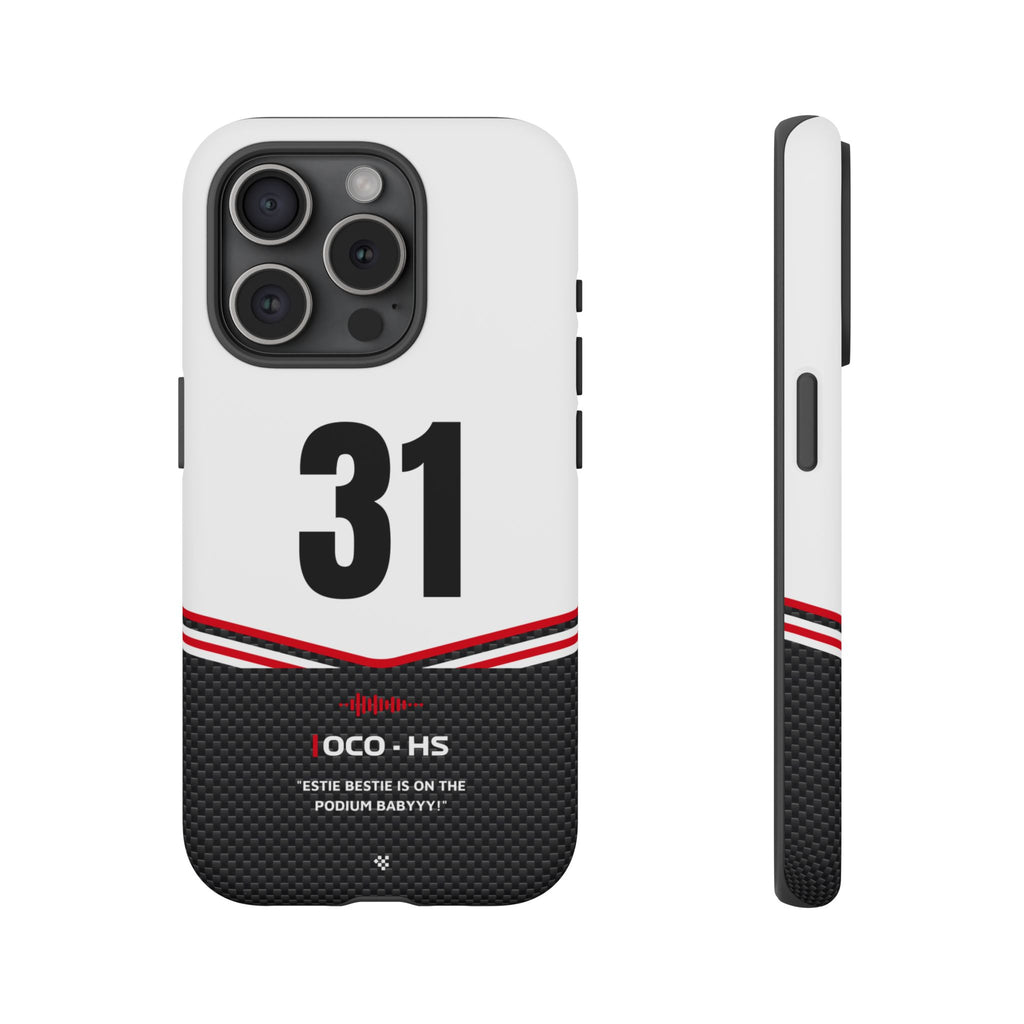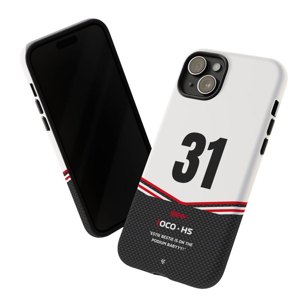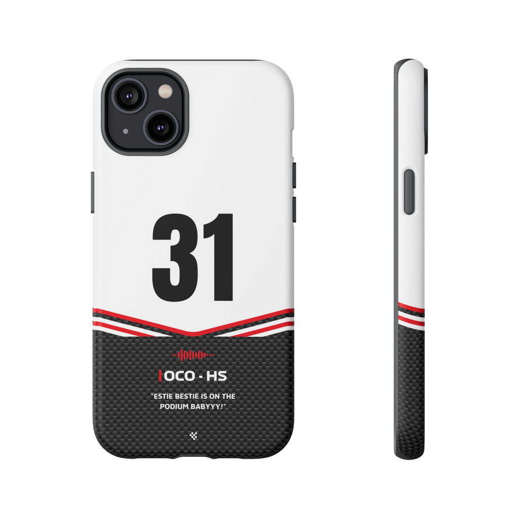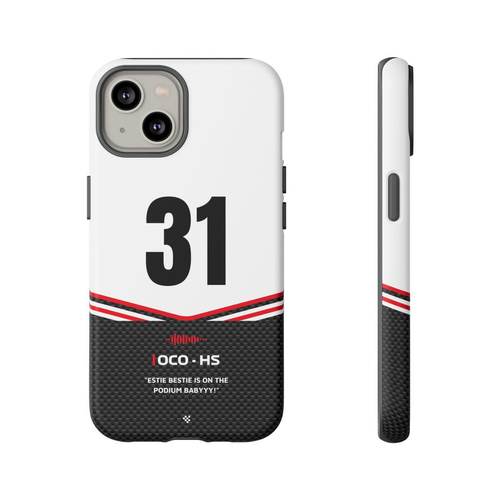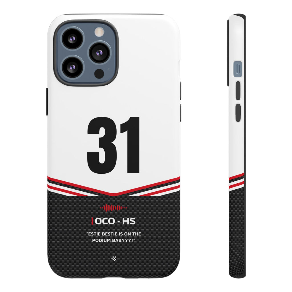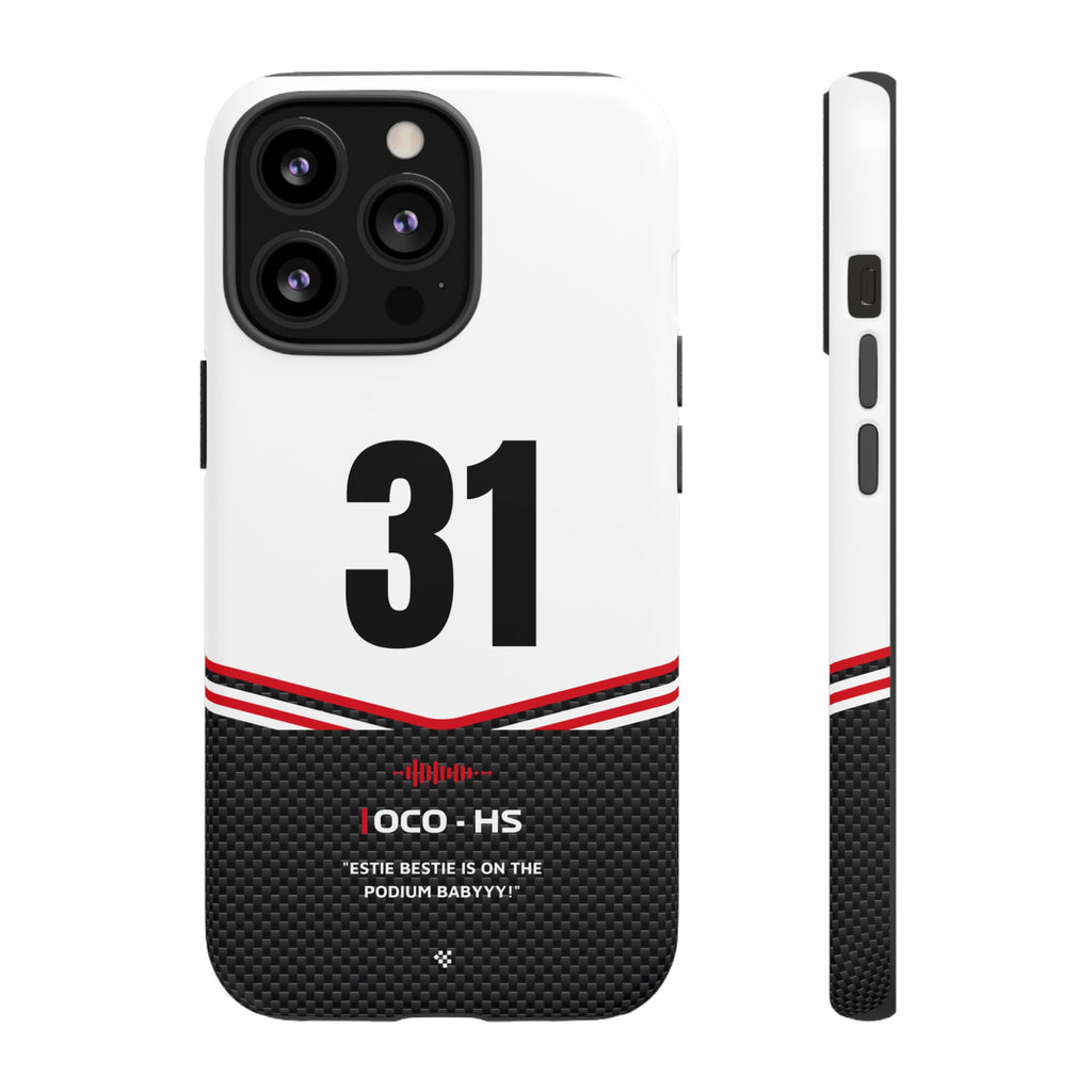 Support your favorite F1 driver with the exclusive Esteban Ocon F1 2025 Team Phone Case. It's the perfect accessory for every passionate Formula 1 and Ocon fan. Featuring Esteban's iconic #31 race number and the bold 2025 Haas team colors, this white phone case brings racing energy straight to your hand.
