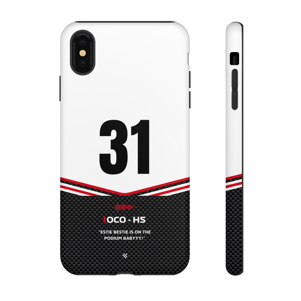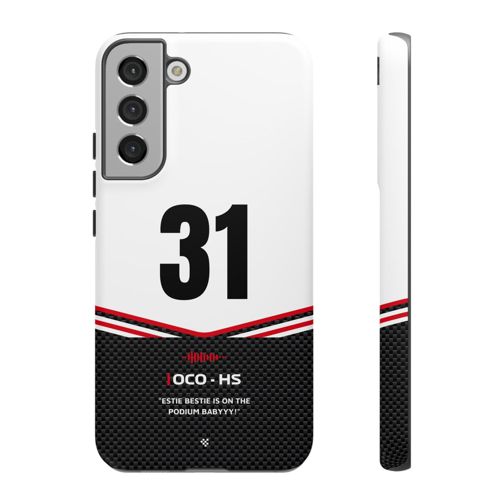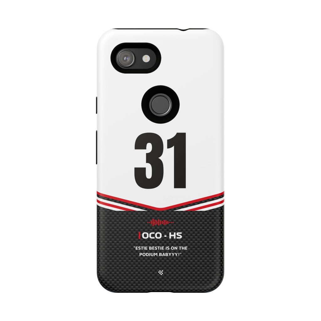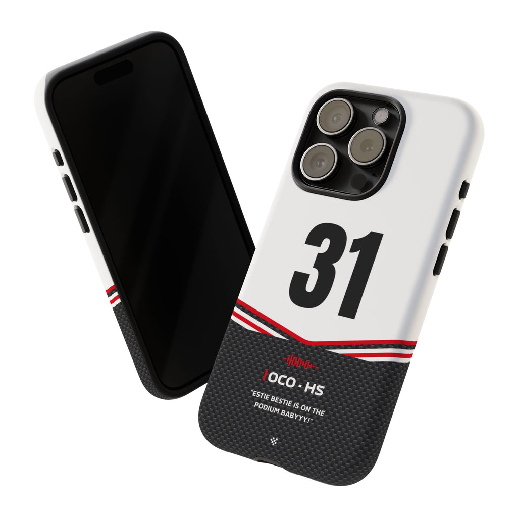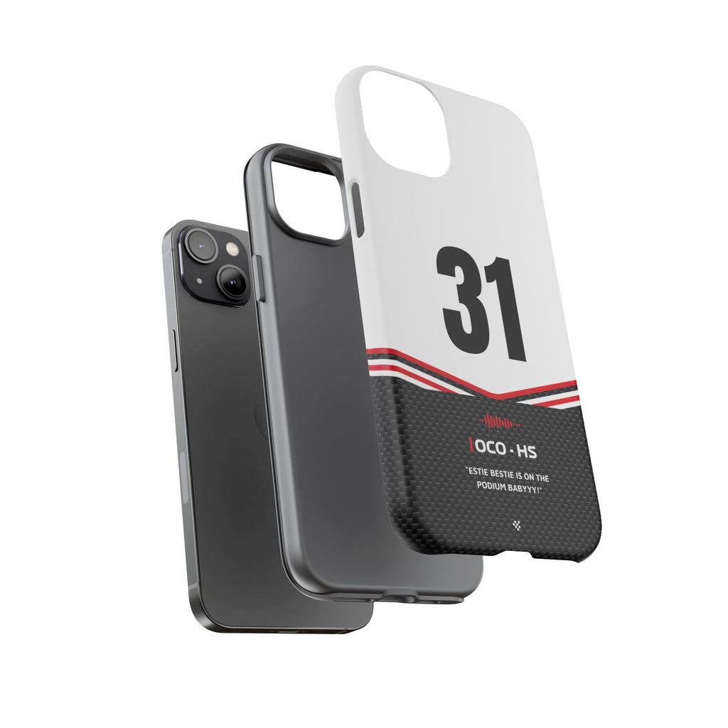 Support your favorite F1 driver with the exclusive Esteban Ocon F1 2025 Team Phone Case. It's the perfect accessory for every passionate Formula 1 and Ocon fan. Featuring Esteban's iconic #31 race number and the bold 2025 Haas team colors, this white phone case brings racing energy straight to your hand.
