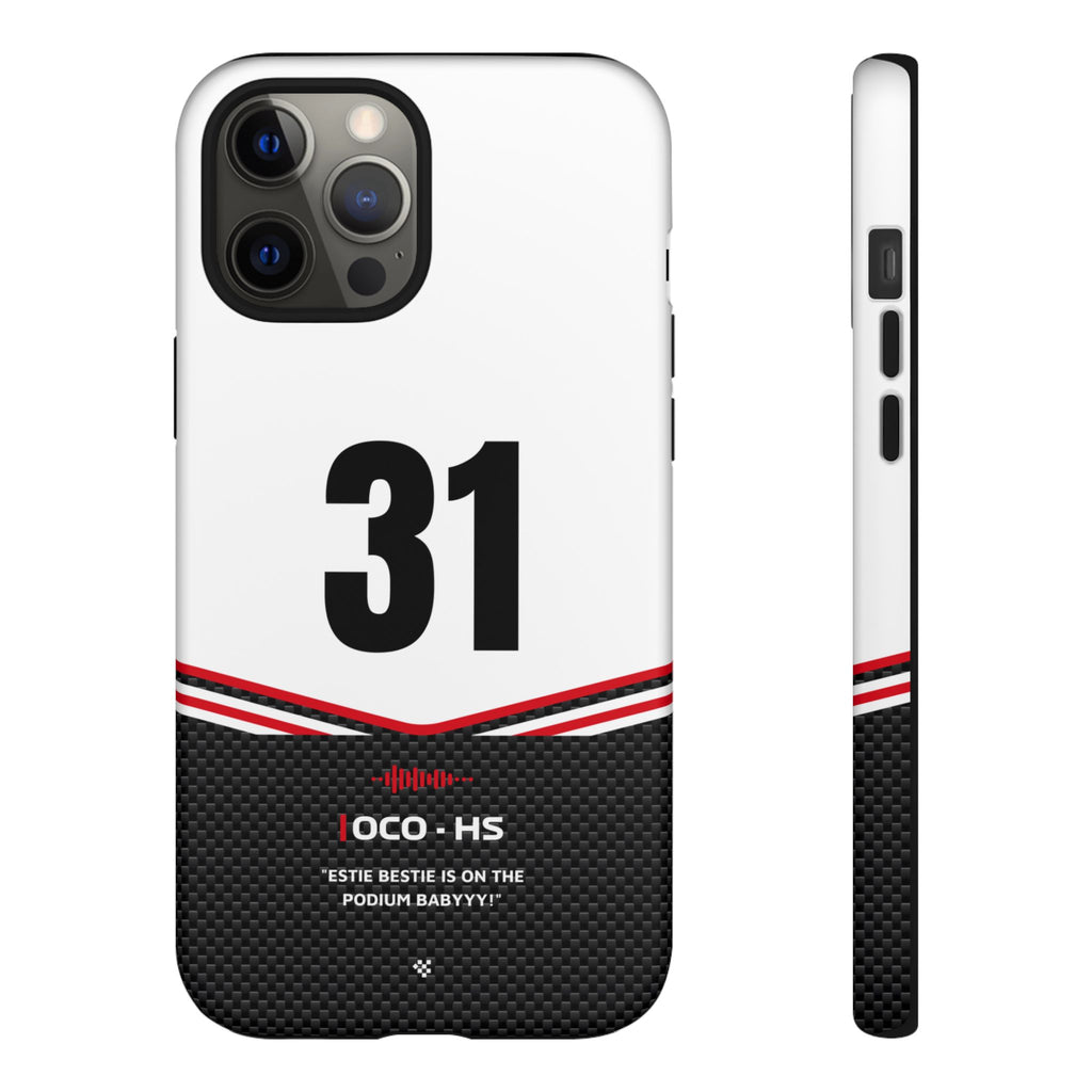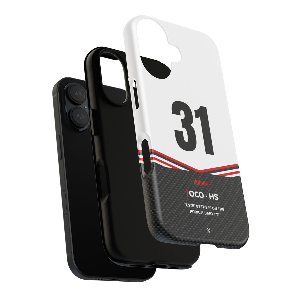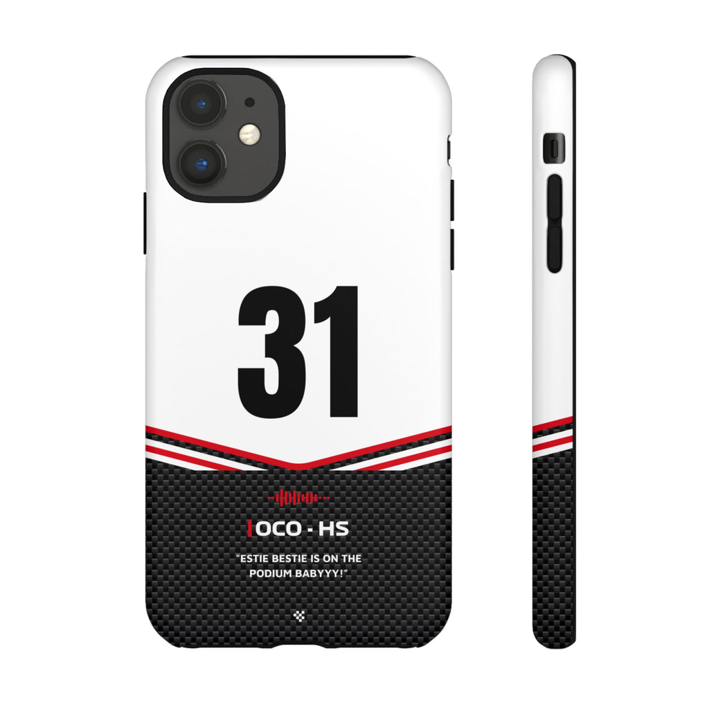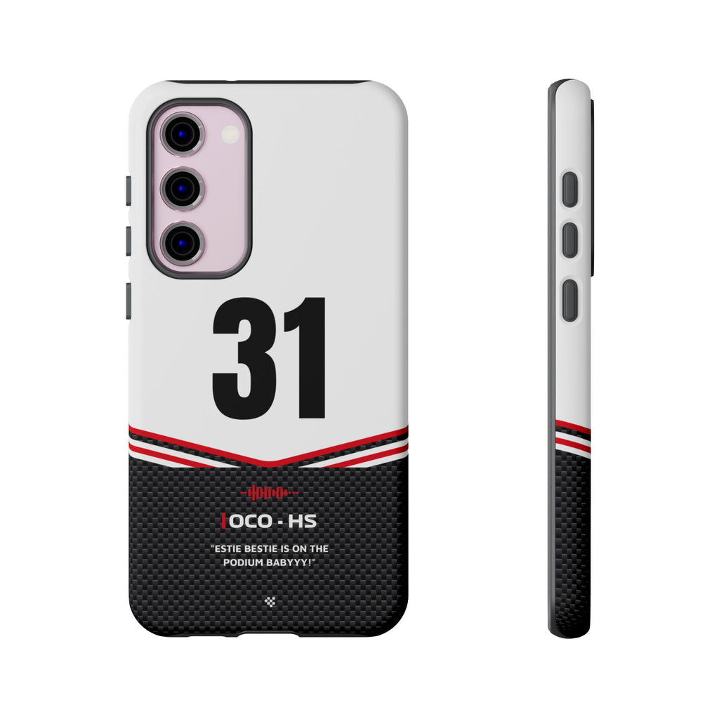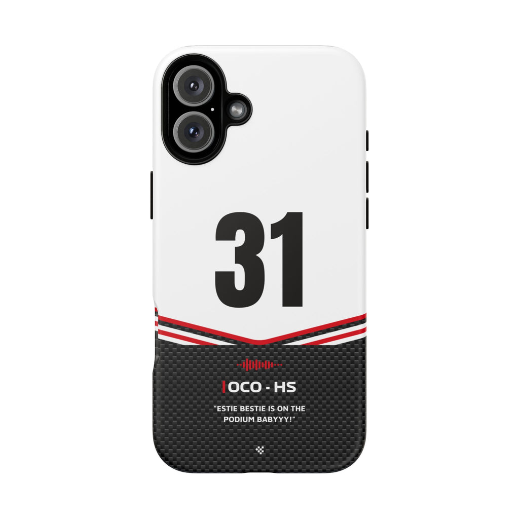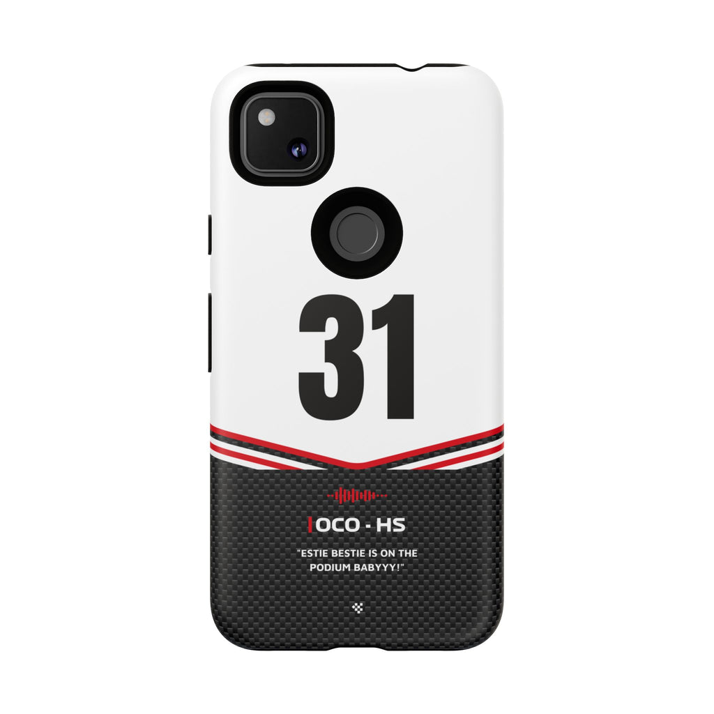 Support your favorite F1 driver with the exclusive Esteban Ocon F1 2025 Team Phone Case. It's the perfect accessory for every passionate Formula 1 and Ocon fan. Featuring Esteban's iconic #31 race number and the bold 2025 Haas team colors, this white phone case brings racing energy straight to your hand.