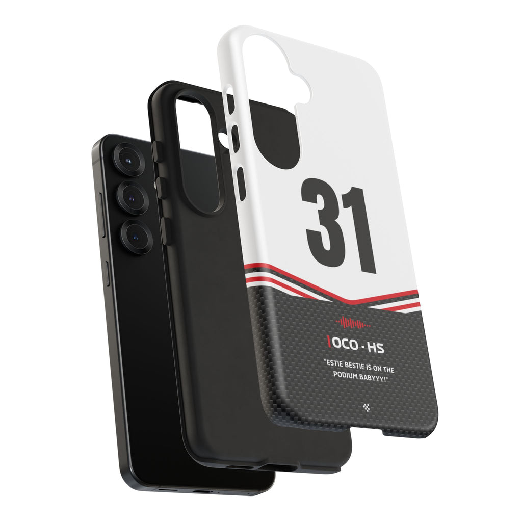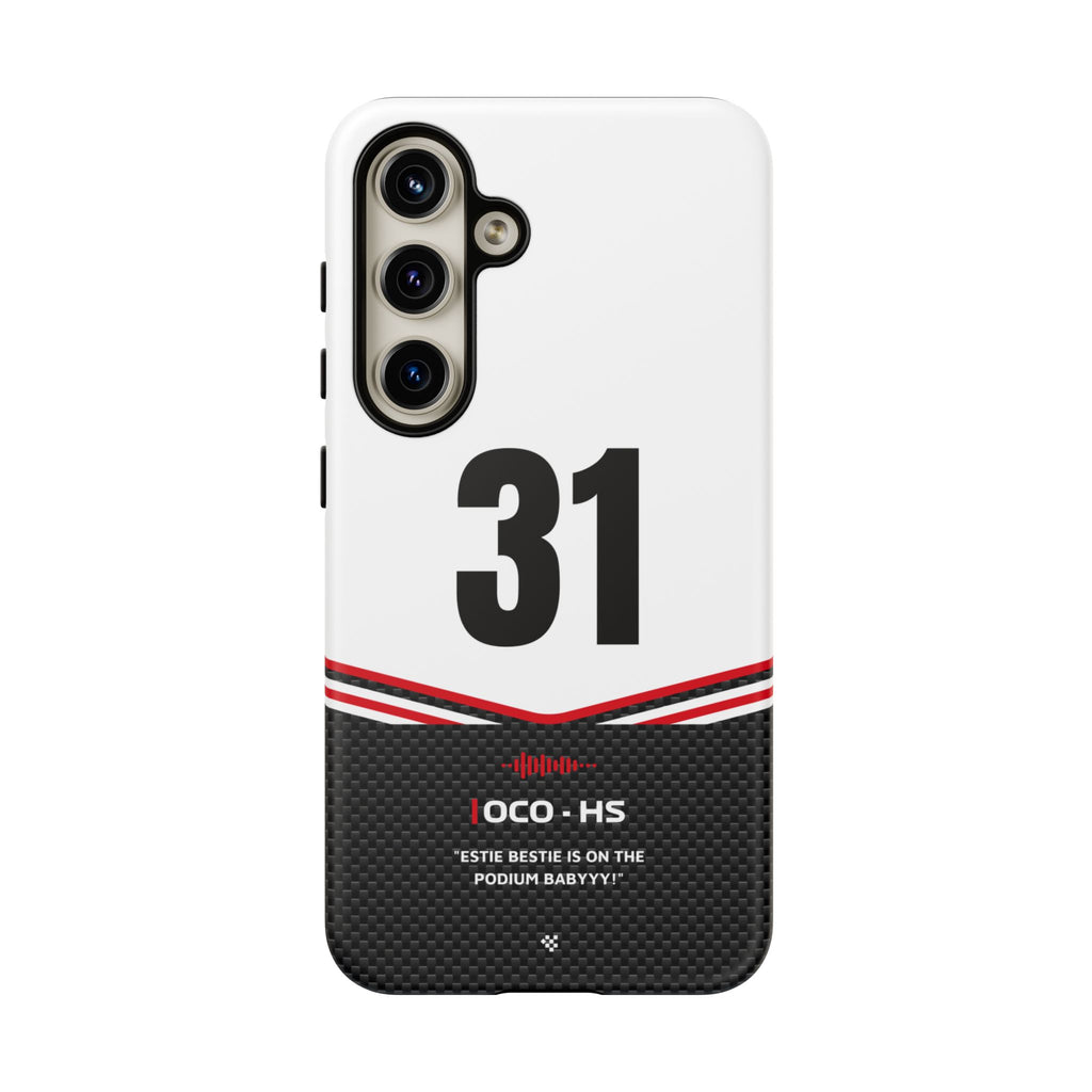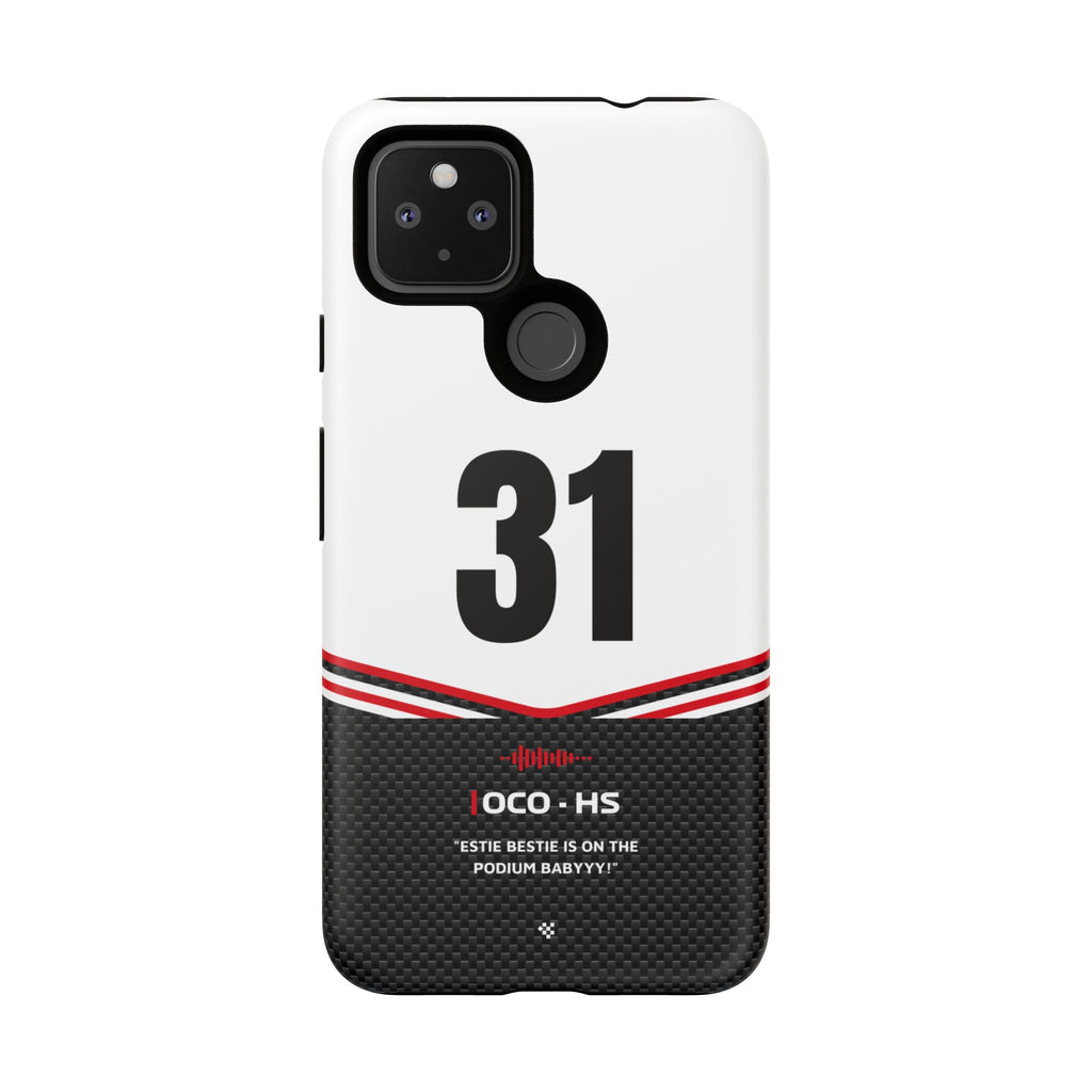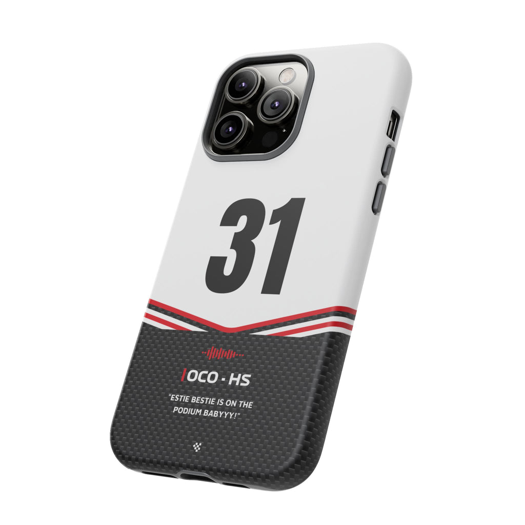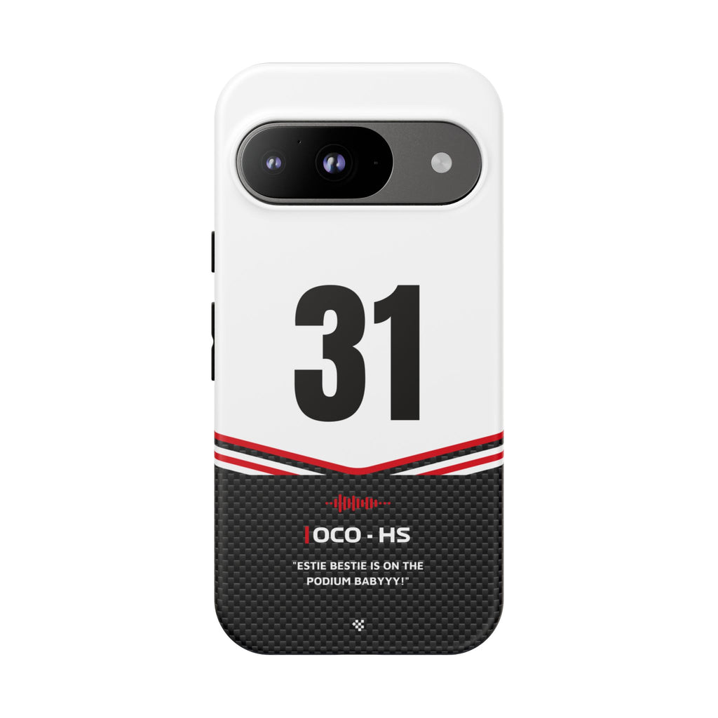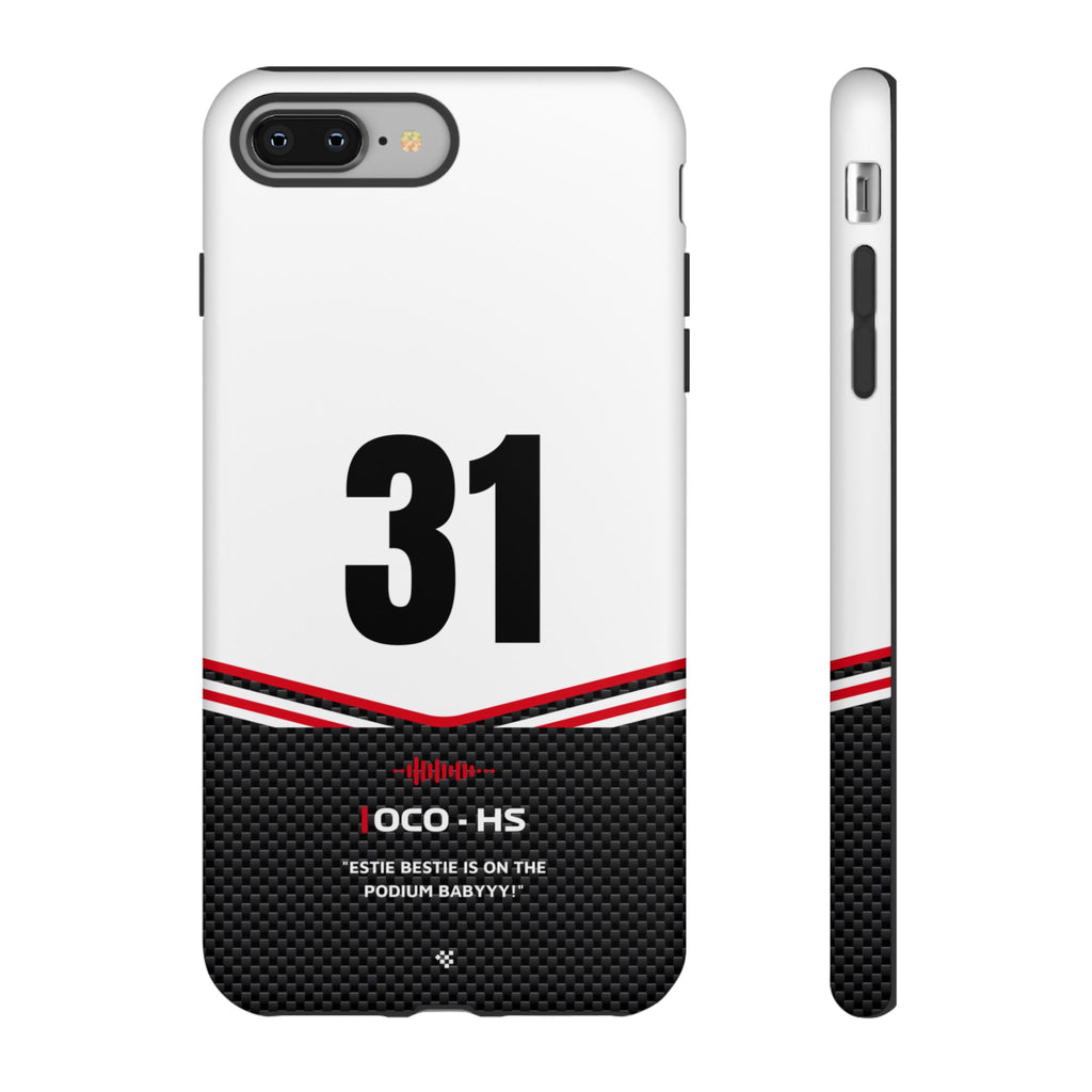 Support your favorite F1 driver with the exclusive Esteban Ocon F1 2025 Team Phone Case. It's the perfect accessory for every passionate Formula 1 and Ocon fan. Featuring Esteban's iconic #31 race number and the bold 2025 Haas team colors, this white phone case brings racing energy straight to your hand.