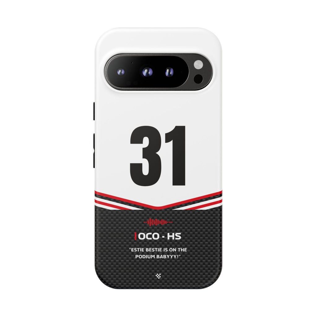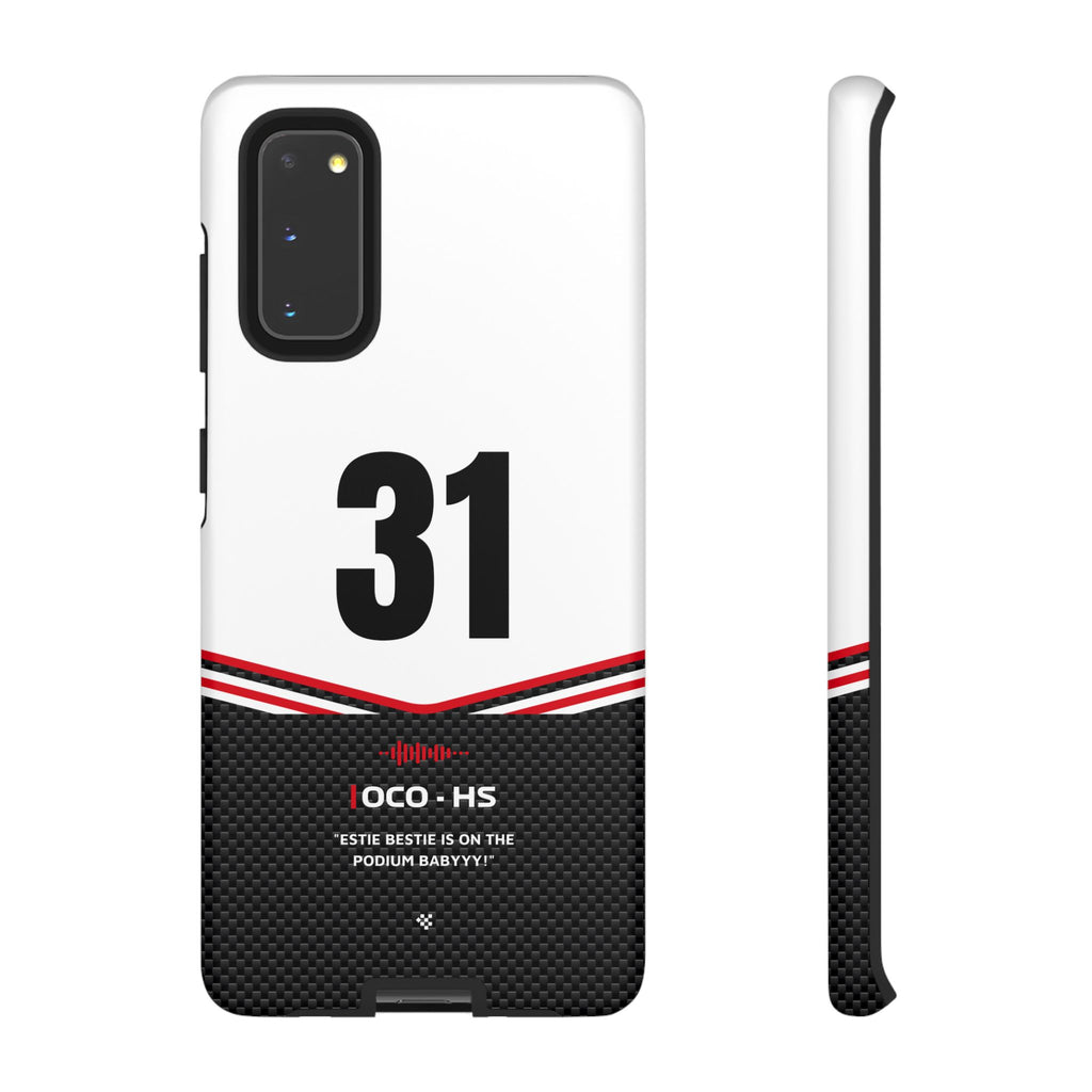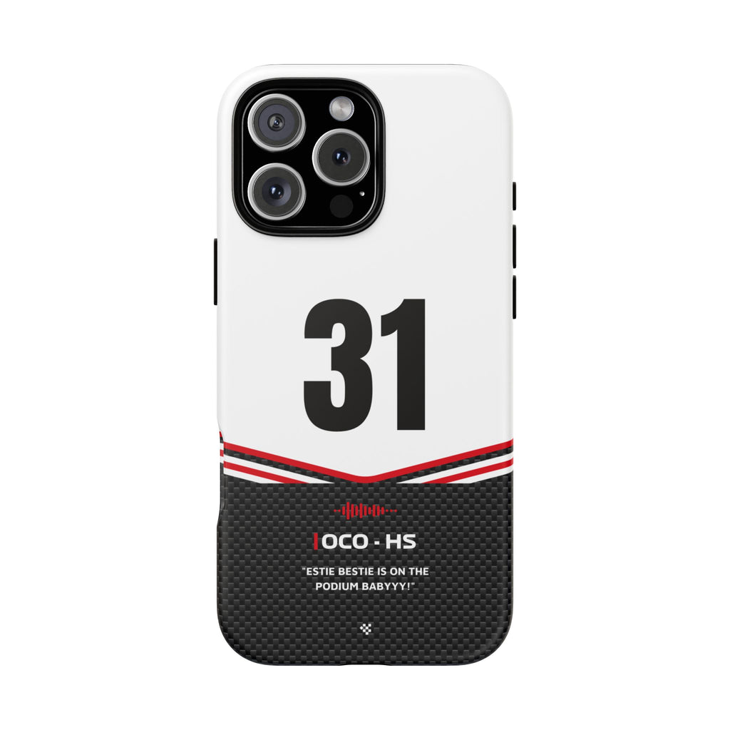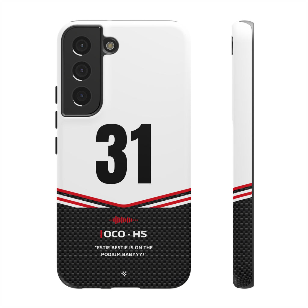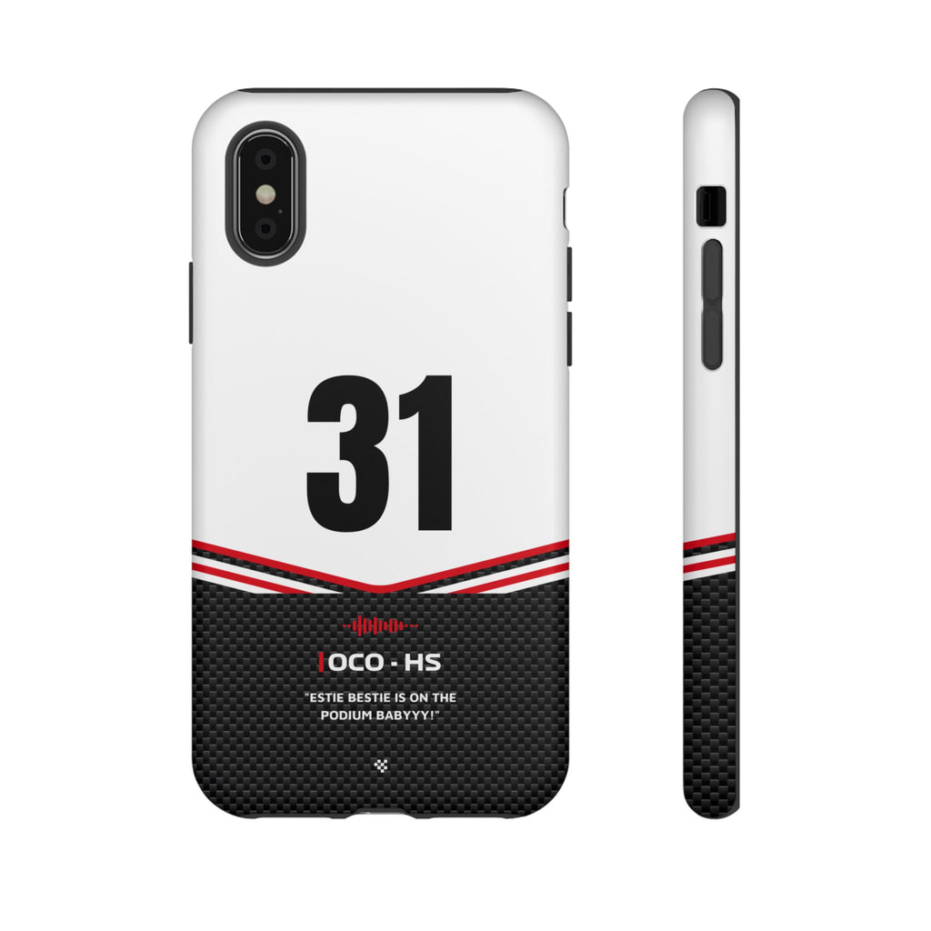 Support your favorite F1 driver with the exclusive Esteban Ocon F1 2025 Team Phone Case. It's the perfect accessory for every passionate Formula 1 and Ocon fan. Featuring Esteban's iconic #31 race number and the bold 2025 Haas team colors, this white phone case brings racing energy straight to your hand.