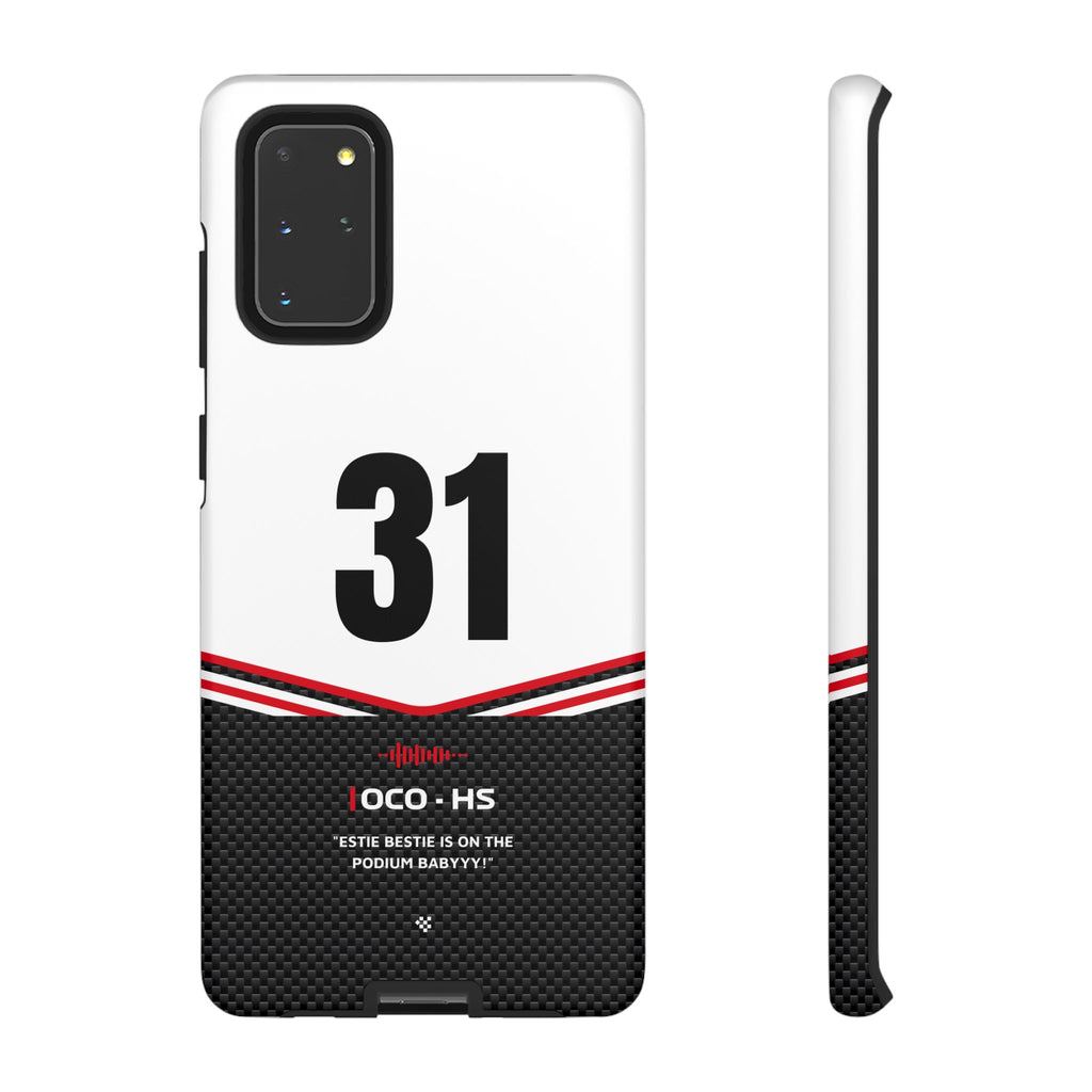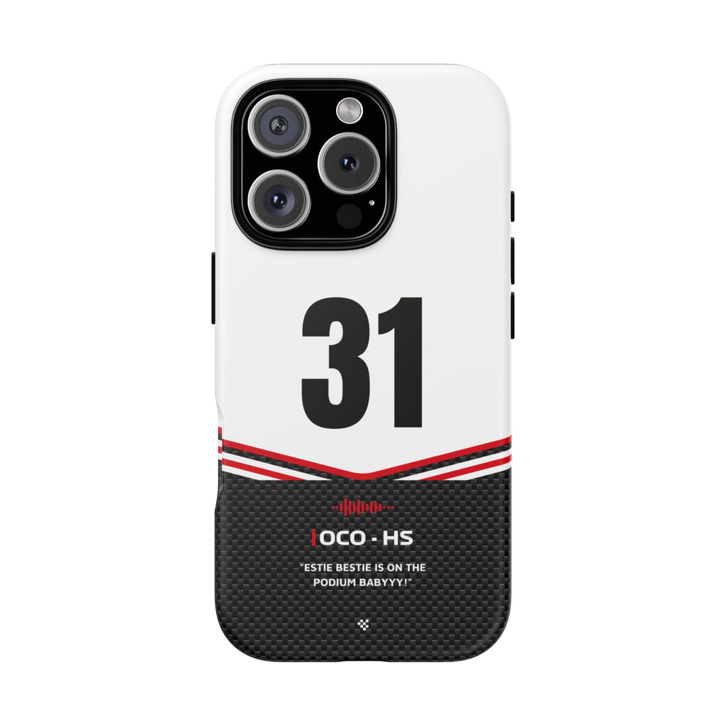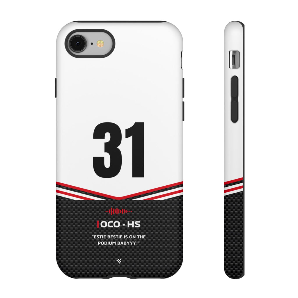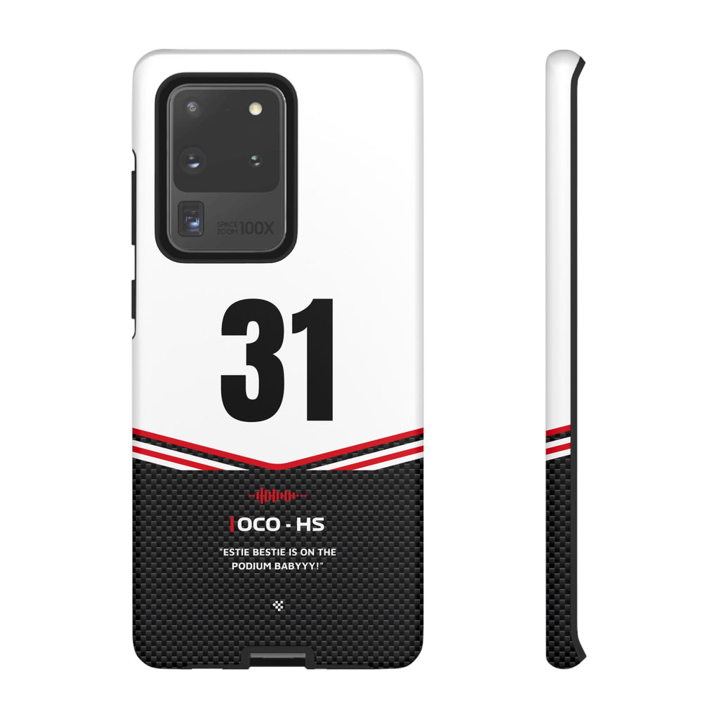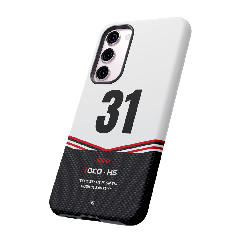 Support your favorite F1 driver with the exclusive Esteban Ocon F1 2025 Team Phone Case. It's the perfect accessory for every passionate Formula 1 and Ocon fan. Featuring Esteban's iconic #31 race number and the bold 2025 Haas team colors, this white phone case brings racing energy straight to your hand.
