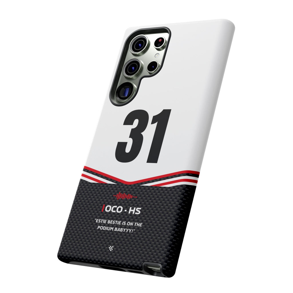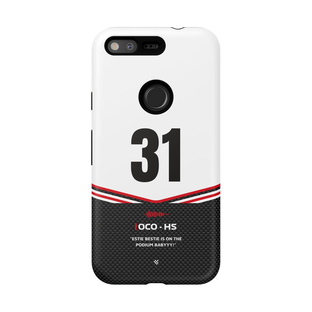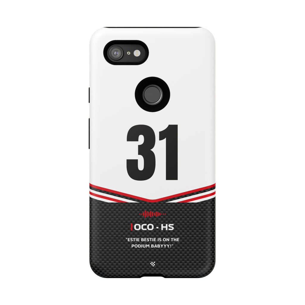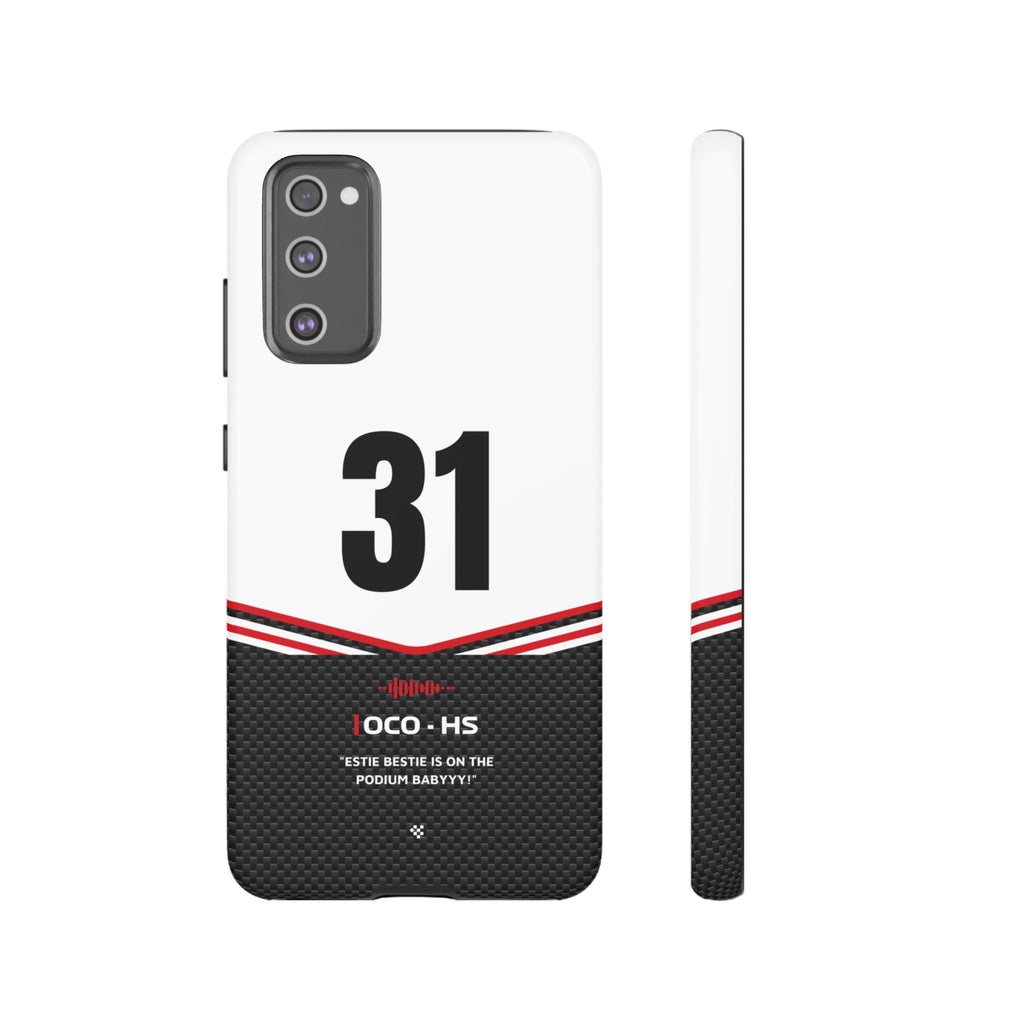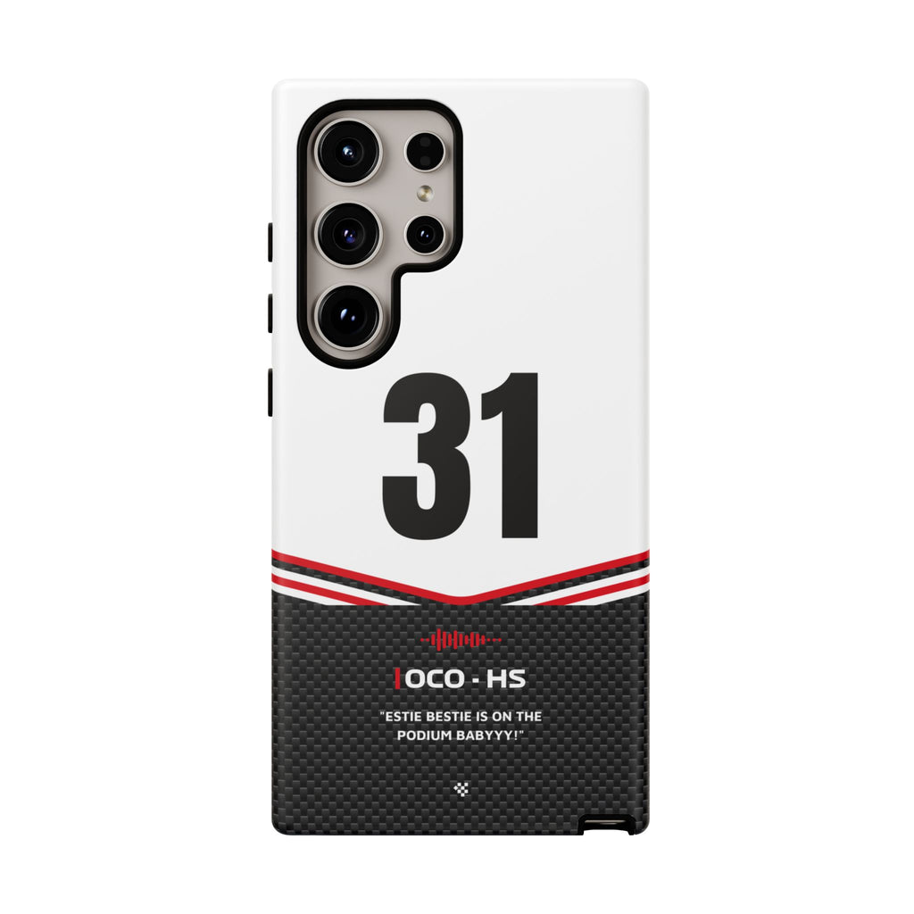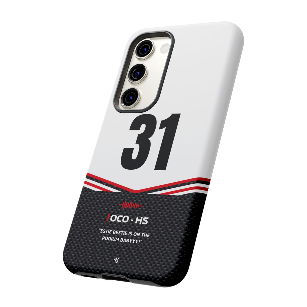 Support your favorite F1 driver with the exclusive Esteban Ocon F1 2025 Team Phone Case. It's the perfect accessory for every passionate Formula 1 and Ocon fan. Featuring Esteban's iconic #31 race number and the bold 2025 Haas team colors, this white phone case brings racing energy straight to your hand.