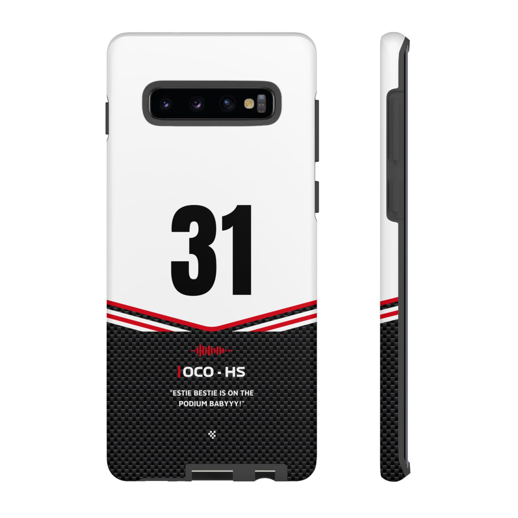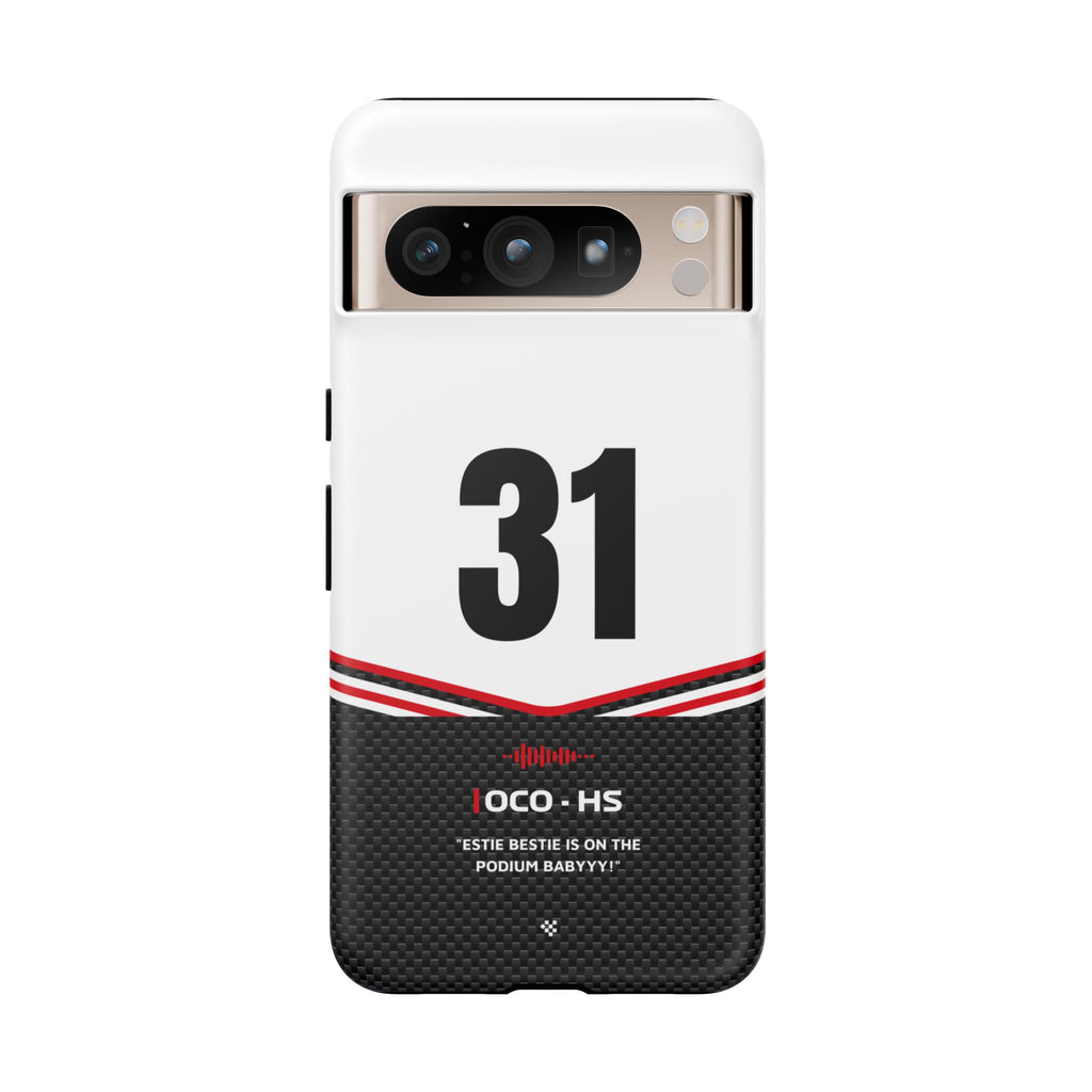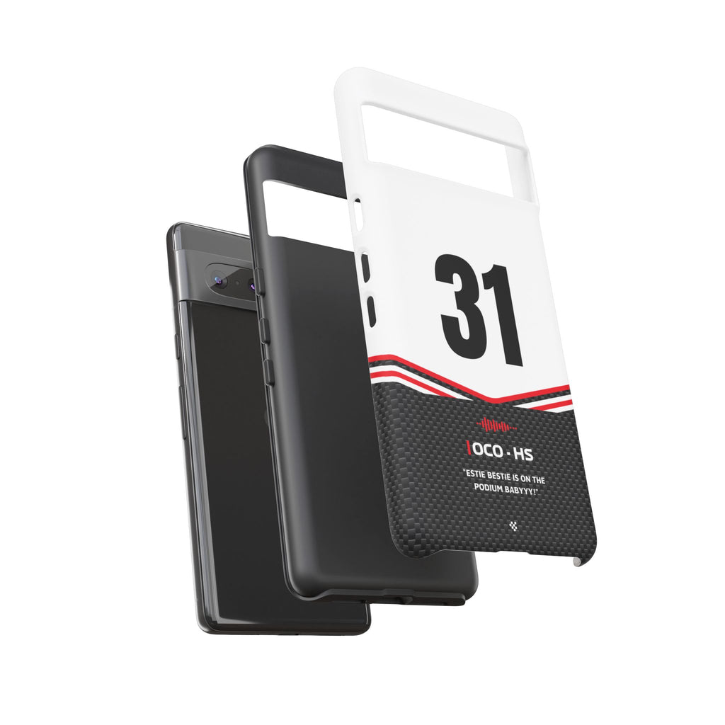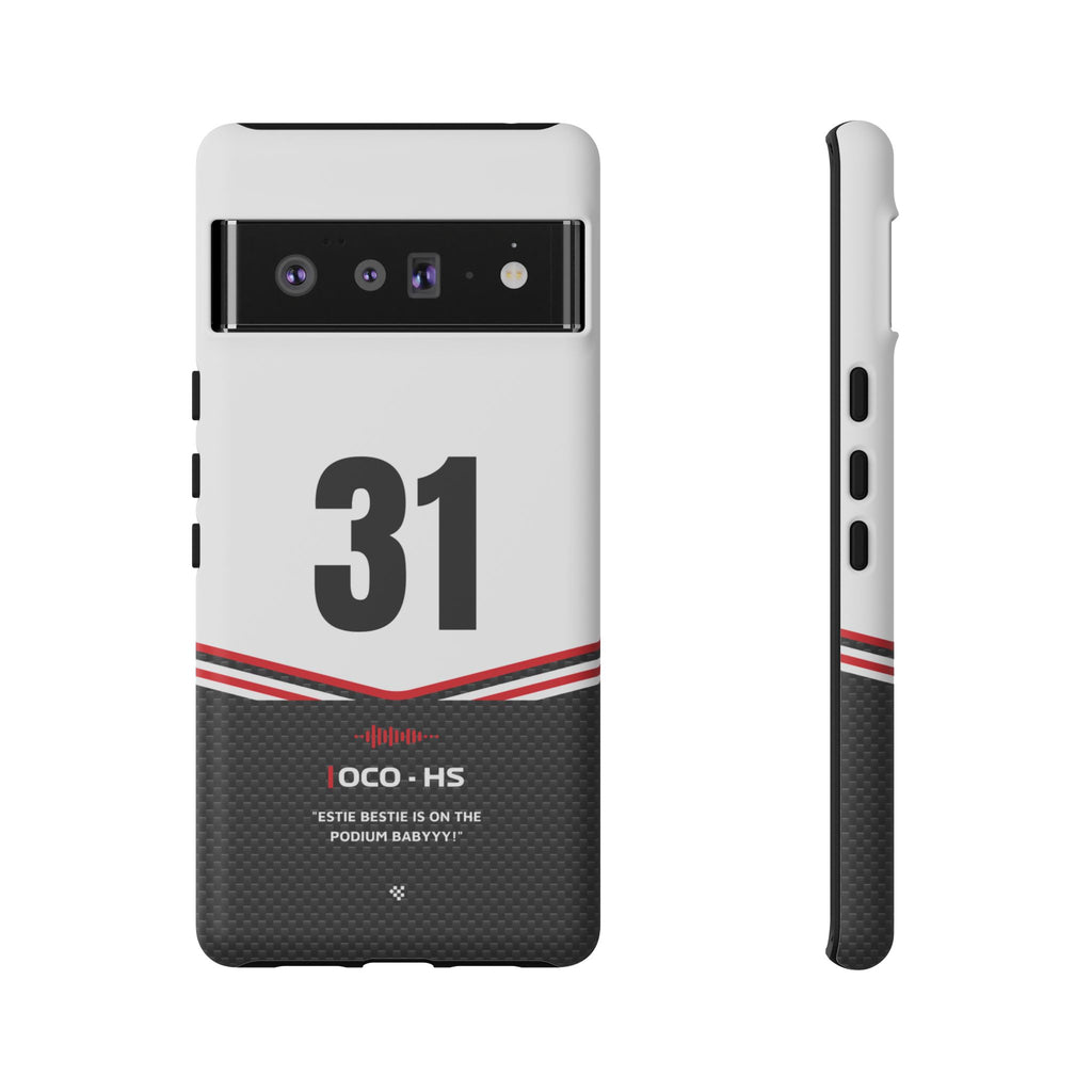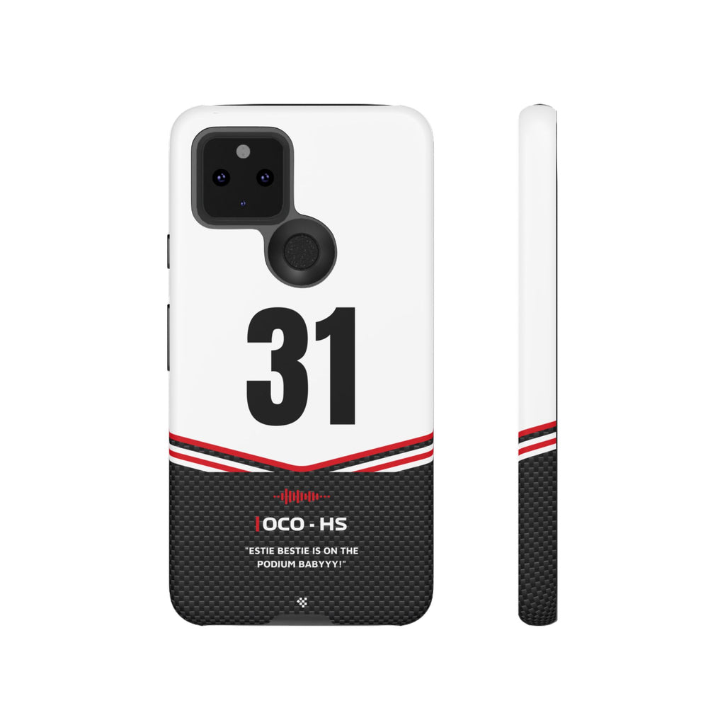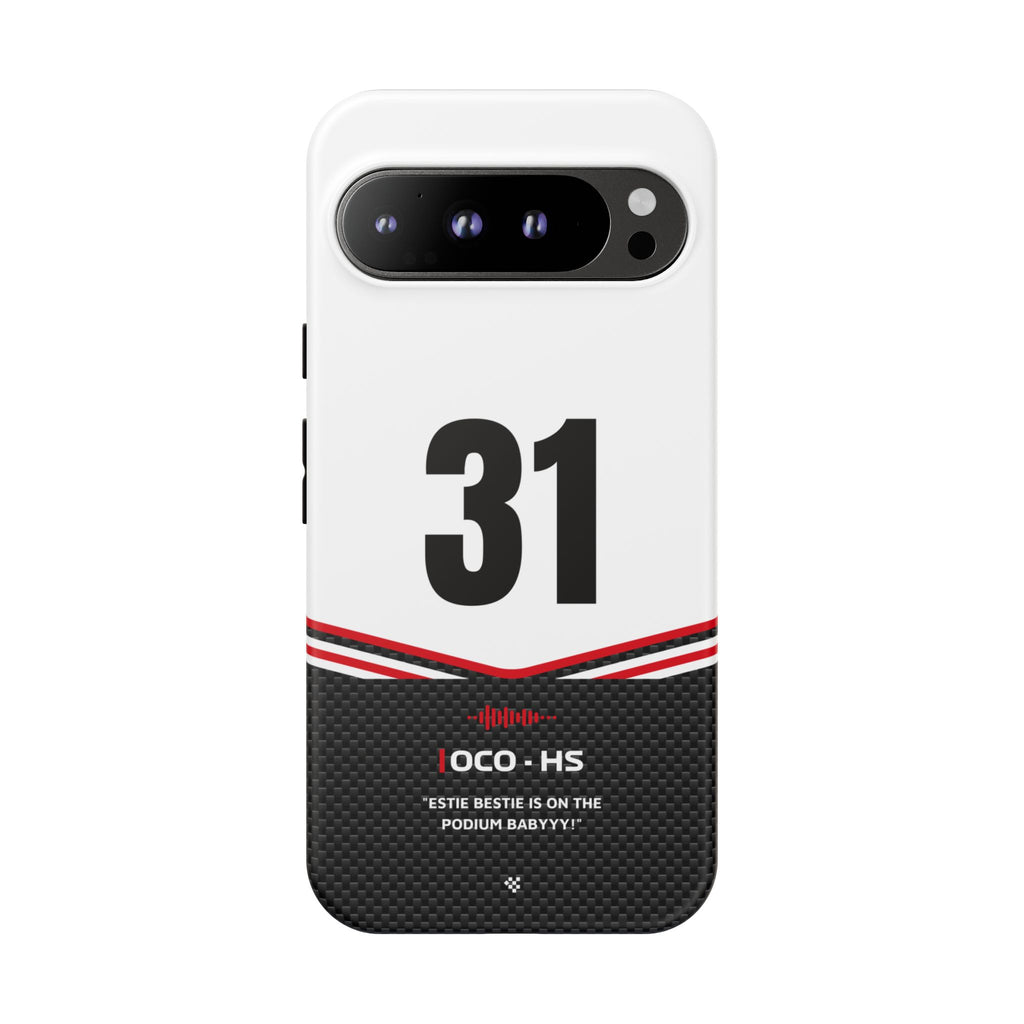 Support your favorite F1 driver with the exclusive Esteban Ocon F1 2025 Team Phone Case. It's the perfect accessory for every passionate Formula 1 and Ocon fan. Featuring Esteban's iconic #31 race number and the bold 2025 Haas team colors, this white phone case brings racing energy straight to your hand.