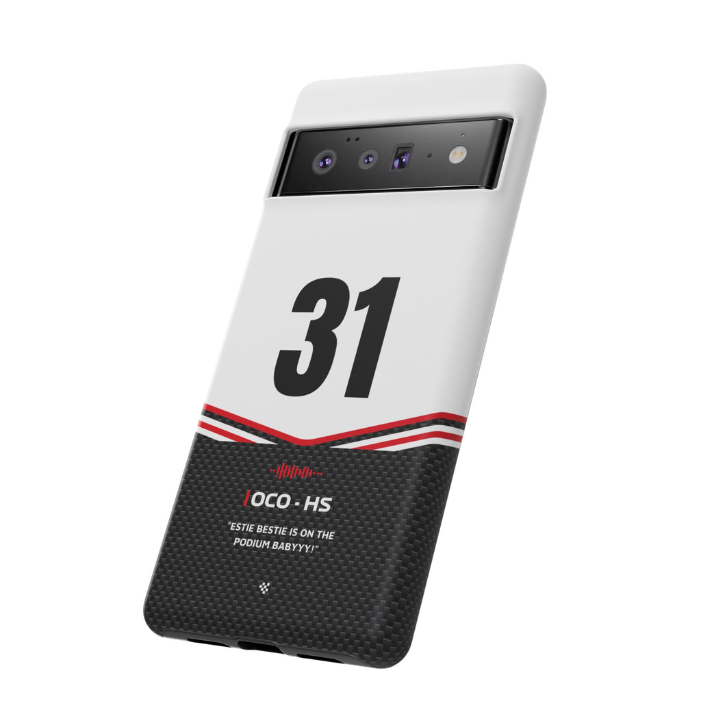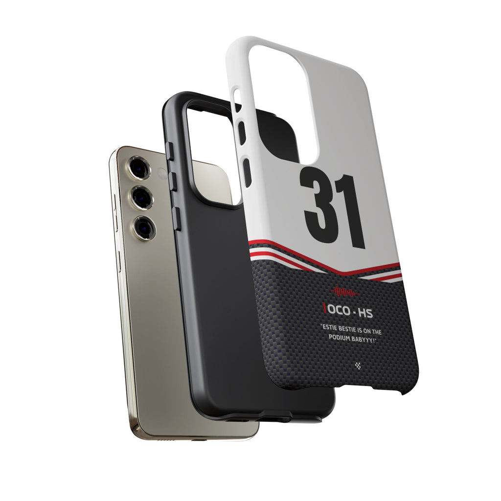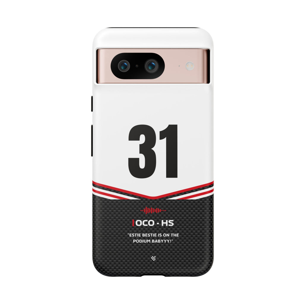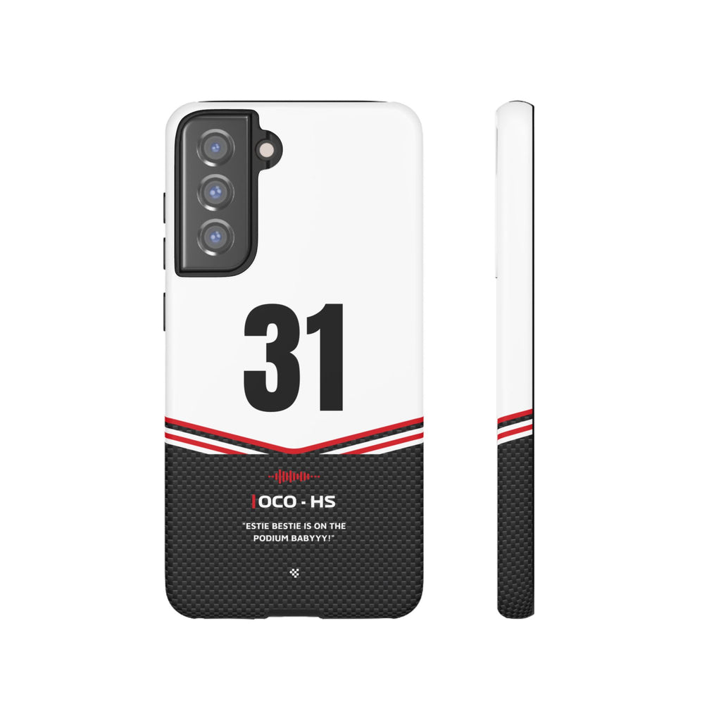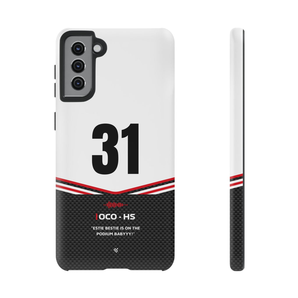 Support your favorite F1 driver with the exclusive Esteban Ocon F1 2025 Team Phone Case. It's the perfect accessory for every passionate Formula 1 and Ocon fan. Featuring Esteban's iconic #31 race number and the bold 2025 Haas team colors, this white phone case brings racing energy straight to your hand.