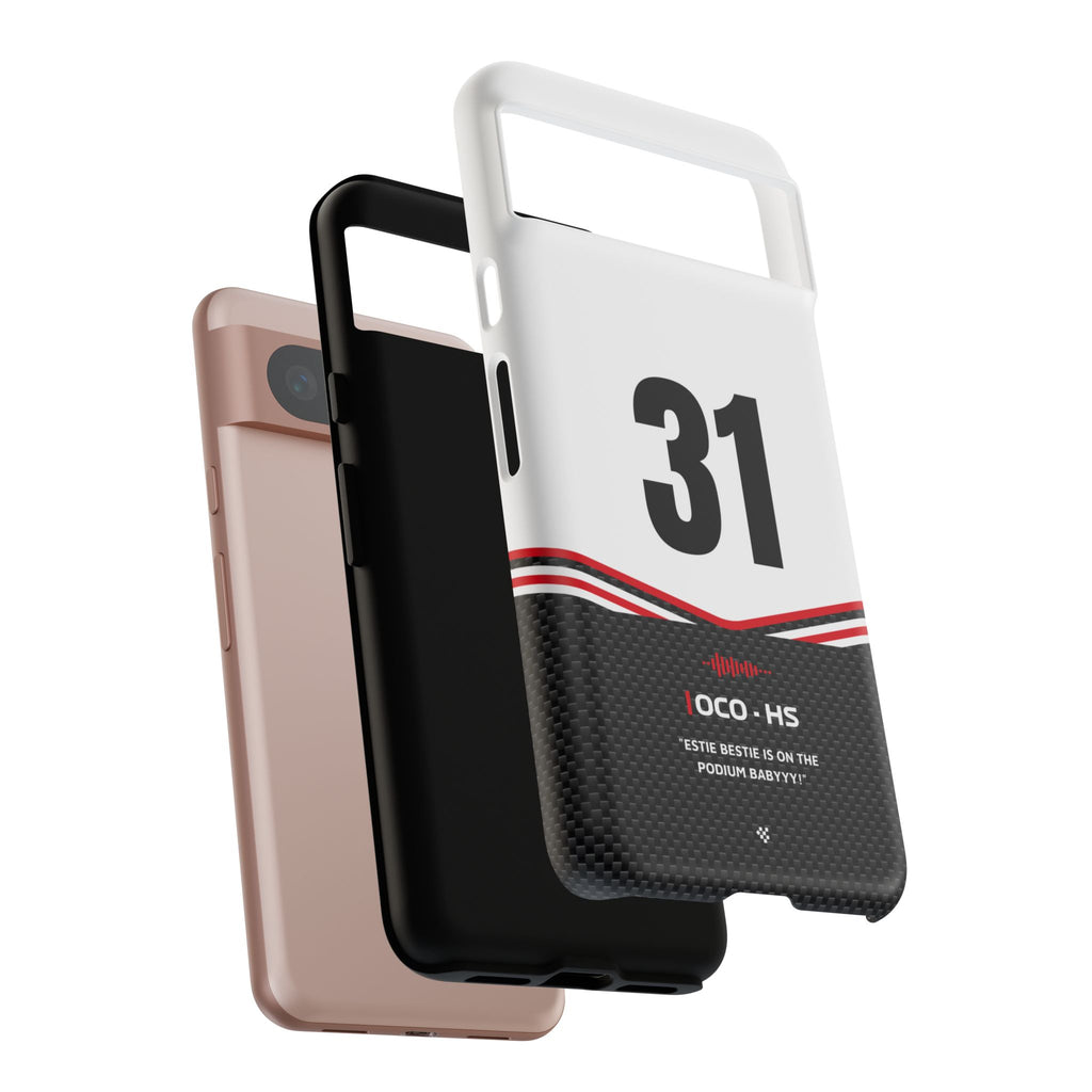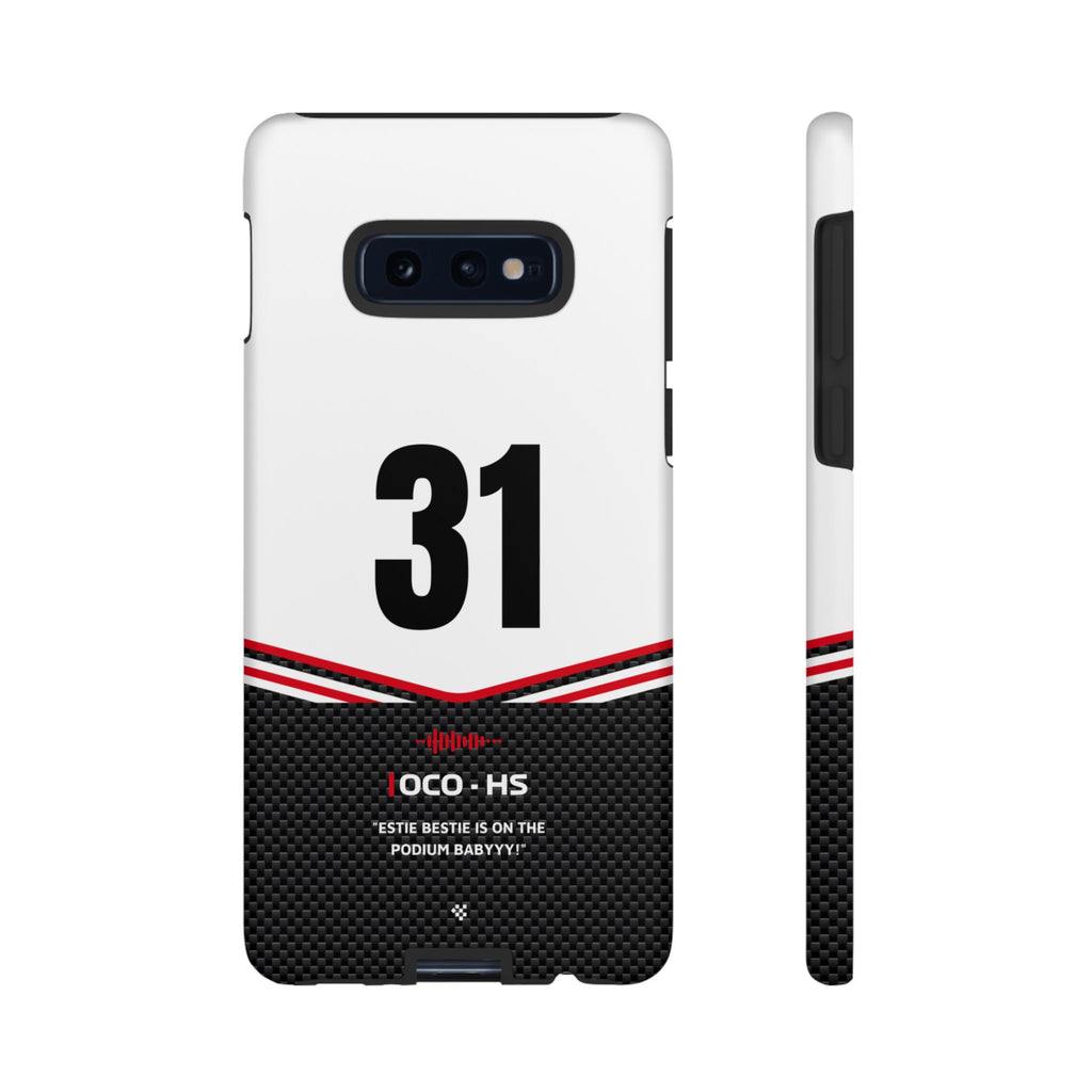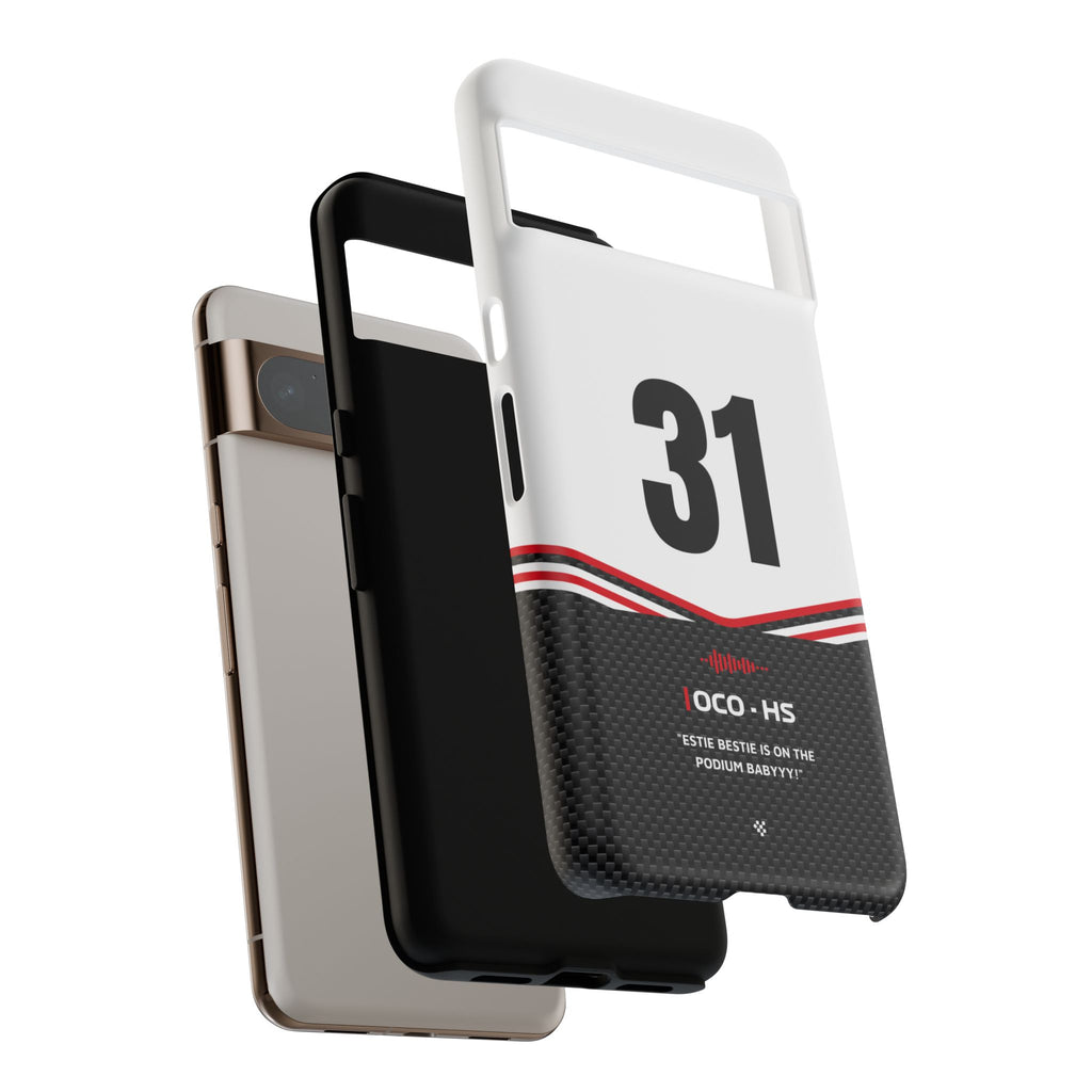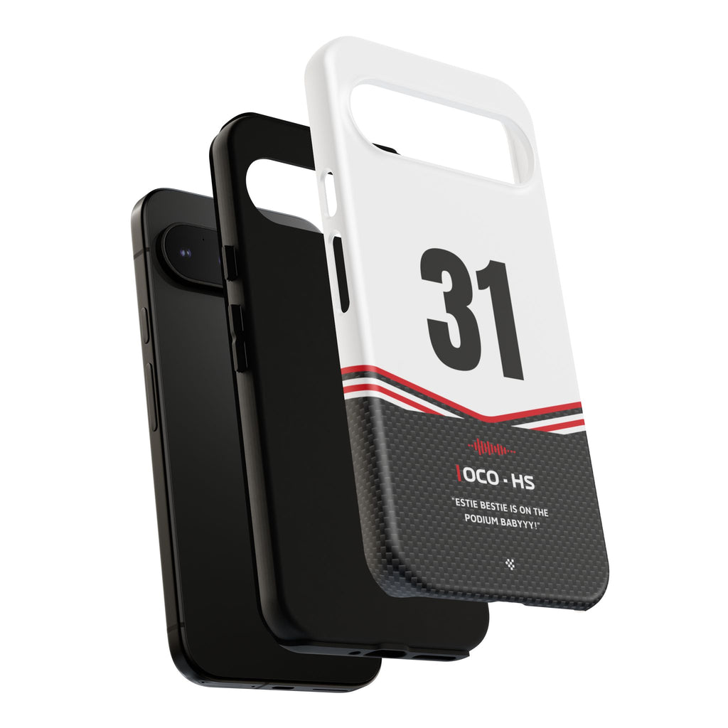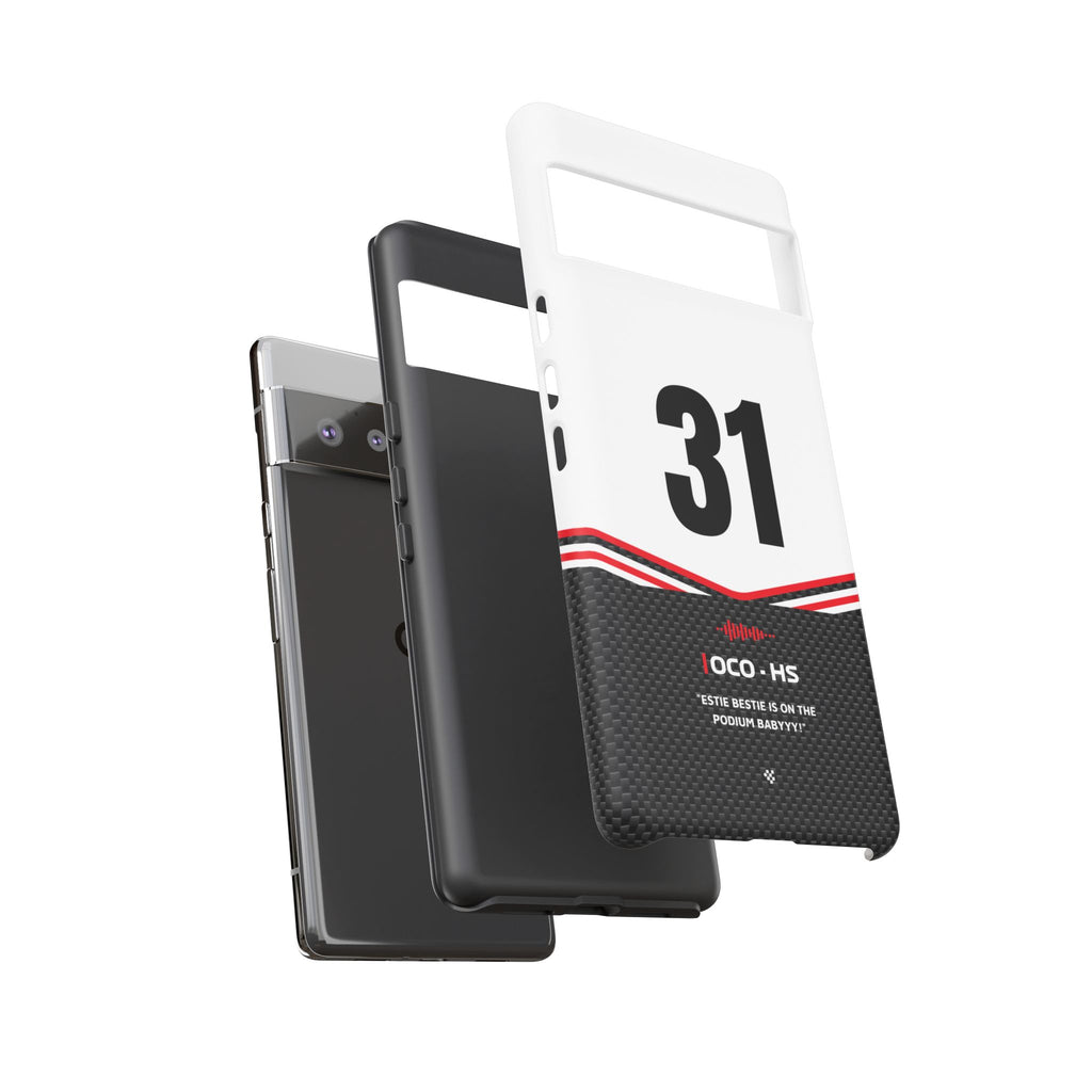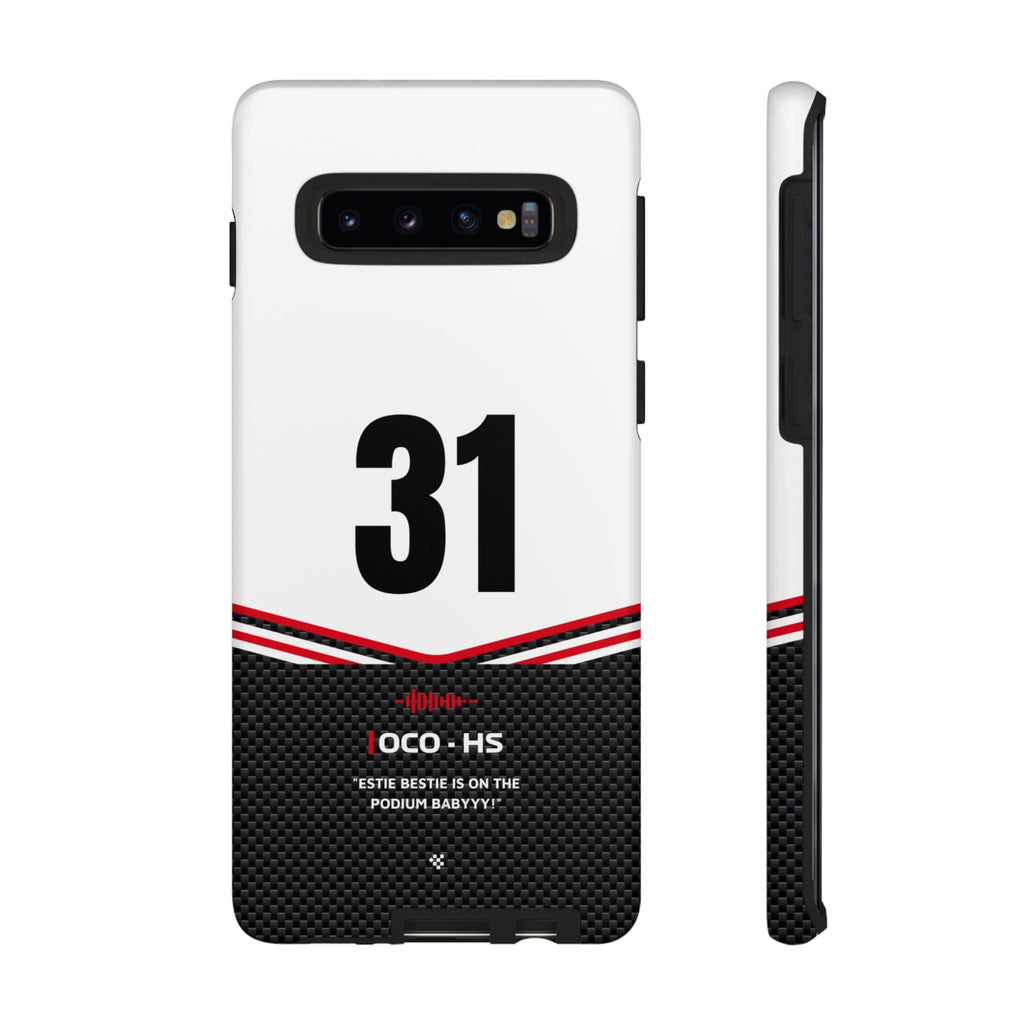 Support your favorite F1 driver with the exclusive Esteban Ocon F1 2025 Team Phone Case. It's the perfect accessory for every passionate Formula 1 and Ocon fan. Featuring Esteban's iconic #31 race number and the bold 2025 Haas team colors, this white phone case brings racing energy straight to your hand.
