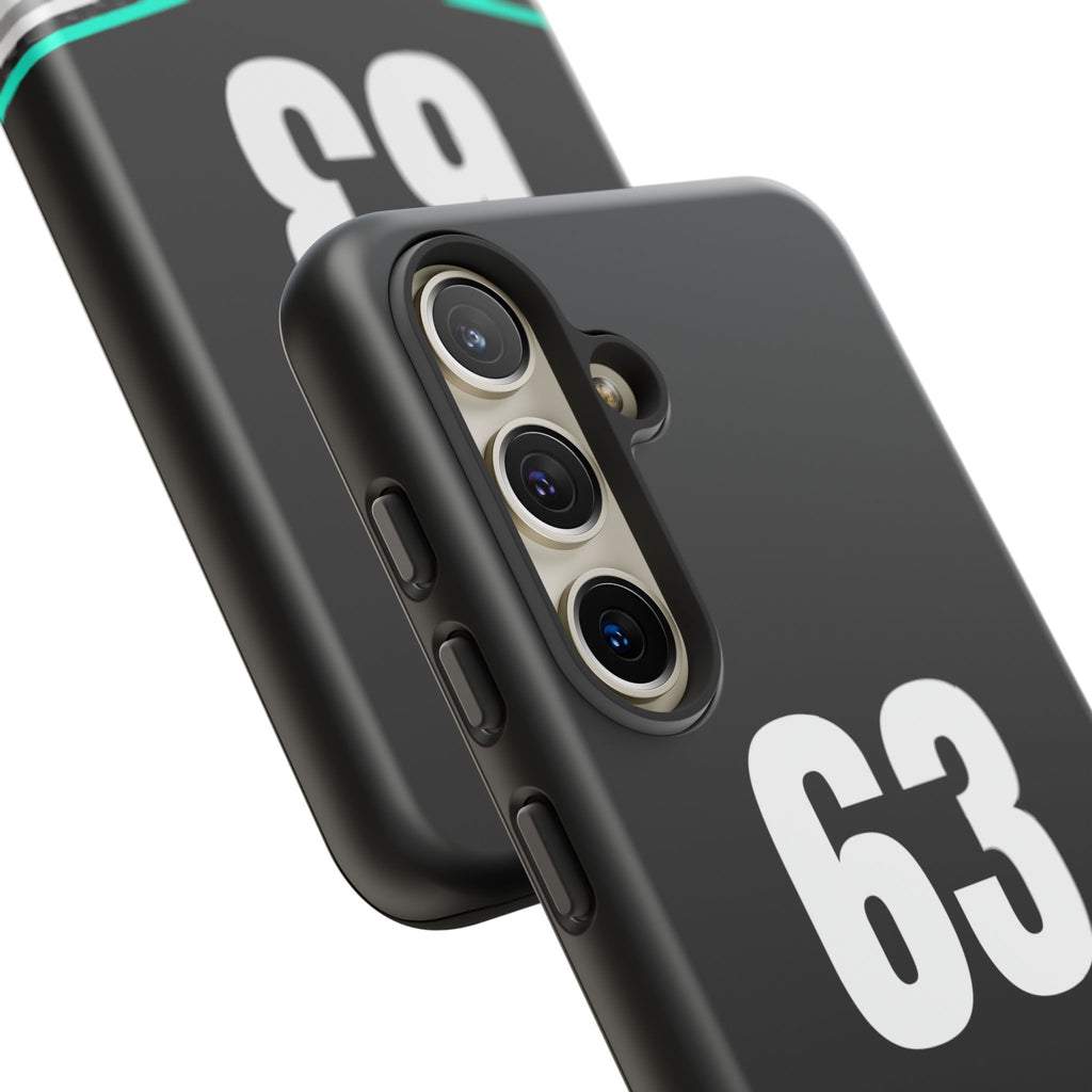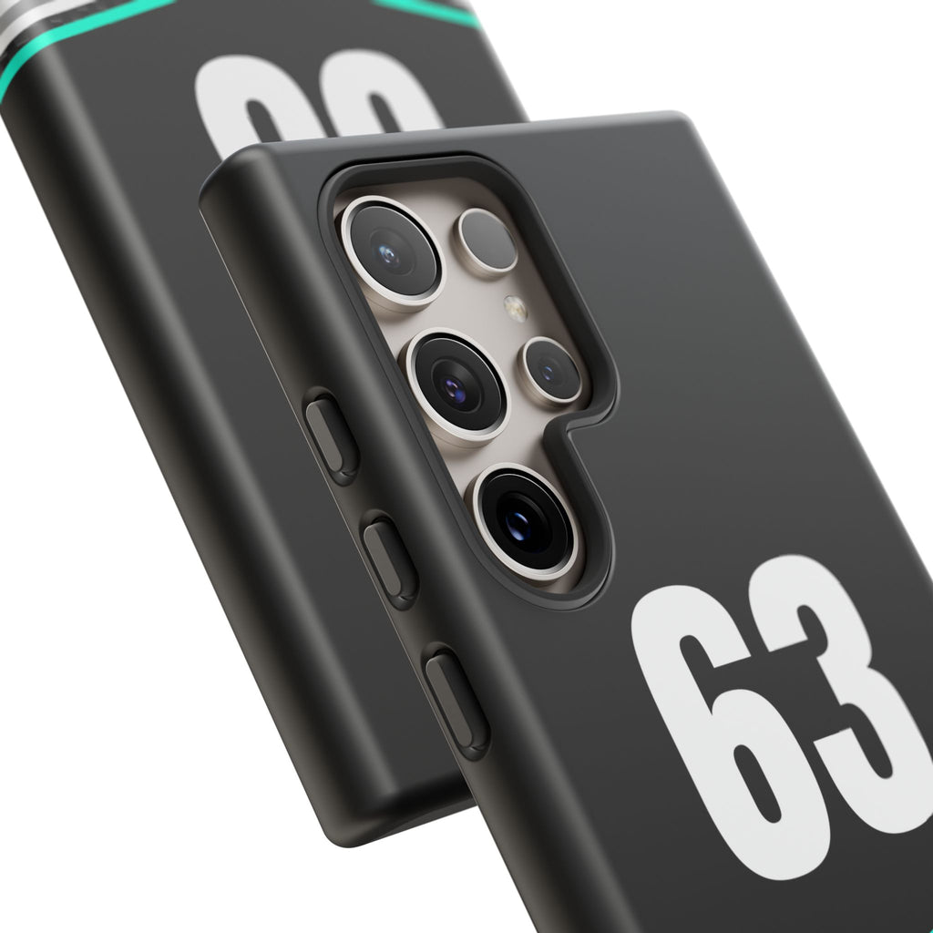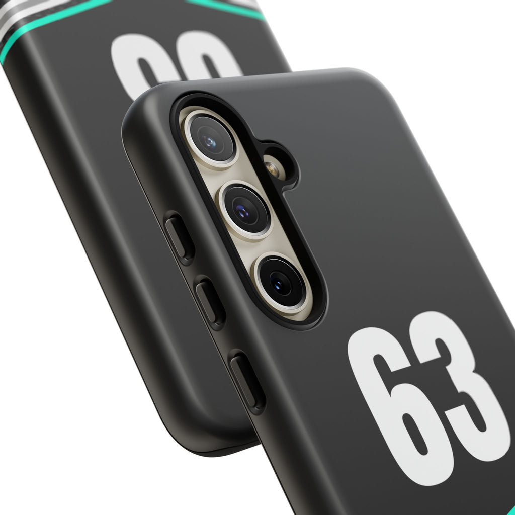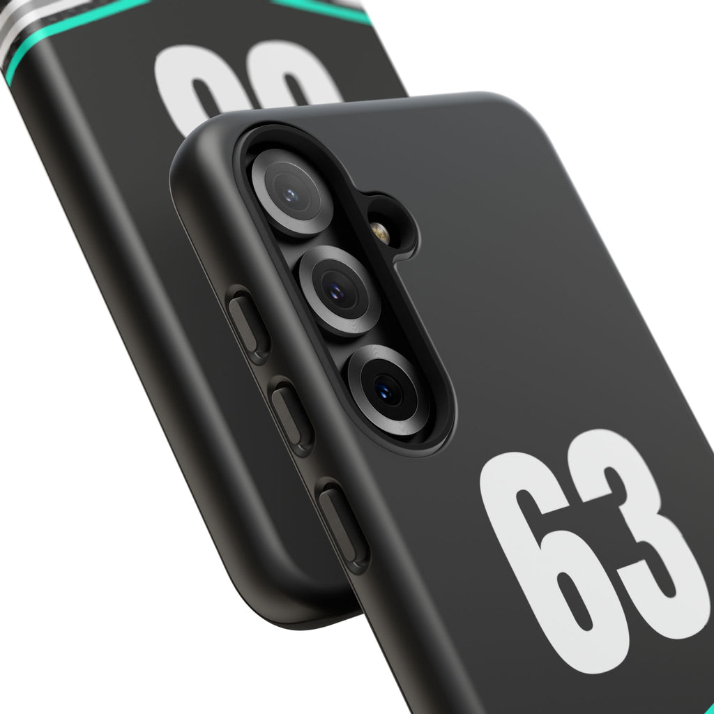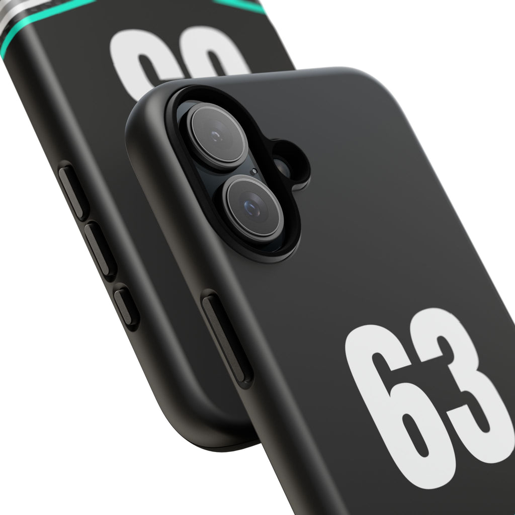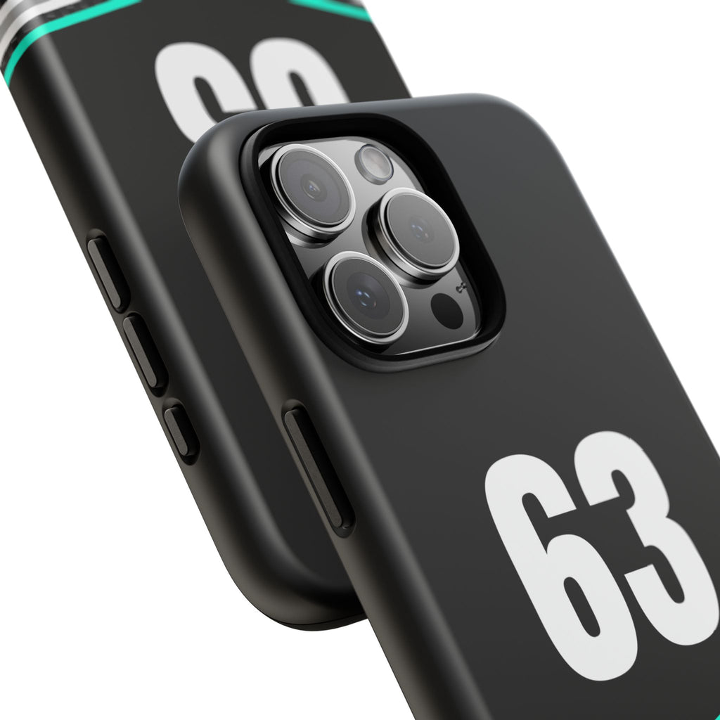 Support your favorite F1 driver with the exclusive George Russell F1 2025 Team Phone Case. It's the perfect accessory for every passionate Formula 1 and Russell fan. Featuring George's iconic #63 race number and the bold 2025 Mercedes-AMG Petronas team colors, this black phone case brings racing energy straight to your hand.